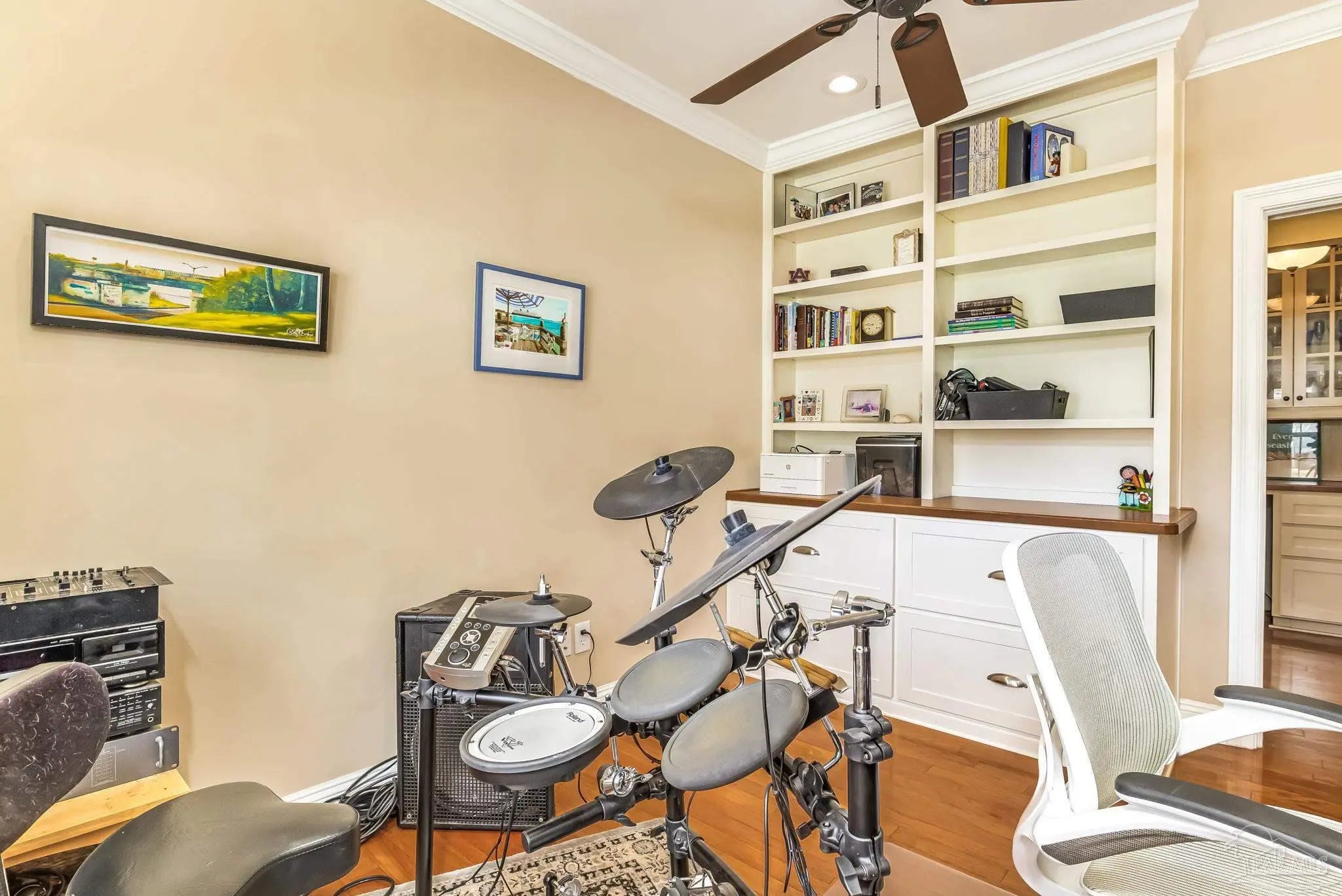 - Ceiling Fan(s), Crown Molding, High Ceilings, Bonus Room