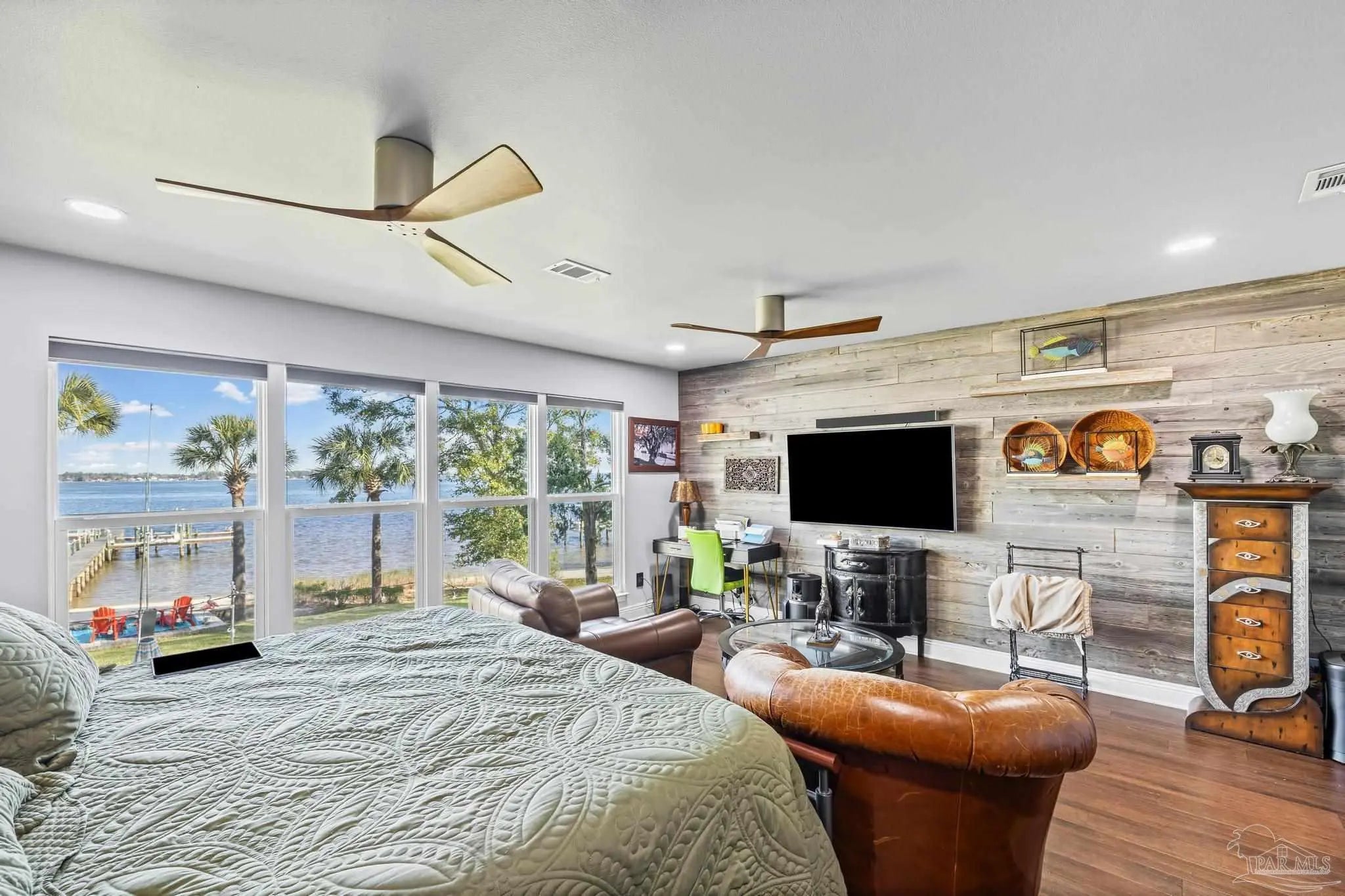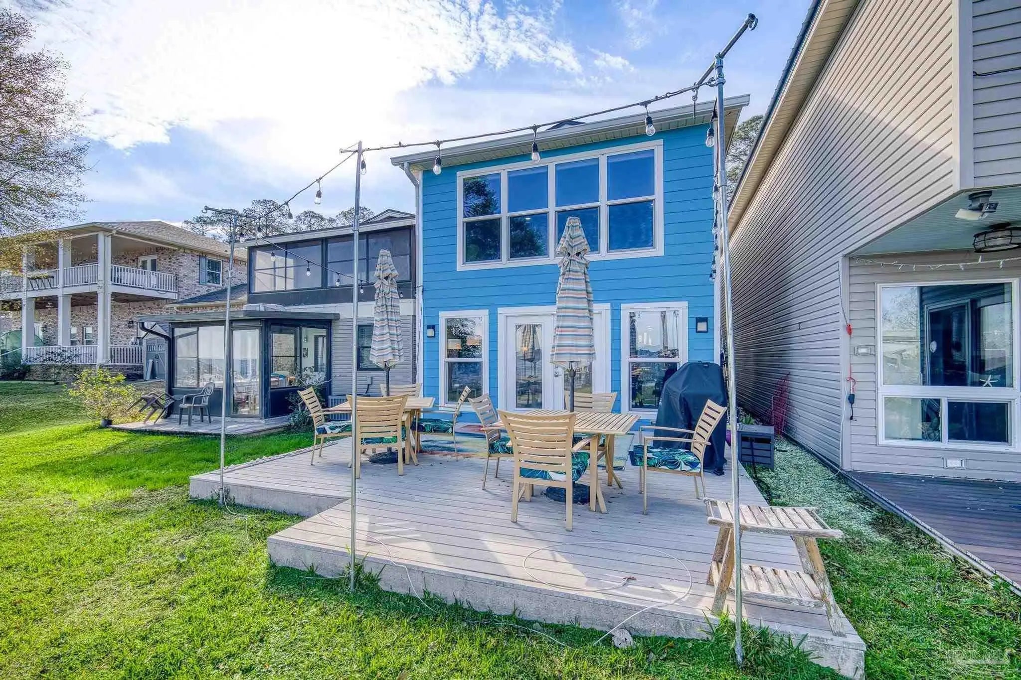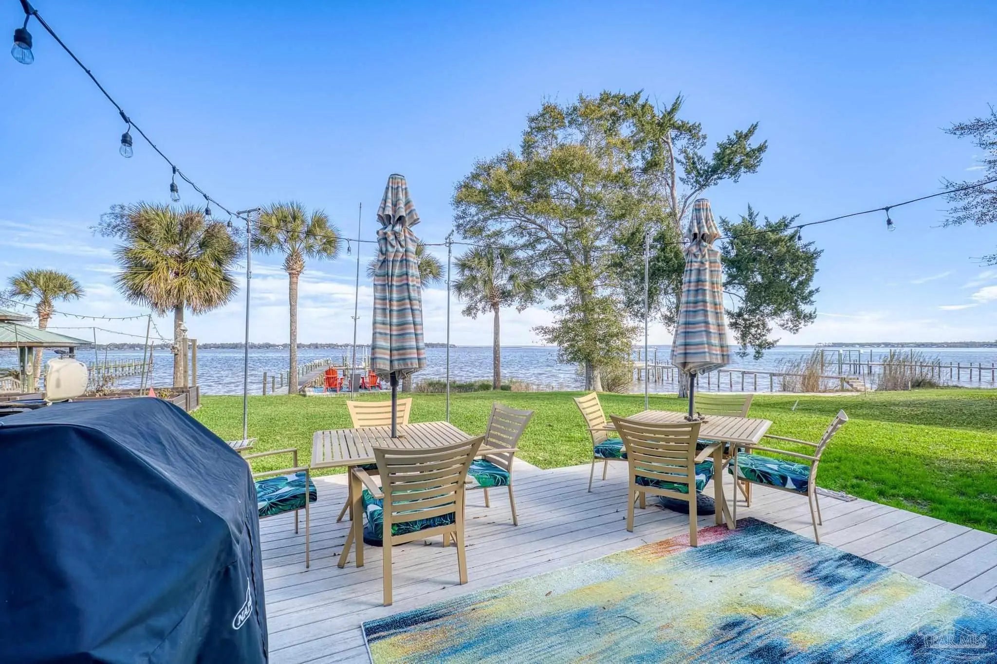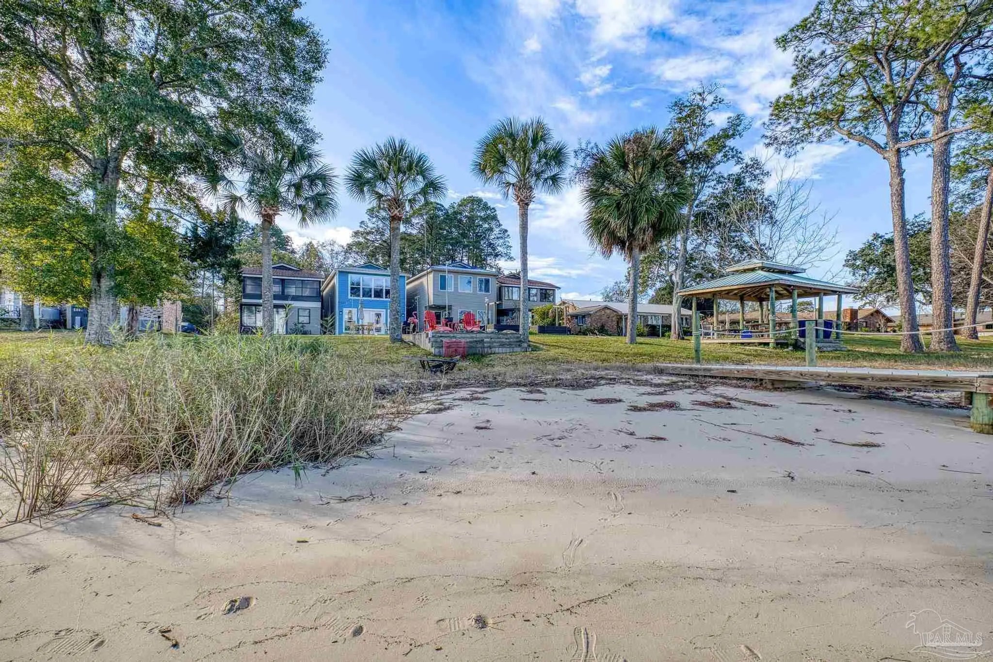 Wake up to sunshine, salt air, and sweeping views of Perdido Bay in this exceptional waterfront retreat, where coastal living meets everyday comfort. Enjoy peaceful mornings watching the water, afternoons on the bay, and evenings cooled by gentle breezes—all at a price point rarely found for this setting. The open-concept main living area is thoughtfully designed for both relaxation and entertaining, featuring a spacious family room ideal for taking in bay views and vibrant sunsets. The kitchen is well appointed with custom mocha cabinetry, granite countertops, stainless steel appliances, and a breakfast bar, while the adjoining dining area offers a scenic waterfront backdrop. French doors off the main living space open to an inviting patio, extending your living area outdoors. A full bathroom is located on the main level, with two generously sized bedrooms and two full bathrooms upstairs. The oversized primary suite offers flexible space for a home office, reading nook, or sitting area, all complemented by calming water views and unforgettable sunsets. The secondary bedroom is equally spacious and includes ample closet storage. Outdoor and waterfront amenities truly set this property apart, with access to a gazebo and an impressive 165-foot pier featuring a privately owned boat lift, ski lift, and viewing area—perfect for boating, fishing, or simply enjoying the bay. Storage is abundant, including a large storage unit nearly the size of a one-car garage and an additional shed ideal for water toys and outdoor gear. Well-maintained landscaping enhances both the front and rear outdoor spaces. Conveniently located near NAS, the Naval Hospital, and approximately 15 minutes from downtown Pensacola, shopping, and dining, this home offers a rare blend of waterfront lifestyle, convenience, and value in one remarkable opportunity.