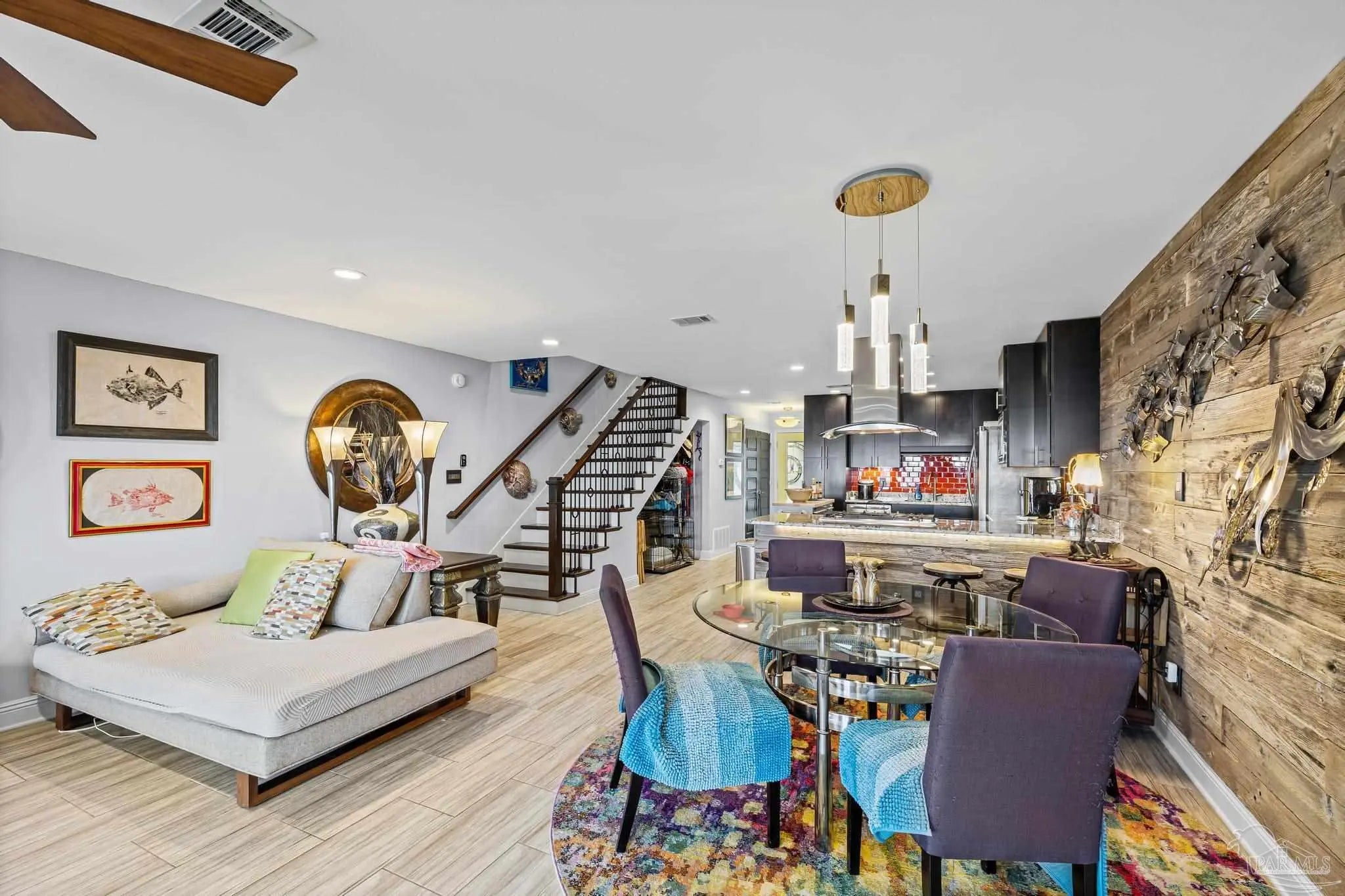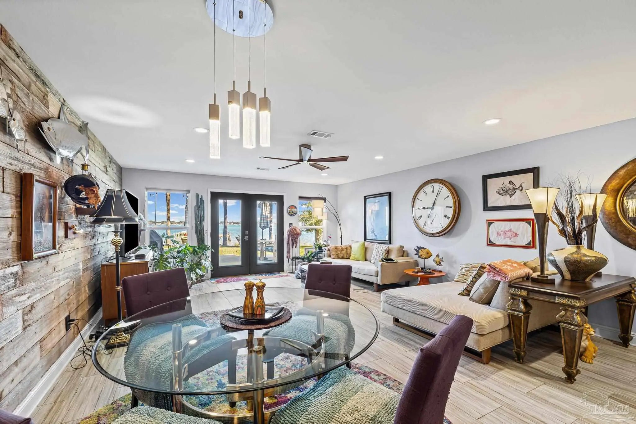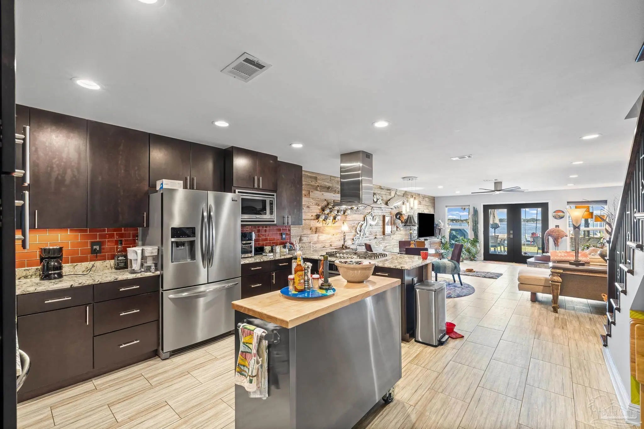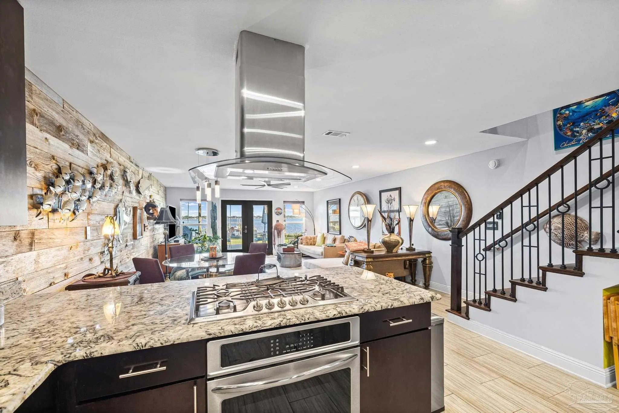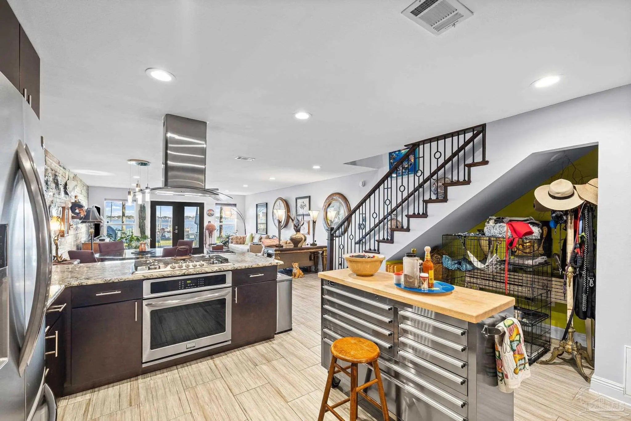 Wake up to sunshine, salt air, and sweeping views of Perdido Bay in this exceptional waterfront retreat, where coastal living meets everyday comfort. Enjoy peaceful mornings watching the water, afternoons on the bay, and evenings cooled by gentle breezes—all at a price point rarely found for this setting. The open-concept main living area is thoughtfully designed for both relaxation and entertaining, featuring a spacious family room ideal for taking in bay views and vibrant sunsets. The kitchen is well appointed with custom mocha cabinetry, granite countertops, stainless steel appliances, and a breakfast bar, while the adjoining dining area offers a scenic waterfront backdrop. French doors off the main living space open to an inviting patio, extending your living area outdoors. A full bathroom is located on the main level, with two generously sized bedrooms and two full bathrooms upstairs. The oversized primary suite offers flexible space for a home office, reading nook, or sitting area, all complemented by calming water views and unforgettable sunsets. The secondary bedroom is equally spacious and includes ample closet storage. Outdoor and waterfront amenities truly set this property apart, with access to a gazebo and an impressive 165-foot pier featuring a privately owned boat lift, ski lift, and viewing area—perfect for boating, fishing, or simply enjoying the bay. Storage is abundant, including a large storage unit nearly the size of a one-car garage and an additional shed ideal for water toys and outdoor gear. Well-maintained landscaping enhances both the front and rear outdoor spaces. Conveniently located near NAS, the Naval Hospital, and approximately 15 minutes from downtown Pensacola, shopping, and dining, this home offers a rare blend of waterfront lifestyle, convenience, and value in one remarkable opportunity.