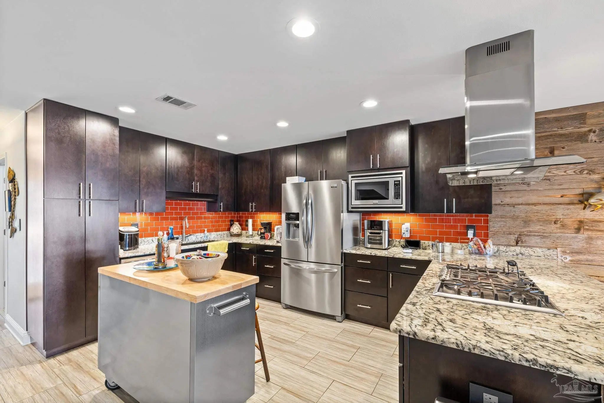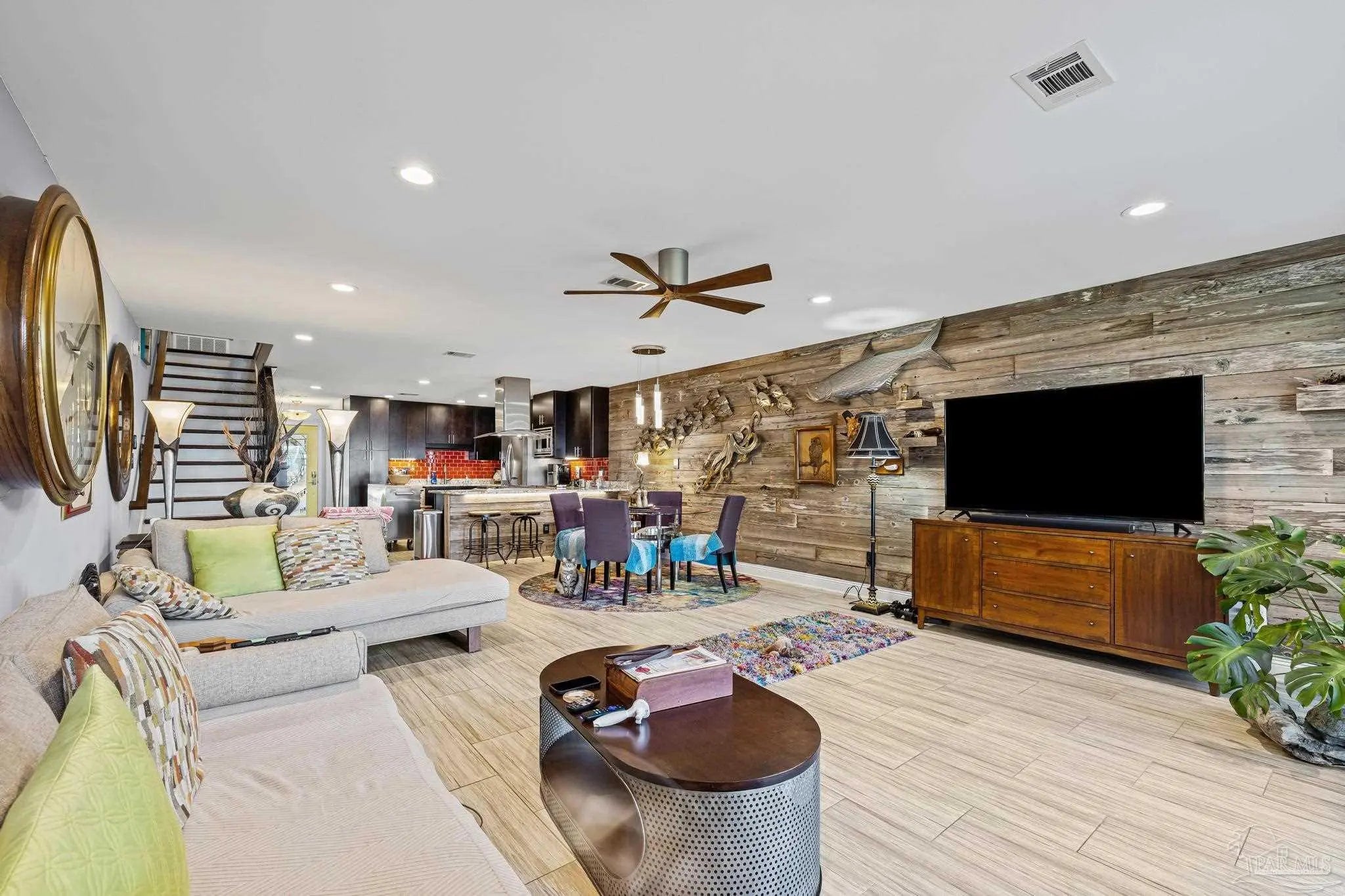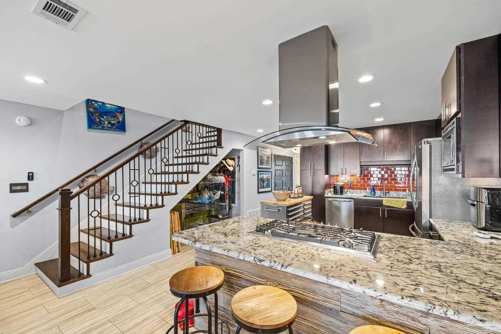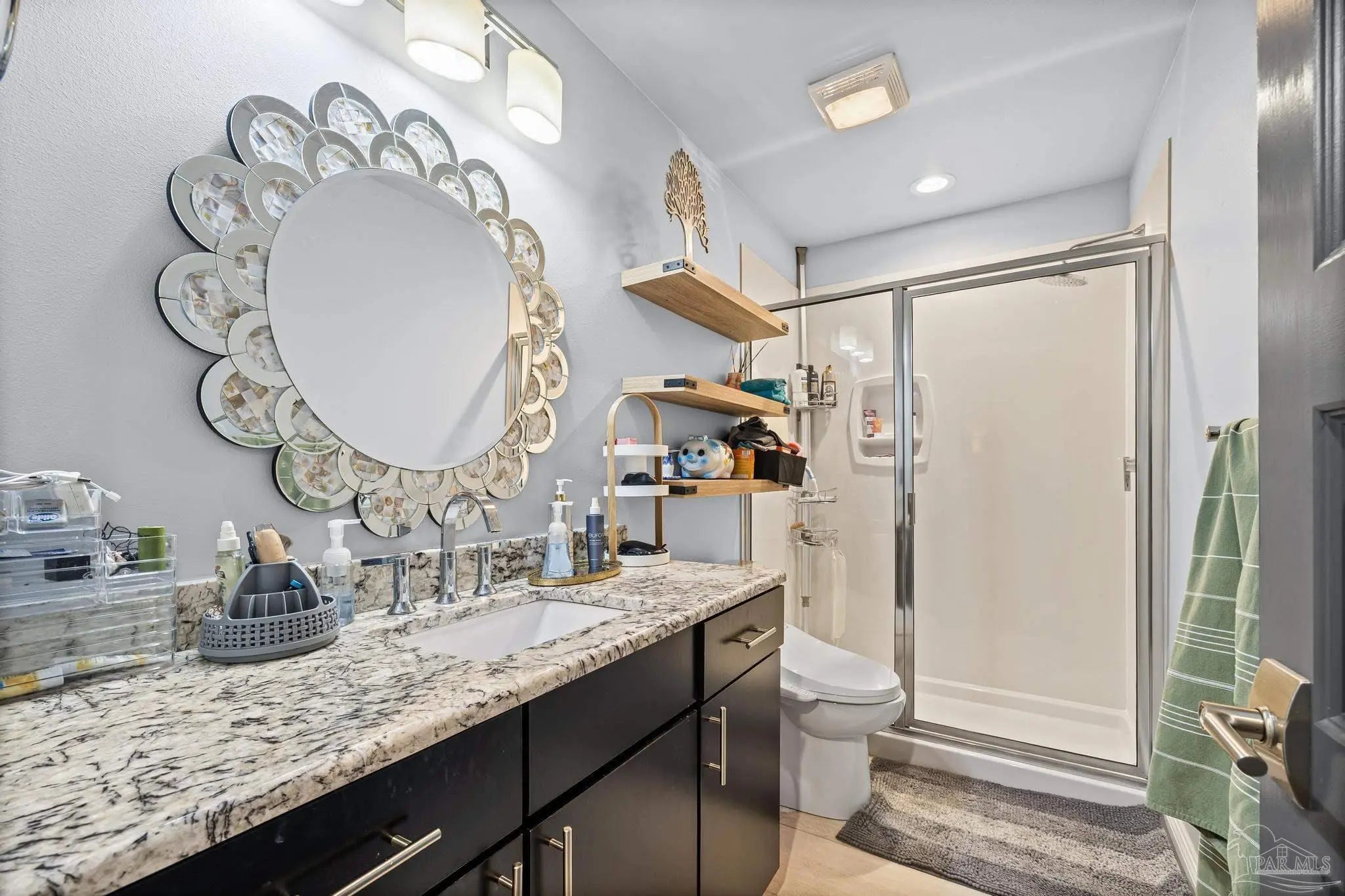 Wake up to sunshine, salt air, and sweeping views of Perdido Bay in this exceptional waterfront retreat, where coastal living meets everyday comfort. Enjoy peaceful mornings watching the water, afternoons on the bay, and evenings cooled by gentle breezes—all at a price point rarely found for this setting. The open-concept main living area is thoughtfully designed for both relaxation and entertaining, featuring a spacious family room ideal for taking in bay views and vibrant sunsets. The kitchen is well appointed with custom mocha cabinetry, granite countertops, stainless steel appliances, and a breakfast bar, while the adjoining dining area offers a scenic waterfront backdrop. French doors off the main living space open to an inviting patio, extending your living area outdoors. A full bathroom is located on the main level, with two generously sized bedrooms and two full bathrooms upstairs. The oversized primary suite offers flexible space for a home office, reading nook, or sitting area, all complemented by calming water views and unforgettable sunsets. The secondary bedroom is equally spacious and includes ample closet storage. Outdoor and waterfront amenities truly set this property apart, with access to a gazebo and an impressive 165-foot pier featuring a privately owned boat lift, ski lift, and viewing area—perfect for boating, fishing, or simply enjoying the bay. Storage is abundant, including a large storage unit nearly the size of a one-car garage and an additional shed ideal for water toys and outdoor gear. Well-maintained landscaping enhances both the front and rear outdoor spaces. Conveniently located near NAS, the Naval Hospital, and approximately 15 minutes from downtown Pensacola, shopping, and dining, this home offers a rare blend of waterfront lifestyle, convenience, and value in one remarkable opportunity.