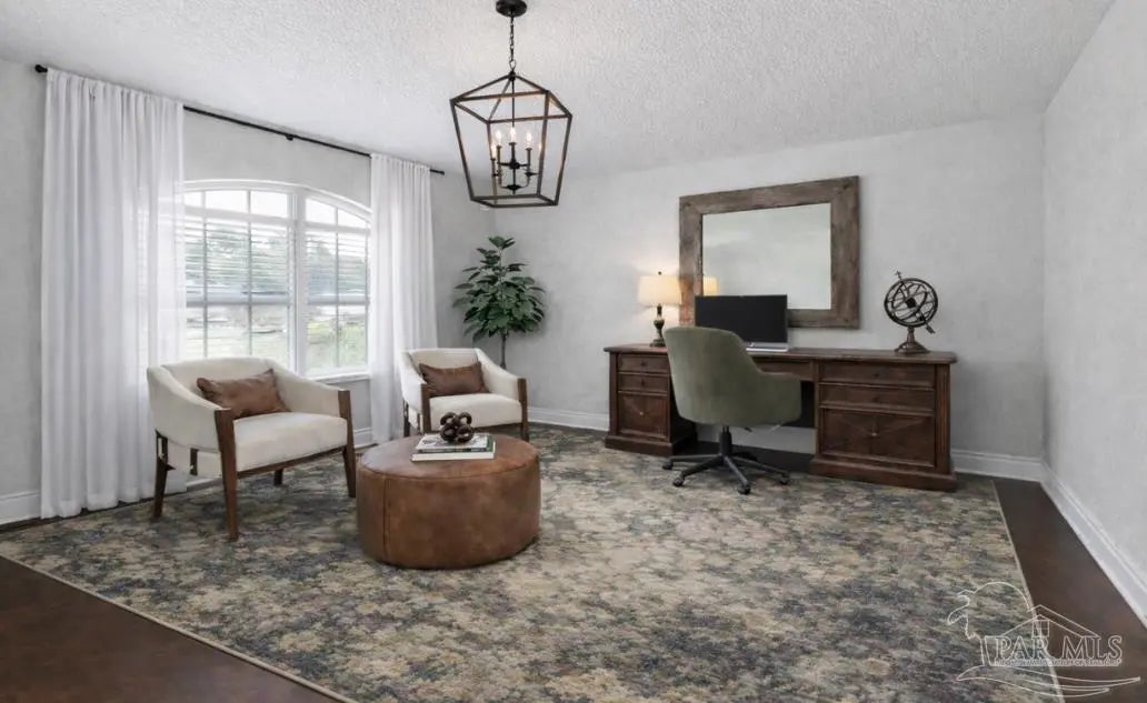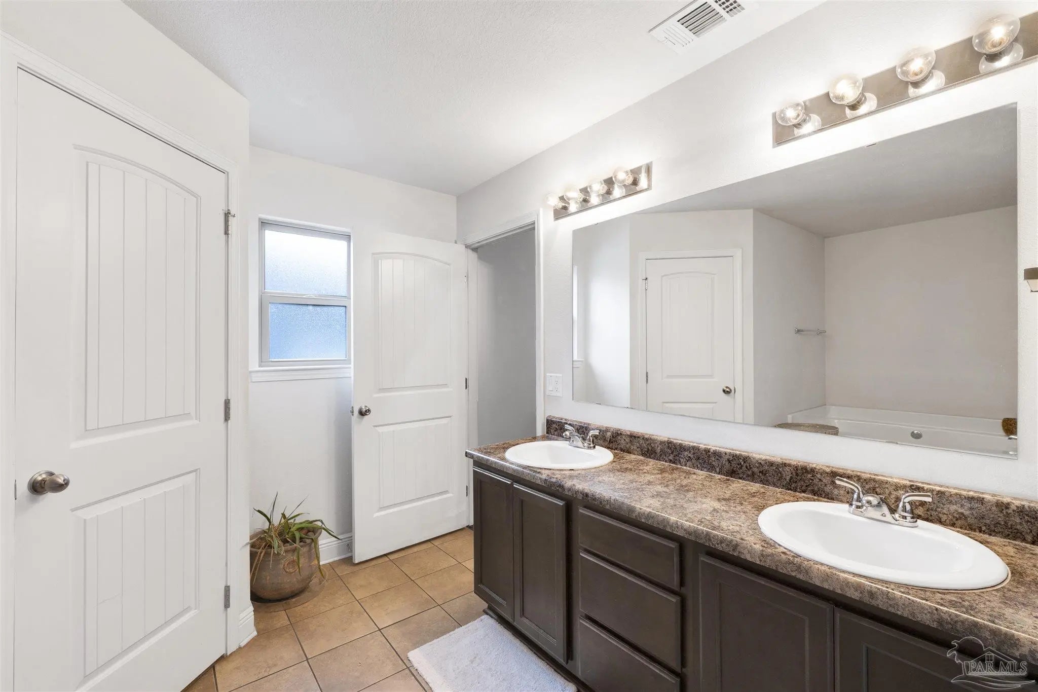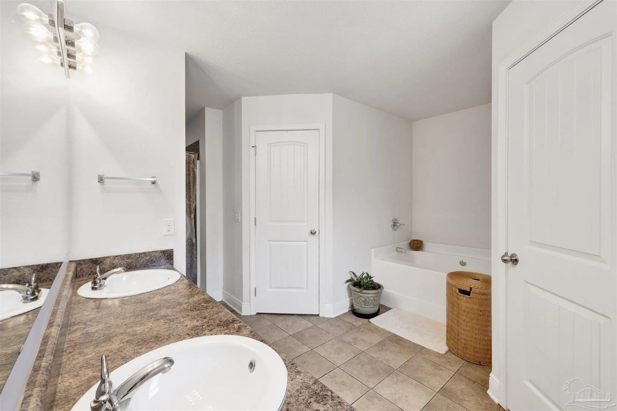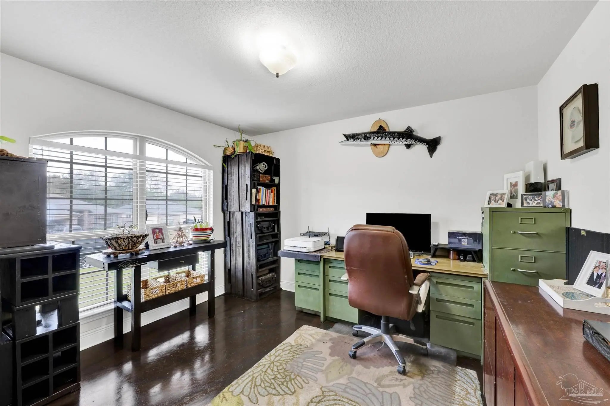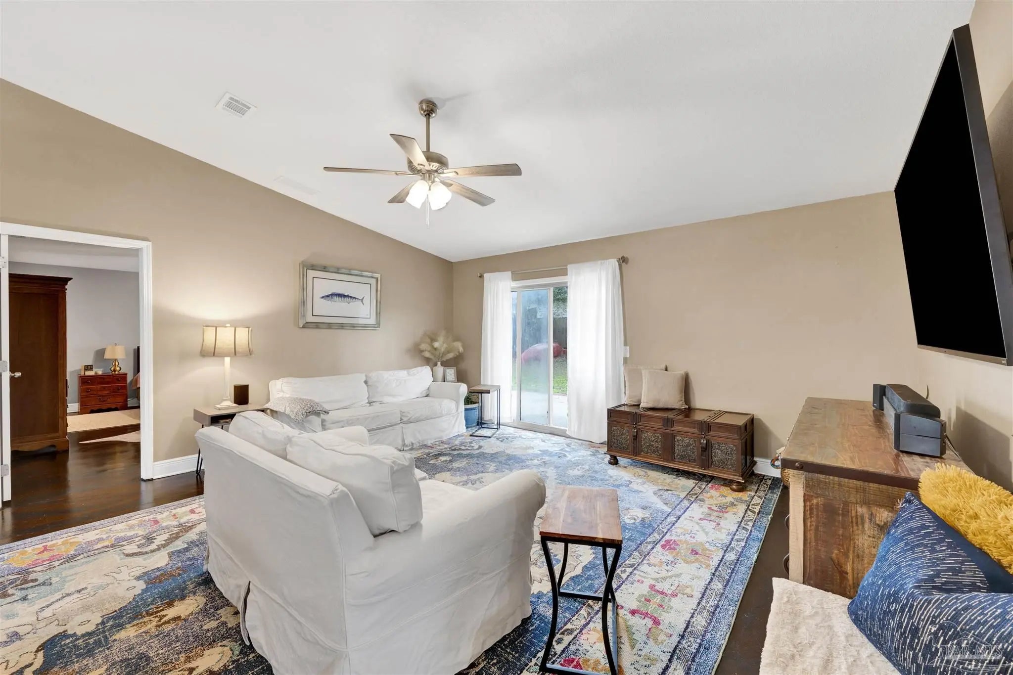 This well-designed 4-bedroom, 2-bath home offers a great floor plan and an inviting open living concept perfect for everyday living and entertaining. From the tiled foyer, you step into a spacious great room highlighted by beautiful stained concrete flooring, a soaring cathedral ceiling with a decorative beam, and a sliding glass door that opens to the backyard. The large eat-in kitchen features tile flooring, a center island, granite countertops, a pantry, and stainless steel appliances, providing both style and functionality. The split-bedroom floor plan ensures privacy for the primary suite, which includes a generous bedroom with stained concrete flooring. The ensuite bath offers tile flooring, double vanities, his-and-her walk-in closets, a relaxing garden tub, and a separate walk-in shower. Additional bedrooms are nicely sized with ample closet space, while the secondary full bath includes a single vanity and a tub/shower combination. The laundry room is conveniently located off the kitchen and provides access to the two-car garage. Outside, the privacy-fenced backyard features an open patio—ideal for outdoor entertaining or simply enjoying your own private space.