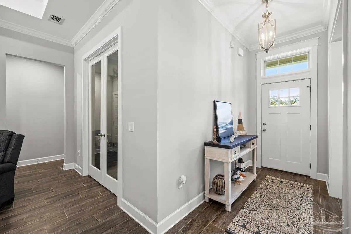 - Baseboards, Ceiling Fan(s), Crown Molding, High Ceilings, Recessed Lighting, Office/Study