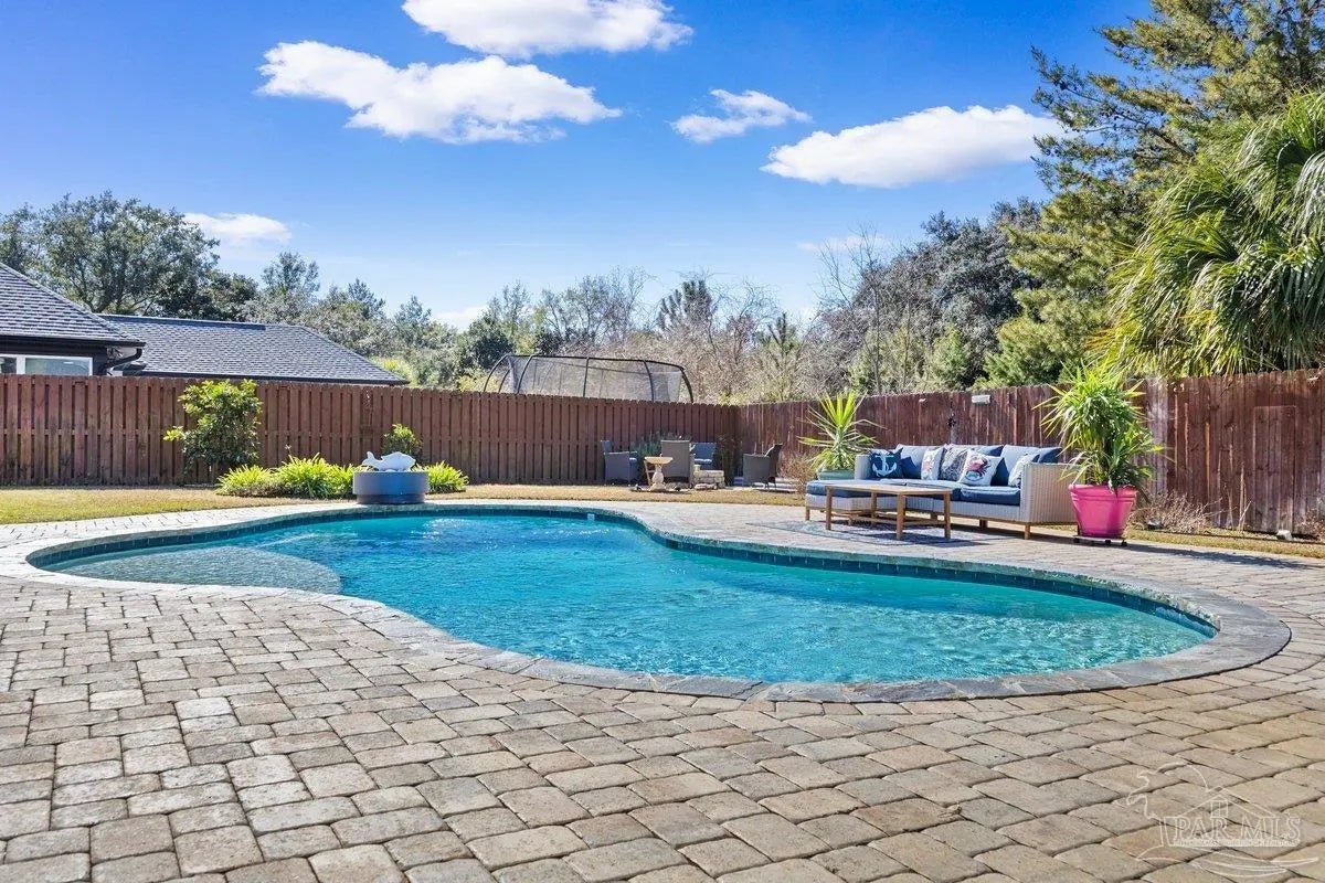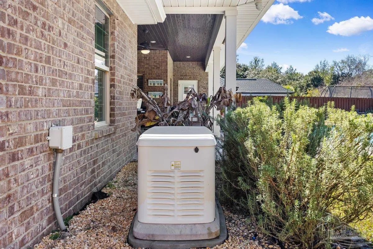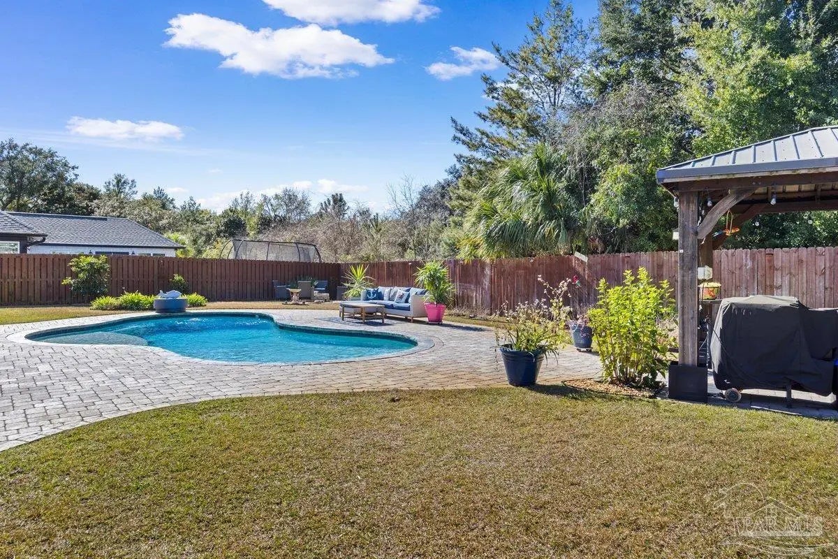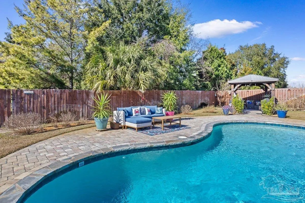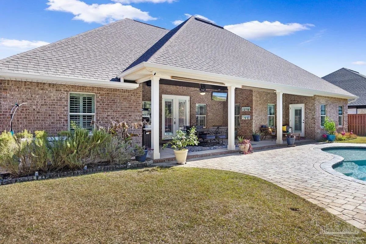 Florida living at its best. Beautiful custom pool home located in the highly desirable gated community of Soundside Shores. This meticulously maintained pet free home is move-in ready. This split floor plan home offers 4 bedrooms, 3 full bathrooms, a private office, formal dining room, breakfast nook, and a living room highlighted by stunning vaulted beamed ceilings. The open gourmet kitchen is a chef's dream featuring a convention oven and microwave, abundant cabinetry, generous storage, breakfast bar, and a walk-pantry - perfect for everyday living. The primary suite showcases a trey ceiling with crown molding and a luxurious spa-style bathroom complete with a walk-in shower, soaking tub, dual granite vanities, private water closet, and large walk-in closet attached to the laundry room. Second and third bedrooms share a Jack & Jill bathroom. The private fourth bedroom has a bathroom close by which would make the perfect guest area. Plantation shutters throughout the home add a refined finishing touch. Step outside to a true backyard oasis featuring a gunite pool with reverse osmosis water, a huge covered patio, and a large gazebo with outdoor gas and water hookups-ideal for entertaining. The fully fenced backyard is beautifully landscaped. Additional highlights include a Generac generator and a security system. The Sound and Public boat ramp are a short walk away as well as the Nature Reserve Park. An exceptional home offering luxury and comfort.