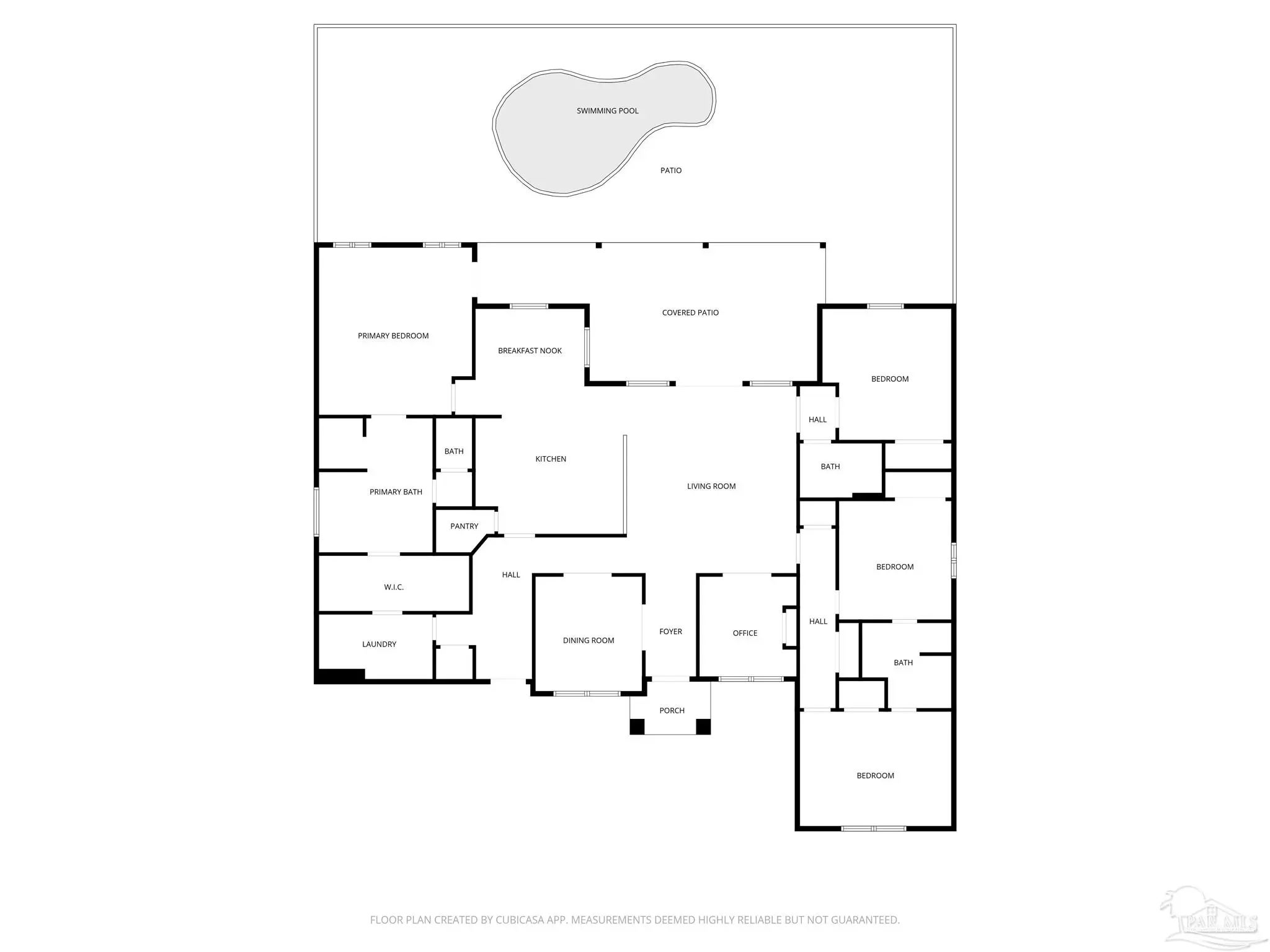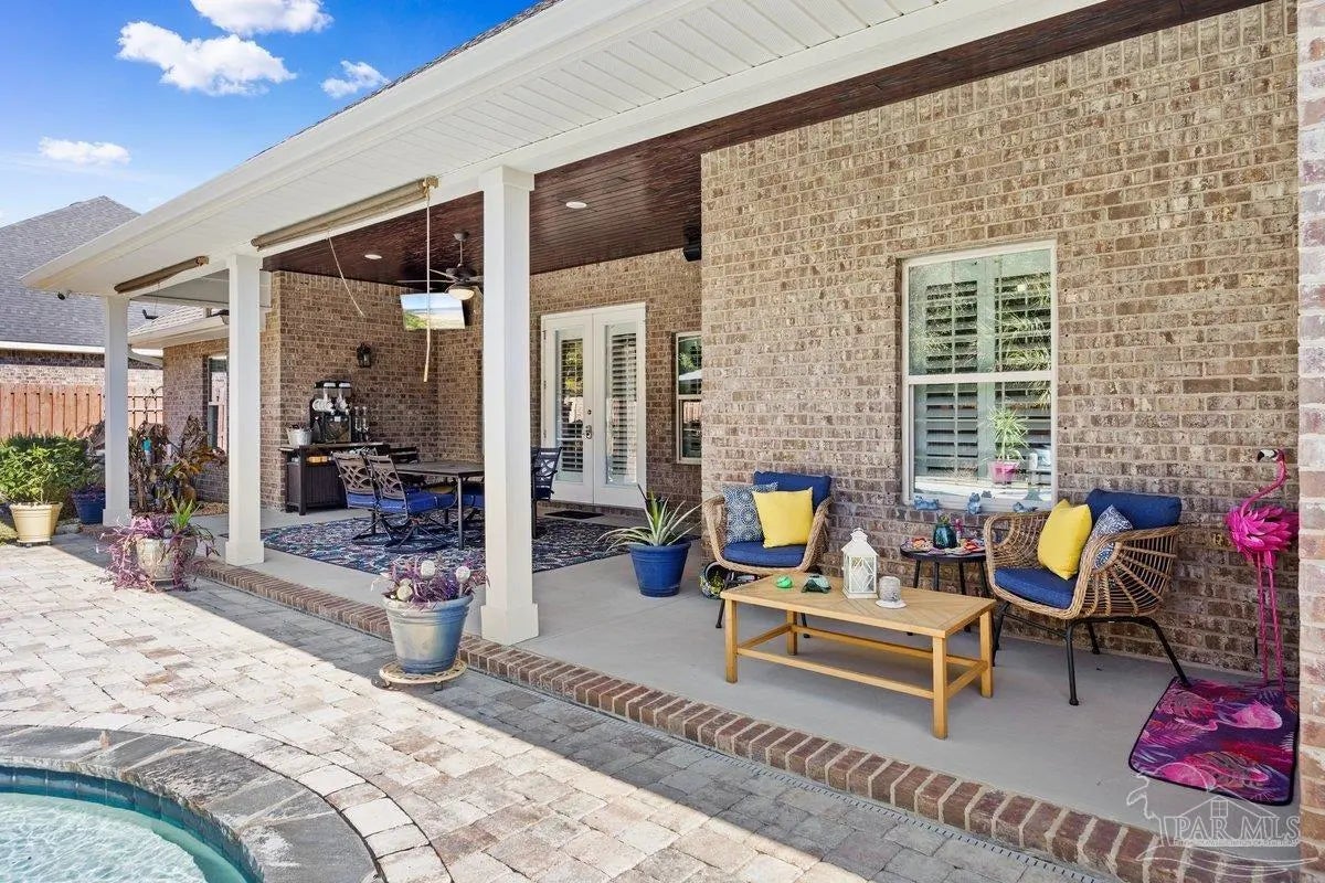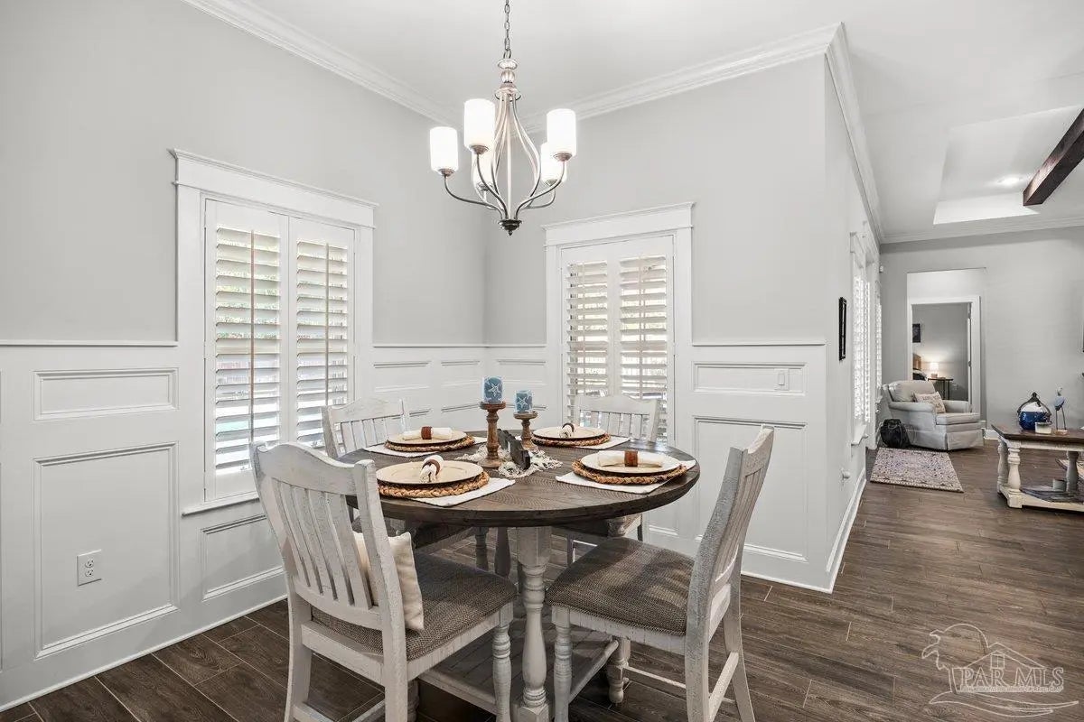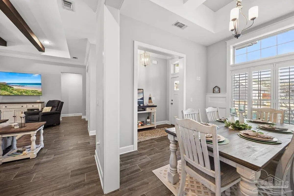 Florida living at its best. Beautiful custom pool home located in the highly desirable gated community of Soundside Shores. This meticulously maintained pet free home is move-in ready. This split floor plan home offers 4 bedrooms, 3 full bathrooms, a private office, formal dining room, breakfast nook, and a living room highlighted by stunning vaulted beamed ceilings. The open gourmet kitchen is a chef's dream featuring a convention oven and microwave, abundant cabinetry, generous storage, breakfast bar, and a walk-pantry - perfect for everyday living. The primary suite showcases a trey ceiling with crown molding and a luxurious spa-style bathroom complete with a walk-in shower, soaking tub, dual granite vanities, private water closet, and large walk-in closet attached to the laundry room. Second and third bedrooms share a Jack & Jill bathroom. The private fourth bedroom has a bathroom close by which would make the perfect guest area. Plantation shutters throughout the home add a refined finishing touch. Step outside to a true backyard oasis featuring a gunite pool with reverse osmosis water, a huge covered patio, and a large gazebo with outdoor gas and water hookups-ideal for entertaining. The fully fenced backyard is beautifully landscaped. Additional highlights include a Generac generator and a security system. The Sound and Public boat ramp are a short walk away as well as the Nature Reserve Park. An exceptional home offering luxury and comfort.