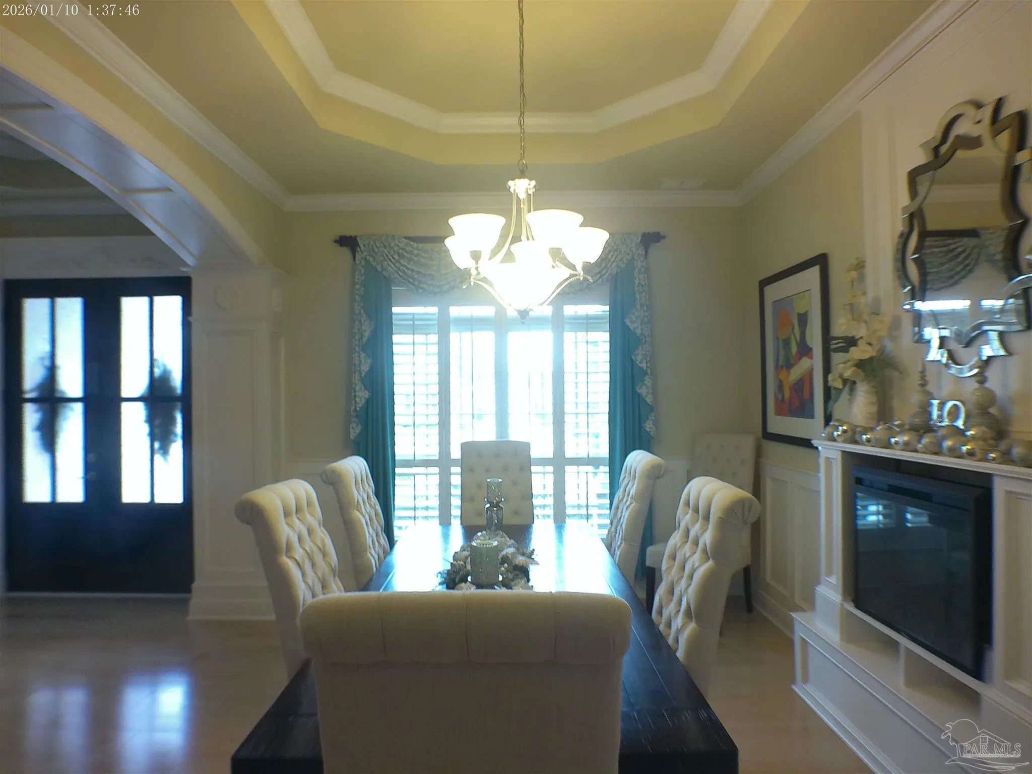 Spacious, elegant, and thoughtfully designed, this stunning 5-bedroom, 4.5-bath home is located in the highly sought-after Nature Trail Subdivision, featuring a gated, guarded entrance with 24-hour security. The home offers an attached 3-car side-entry garage and is filled with upscale features throughout. At the heart of the home is a gourmet kitchen designed to impress, showcasing an abundance of granite countertops, custom cabinetry, stainless steel appliances, and a built-in wall oven. A wraparound breakfast bar provides ample seating and overlooks the breakfast area and expansive family/great room, creating a seamless space for everyday living and entertaining. The family room features a large gas fireplace, perfect for cozy evenings, while a second gas fireplace in the dining area adds warmth and charm—ideal for memorable family gatherings. This home was designed with entertaining and comfort in mind, offering both elegance and relaxation. Attention to detail is evident throughout, from the styled entryways to the beautifully designed hallways. The primary suite is a true retreat, featuring high ceilings, a gas fireplace, and custom accent walls. The luxurious primary bath includes a large garden tub and an oversized walk-in tiled shower with dual shower heads and plenty of space for two. The fifth bedroom is located upstairs and includes its own bathroom with a walk-in shower, making it a versatile space that could serve as a guest suite, office, game room, or flex space to suit your needs. Step outside to a backyard designed for enjoyment, featuring an outdoor cooking area, gas fireplace, and multiple seating areas—perfect for entertaining or unwinding. Residents of Nature Trail also enjoy access to resort-style amenities, including a clubhouse with a swimming pool, gathering areas, and scenic nature trails. With so much to offer, this exceptional home and community are best experienced in person. View the photos then schedule your private tour today.