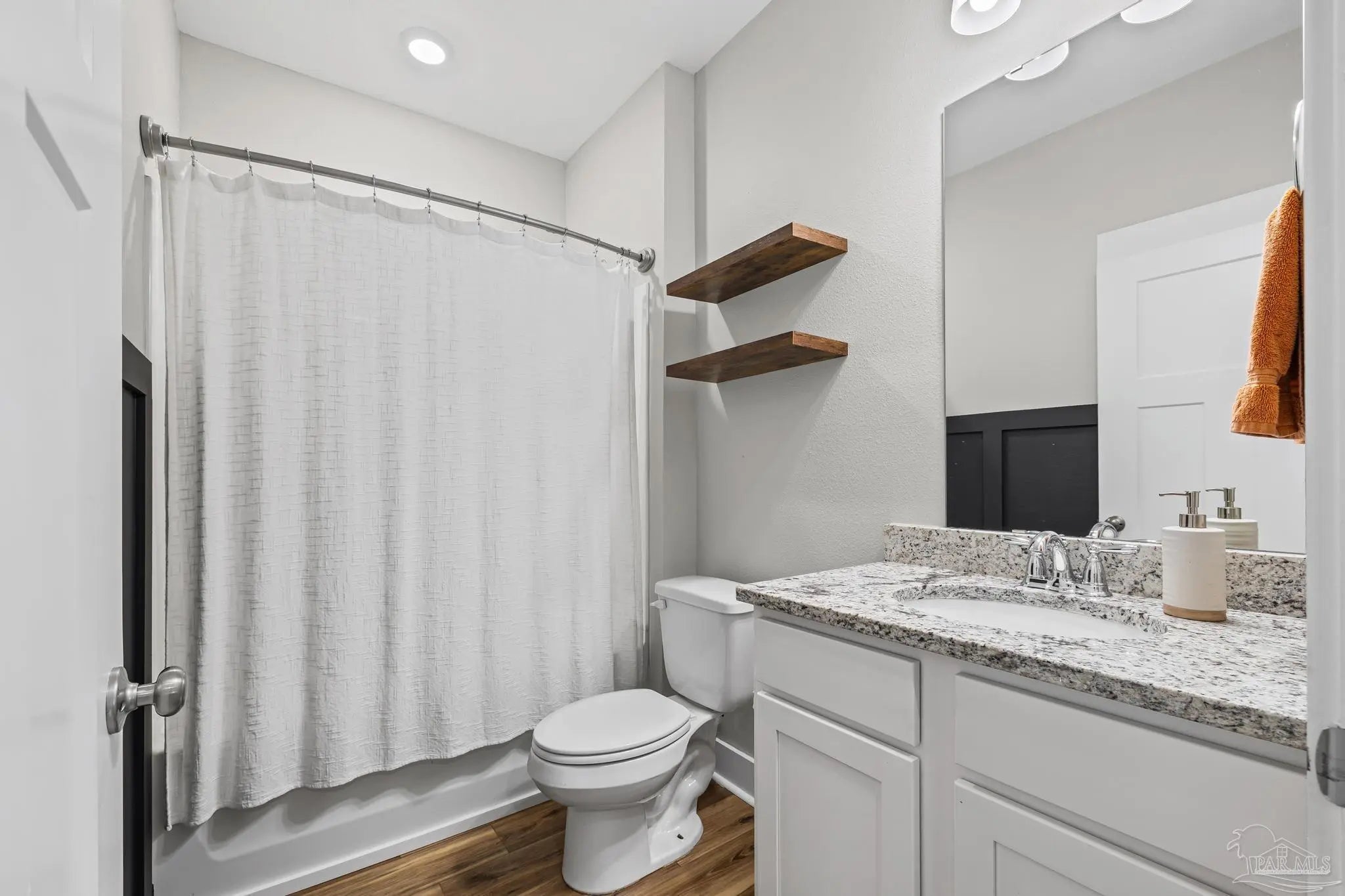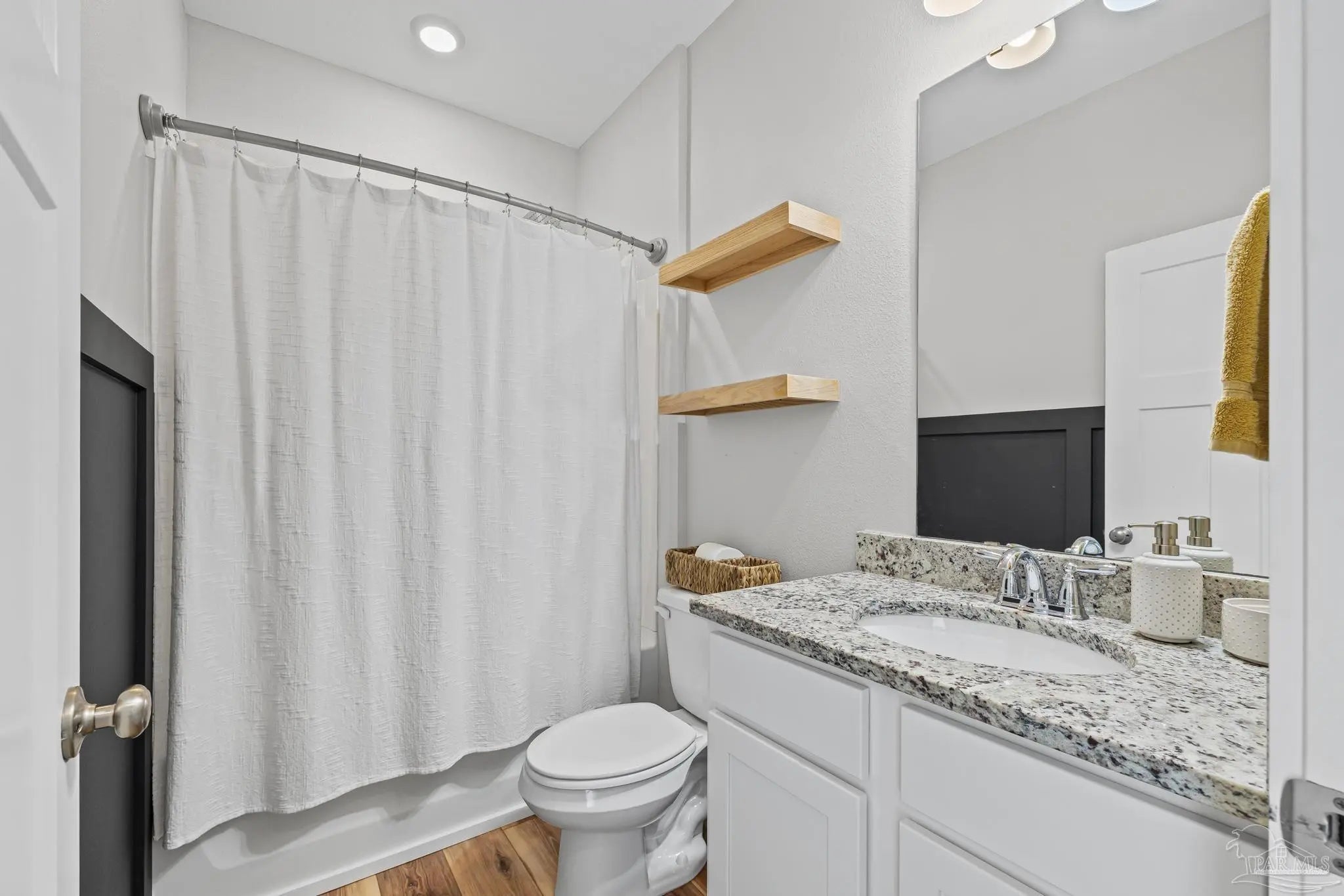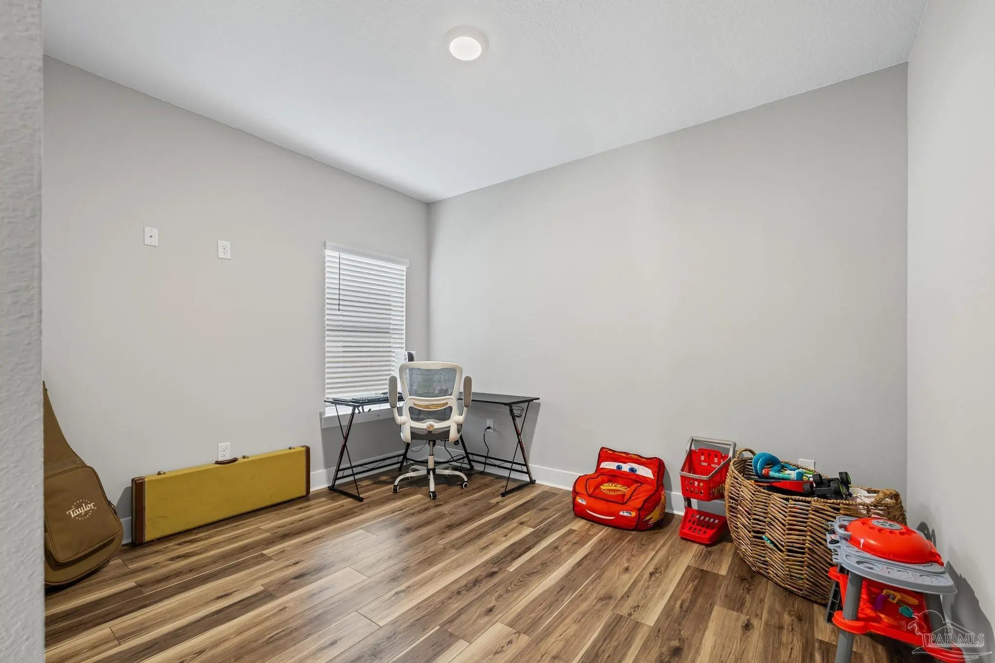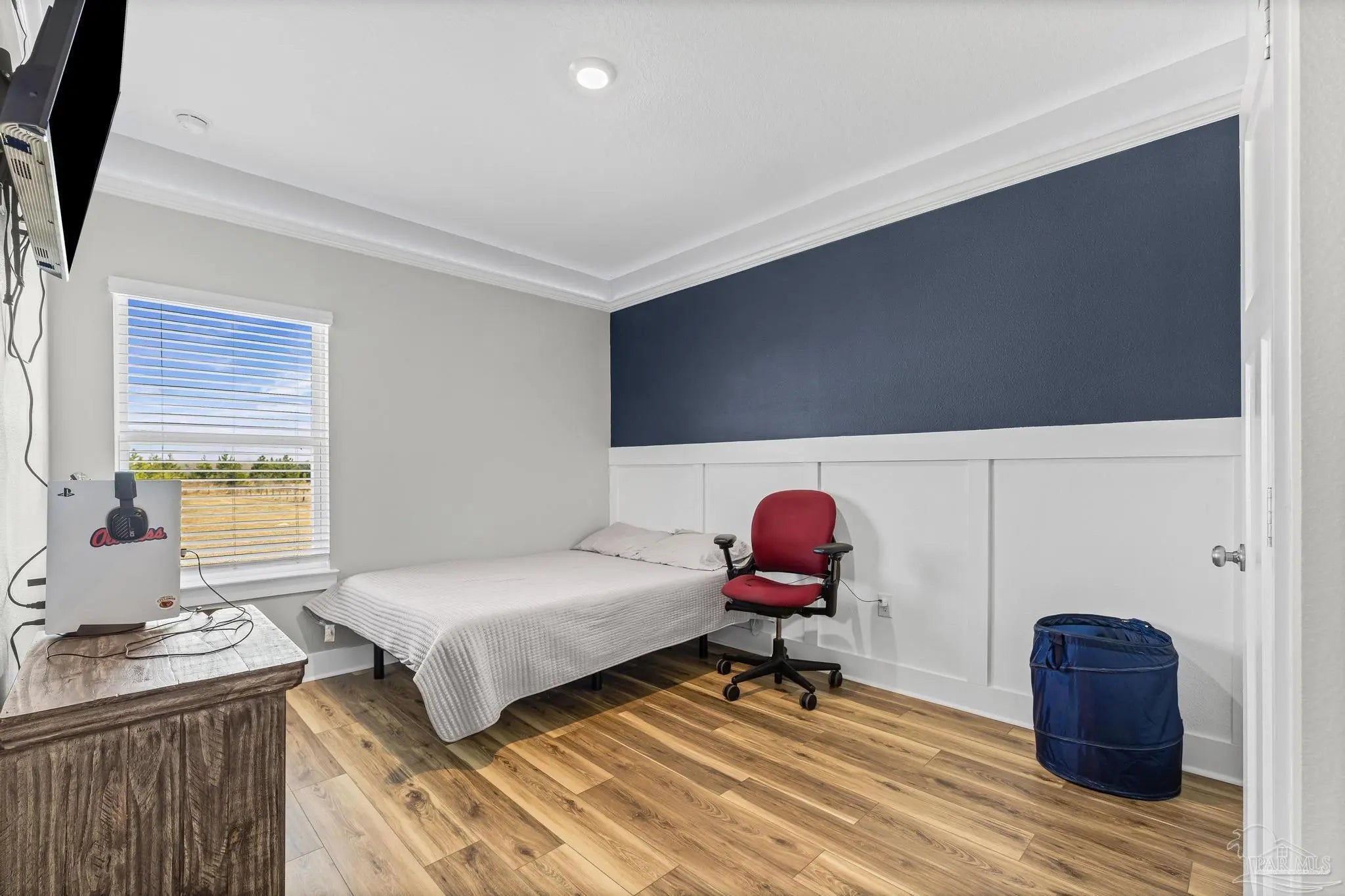 This stunning Destin floor plan offers 4 bedrooms, 3 bathrooms, & an oversized three-car garage, all situated on a full one-acre lot in the sought-after Chase Farms neighborhood. Move-in ready & thoughtfully designed, this single-story home features over 2,300 square feet of living space that blends modern style with everyday comfort. The open-concept layout creates an inviting atmosphere, with a spacious great room that flows seamlessly into the dining area & kitchen, complete with a cozy breakfast nook. The great room showcases a striking accent wall & a beautiful fireplace—perfect for relaxing and enjoying warm, comfortable evenings at home. The kitchen is designed for both function & style, featuring sleek countertops, staggered cabinetry, & a convenient breakfast area ideal for casual meals. Two bedrooms at the front of the home share a full bathroom, offering an ideal setup for guests or family members. The private primary suite is tucked away at the back of the home, providing a quiet retreat. It includes a large walk-in closet, a private water closet, & a primary bathroom accessed through a stylish barn door, combining comfort with thoughtful design. The flooring throughout the home has been upgraded to top of the line LVP, 22 mil thickness, definitely not builder grade —no carpet at all—along with tray ceilings and a barn door entry to the spacious laundry room. Generously sized closets, a walk-in pantry, and the oversized three-car garage provide abundant storage for tools, water toys, and more. Modern convenience is enhanced by a Smart Home package that includes a Kwikset lock, SkyBell doorbell, digital thermostat, Qolsys IQ touch panel, & Echo Dot integration. Step outside to enjoy the covered patio overlooking a fully fenced backyard, perfect for pets, play, or outdoor entertaining. With no HOA, you have the freedom to truly make this property your own. With room to grow both inside & out, this beautiful property is the perfect place to call home.