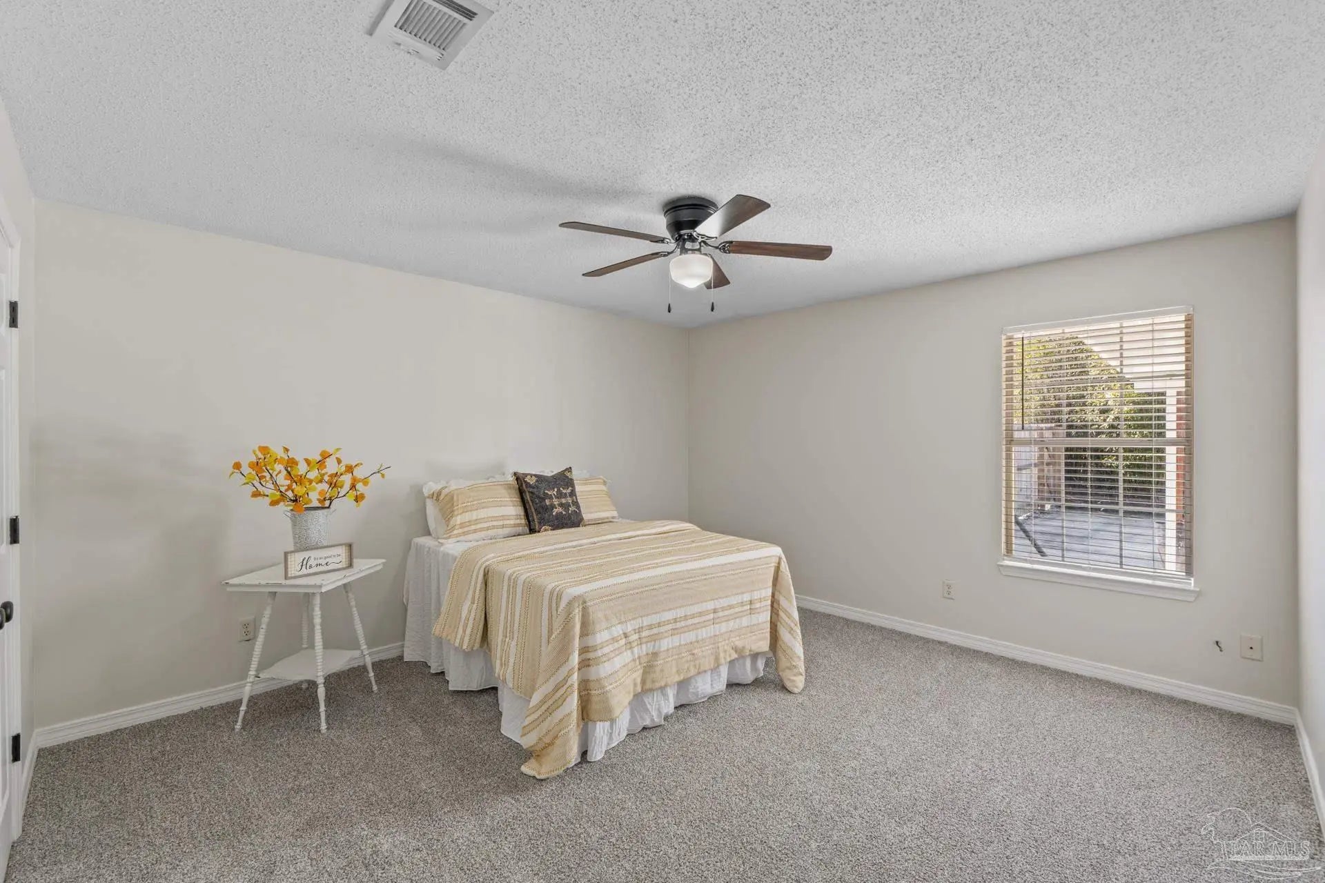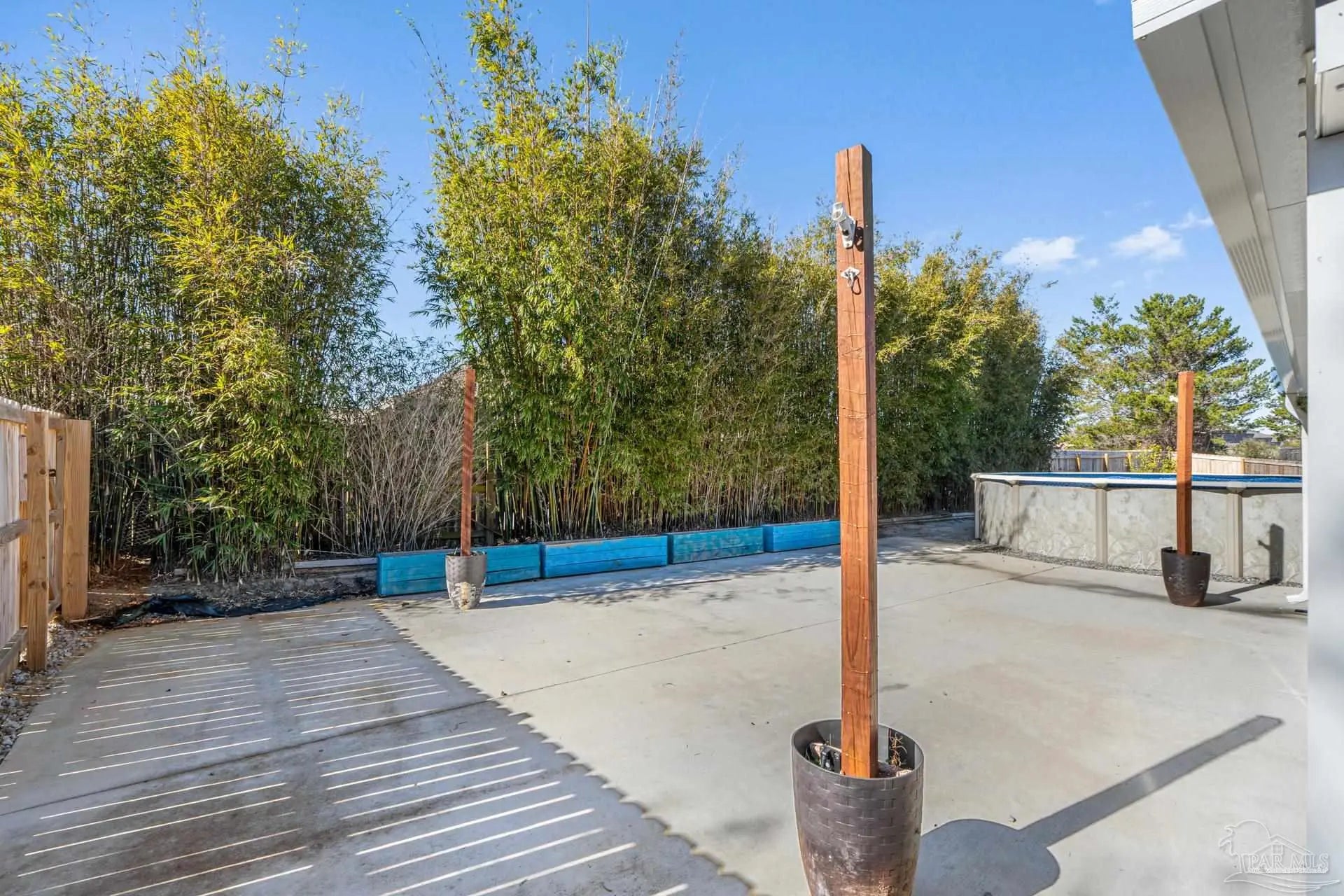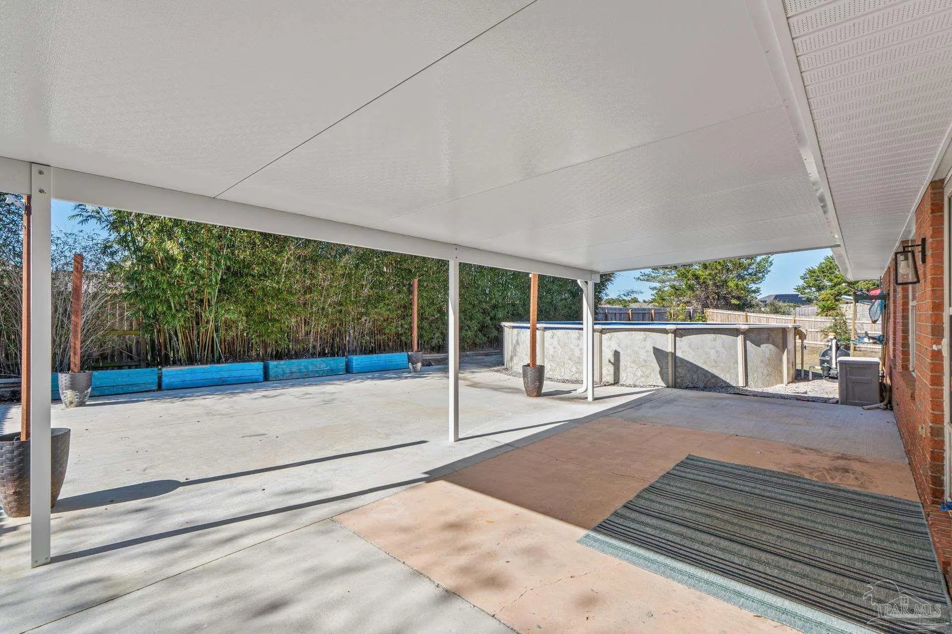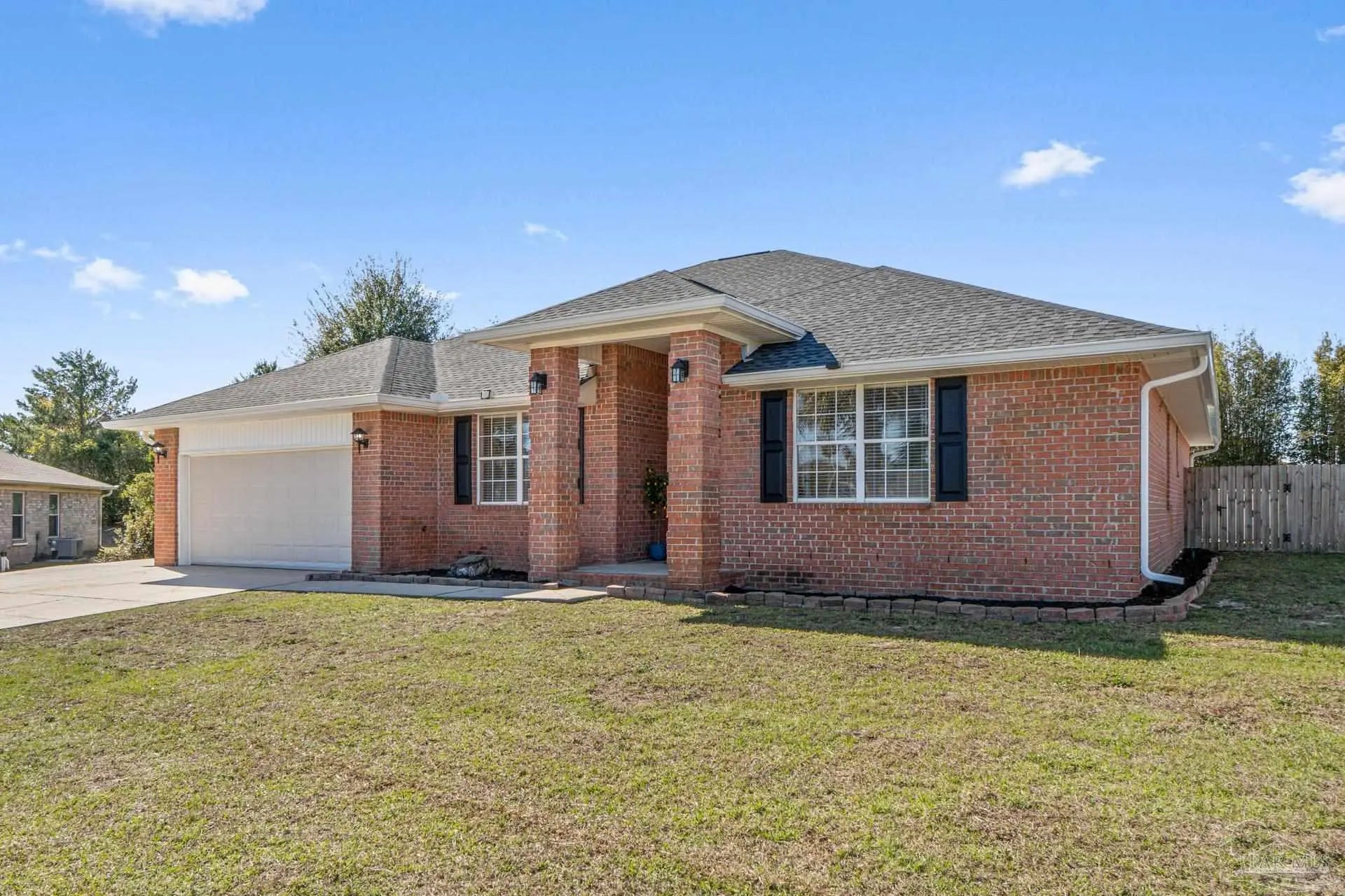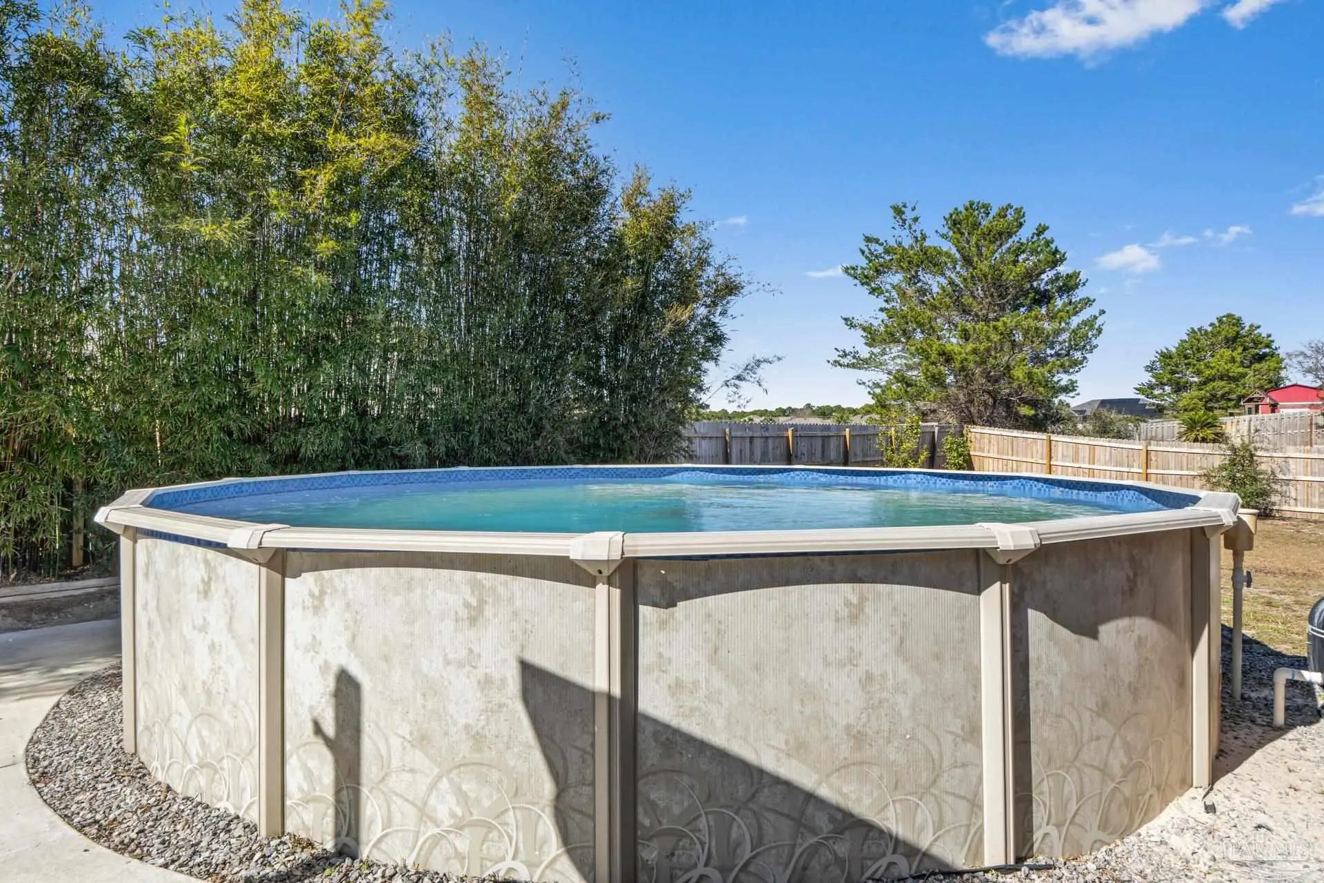 Welcome to this beautifully maintained four-bedroom, three-bathroom home located in the desirable Quayside Village community of Gulf Breeze, conveniently close to local amenities and the water. This thoughtfully designed home offers a spacious and versatile floor plan, featuring a private guest suite with its own bathroom, a den ideal for a home office, and a formal dining room perfect for entertaining. The open concept layout is complemented by oversized closets throughout, providing both comfort and functionality. Situated on nearly half an acre, the property offers ample space for a boat or RV, along with an additional parking pad for recreational vehicles. The kitchen is equipped with custom soft close cabinetry, Uba Tuba granite countertops, stainless steel appliances, and travertine tile flooring. Granite countertops extend into the bathrooms, adding a cohesive and upscale touch throughout the home. Step outside to an exceptionally large backyard featuring a covered patio and an above ground swimming pool, ideal for outdoor living and entertaining. Bamboo landscaping enhances privacy, and the fully fenced yard provides both security and seclusion.Additional highlights include no HOA fees, a brand new Soundside High School opening in 2026, a new roof installed in April 2025, and a newer HVAC system installed in 2024. Fresh carpet and newly painted walls make this home truly move in ready.