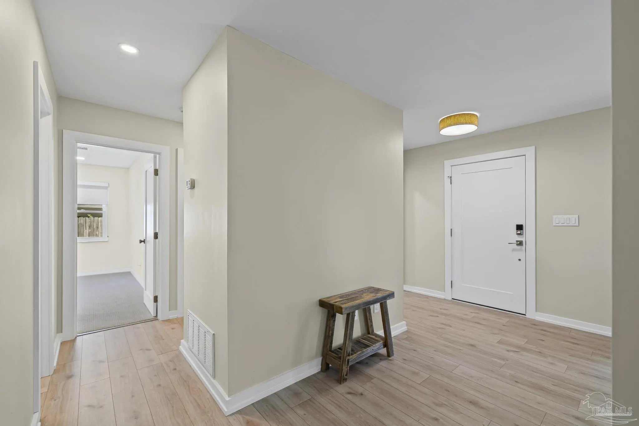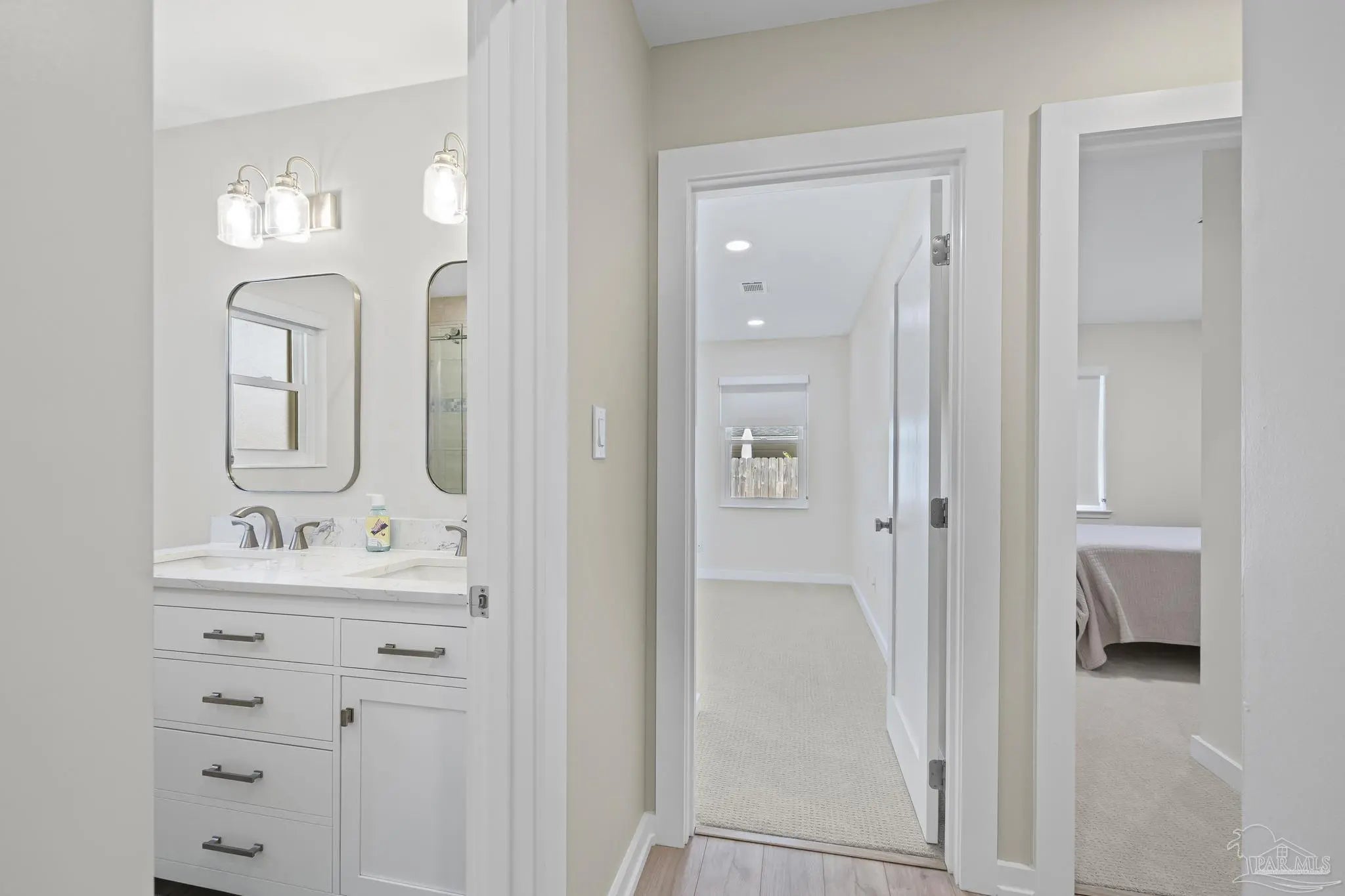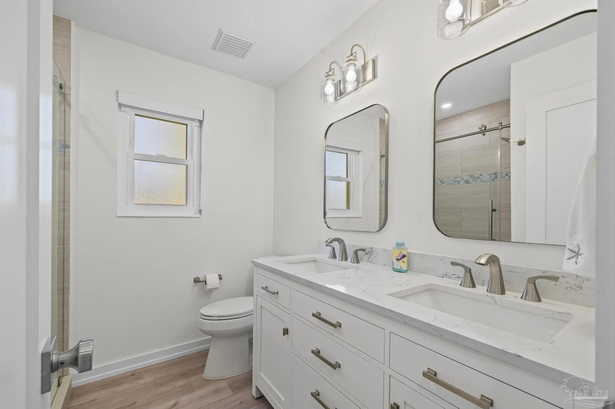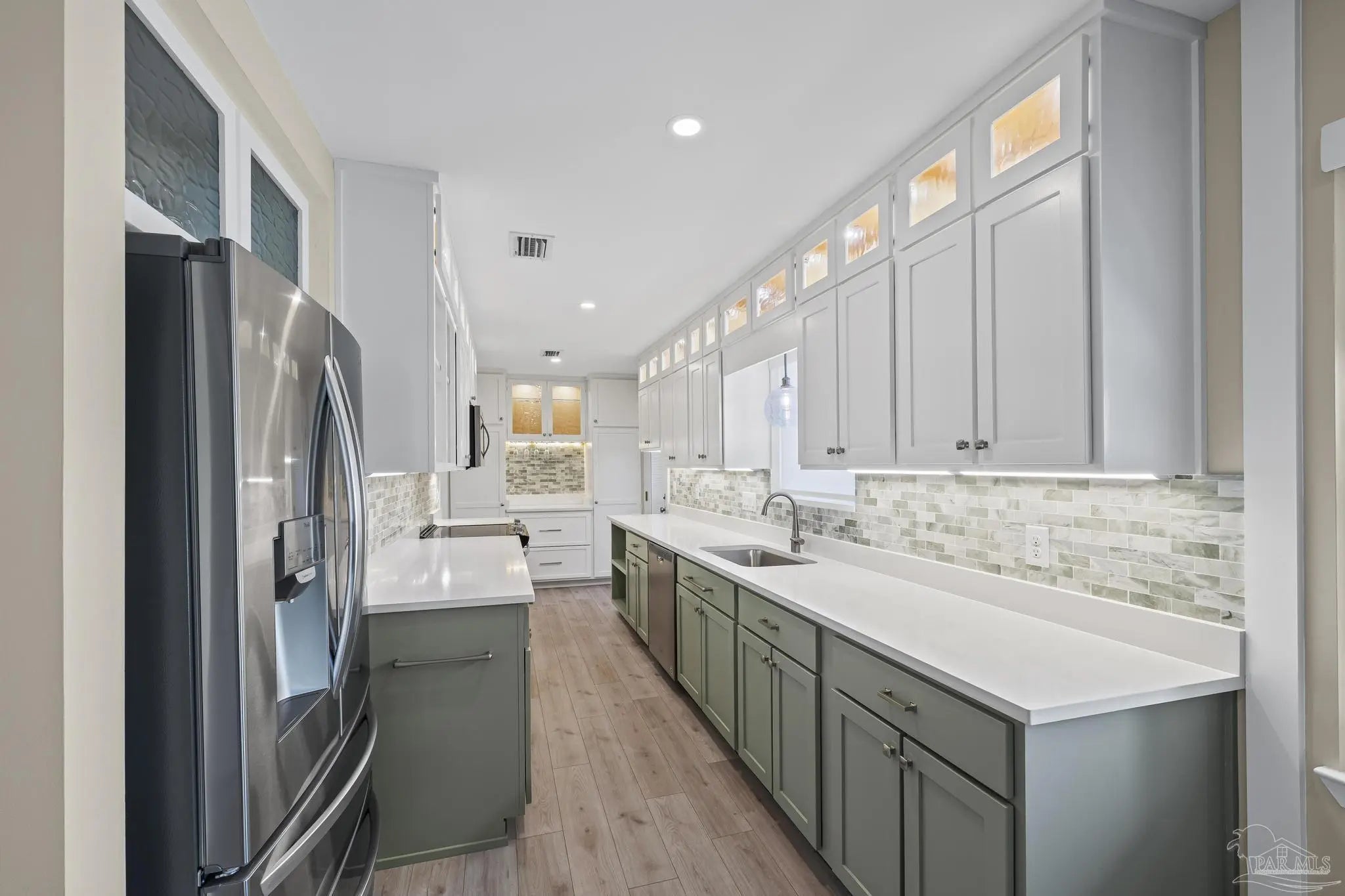 Conveniently located in Gulf Breeze Proper this home offers an immaculate, bright,and neutral interior that is truly move-in ready. Enjoy the welcoming open living and dining room with a fireplace just off the entry, perfect for both everyday living and entertaining. All bathrooms renovated, all closets have customs shelving, new driveway and walkway, new fencing, new carpet and LVP flooring throughout, new garage door, new doors and trim, new refrigerator and oven, new backsplash, counters in kitchen, recessed lighting throughout, and all NEW WINDOWS IMPACT RATED. ROOF 2021, HVAC 2021, WATER HEATER 2020.The custom kitchen features abundant solid wood cabinetry, quartz countertops, a classic tile backsplash, dimmable lighting, and stainless steel appliances, offering both functionality and timeless appeal. The primary suite, located near the front of the home, easily accommodates a king-sized bed with plenty of space to move comfortably. The en-suite bathroom includes a remodeled shower and a generous walk-in closet, creating a relaxing private retreat. Additional bedrooms and a full bathroom are situated down their own dedicated hallway, providing privacy and comfortable accommodations. All custom designed closets. The entire interior has been refreshed with a fresh coat of paint, including the front door and shutters, enhancing the home’s clean, well-maintained feel. Outdoors, the spacious backyard features an open brick patio and plenty of room for a pool, playhouse, garden, or yard building.This home is convenient to top-rated Gulf Breeze schools, Shoreline Park boat ramp and dog park, Pensacola Beach, local restaurants and shopping, and the Gulf Breeze Sports Complex and Community Center, which offers parks, playgrounds, and tennis and pickleball courts.All major systems are newer and well within insurance guidelines, providing peace of mind.This home delivers an ideal blend of location, lifestyle, and livability in one of Gulf Breeze’s most desirable areas.