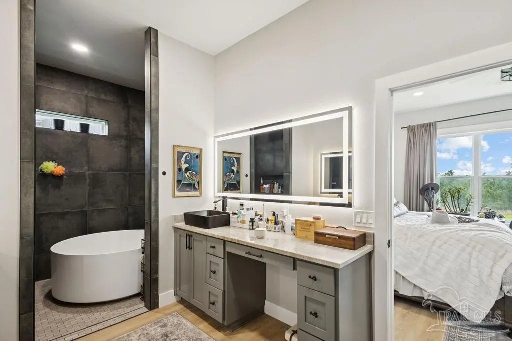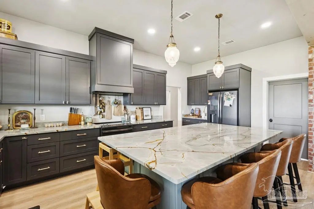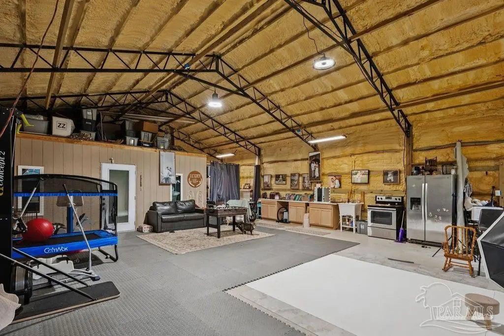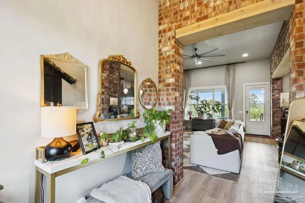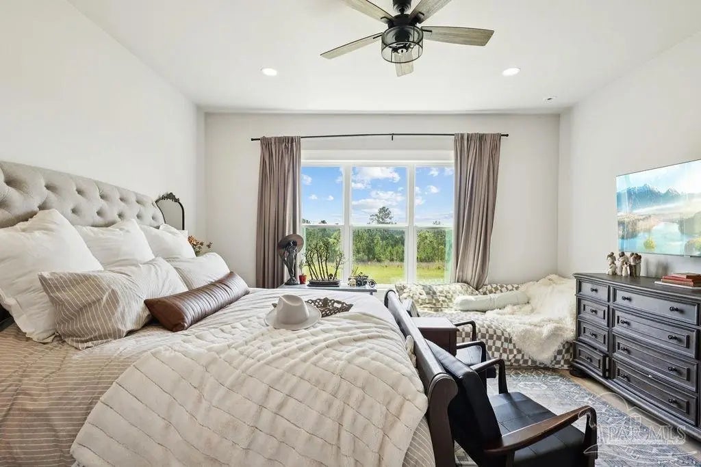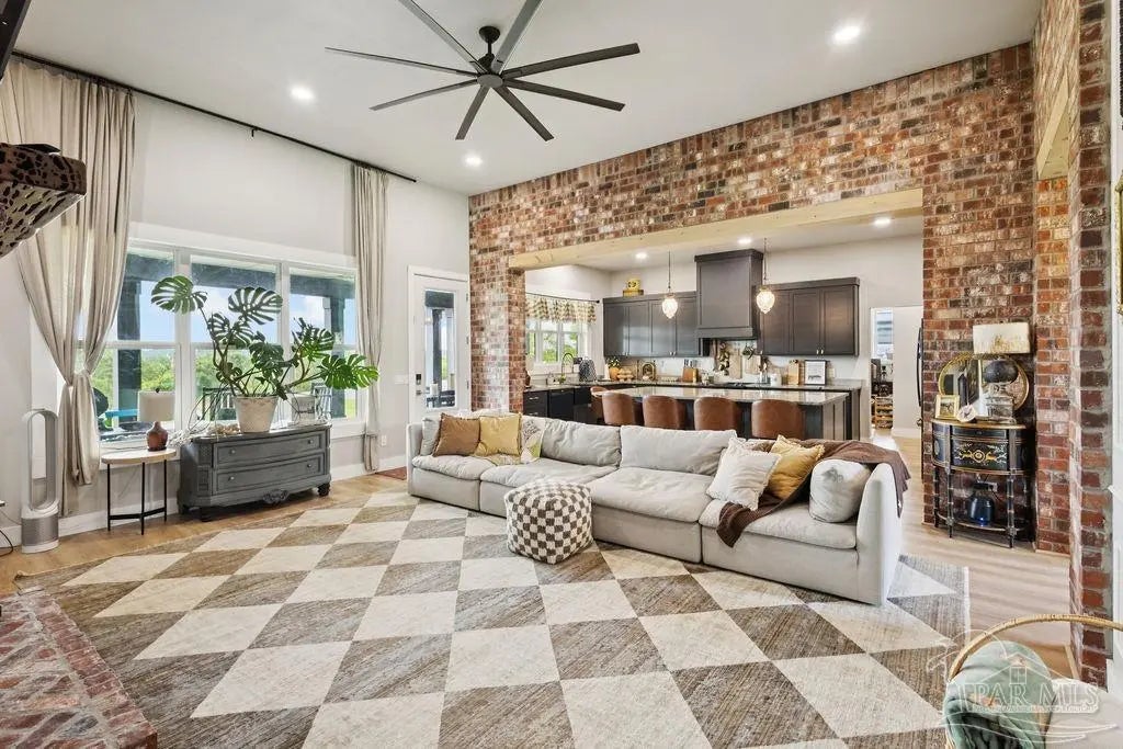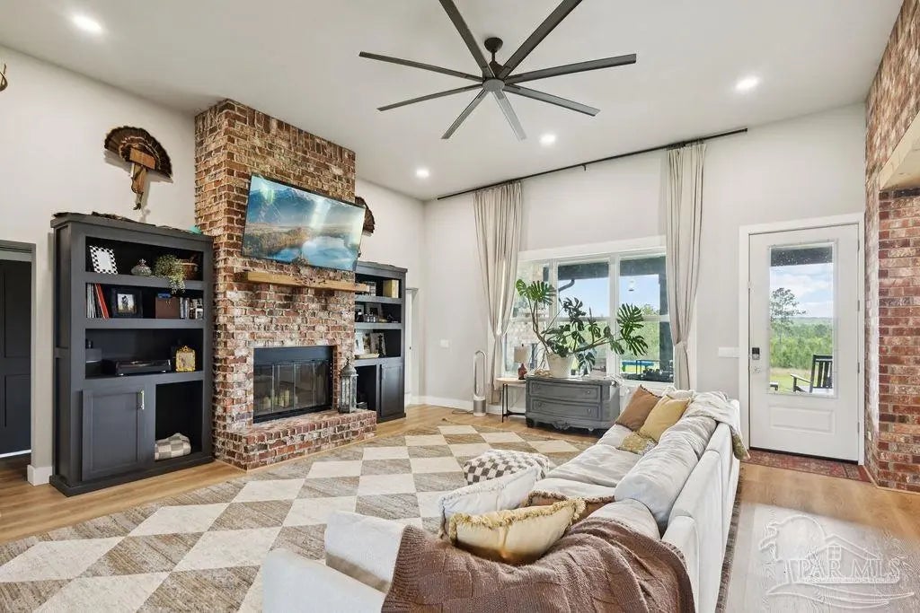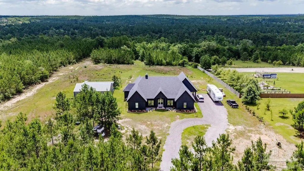 Custom-Built Home on 5 Acres in the Prestigious Buffalo Ridge Community Experience the perfect blend of elegance, functionality, and tranquility in this custom-built home nestled on 5 pristine acres in the sought-after Buffalo Ridge community—just minutes from the heart of Pace, FL. Designed for both everyday comfort and elevated living, this thoughtfully crafted residence is surrounded by sweeping views that provide a true sense of privacy and peace. Inside, you’ll find refined finishes including striking Quartzite countertops, timeless brick accents, and a cozy wood-burning fireplace that anchors the main living area. Step out to the expansive covered back porch—complete with its own wood-burning fireplace—and enjoy outdoor living year-round with unforgettable views as your backdrop. The flexible floorplan includes four spacious bedrooms plus a fifth room with a closet, perfect for a home office, nursery, or formal dining space depending on your needs. The luxurious primary suite features a spa-inspired bathroom with a statement soaking tub that must be seen to be appreciated with tankless hot water heater. A standout feature of the property is the 1,200 sq. ft. fully enclosed 40x42 and heated/cooled barn, currently used as a professional photography studio. Outfitted with spray foam insulation, a tankless water heater, full kitchen, washer & dryer hookup, automatic roll-up door, and a private bedroom, this versatile space could serve as a guest house, income-producing rental, hobby studio, home gym, or an exceptional workshop. Whether you’re dreaming of space for creative pursuits, multi-generational living, or simply more room to enjoy the outdoors—this property delivers. Schedule your private showing today and come discover the lifestyle that awaits