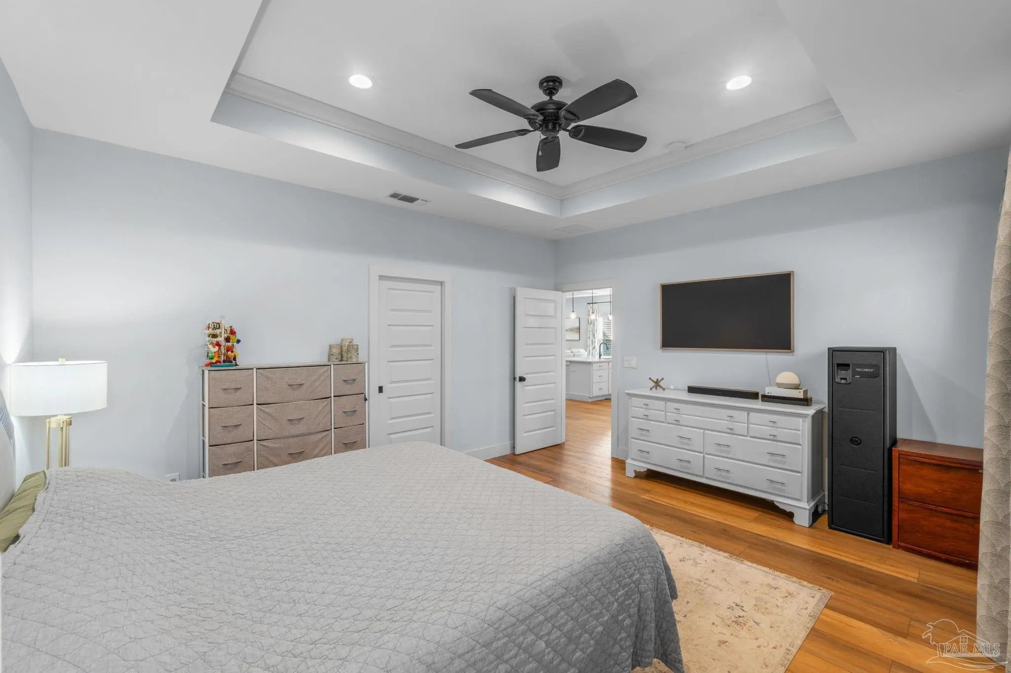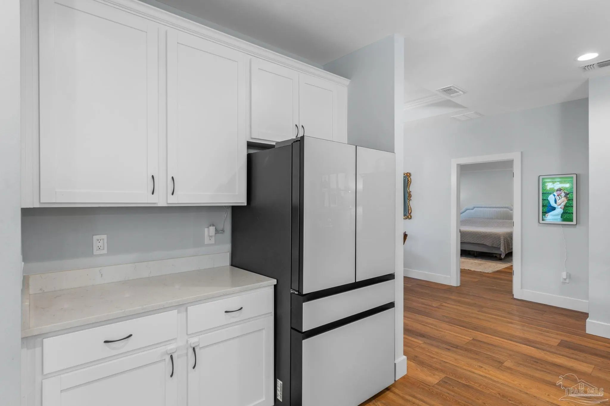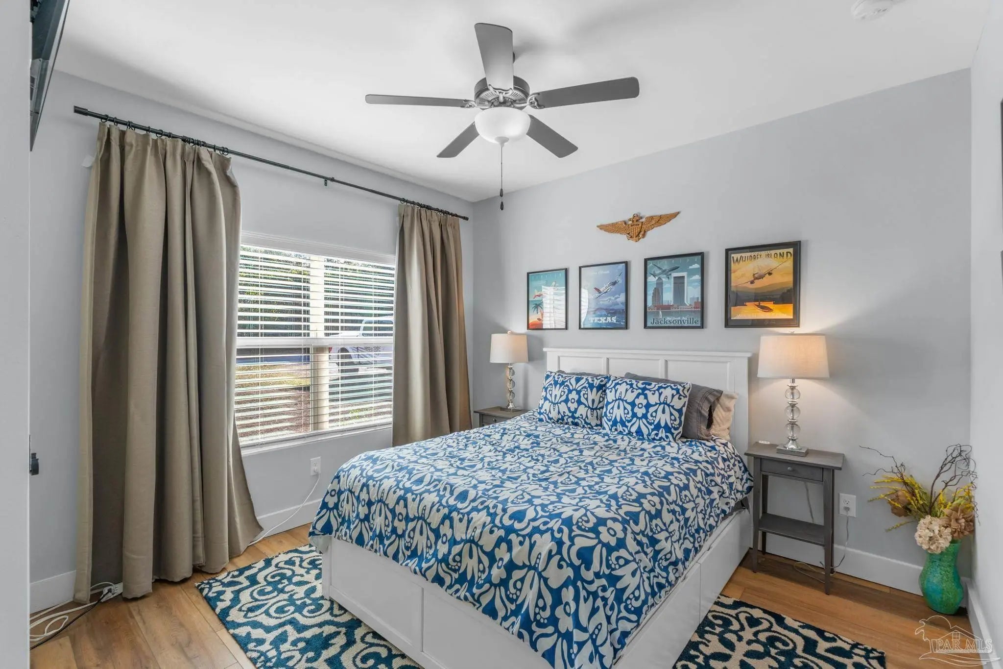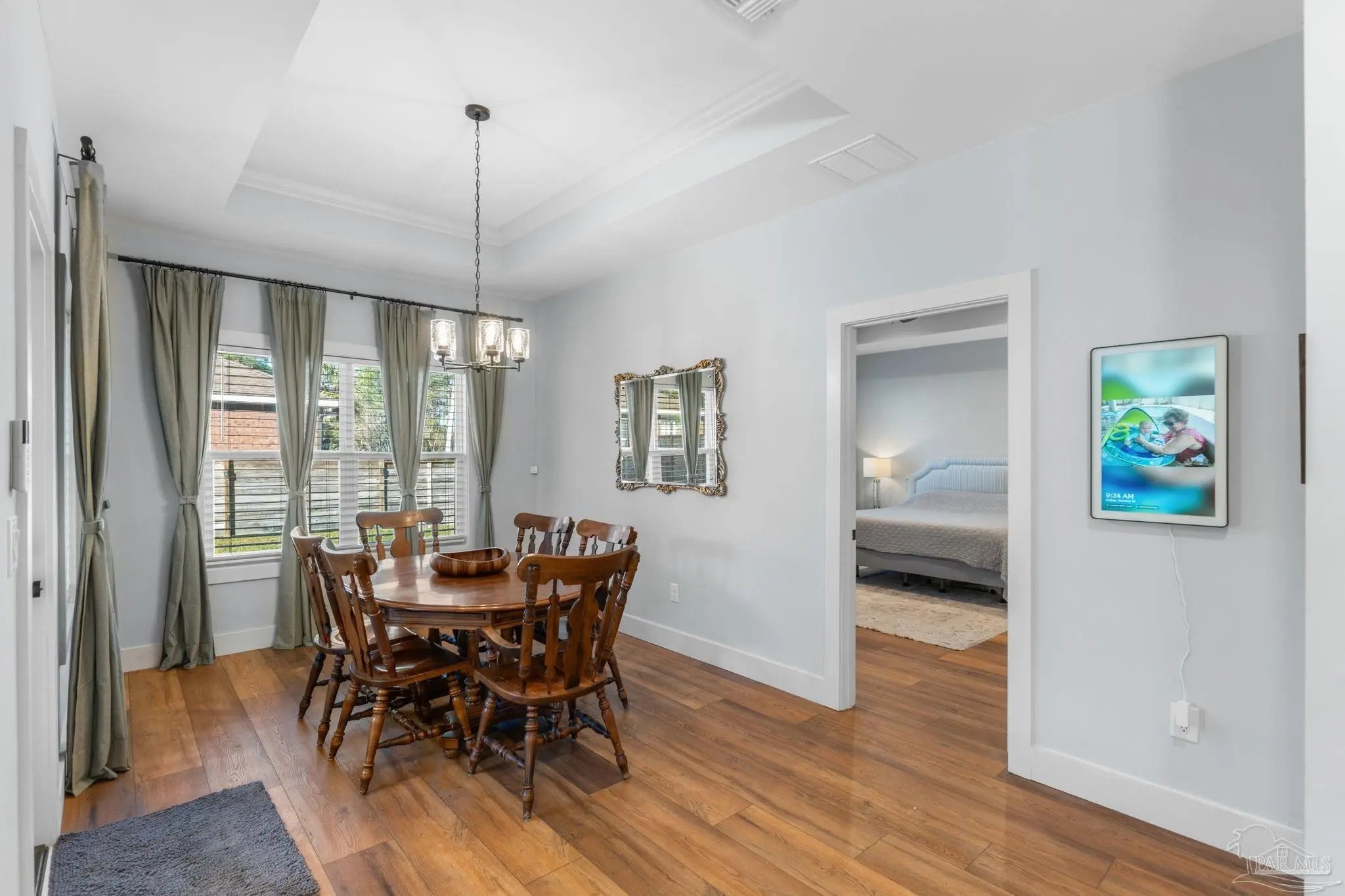Experience modern luxury in this stunning 4-bedroom, 2-bathroom residence built in 2022, situated on a spacious corner lot in the heart of Midway/Gulf Breeze. Offering maximum flexibility with NO HOA and no rental restrictions, this home is perfect for primary residence or investment. The open-concept interior impresses with 9’ ceilings, 10’ tray accents, and durable luxury vinyl plank flooring throughout—no carpet! The chef-inspired kitchen features white shaker-style soft-close cabinetry, premium quartz countertops, a massive island with pendant lighting, and Whirlpool stainless appliance suite. Retreat to the primary suite featuring a spa-like ensuite with a large tiled shower, double quartz vanity, and a generous walk-in closet. Step outside to a covered back porch with a coffered ceiling, overlooking a fully fenced backyard equipped with a sprinkler system and private well. Notable upgrades include a finished garage with epoxy floors, Fabric Shield hurricane protection, a Sentricon termite system, and gutters around the entire home. Conveniently located near the upcoming Soundside high school and walking distance to a local county park, with easy access to both Navarre and Pensacola beaches. Schedule your private tour today!