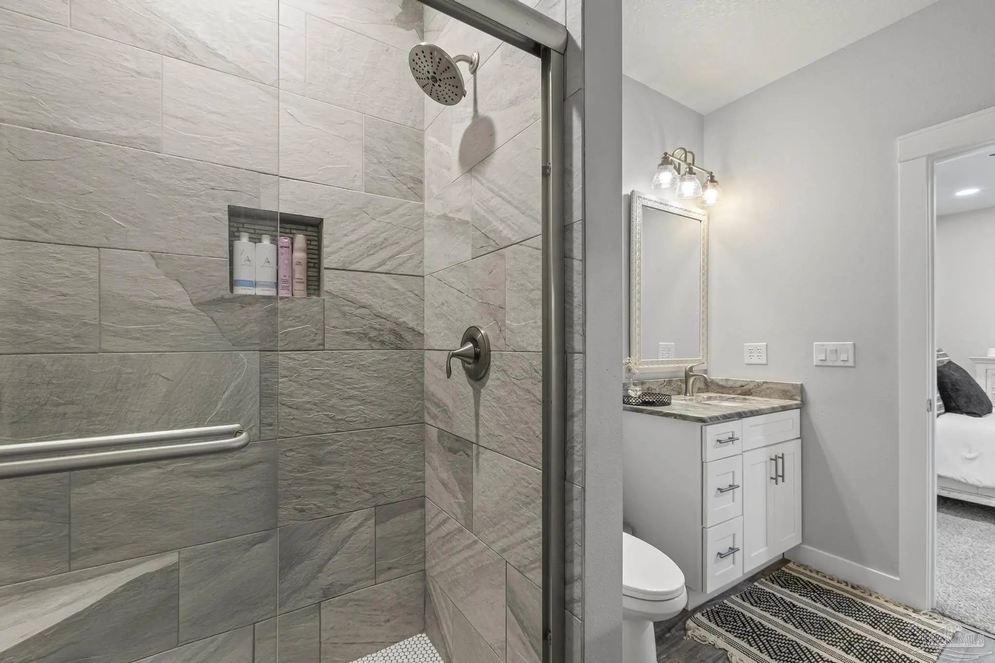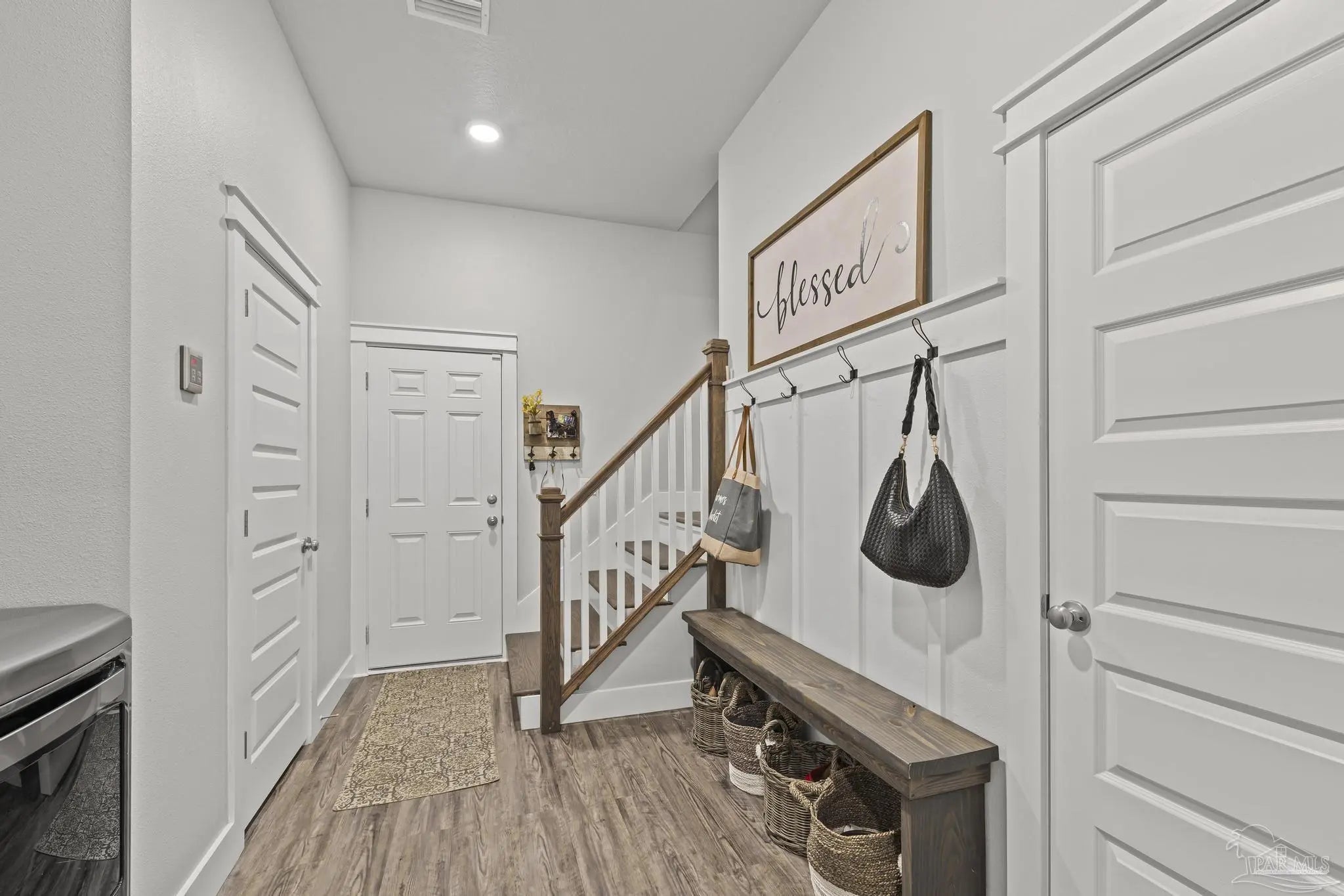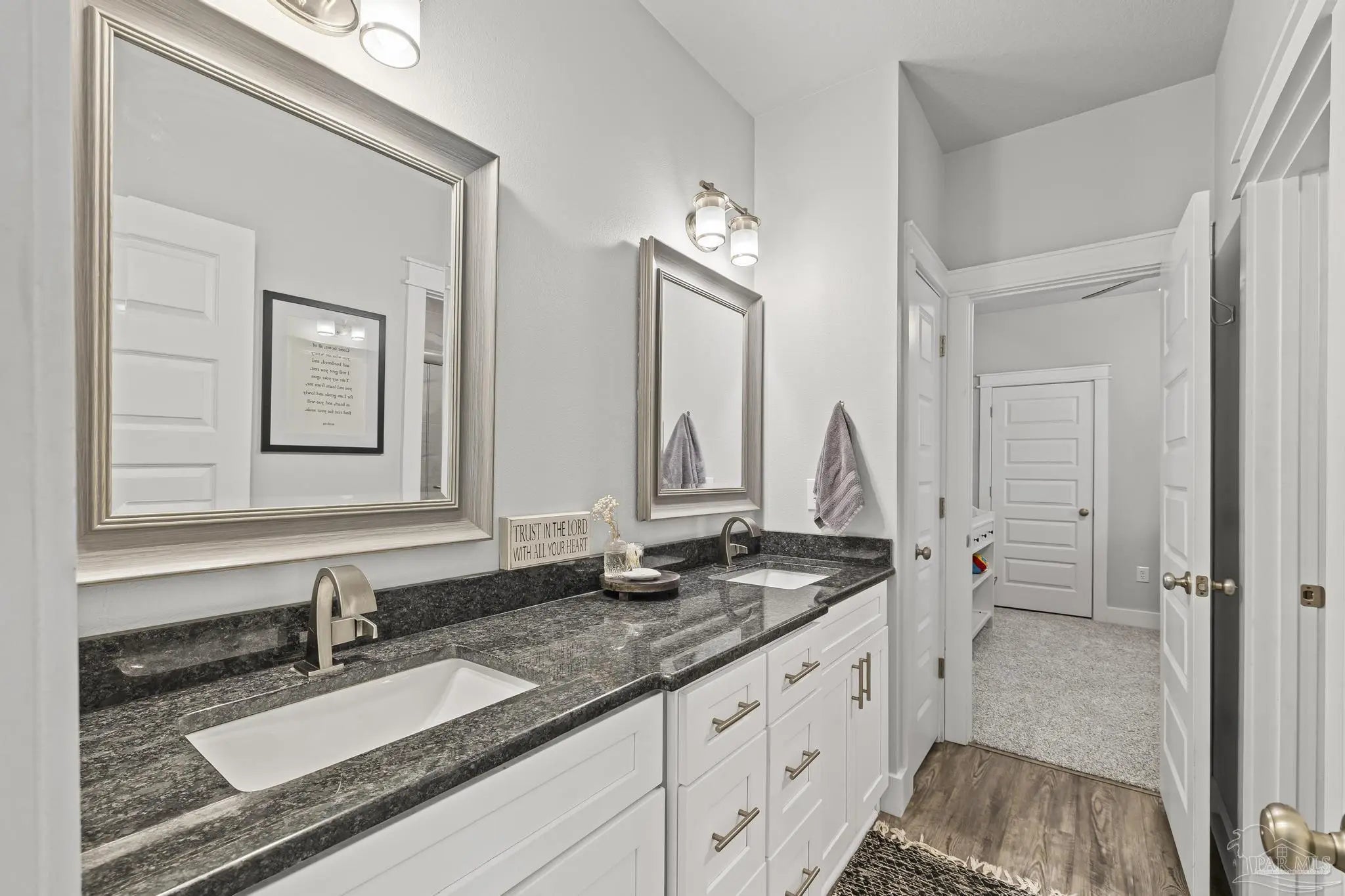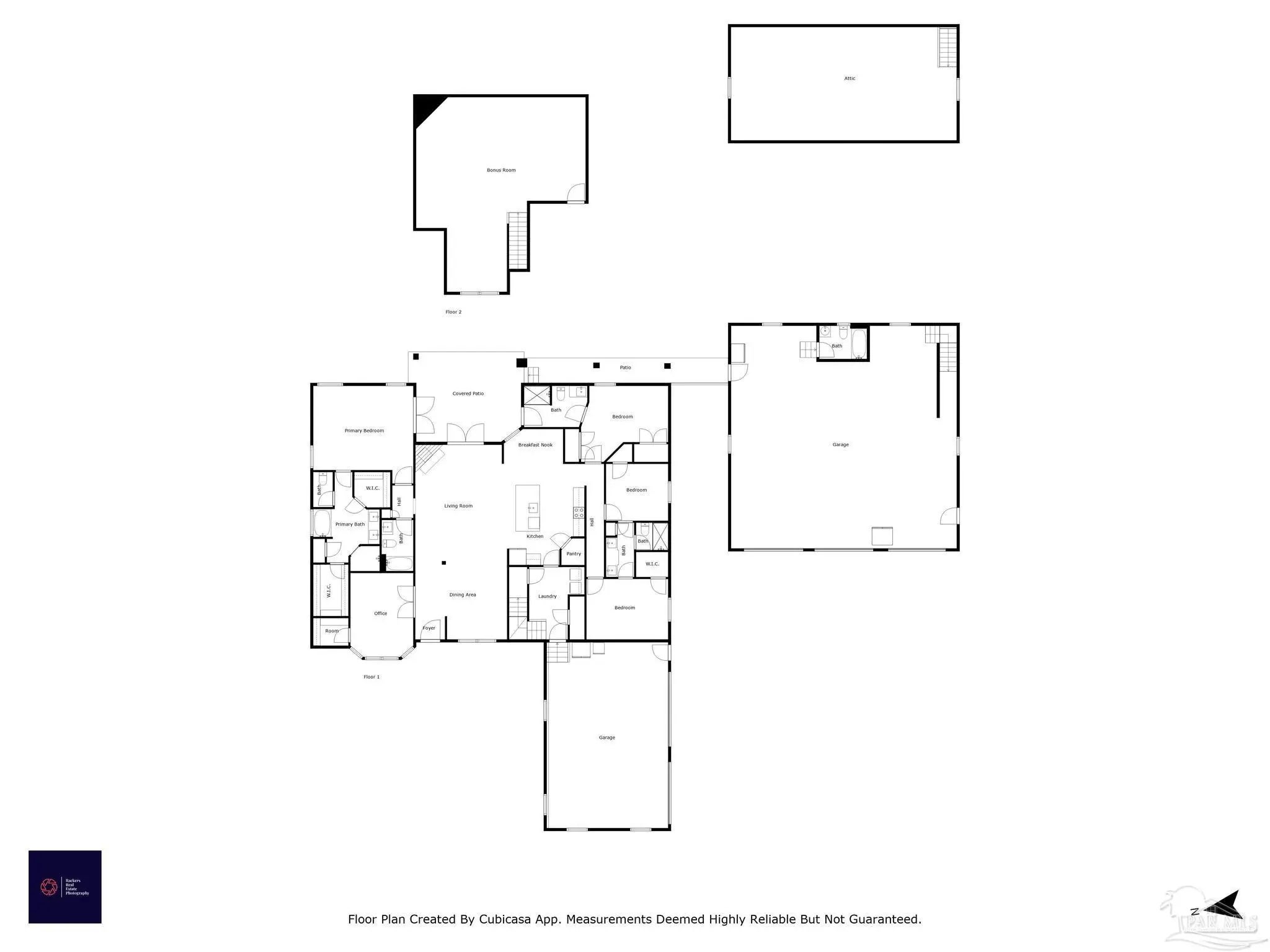 Looking for a home with land? This one is it! This 3,500 sq ft brick home, built in 2019, sits on 1.4 acres across from the bay with no HOA and plenty of indoor space to entertain. The property includes a 6-car garage setup—an attached climate-controlled 3-car garage and a detached 3-car garage with full bath, ample space for multigenerational living. Inside, you'll find an open-concept floor plan with LVP flooring in main living areas, new carpet in all bedrooms, granite in the kitchen and baths, stainless steel appliances, walk in pantry, tankless water heater and wood burning fireplace. The home offers 5 bedrooms and 5 and 1/2 baths, including two ensuites —both with direct access to the covered back porch. The primary ensuite has 2 oversized walk-in closets, a soaker tub, tiled walk-in shower, dual vanity, and linen closet. The two additional guest bedrooms share a connected bath, and the front room off the foyer can function as an office or bedroom with a full bath down the hall. A half bath is conveniently located in the laundry/mudroom area. Upstairs features a large loft and theater room with plenty of space for a pool table or game area. Outside, enjoy a privacy-fenced backyard, RV pad with full hookups, and ample parking for a boat, work trailers, or just extra toys. Fabric shield hurricane protection is included for peace of mind. If you have a lot of toys this is the home for you! Unlimited possibilities.