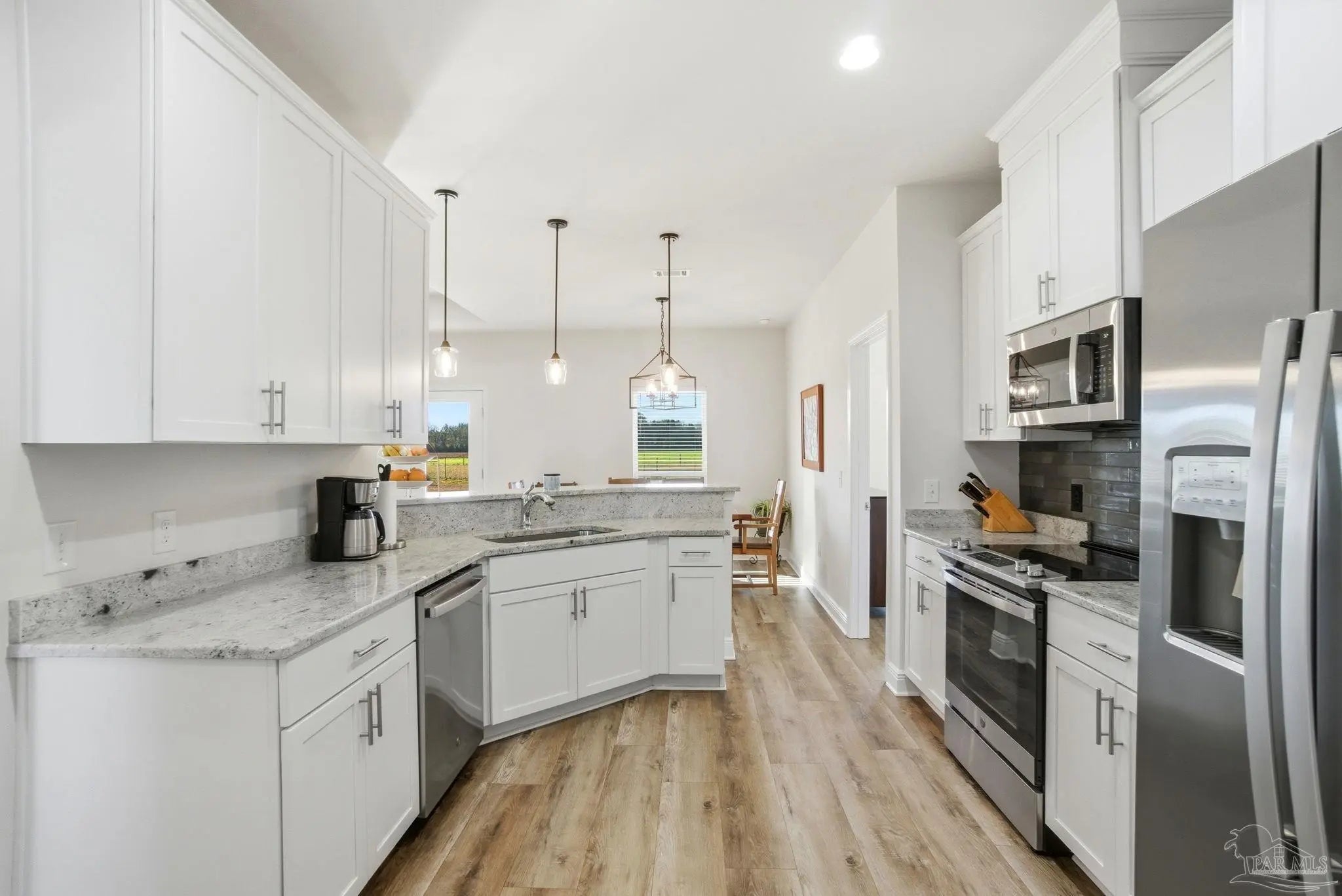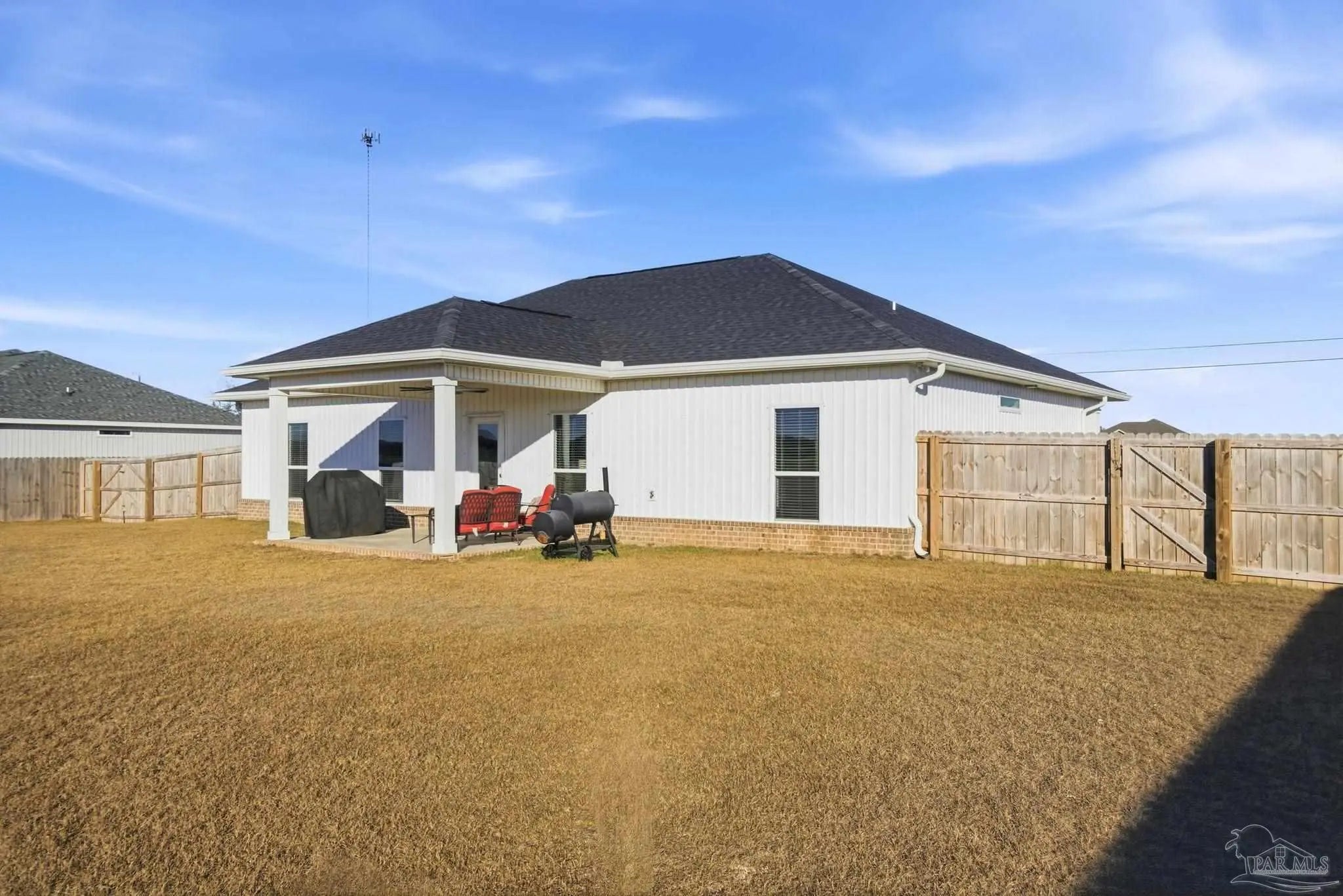 Country living with modern upgrades—just minutes from town. Built in 2024 and situated on a full acre, this move-in-ready home stands out with valuable upgrades already completed. Inside, you’ll find luxury vinyl plank flooring throughout (no carpet), ceiling fans in every room, custom blinds, a stylish tile backsplash, and GE stainless steel appliances—details you won’t find in comparable homes nearby. Outside, enjoy the added benefit of gutters already installed and approximately half an acre fenced, offering instant functionality for pets, play, or outdoor entertaining—saving you time and money. Located in a peaceful Pace setting while still close to shopping, schools, and everyday conveniences, this property also qualifies for USDA financing, making zero-down homeownership possible for eligible buyers. If you’re looking for space, privacy, and a thoughtfully upgraded home that’s truly move-in ready, this one delivers.