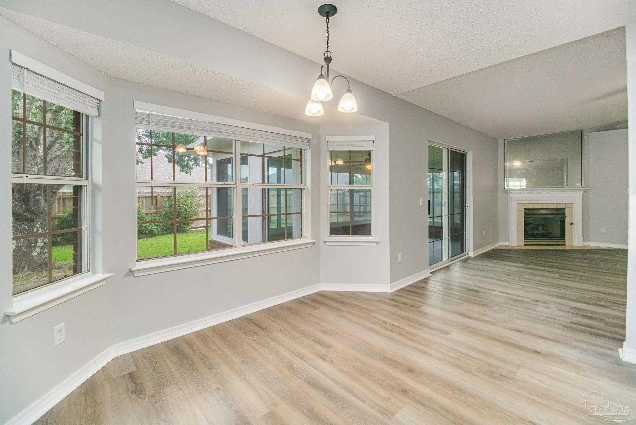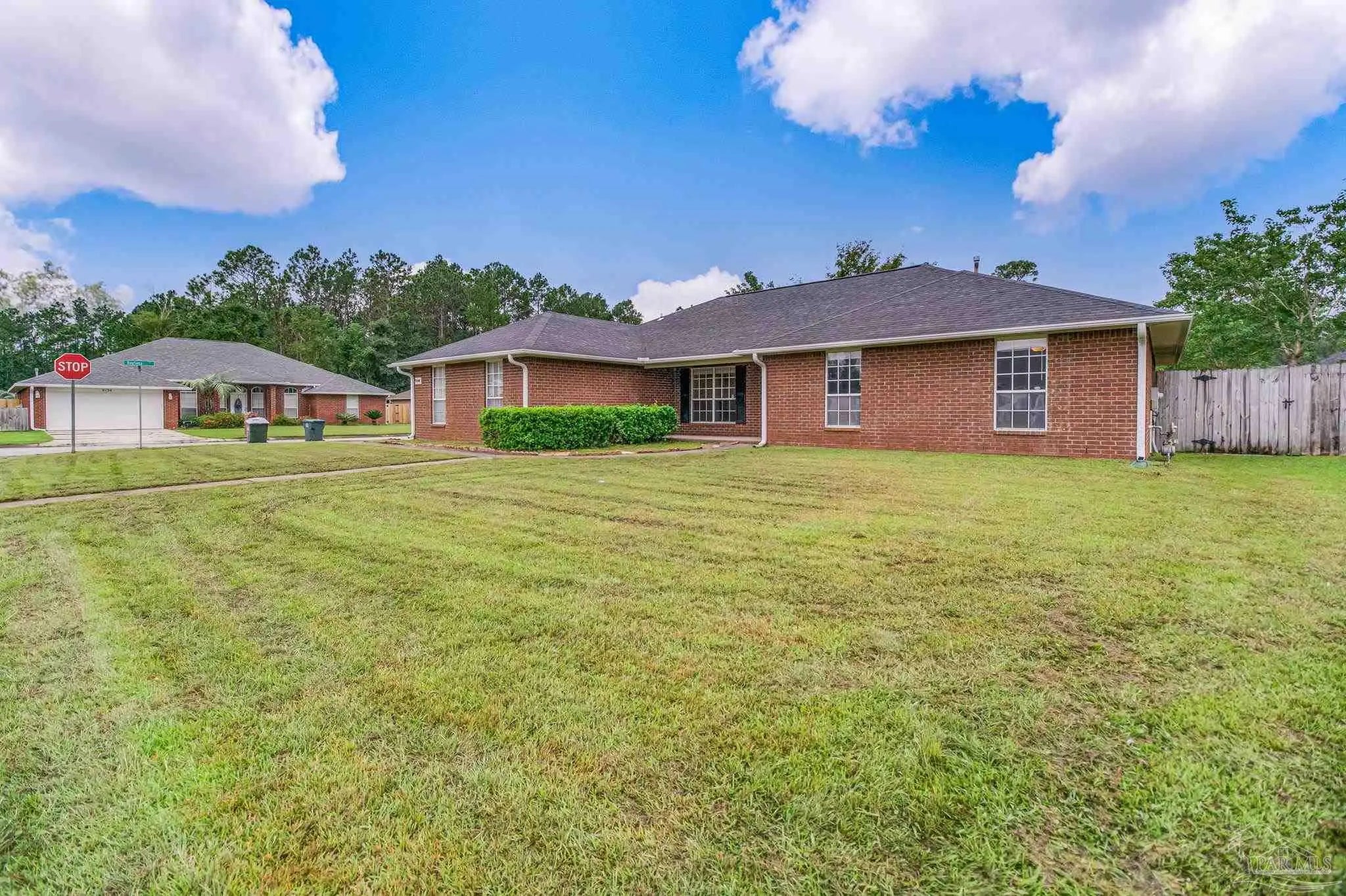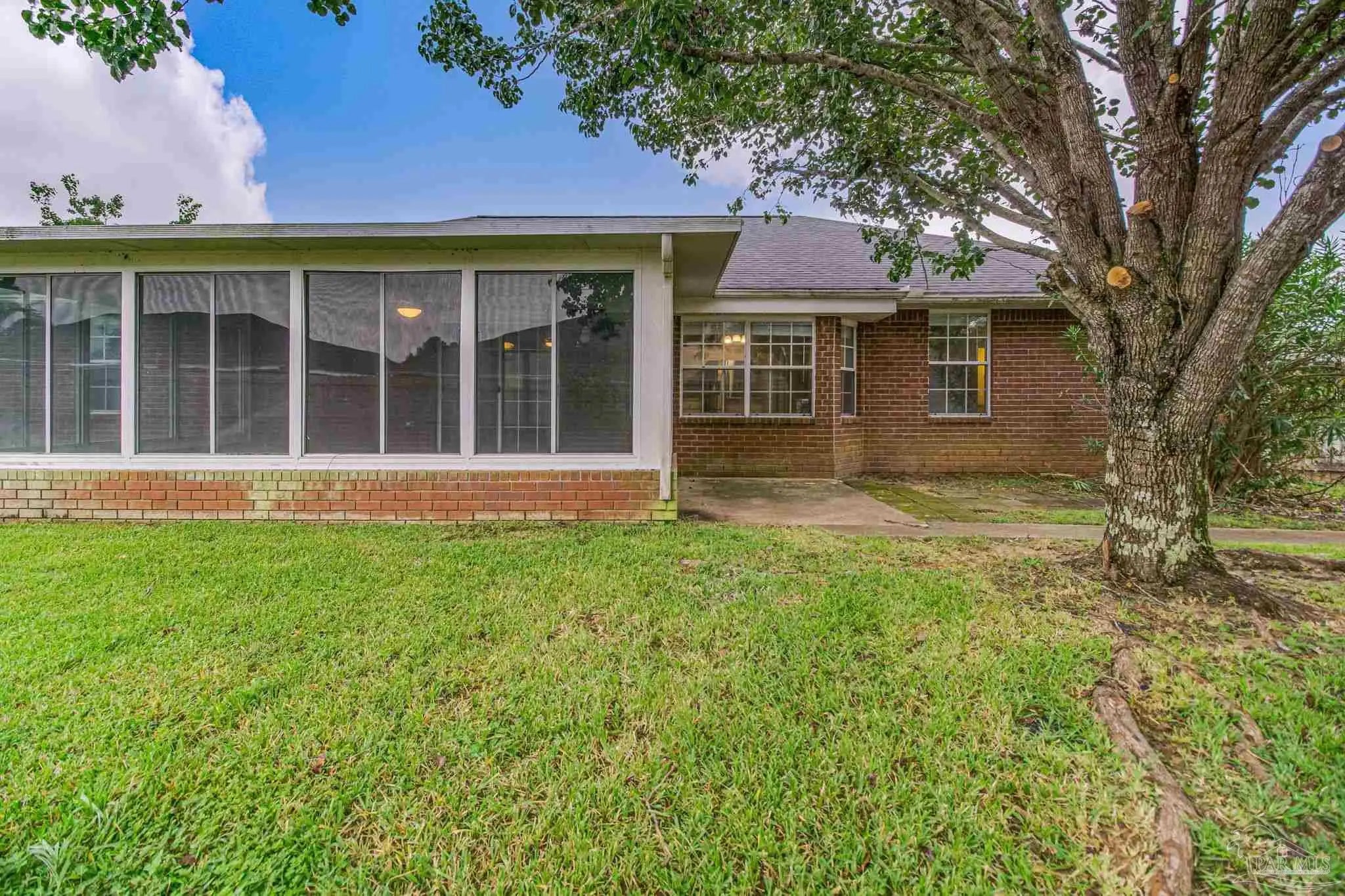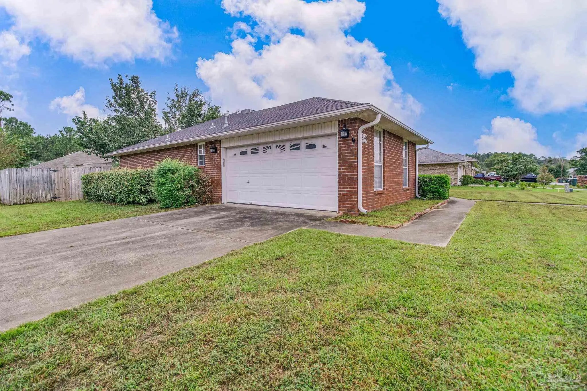 BRIGHT AND BEAUTIFUL HOME IN THE HIGHLY DESIREABLE LILLIAN WOODS SUBDIVISION! This 3 bedroom 2 bath home is conveniently located to NAS Pensacola and the Perdido Key beaches. An inviting front porch welcomes you into an open floor plan brick home with vaulted ceilings and oversized windows for lots of natural light. This home features new luxury vinyl plank flooring throughout the whole house. There is a bonus room that could be used as an office space or playroom as you enter the house. The upgraded kitchen features new Silver Fantasy granite, new stainless appliances, pantry storage & eat-in dining! The dining area opens right off the kitchen and into the living area which features beautiful high ceilings. The living room is light and bright opening out to the large tiled Florida room. The backyard is fully fenced with a shed. The owner's suite is spacious with a dual sink vanity as well as a large soaker tub and separate shower. The shower will have a semi-frameless oil rubbed bronze shower door installed within the next few weeks. There are separate his and hers large walk-in closets! Two guest rooms & full guest bath. Indoor laundry/mud room features added storage. Attached 2 car garage. Did i mention the home has a 3 year oldroof and new ac unit.
