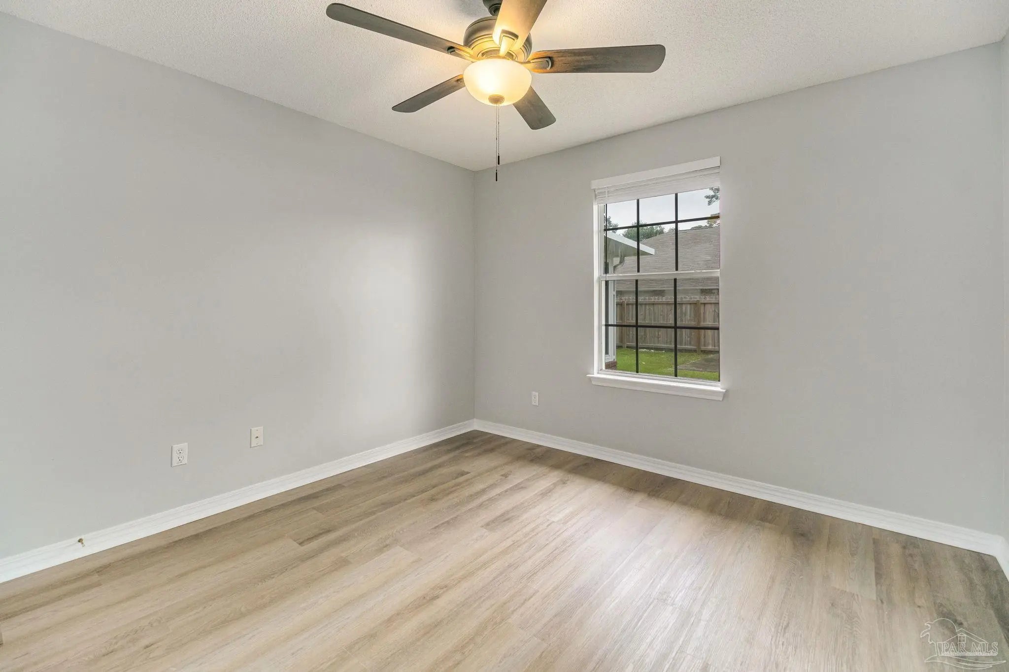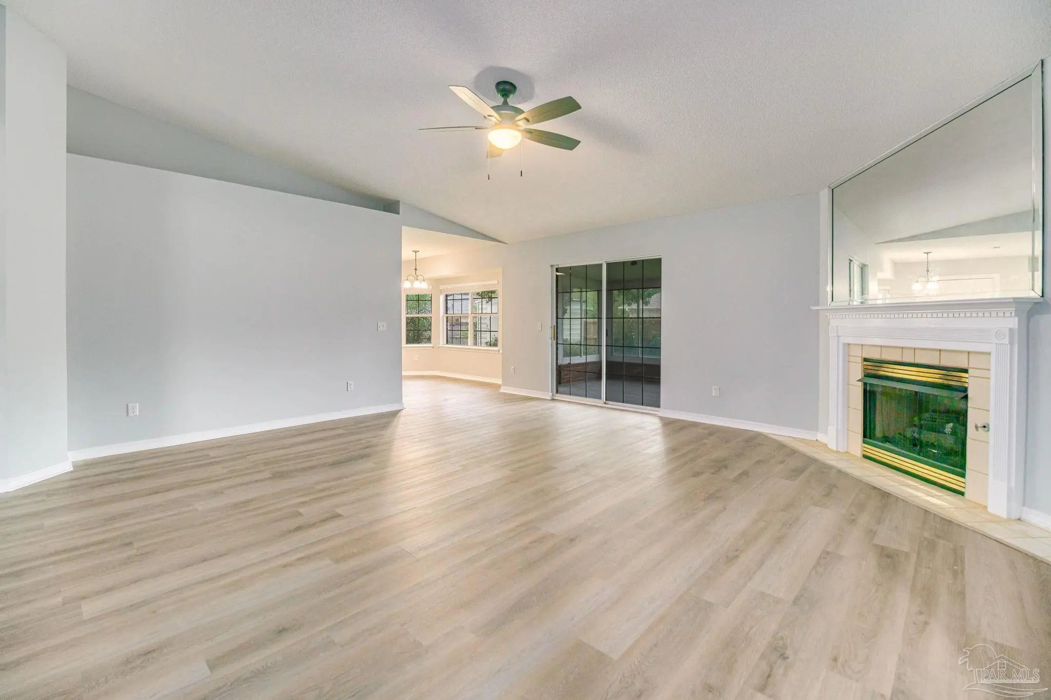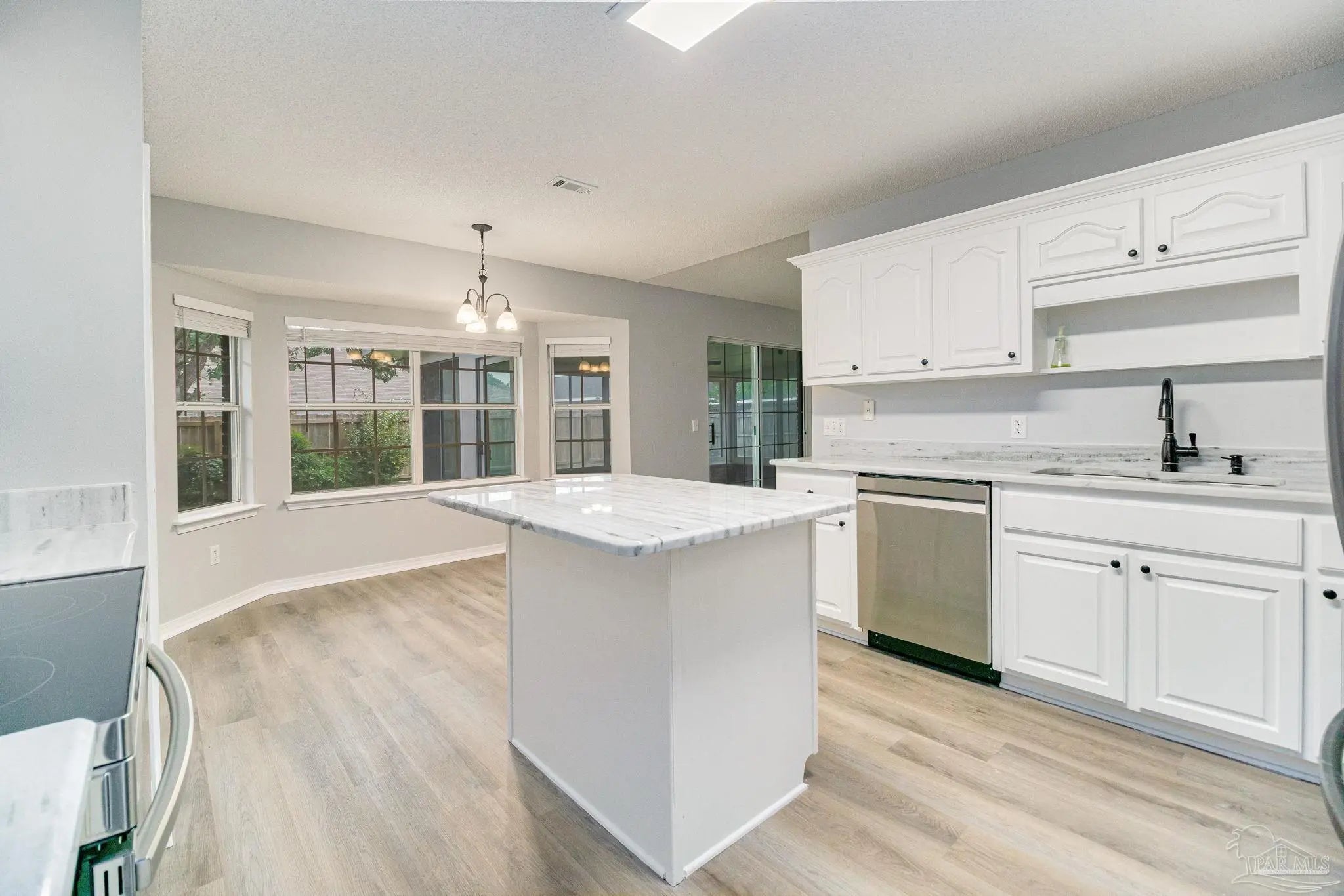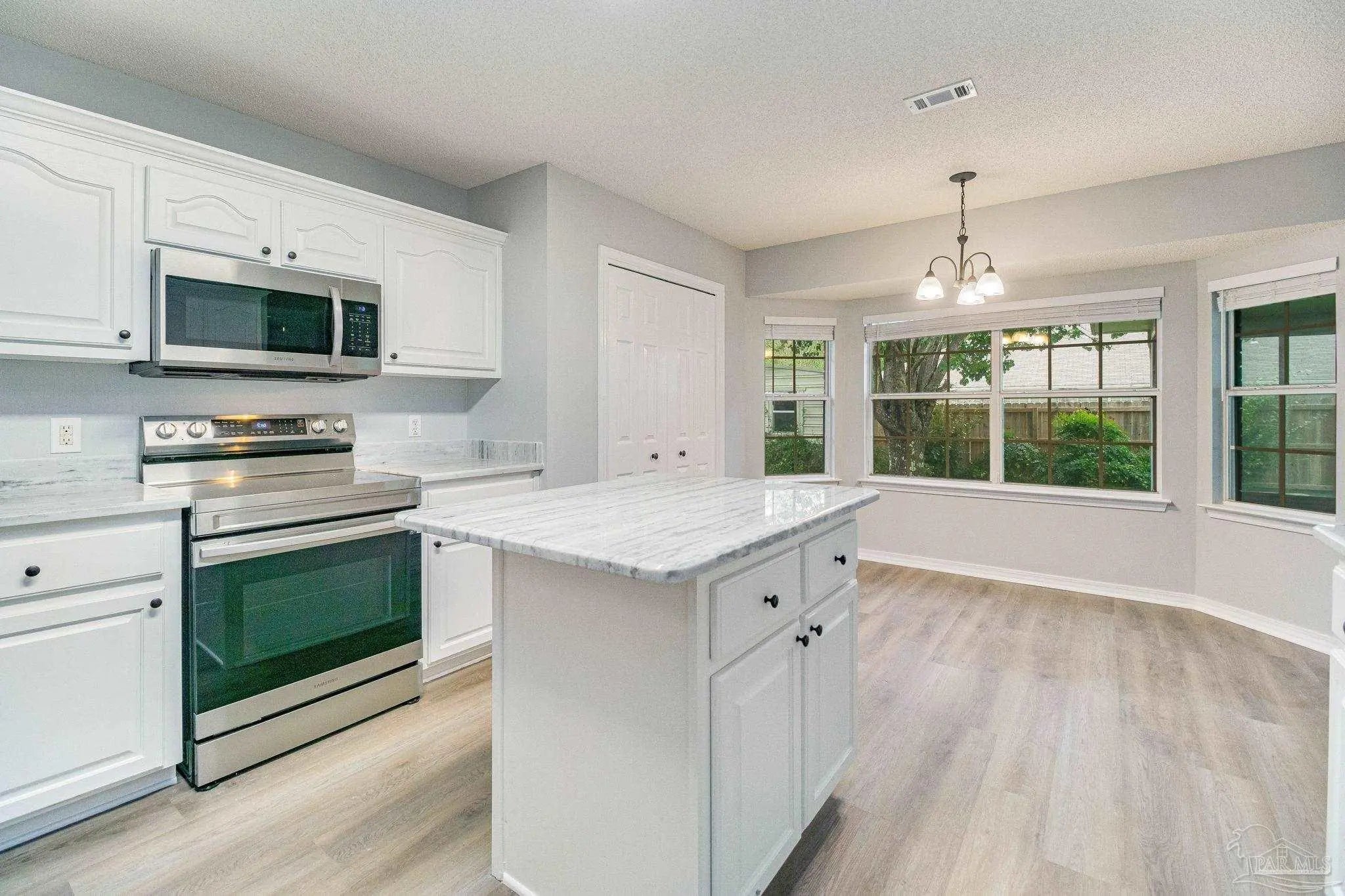 BRIGHT AND BEAUTIFUL HOME IN THE HIGHLY DESIREABLE LILLIAN WOODS SUBDIVISION! This 3 bedroom 2 bath home is conveniently located to NAS Pensacola and the Perdido Key beaches. An inviting front porch welcomes you into an open floor plan brick home with vaulted ceilings and oversized windows for lots of natural light. This home features new luxury vinyl plank flooring throughout the whole house. There is a bonus room that could be used as an office space or playroom as you enter the house. The upgraded kitchen features new Silver Fantasy granite, new stainless appliances, pantry storage & eat-in dining! The dining area opens right off the kitchen and into the living area which features beautiful high ceilings. The living room is light and bright opening out to the large tiled Florida room. The backyard is fully fenced with a shed. The owner's suite is spacious with a dual sink vanity as well as a large soaker tub and separate shower. The shower will have a semi-frameless oil rubbed bronze shower door installed within the next few weeks. There are separate his and hers large walk-in closets! Two guest rooms & full guest bath. Indoor laundry/mud room features added storage. Attached 2 car garage. Did i mention the home has a 3 year oldroof and new ac unit.