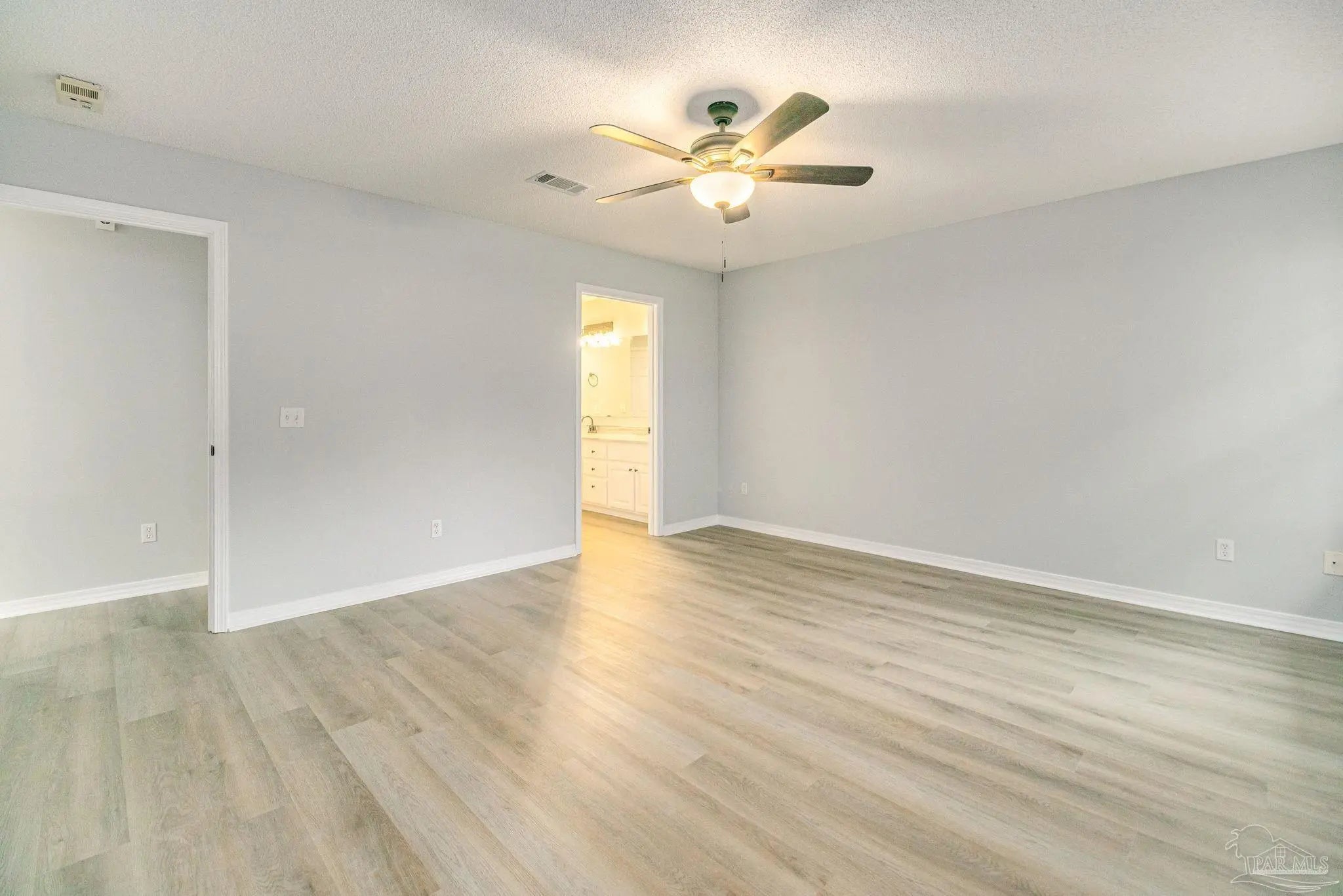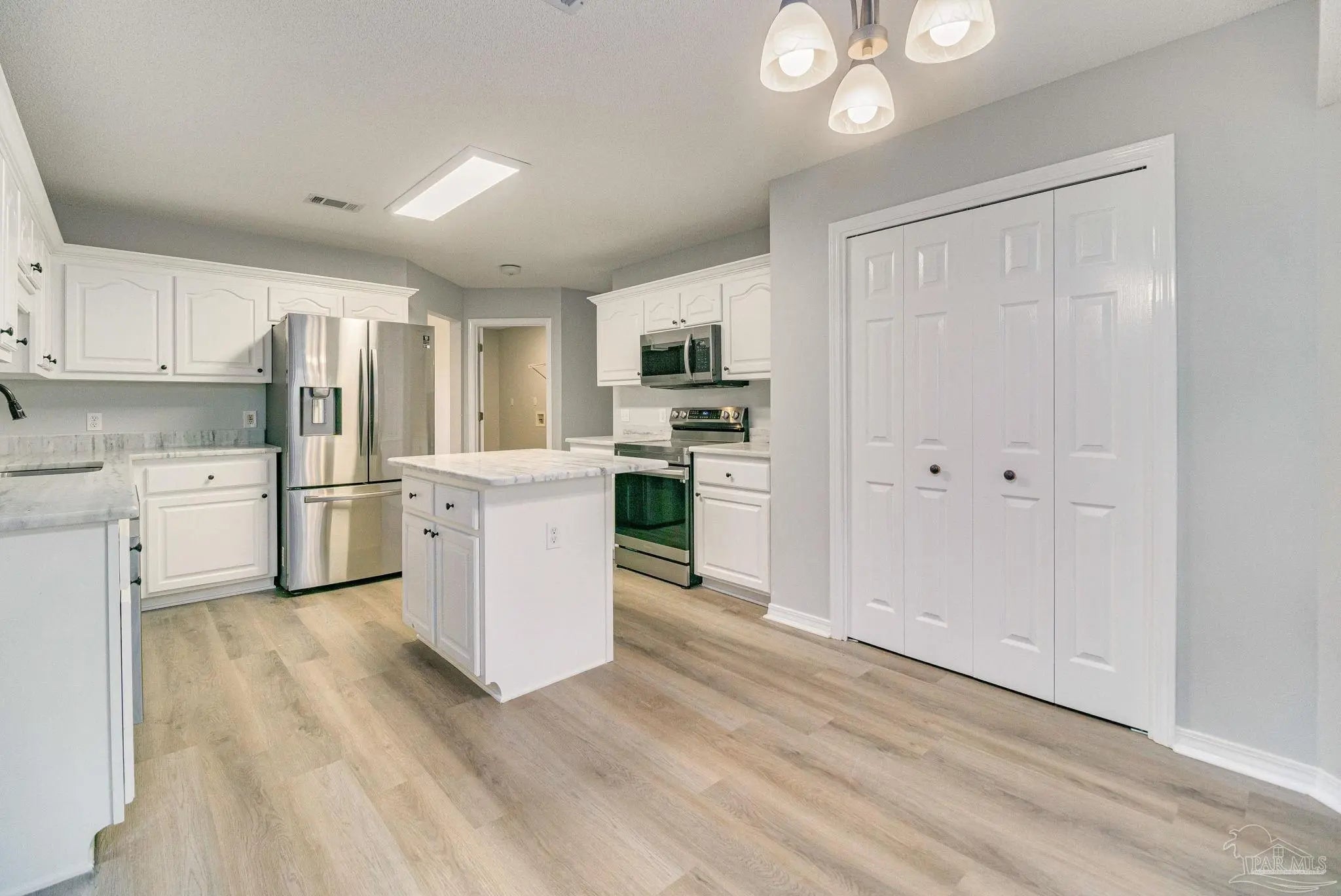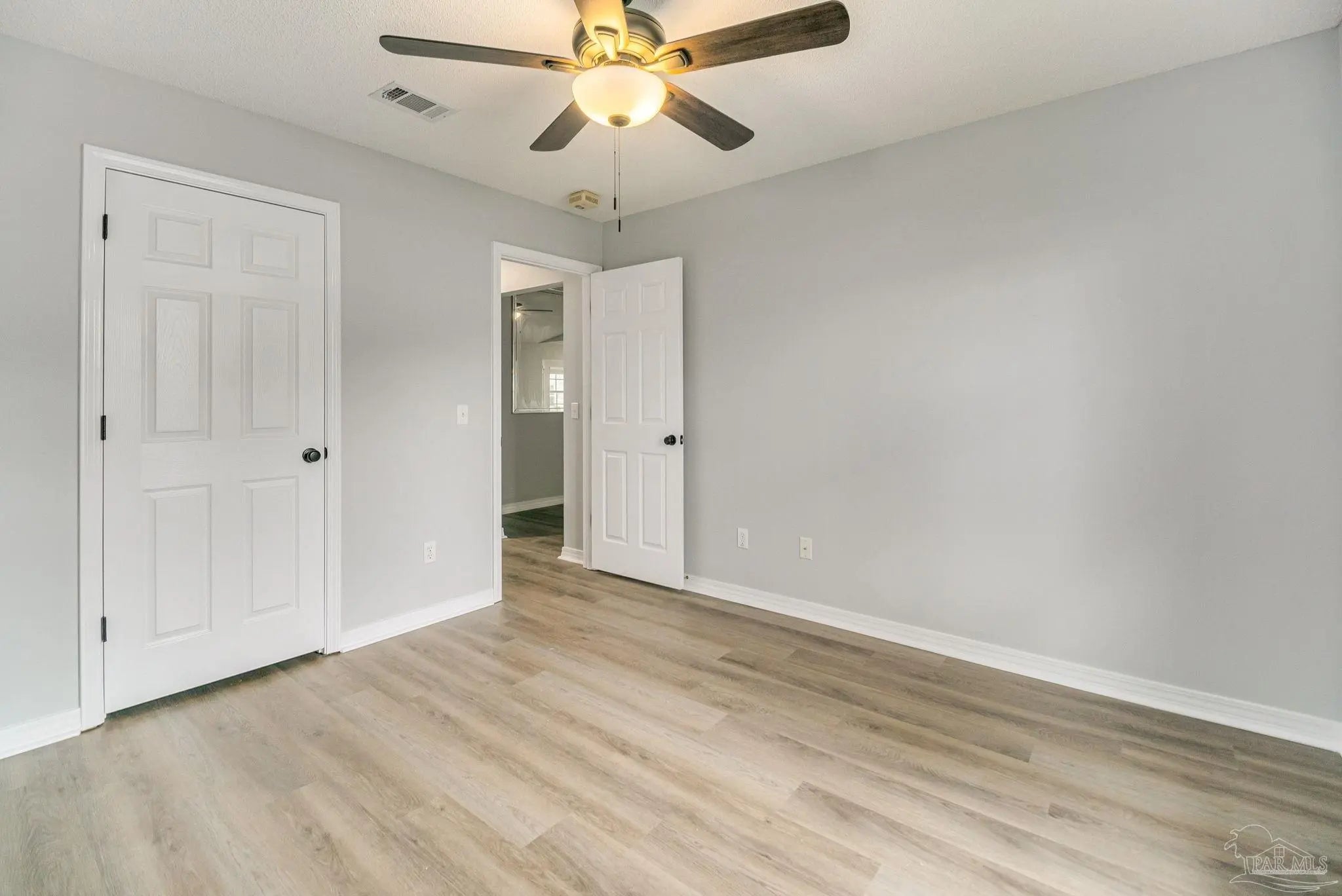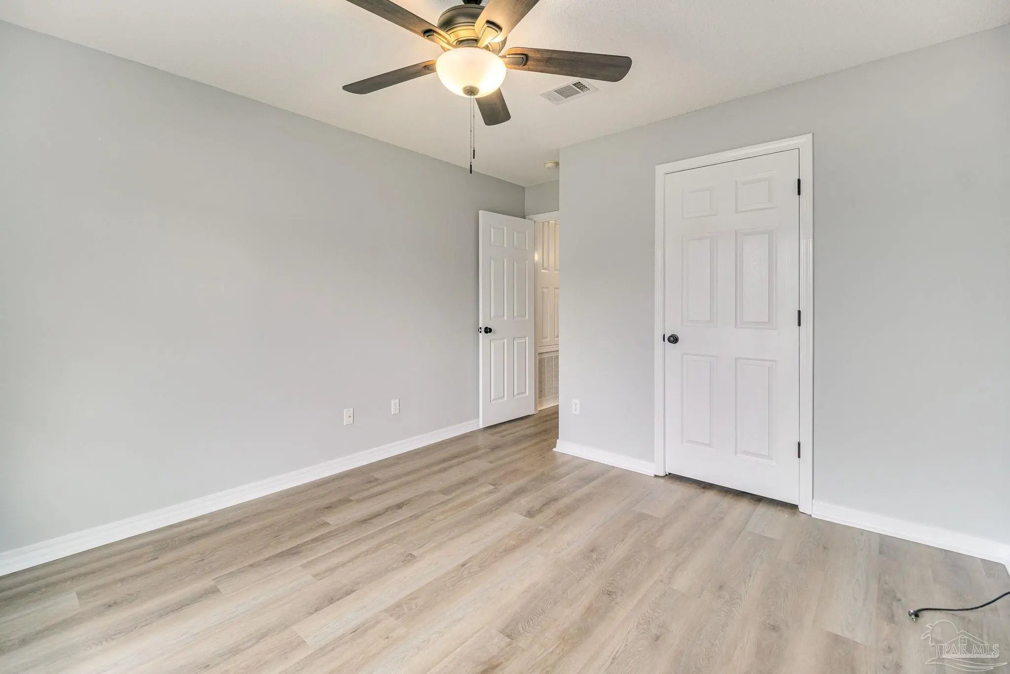 BRIGHT AND BEAUTIFUL HOME IN THE HIGHLY DESIREABLE LILLIAN WOODS SUBDIVISION! This 3 bedroom 2 bath home is conveniently located to NAS Pensacola and the Perdido Key beaches. An inviting front porch welcomes you into an open floor plan brick home with vaulted ceilings and oversized windows for lots of natural light. This home features new luxury vinyl plank flooring throughout the whole house. There is a bonus room that could be used as an office space or playroom as you enter the house. The upgraded kitchen features new Silver Fantasy granite, new stainless appliances, pantry storage & eat-in dining! The dining area opens right off the kitchen and into the living area which features beautiful high ceilings. The living room is light and bright opening out to the large tiled Florida room. The backyard is fully fenced with a shed. The owner's suite is spacious with a dual sink vanity as well as a large soaker tub and separate shower. The shower will have a semi-frameless oil rubbed bronze shower door installed within the next few weeks. There are separate his and hers large walk-in closets! Two guest rooms & full guest bath. Indoor laundry/mud room features added storage. Attached 2 car garage. Did i mention the home has a 3 year oldroof and new ac unit.