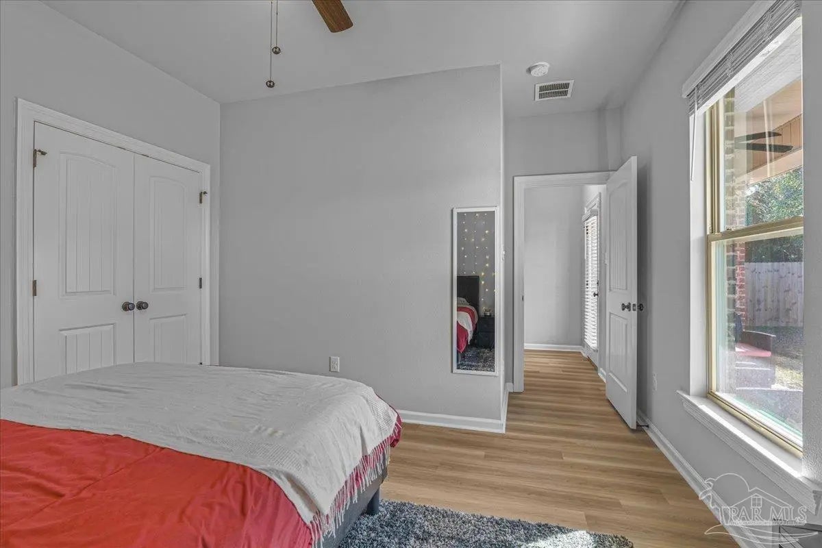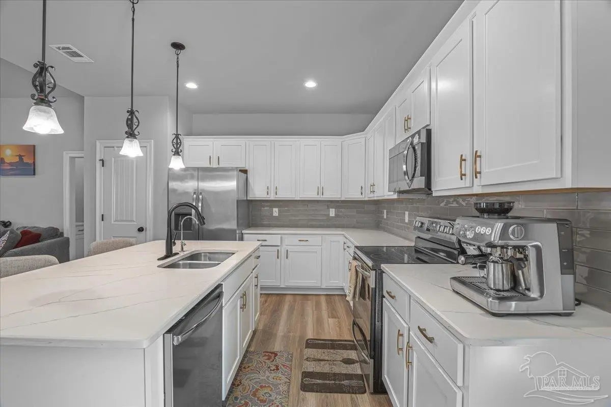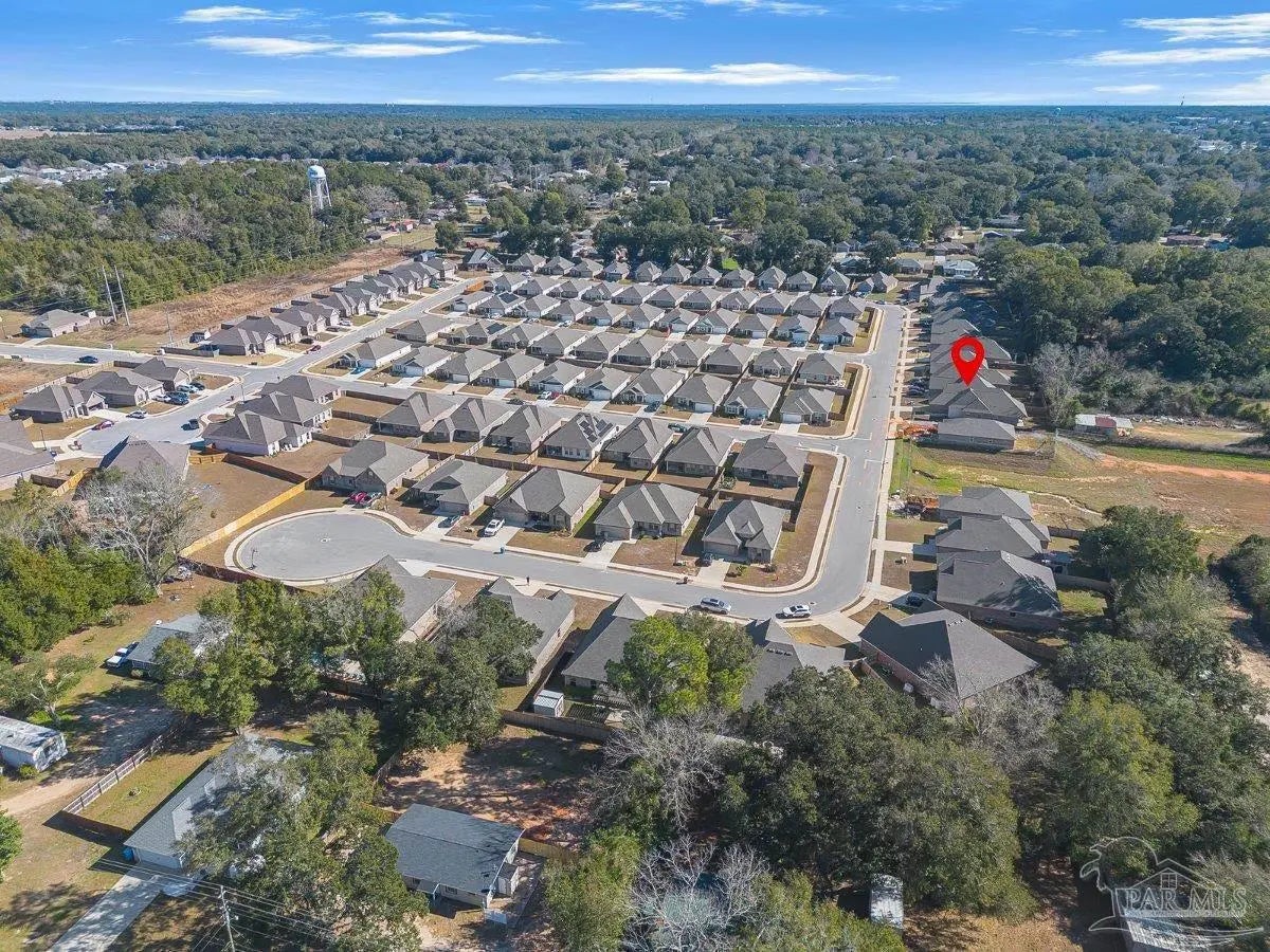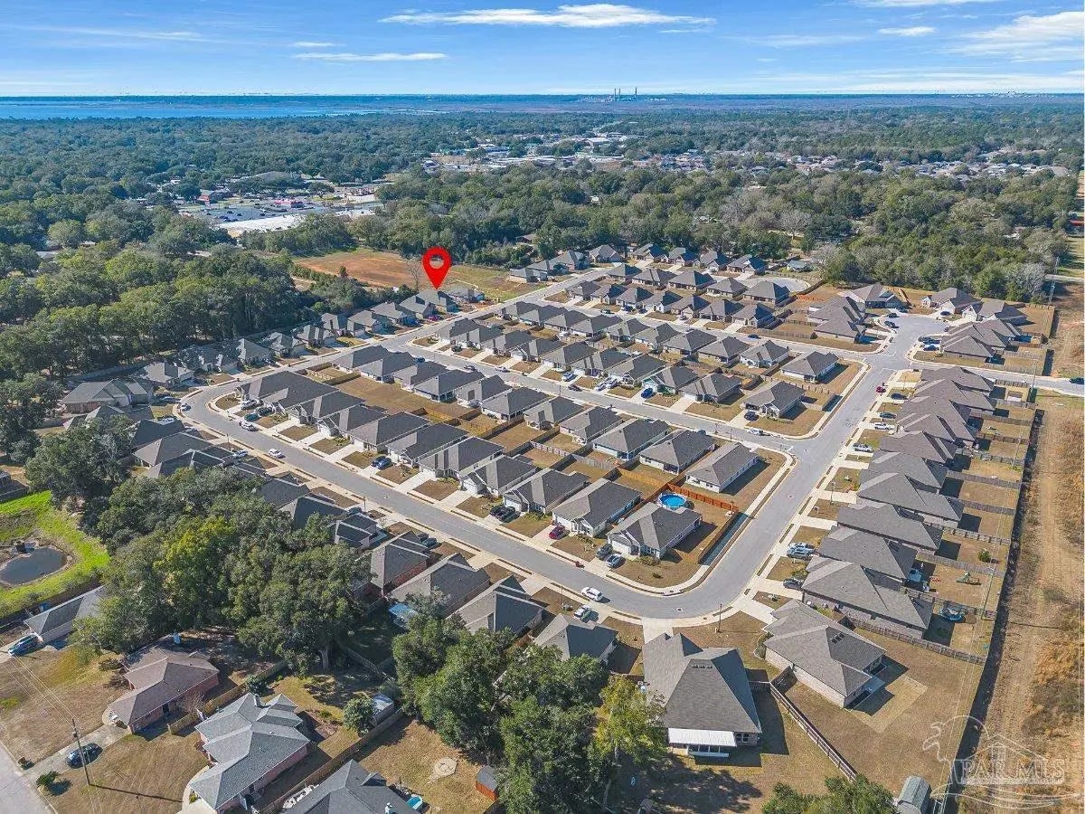 Private backyard, pond views, and like-new construction—this 2022-built home in Southern Palms offers one of the best lot positions in the neighborhood. With no direct rear neighbors and a wooded buffer beyond the pond, you’ll enjoy a level of privacy that’s hard to find in newer communities. Inside, the open layout is designed for both everyday living and entertaining, featuring a spacious living area with high ceilings and natural light. The kitchen stands out with quartz countertops, soft-close cabinetry, a farmhouse sink, large island with bar seating, and a bright breakfast nook. A functional floor plan includes a mudroom with built-in drop zone, plus a dedicated office nook—perfect for working from home or keeping life organized. The primary suite offers a relaxing retreat with double vanities, a garden tub, separate shower, and a custom walk-in closet. Additional bedrooms are well-sized and connected by a convenient Jack-and-Jill bathroom. Step outside to the covered back porch and enjoy peaceful views of the pond with no homes directly behind you—ideal for quiet mornings or evening relaxation. Built in 2022 and loaded with upgrades—including LVP flooring, reverse osmosis system, and included appliances—this home offers a true move-in ready, low-maintenance lifestyle in a growing Pace location. ?? Homes with this level of privacy and upgrades don’t come up often—schedule your showing today.