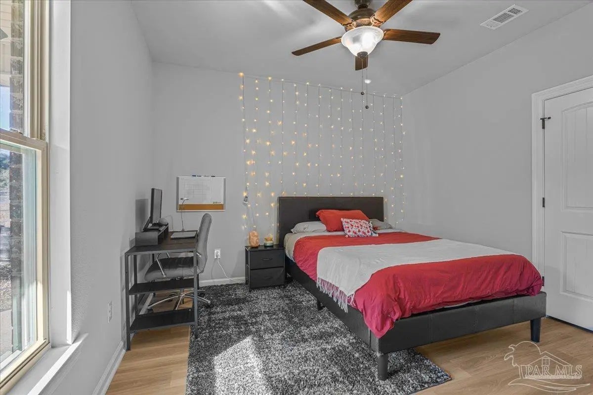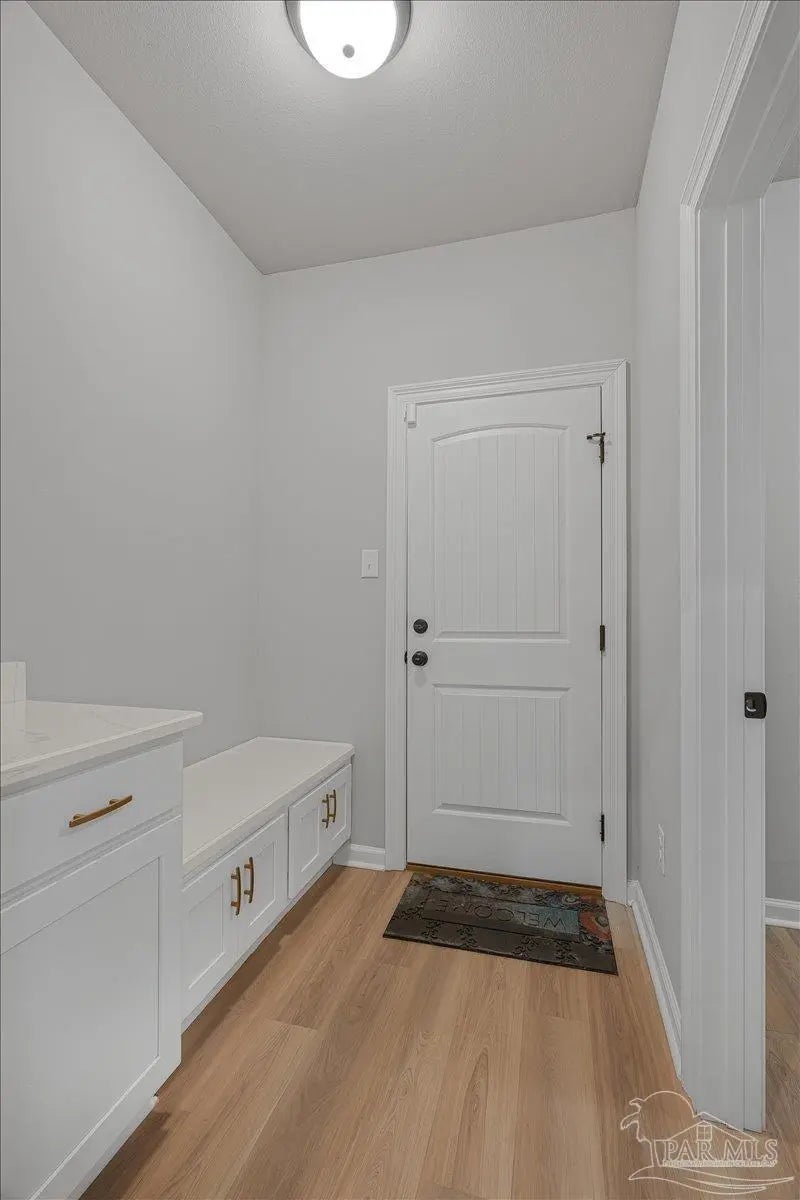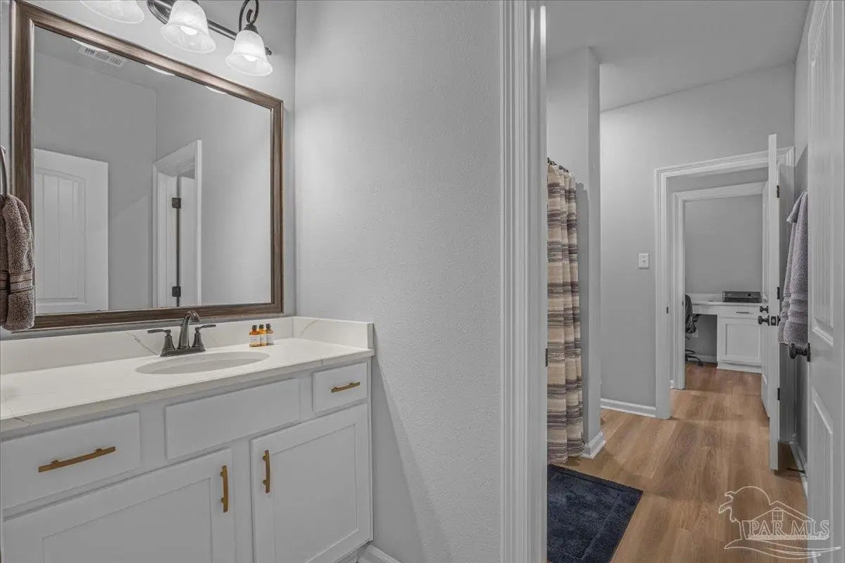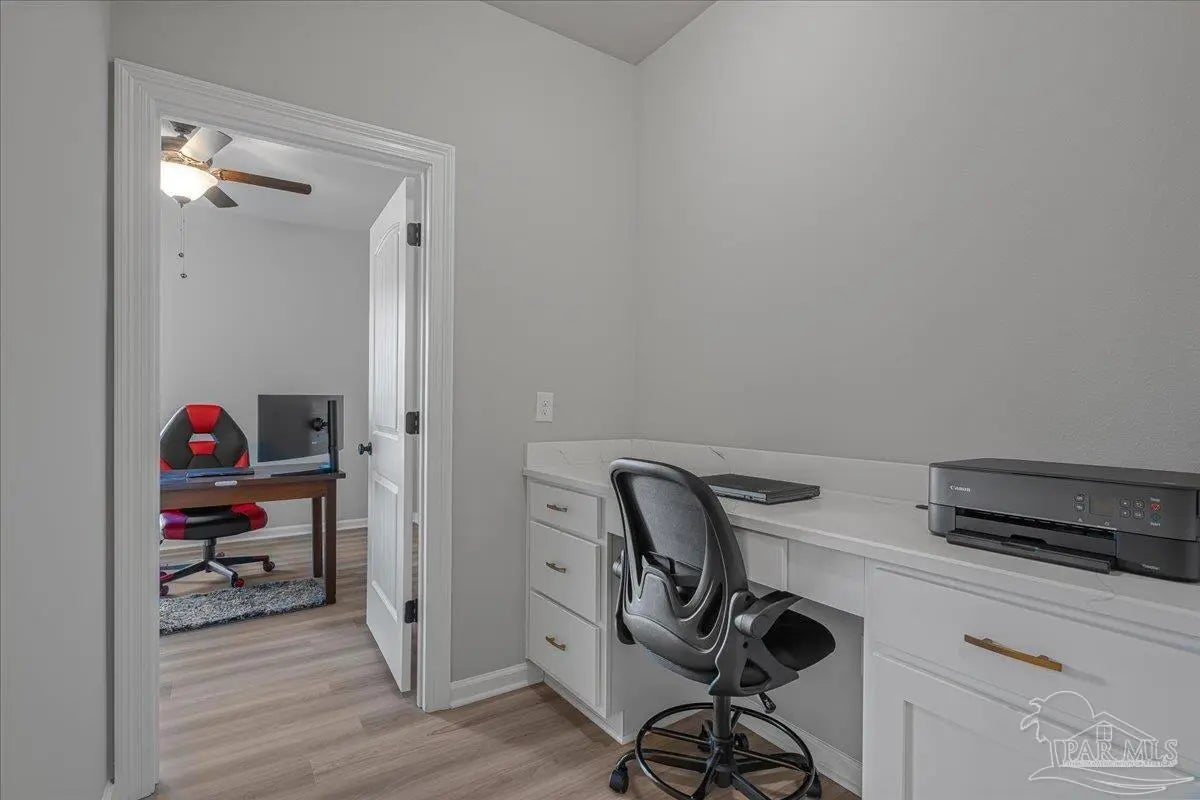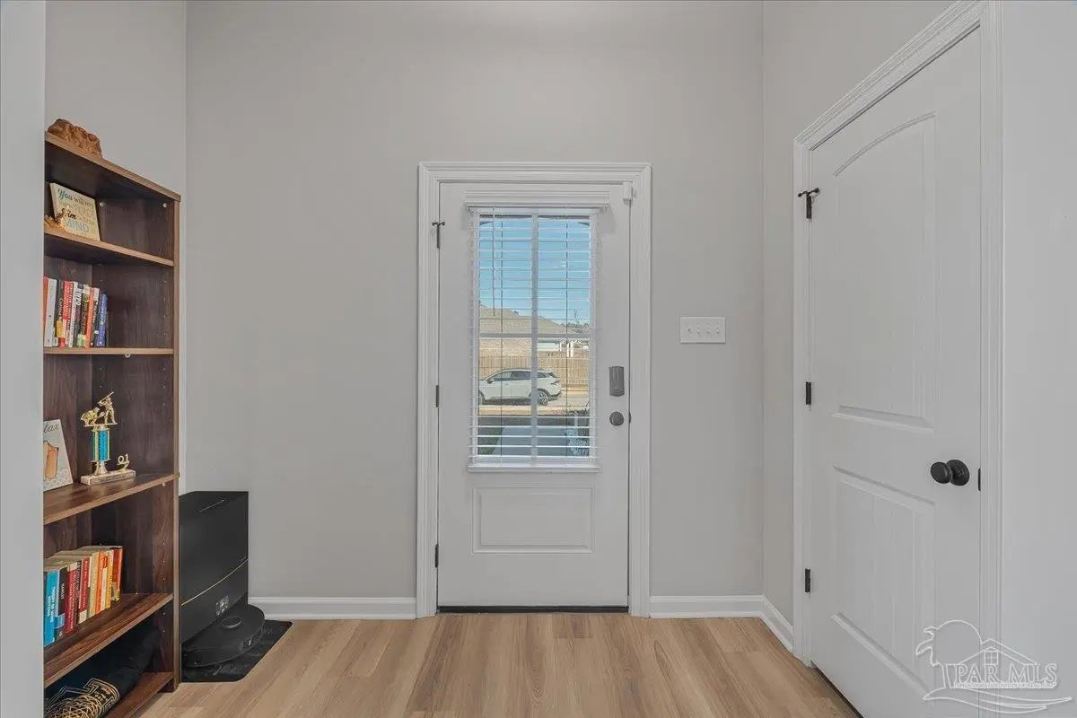 Private backyard, pond views, and like-new construction—this 2022-built home in Southern Palms offers one of the best lot positions in the neighborhood. With no direct rear neighbors and a wooded buffer beyond the pond, you’ll enjoy a level of privacy that’s hard to find in newer communities. Inside, the open layout is designed for both everyday living and entertaining, featuring a spacious living area with high ceilings and natural light. The kitchen stands out with quartz countertops, soft-close cabinetry, a farmhouse sink, large island with bar seating, and a bright breakfast nook. A functional floor plan includes a mudroom with built-in drop zone, plus a dedicated office nook—perfect for working from home or keeping life organized. The primary suite offers a relaxing retreat with double vanities, a garden tub, separate shower, and a custom walk-in closet. Additional bedrooms are well-sized and connected by a convenient Jack-and-Jill bathroom. Step outside to the covered back porch and enjoy peaceful views of the pond with no homes directly behind you—ideal for quiet mornings or evening relaxation. Built in 2022 and loaded with upgrades—including LVP flooring, reverse osmosis system, and included appliances—this home offers a true move-in ready, low-maintenance lifestyle in a growing Pace location. ?? Homes with this level of privacy and upgrades don’t come up often—schedule your showing today.