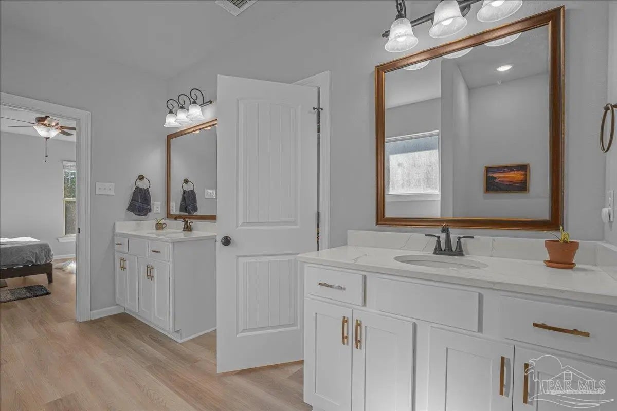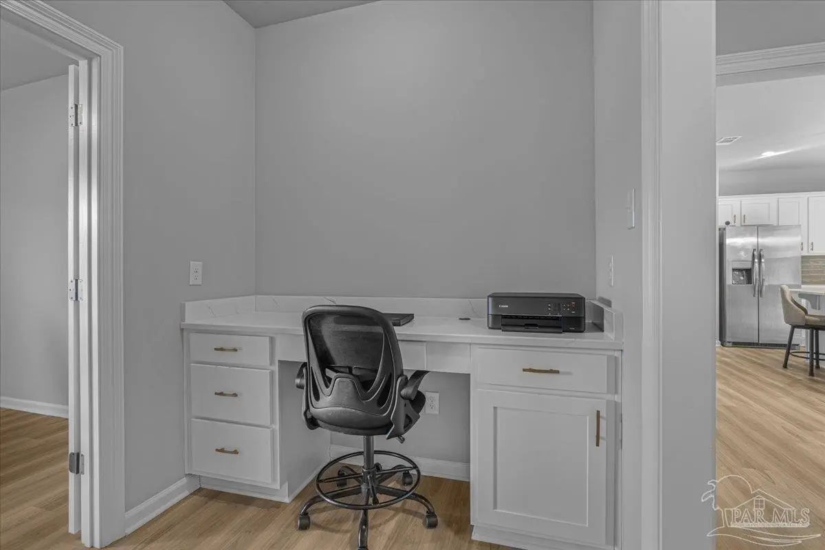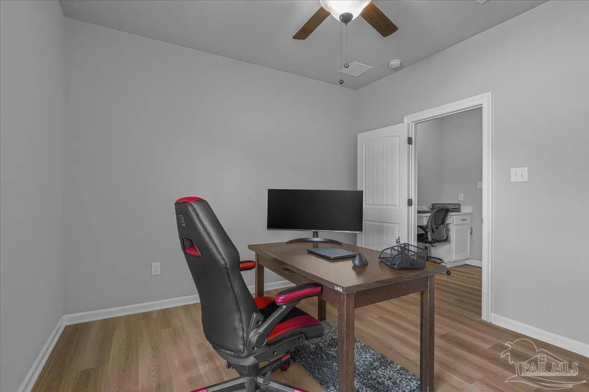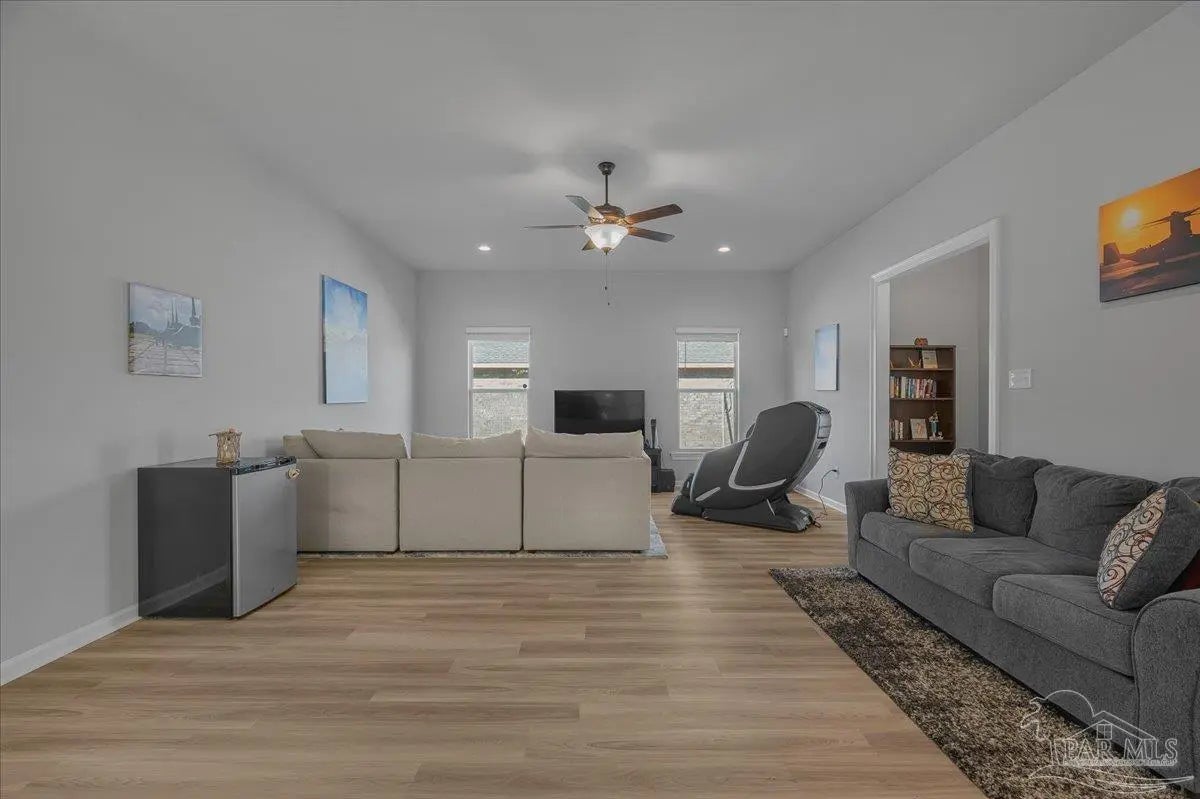 Private backyard, pond views, and like-new construction—this 2022-built home in Southern Palms offers one of the best lot positions in the neighborhood. With no direct rear neighbors and a wooded buffer beyond the pond, you’ll enjoy a level of privacy that’s hard to find in newer communities. Inside, the open layout is designed for both everyday living and entertaining, featuring a spacious living area with high ceilings and natural light. The kitchen stands out with quartz countertops, soft-close cabinetry, a farmhouse sink, large island with bar seating, and a bright breakfast nook. A functional floor plan includes a mudroom with built-in drop zone, plus a dedicated office nook—perfect for working from home or keeping life organized. The primary suite offers a relaxing retreat with double vanities, a garden tub, separate shower, and a custom walk-in closet. Additional bedrooms are well-sized and connected by a convenient Jack-and-Jill bathroom. Step outside to the covered back porch and enjoy peaceful views of the pond with no homes directly behind you—ideal for quiet mornings or evening relaxation. Built in 2022 and loaded with upgrades—including LVP flooring, reverse osmosis system, and included appliances—this home offers a true move-in ready, low-maintenance lifestyle in a growing Pace location. ?? Homes with this level of privacy and upgrades don’t come up often—schedule your showing today.