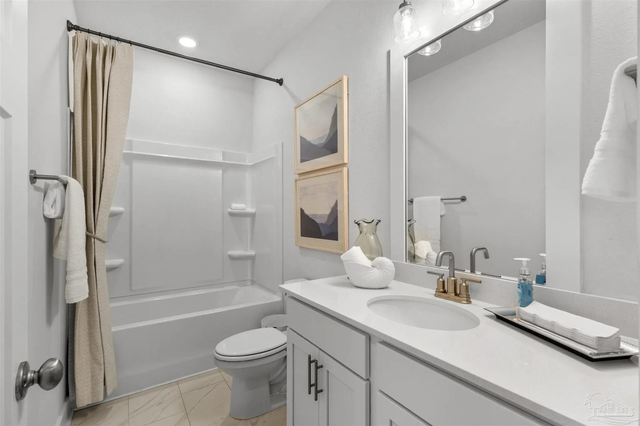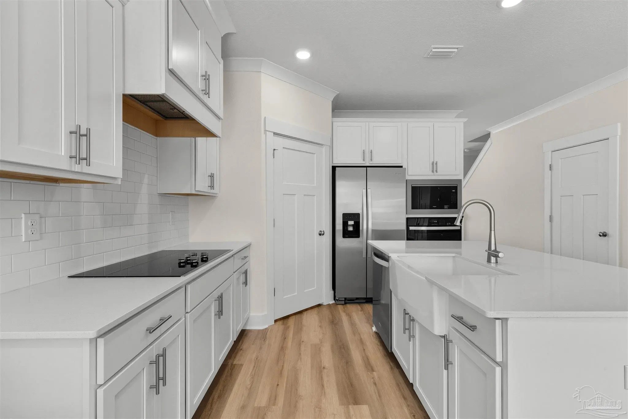 Welcome to 351 S F St! This thoughtfully designed two-story single-family home offers 3 bedrooms, 2.5 bathrooms, and stylish low maintenance living in the heart of downtown Pensacola. Step inside to soaring 9’ ceilings, signature lighting, and an open-concept layout with luxury vinyl plank flooring. The kitchen is a showstopper featuring quartz countertops, stainless steel appliances, a tile backsplash, and plenty of storage. Upstairs, the primary suite is your private retreat with a tiled walk-in shower with framed glass door, dual vanities, and brushed nickel fixtures. Two additional bedrooms and a full bath provide plenty of space for family, guests, or a home office. This home also includes a Smart Home Technology package for added convenience and peace of mind. Located in Stadium Way, you’re just steps from Blue Wahoos Stadium, Pensacola Bay, local parks, and all the dining, shopping, and entertainment options along Palafox. If you’re seeking downtown energy, modern finishes, and a home that blends function with style—the Casey Plan at Stadium Way is calling!
