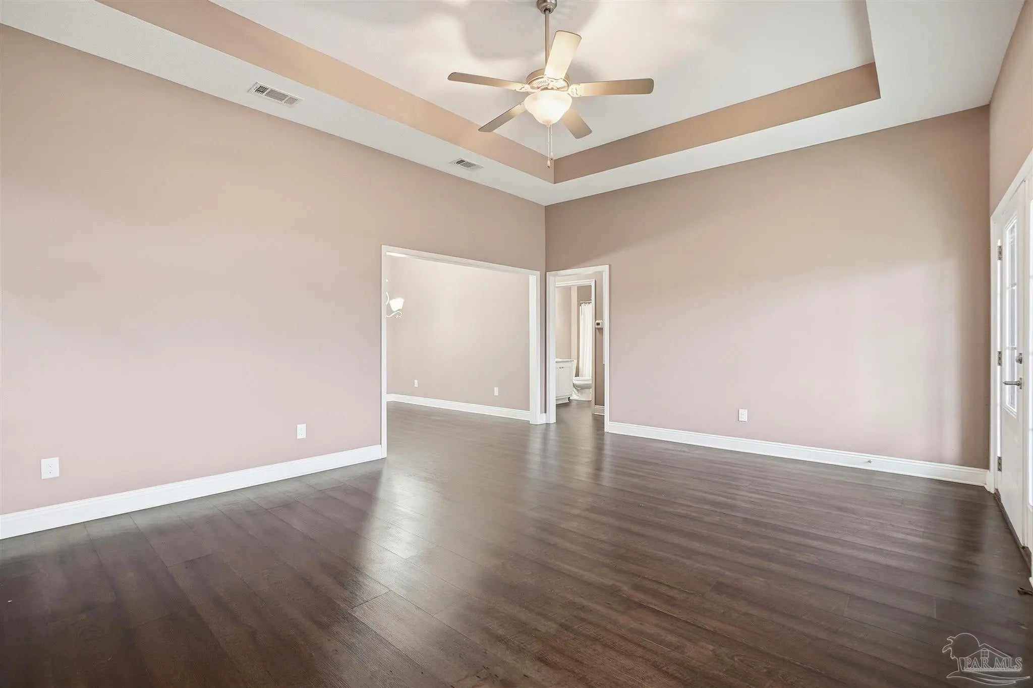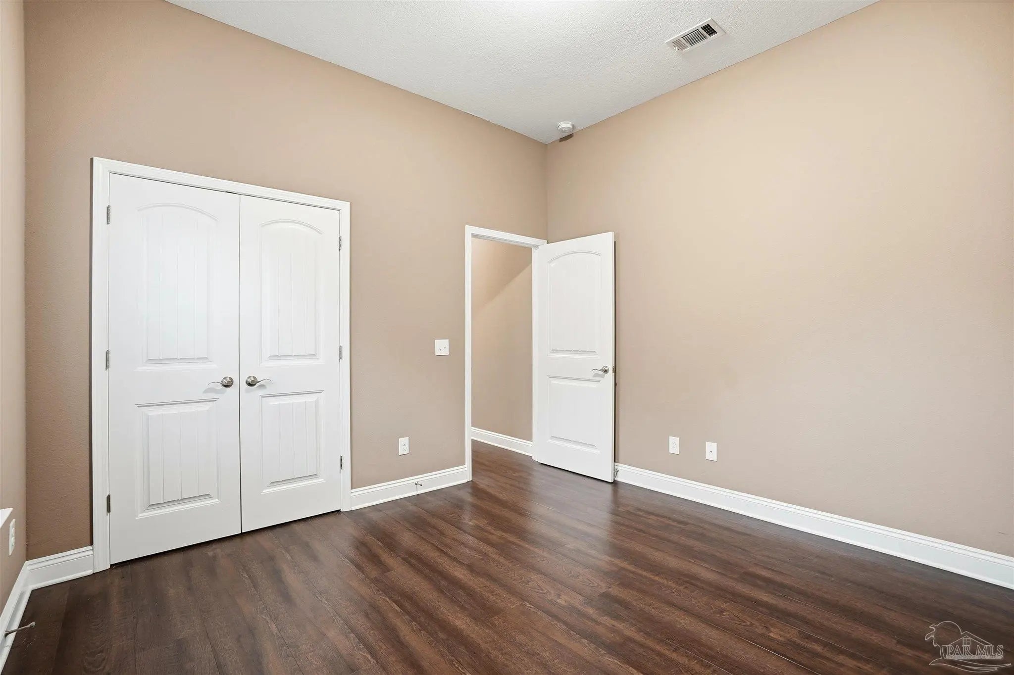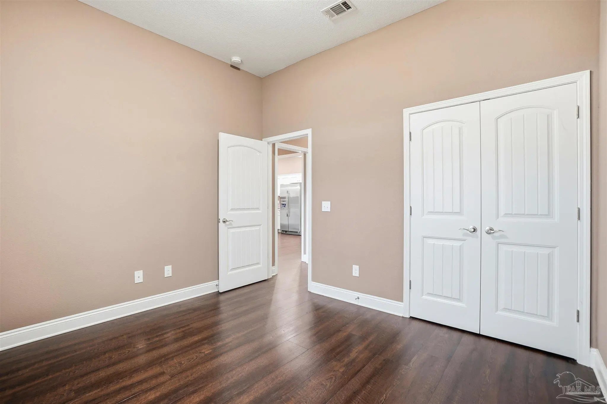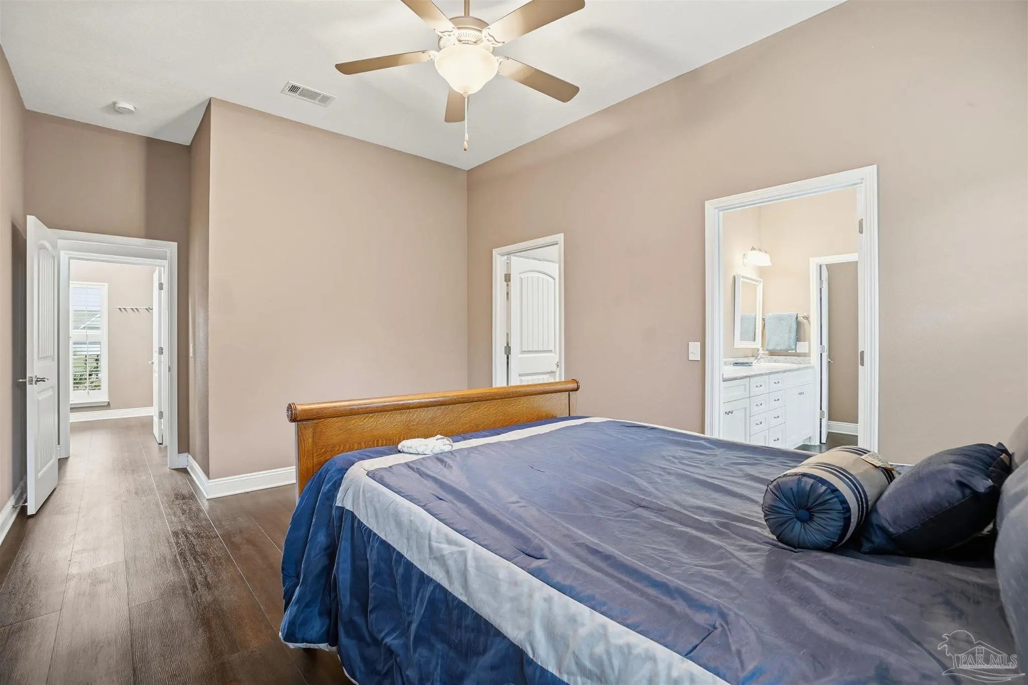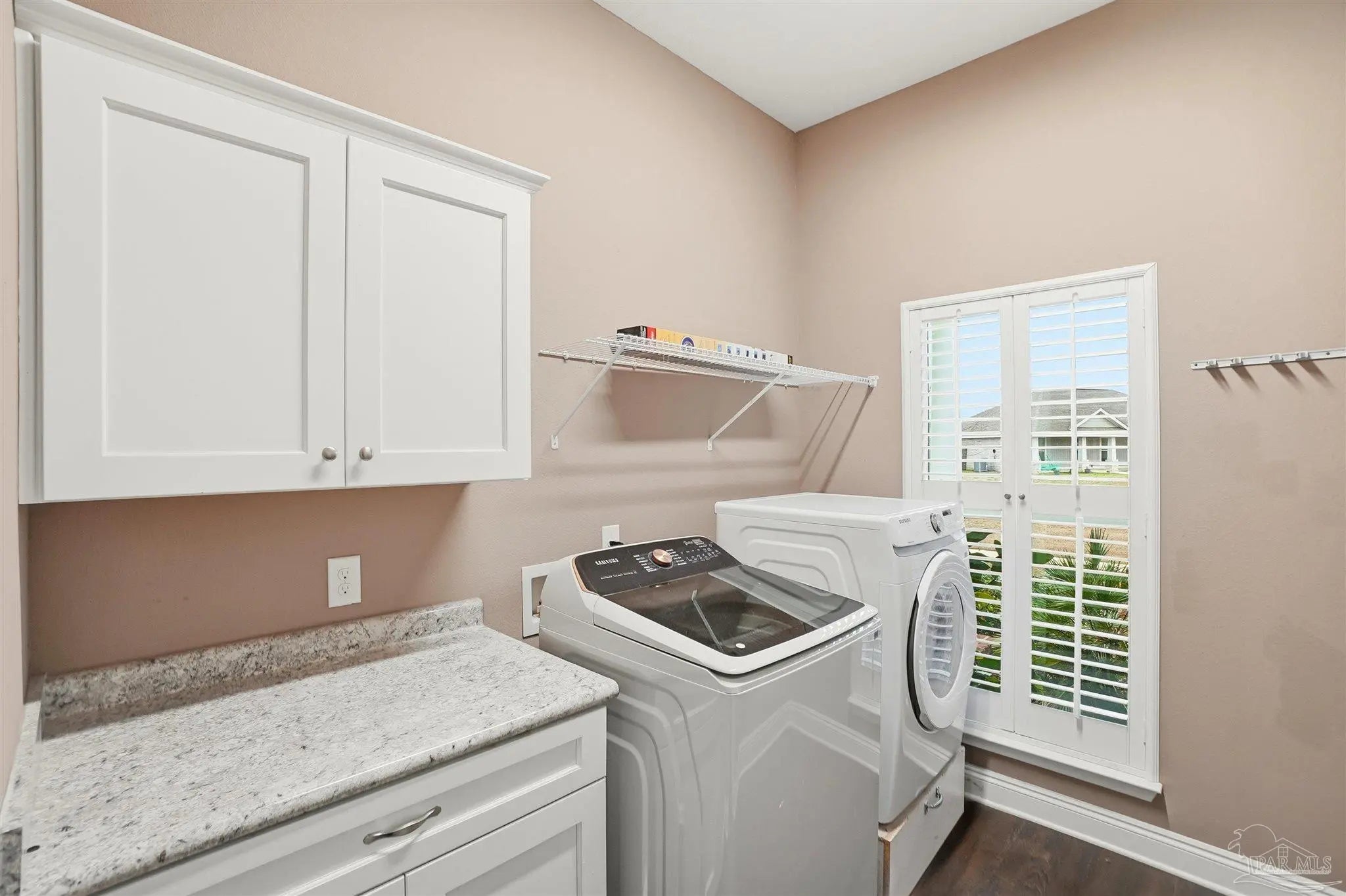 MOVE IN READY 3BR/2BA WITH WORKSHOP BONUS ROOM ON JUST SHORT OF 1/2 ACRE LOT. The property features a workshop/craftsman area, a screened back patio, and a covered back patio for family outdoor cooking, offering versatile spaces for various activities. The vented (heat and cold) workshop/craftsman area can be turned into a home office, playroom for kids, "mancave" or "she-shed" boudoir to escape and relax. The detached golf cart garage/shed and Rainbird sprinkler system (using well water) add convenient features to the home. The kitchen/dining combo boasts granite countertops, ice maker, recessed lighting, and pantry. Bahama shutters are throughout the home, contributing to the property's elegant aesthetic. There is NO HOA which allows for storage of boat, RV, or 5th Wheel Trailer, saving you storage dues and plenty of room from oversized side garage and long driveway. Relax on the screen-in back patio and enjoy mosquito-free windy nights in the summer. Notably, this home is situated on almost half an acre of land and is located less than 2 miles from public boat ramp and less than 20 minutes from Perdido Key Beach, providing ample opportunities for outdoor recreation. Backyard is perfect to add your pool and there is plenty of space for a greenhouse for the gardener in the family. The primary bedroom includes a walk-in closet, and the primary bathroom features a garden tub with separate shower, double vanity, and water closet. The split floorplan has the other 2 bedrooms and hall bath on other side of home for more privacy. The home is fully electric with public water and sewer services, and well water and pump for Rainbird sprinkler system. Additionally, the home comes with a home warranty, and all kitchen appliances to include refrigerator with washer/dryer set offering peace of mind for the new owners. Survey is available and Pest/termite bond is transferable at closing. Call today to make an appointment!