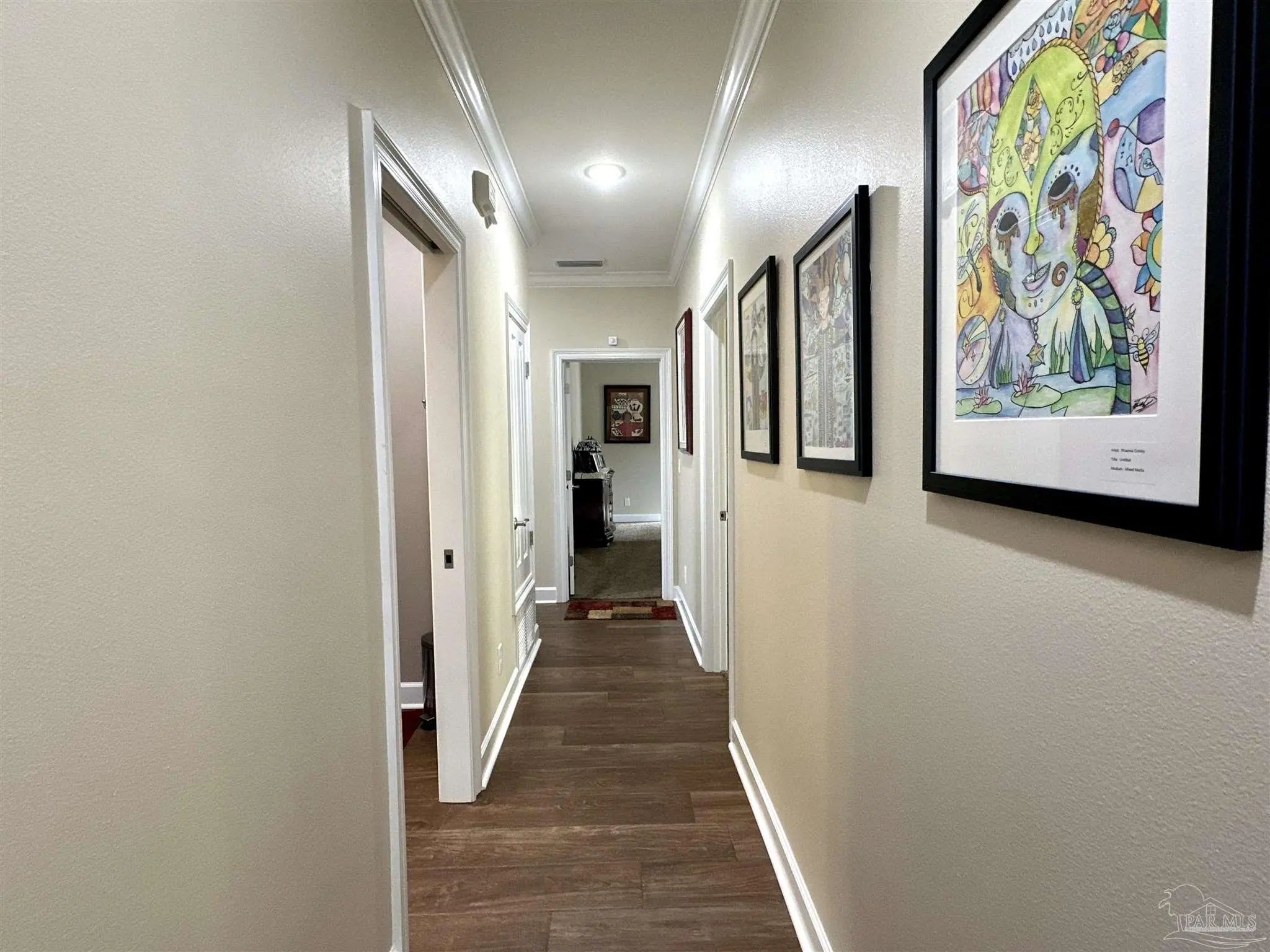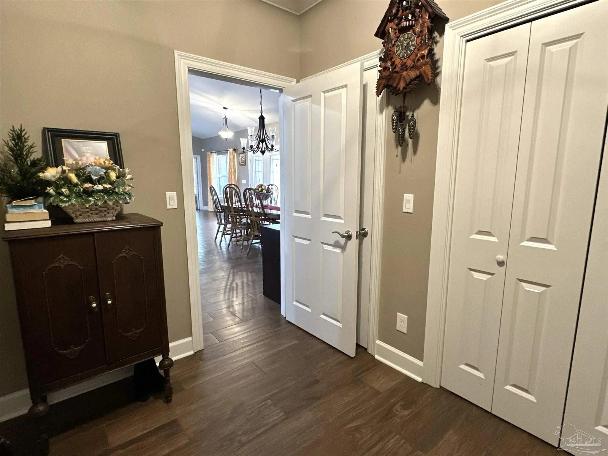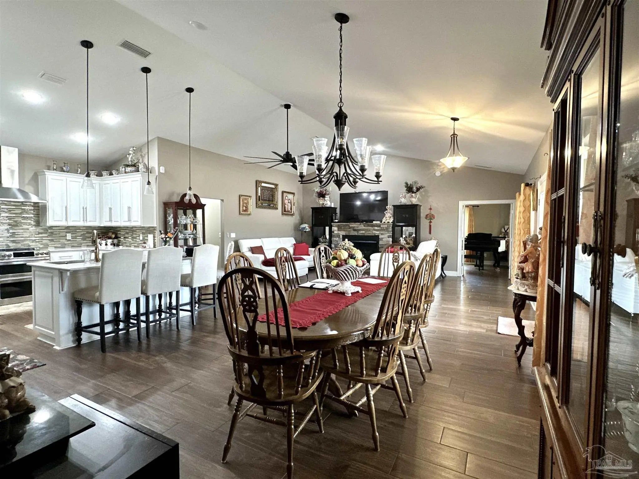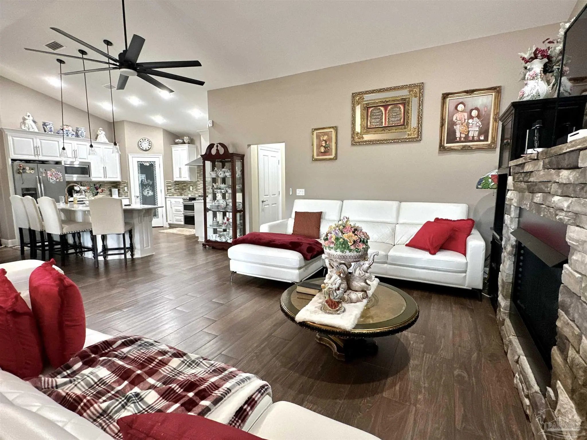 Set on 5 acres along Highway 89, this custom-built ranch-style home offers space, quality, and privacy with the convenience of being just minutes from Milton and everyday essentials. Built in 2019 and meticulously maintained, the home spans approximately 2,800 square feet with five bedrooms and three bathrooms, providing flexibility for a variety of living needs. The interior showcases thoughtful design and craftsmanship, beginning with an open-concept living area highlighted by soaring ceilings and a striking stone fireplace that anchors the space. Durable porcelain tile flooring flows throughout the main living areas, enhancing both style and function. The kitchen is a standout, featuring a large center island with custom quartz countertops, extensive cabinetry, and a layout well suited for entertaining or everyday use. The primary suite is privately positioned and offers a refined retreat, complete with a tray ceiling, recessed lighting, a spa-inspired bath, and an expansive walk-in closet. French doors open to a screened porch, creating a seamless transition to outdoor living and a peaceful spot to enjoy the surrounding acreage. Additional features include a well-appointed laundry room with quartz counters and utility sink, a mudroom with generous storage, and an oversized garage. Outside, the property includes a barn with attached workshop, ideal for equipment, hobbies, or storage, while the open land offers room to expand, garden, or simply enjoy the setting. This property delivers the balance of rural living with convenient access to shopping, schools, and services.