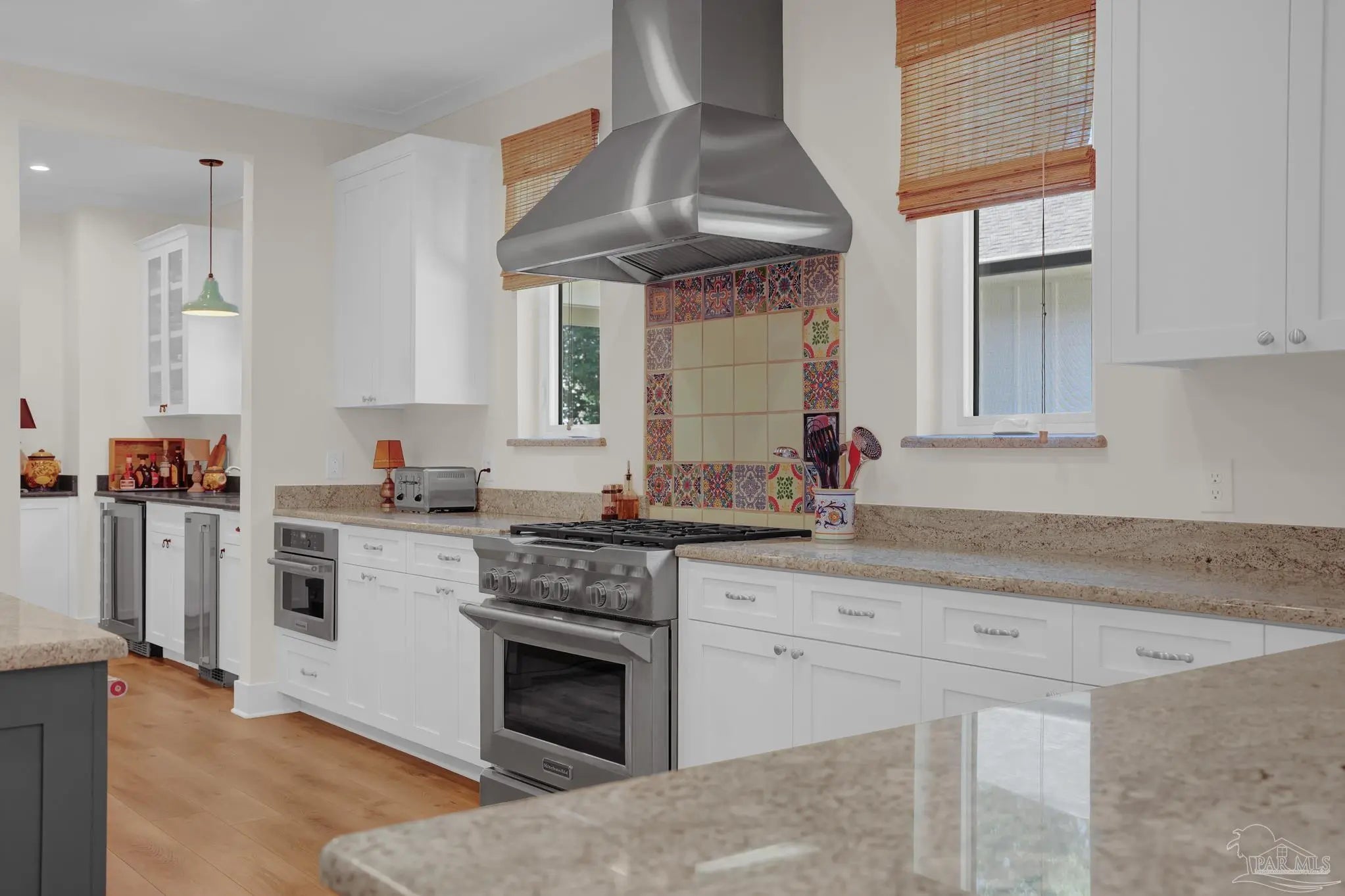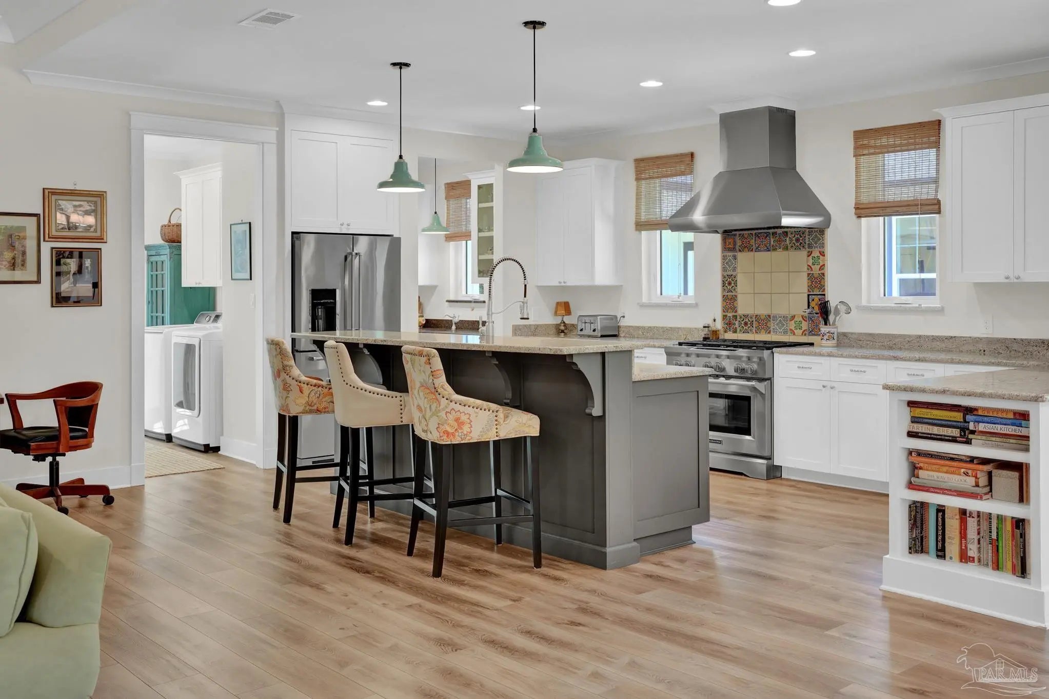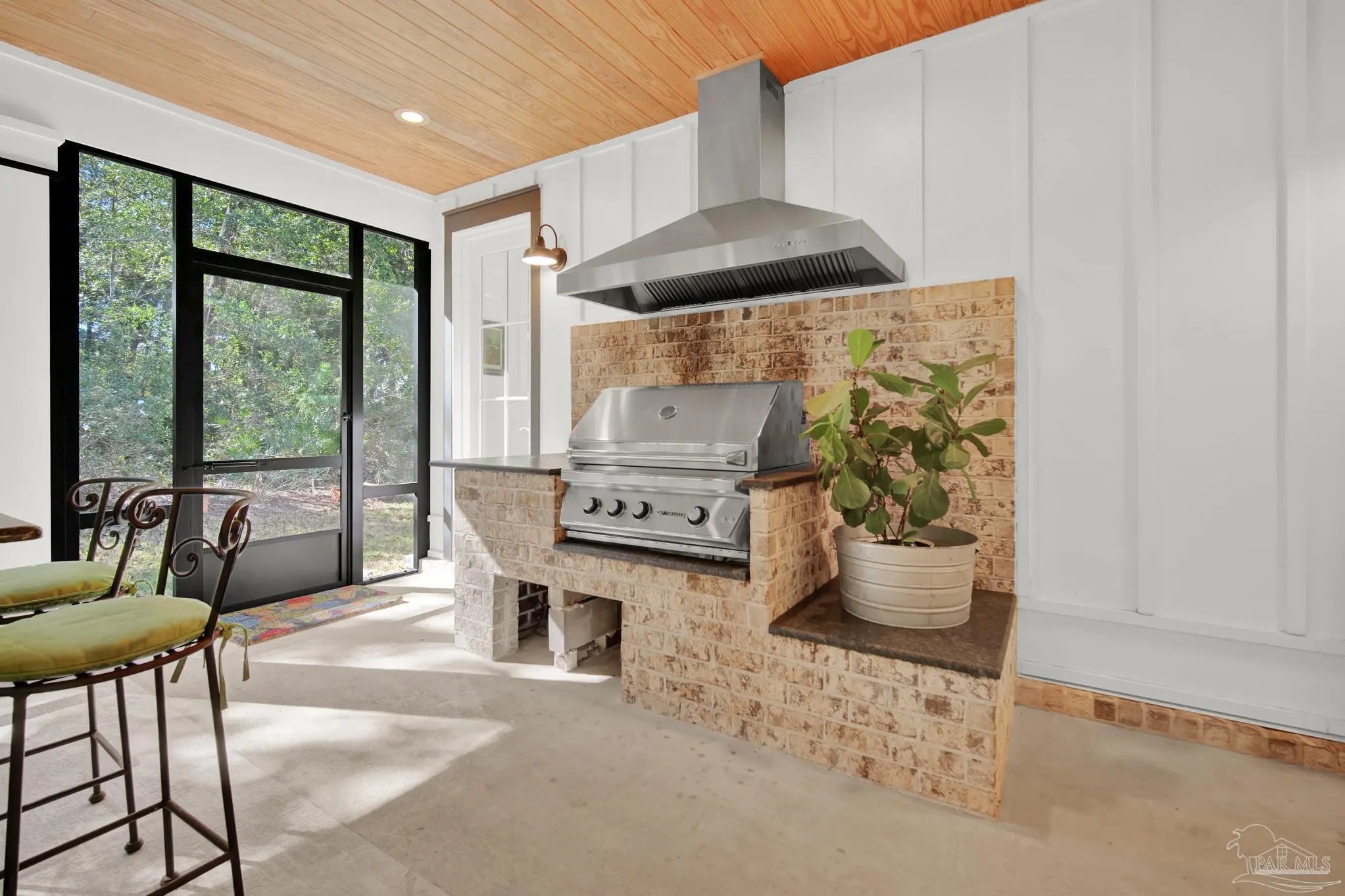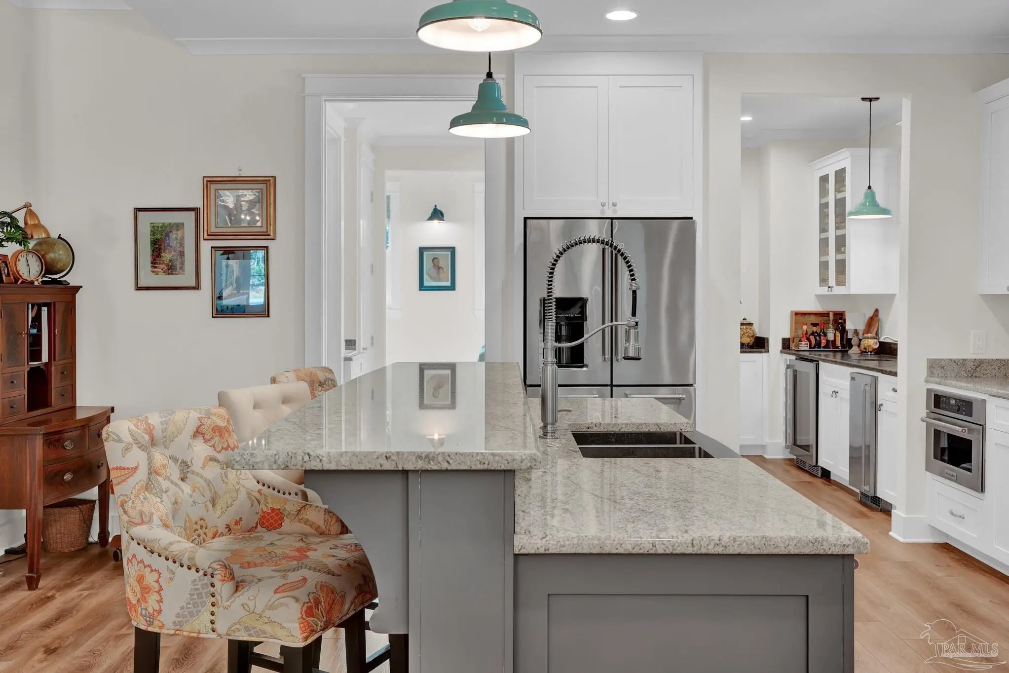 Experience quality & style in this beautifully designed, meticulously maintained coastal cottage featuring 3 BR, 3.5 BA, 2663 SF main house + 180 SF detached. A must-see property! As you approach, a wide front porch that spans the entire facade welcomes you, 8' doors, and high ceilings throughout, complemented by an abundance of windows for natural light. Preserved trees enhance privacy & natural beauty. Entertain friends & family in the expansive Kitchen/Dining/Living area with a gas fireplace that flows into the huge screened-in porch, featuring a built-in natural gas grill & hood. (A $1,200 allowance is available for a new 36" grill, current one does not convey.) Enjoy background music through indoor & outdoor speakers. The Dining Area comfortably seats 10. (Sentimental wall sconces will be replaced & do not convey.)The Office off the Living Room boasts custom doors and transom. The Kitchen & Butler's Pantry are a cook's dream with ample cabinets, granite countertops, and high-end stainless appliances, including a 36" 6 Burner KitchenAid Dual Fuel Range, a 5-door KitchenAid French Door Refrigerator, a KitchenAid Dishwasher, a Deep Stainless Apron Front Sink, and a KitchenAid Microwave Drawer. The Butler's Pantry features Perlick Undercounter Wine/Beverage Chiller and top-hat style Ice Maker. Adjacent to the Kitchen are the laundry, half bath, and hall leading to the detached 2-car garage & 180 SF Man Cave. The Master Suite is spacious enough for a CA King bed & more. Double glass doors open to the back porch. The MBA includes a tiled shower, freestanding tub, two closets, a dual granite vanity, and a water closet. BR 2 & 3 are generously sized with ensuite baths, granite vanities, and walk-in closets. Bathroom flooring is porcelain tile, while a high-quality wide plank LVP in a neutral coastal tone runs throughout the remainder. All appliances, including washer & dryer, convey. Additional features include a whole house generator, termite bond & sprinkler system.