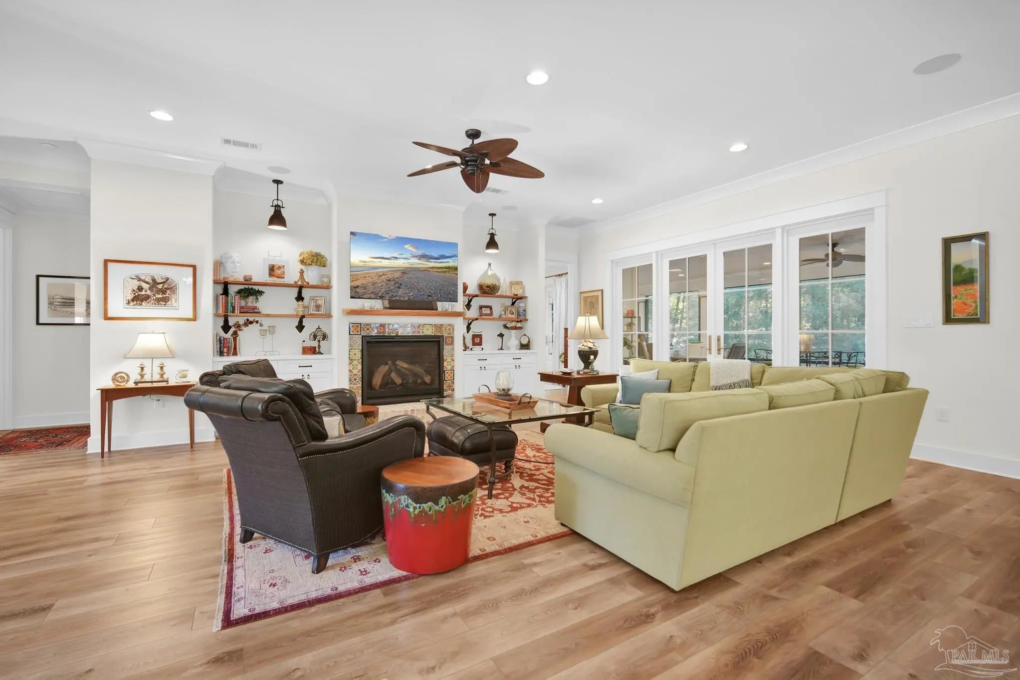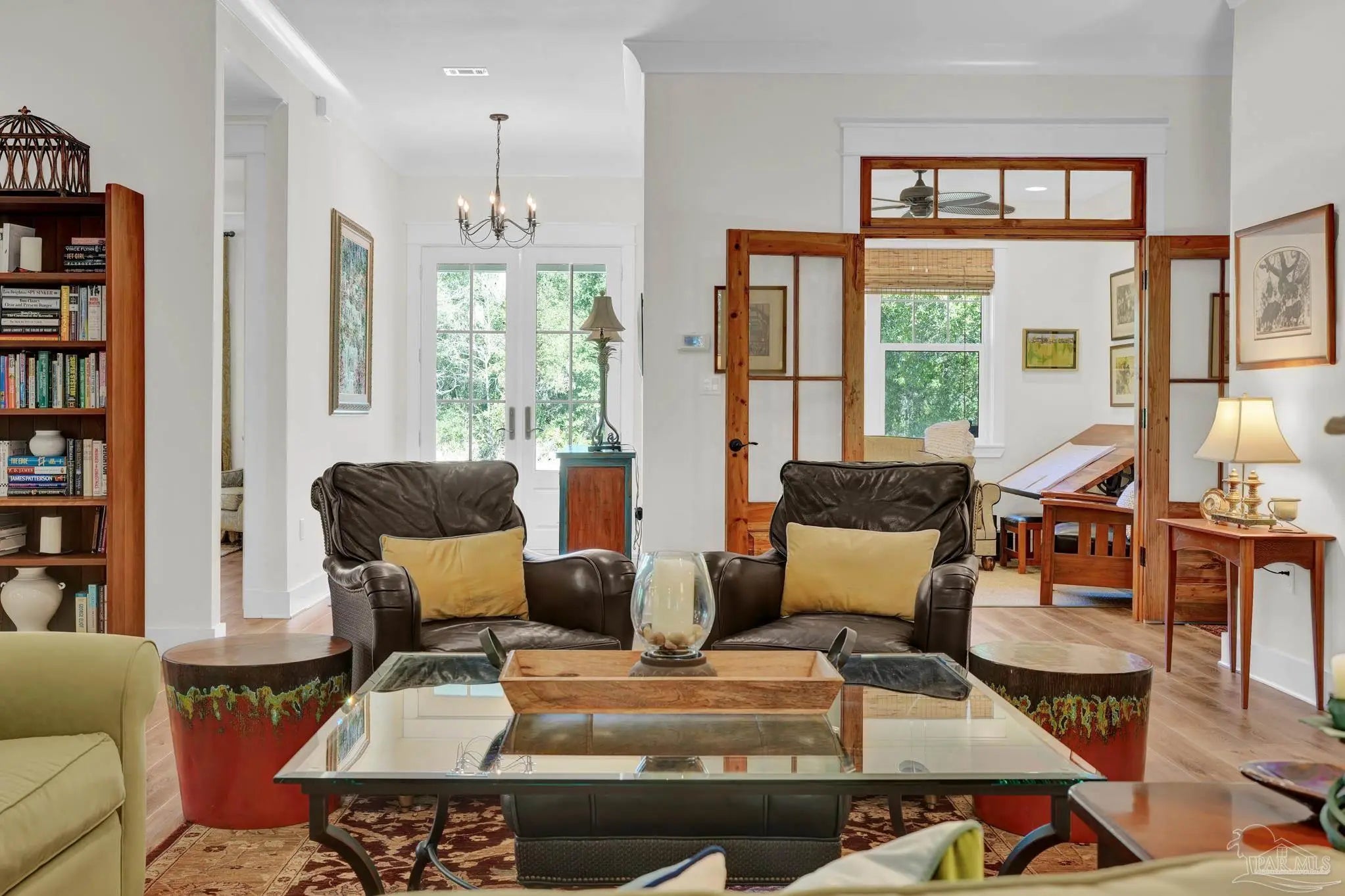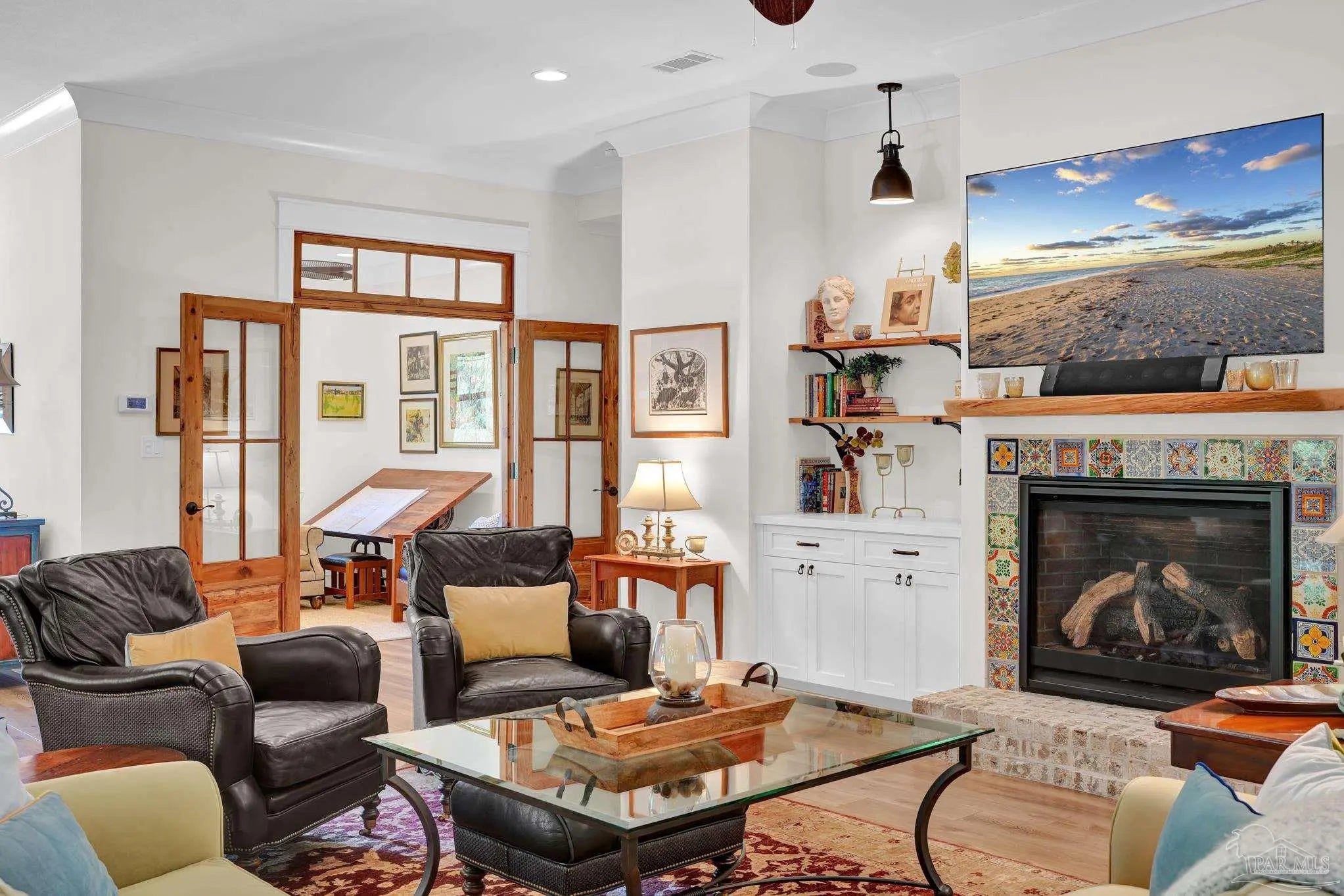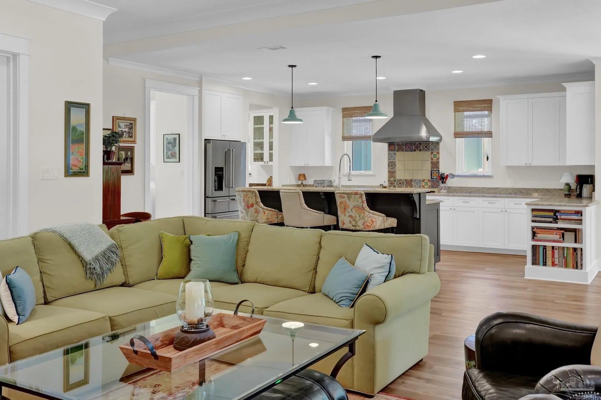 Experience quality & style in this beautifully designed, meticulously maintained coastal cottage featuring 3 BR, 3.5 BA, 2663 SF main house + 180 SF detached. A must-see property! As you approach, a wide front porch that spans the entire facade welcomes you, 8' doors, and high ceilings throughout, complemented by an abundance of windows for natural light. Preserved trees enhance privacy & natural beauty. Entertain friends & family in the expansive Kitchen/Dining/Living area with a gas fireplace that flows into the huge screened-in porch, featuring a built-in natural gas grill & hood. (A $1,200 allowance is available for a new 36" grill, current one does not convey.) Enjoy background music through indoor & outdoor speakers. The Dining Area comfortably seats 10. (Sentimental wall sconces will be replaced & do not convey.)The Office off the Living Room boasts custom doors and transom. The Kitchen & Butler's Pantry are a cook's dream with ample cabinets, granite countertops, and high-end stainless appliances, including a 36" 6 Burner KitchenAid Dual Fuel Range, a 5-door KitchenAid French Door Refrigerator, a KitchenAid Dishwasher, a Deep Stainless Apron Front Sink, and a KitchenAid Microwave Drawer. The Butler's Pantry features Perlick Undercounter Wine/Beverage Chiller and top-hat style Ice Maker. Adjacent to the Kitchen are the laundry, half bath, and hall leading to the detached 2-car garage & 180 SF Man Cave. The Master Suite is spacious enough for a CA King bed & more. Double glass doors open to the back porch. The MBA includes a tiled shower, freestanding tub, two closets, a dual granite vanity, and a water closet. BR 2 & 3 are generously sized with ensuite baths, granite vanities, and walk-in closets. Bathroom flooring is porcelain tile, while a high-quality wide plank LVP in a neutral coastal tone runs throughout the remainder. All appliances, including washer & dryer, convey. Additional features include a whole house generator, termite bond & sprinkler system.