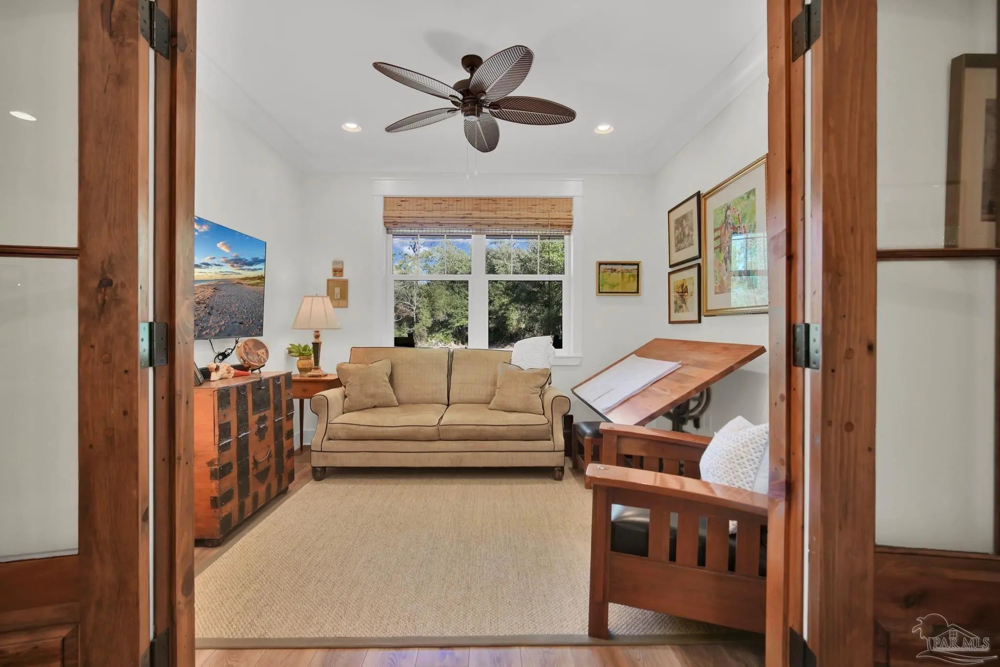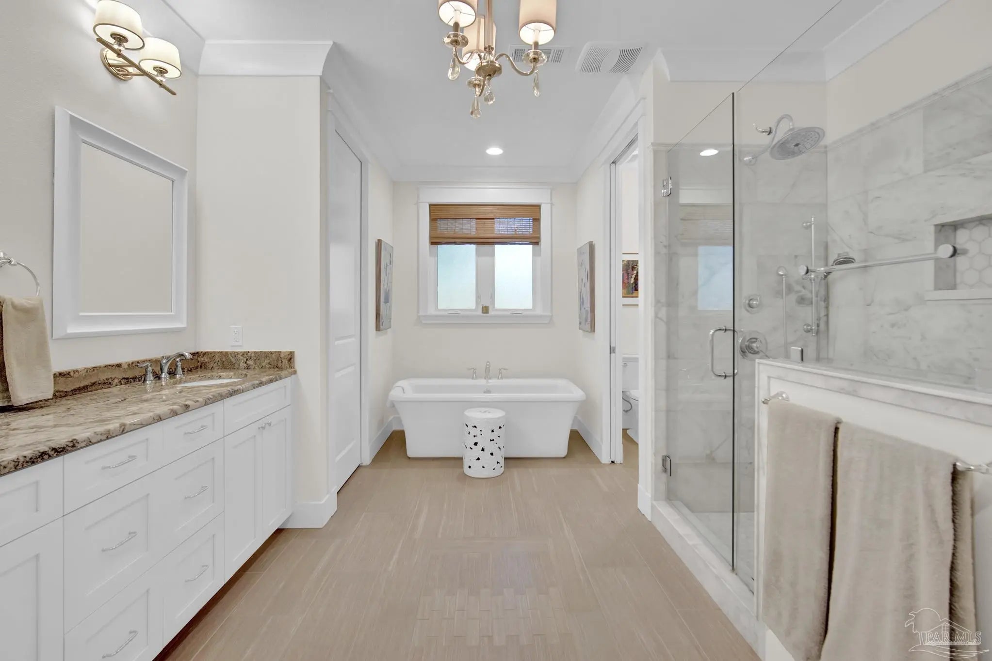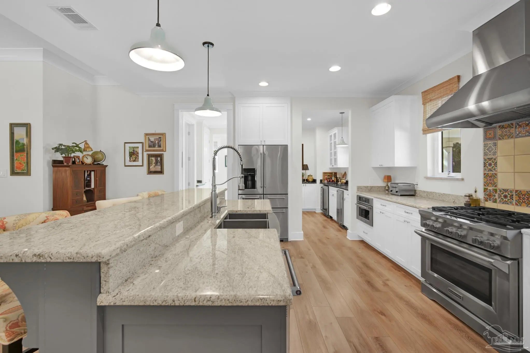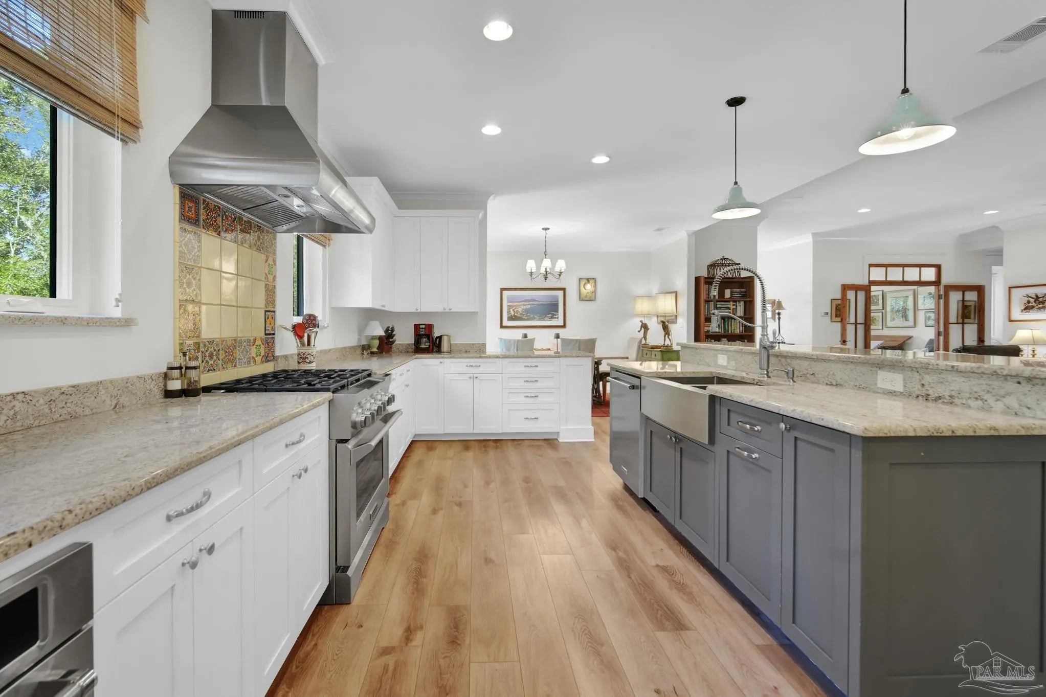 Experience quality & style in this beautifully designed, meticulously maintained coastal cottage featuring 3 BR, 3.5 BA, 2663 SF main house + 180 SF detached. A must-see property! As you approach, a wide front porch that spans the entire facade welcomes you, 8' doors, and high ceilings throughout, complemented by an abundance of windows for natural light. Preserved trees enhance privacy & natural beauty. Entertain friends & family in the expansive Kitchen/Dining/Living area with a gas fireplace that flows into the huge screened-in porch, featuring a built-in natural gas grill & hood. (A $1,200 allowance is available for a new 36" grill, current one does not convey.) Enjoy background music through indoor & outdoor speakers. The Dining Area comfortably seats 10. (Sentimental wall sconces will be replaced & do not convey.)The Office off the Living Room boasts custom doors and transom. The Kitchen & Butler's Pantry are a cook's dream with ample cabinets, granite countertops, and high-end stainless appliances, including a 36" 6 Burner KitchenAid Dual Fuel Range, a 5-door KitchenAid French Door Refrigerator, a KitchenAid Dishwasher, a Deep Stainless Apron Front Sink, and a KitchenAid Microwave Drawer. The Butler's Pantry features Perlick Undercounter Wine/Beverage Chiller and top-hat style Ice Maker. Adjacent to the Kitchen are the laundry, half bath, and hall leading to the detached 2-car garage & 180 SF Man Cave. The Master Suite is spacious enough for a CA King bed & more. Double glass doors open to the back porch. The MBA includes a tiled shower, freestanding tub, two closets, a dual granite vanity, and a water closet. BR 2 & 3 are generously sized with ensuite baths, granite vanities, and walk-in closets. Bathroom flooring is porcelain tile, while a high-quality wide plank LVP in a neutral coastal tone runs throughout the remainder. All appliances, including washer & dryer, convey. Additional features include a whole house generator, termite bond & sprinkler system.