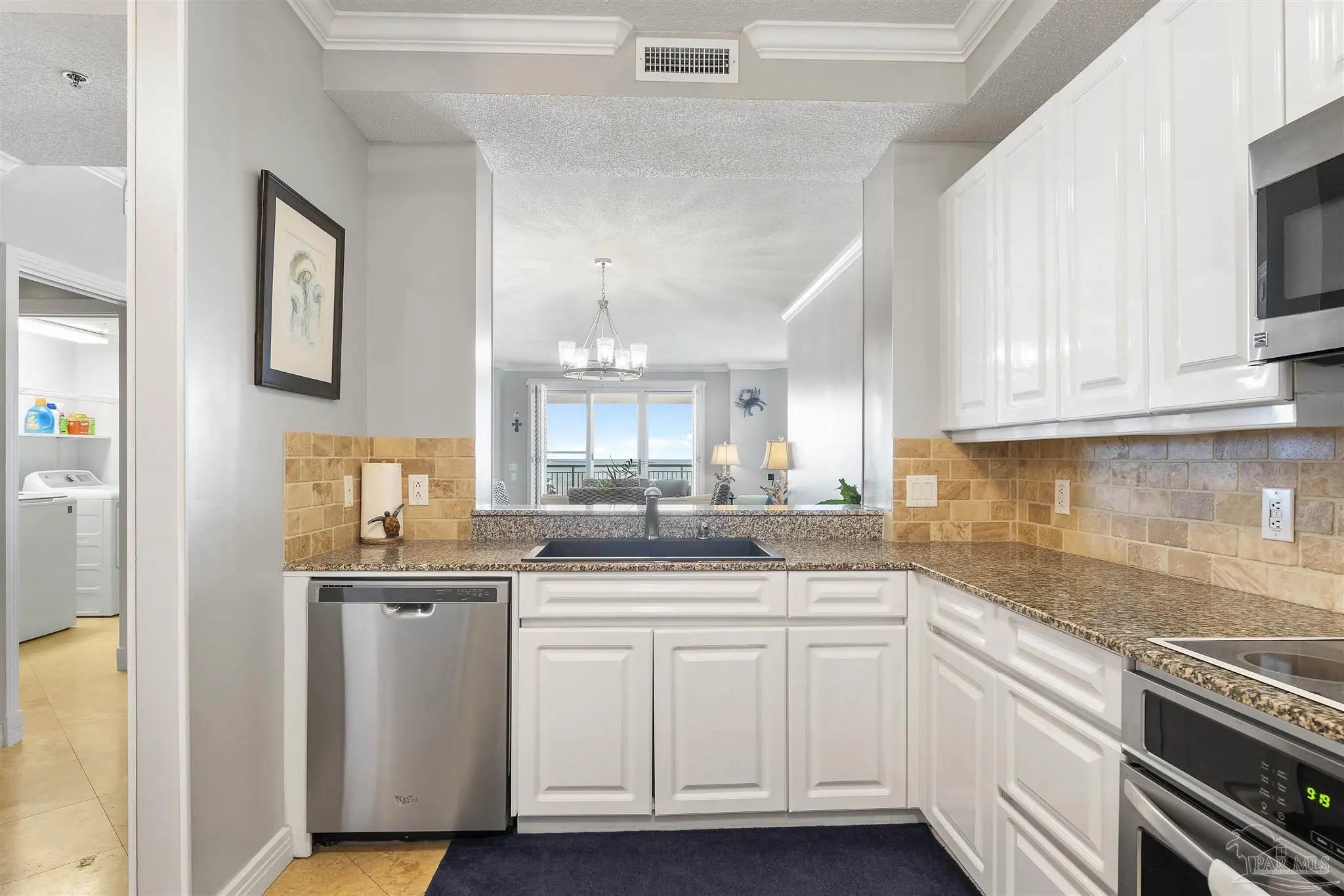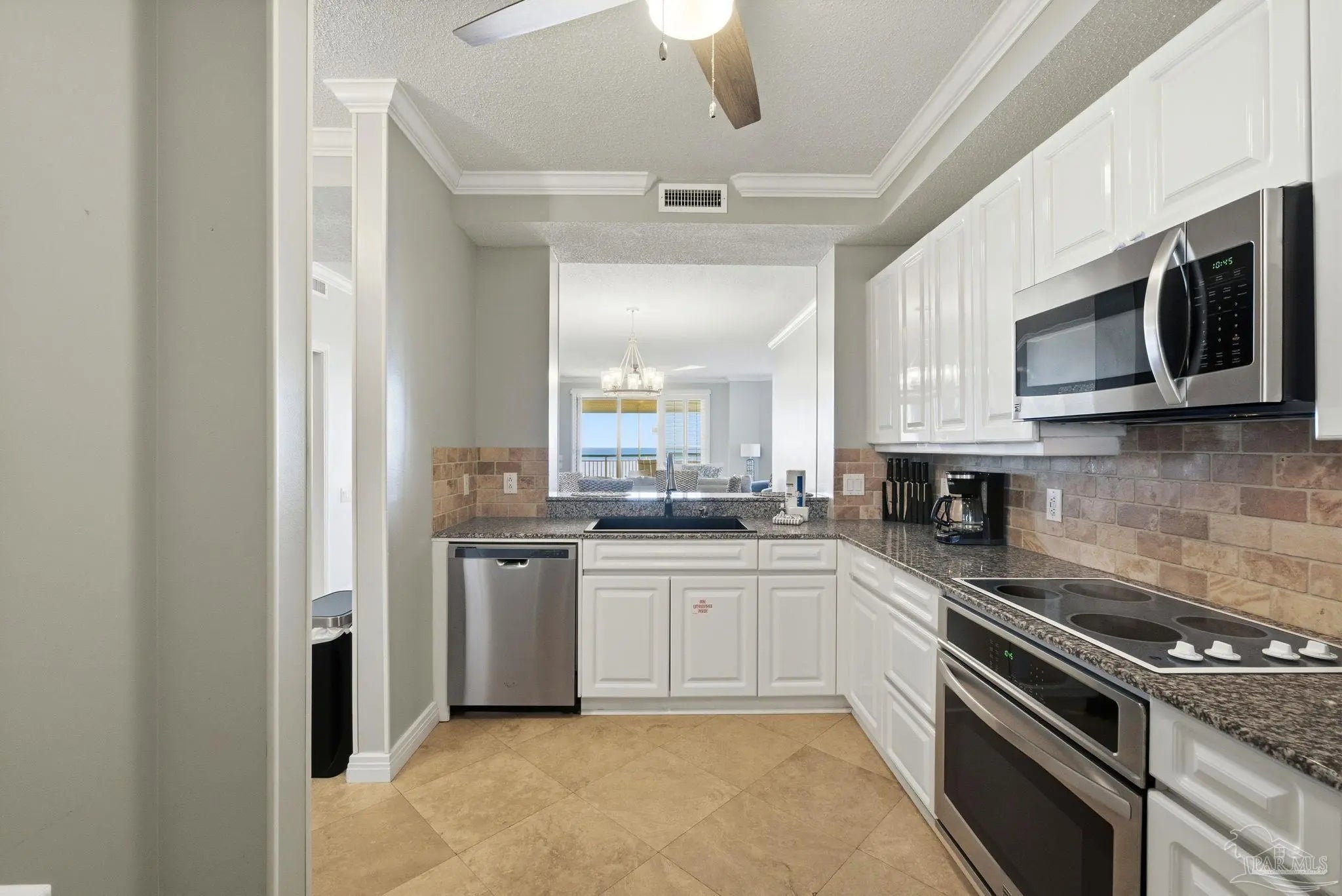 Experience the ideal balance of comfort, style, and Gulf-front living in this beautifully upgraded 2-bedroom, 2-bath condominium. Situated on the second floor, the residence offers an optimal elevation—providing both privacy and uninterrupted western views of the Gulf, perfect for enjoying spectacular sunsets. Thoughtfully updated throughout, this light-filled condo features crown molding, coastal-inspired paint tones, and luxury vinyl plank flooring in both bedrooms. Additional enhancements include plantation shutters, a custom walk-in closet in the primary suite, remodeled bathrooms, stainless steel appliances, and updated lighting in the kitchen, dining, and hallway areas. Nine-foot ceilings and an open floor plan create an inviting, airy atmosphere that feels like home the moment you enter. Step onto the expansive Gulf-front balcony to relax and take in the sights and sounds of the shoreline—an ideal setting for morning coffee or evening sunsets over the water. Beach Colony is a gated, resort-style community offering exceptional amenities, including three swimming pools (one indoor with spa), a fitness center, tennis and pickleball courts, a dog park, picnic and grilling areas, and on-site HOA management for added convenience. Located within walking distance to the National Seashore, this property offers an unmatched coastal lifestyle. Whether you are seeking a turnkey rental investment or a personal Gulf-front retreat, this exceptional condo presents a rare opportunity on Perdido Key. Schedule your showing today.