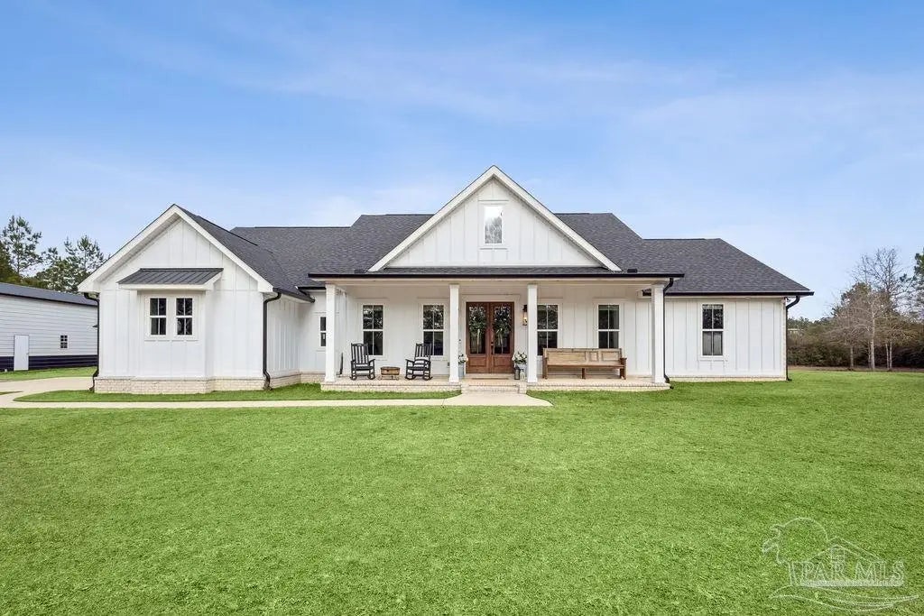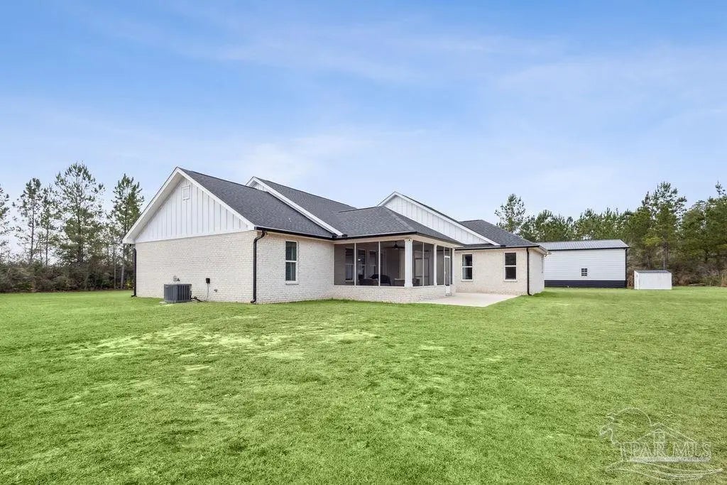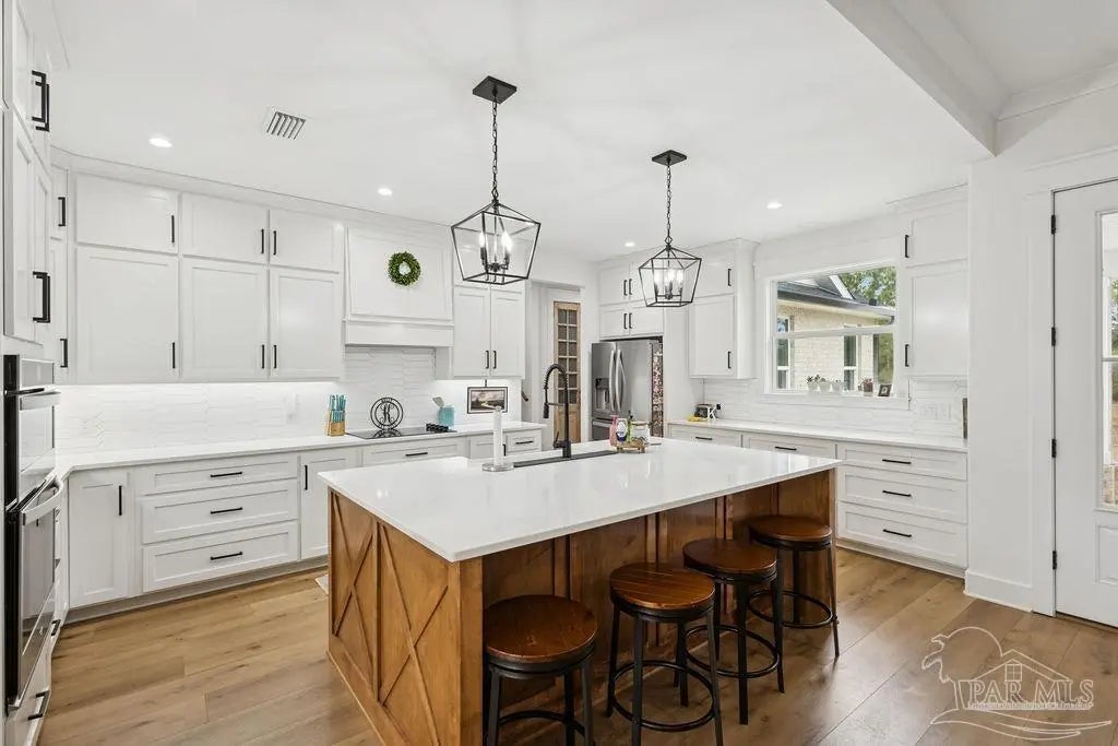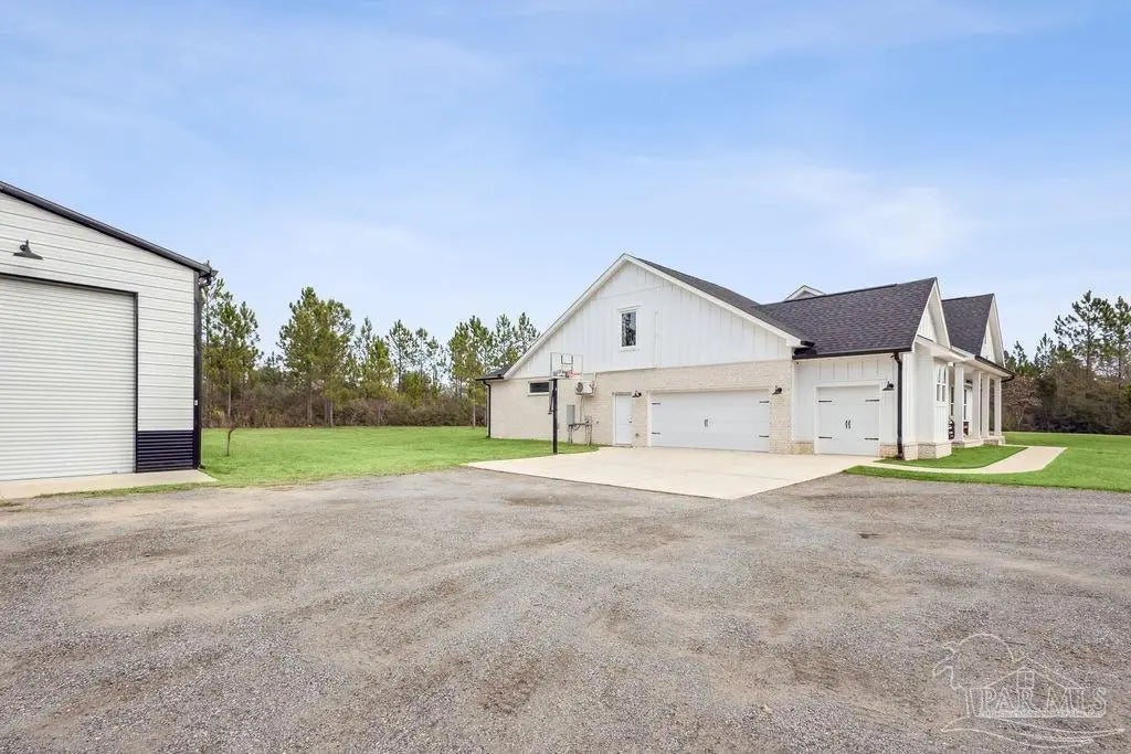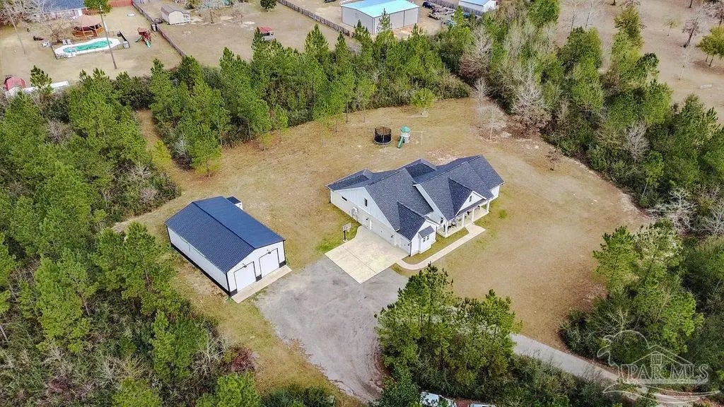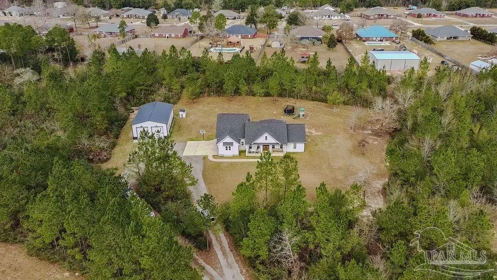 Wallace Lake School Zone | 4 Acres | Gated North Diamond Estates | 4 Bed/2 Bath + Office/Bonus | 30x50 Enclosed Shop Nestled on a quiet cul-de-sac within the prestigious, Gated North Diamond Estates, this exceptional custom-built home by Jameson Construction offers privacy, craftsmanship, and space in a highly sought-after estate community surrounded by large parcels and luxury homes. The exterior showcases timeless brick with board-and-batten accents, black gutters, and permanent Govee exterior lighting. Inside, thoughtful design and upscale finishes are evident throughout, including LVP flooring throughout, tile bathrooms, shiplap entryway, and custom ceiling beams in the living room. The living area features an electric fireplace with hidden media controls and clean built-in detailing. The kitchen is outfitted with custom soft-close cabinetry, built-in appliances, and a custom pantry with Charles Phillips doors and built-ins. The laundry room continues the elevated feel with built-in cabinetry, a sink, and brick paver flooring. The primary suite offers a spacious tiled shower, double vanity, large walk-in closet, and a dedicated makeup vanity. Additional bedrooms feature custom backdrops, and built-ins are included in select closets. A flexible playroom with a closet provides versatility and can function as a 4th bedroom if desired. Upstairs, an additional 300± sq ft of finished space with LVP flooring and a mini-split system offers excellent bonus or flex space. Outdoor living is equally impressive with a large screened porch , 30x50 enclosed shop and 4 acres of usable land. Located in one of the area’s most desirable gated communities, this home offers the perfect balance of luxury, functionality, and privacy—just minutes from town.