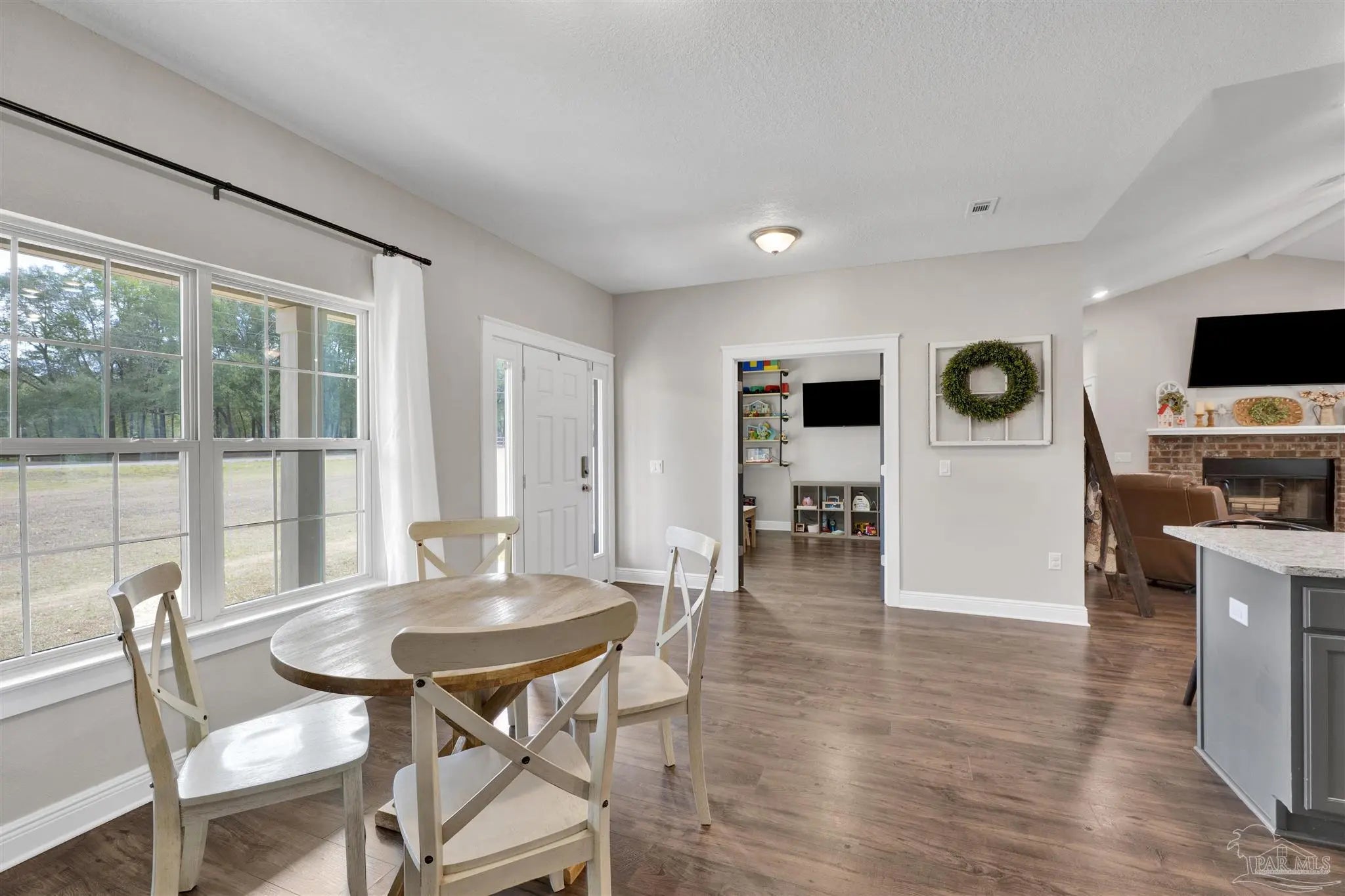 Immaculate and move-in ready, this stunning 4-bedroom, 3-bath home is nestled on a peaceful 1.82-acre lot, offering the perfect blend of space, comfort, and privacy. Designed with an open living concept, the home features luxury vinyl plank flooring throughout all main living areas for both style and durability. The great room is open and spacious, highlighted by cathedral ceilings, a cozy wood-burning fireplace, and French doors that lead to the backyard—ideal for indoor-outdoor living. The dining area flows seamlessly into the kitchen, which is well-appointed with a center island, granite countertops, breakfast bar, stainless steel appliances, and a charming wood-encased hood vent that adds warmth and character. A dedicated office provides the perfect space for working from home or managing daily tasks. The split bedroom floor plan offers excellent privacy for the primary suite, featuring a large bedroom with plush carpet and a tray ceiling. The spa-like primary bath includes tile flooring, double vanities, a garden tub, a separate walk-in shower, and his-and-her walk-in closets. Three additional bedrooms are generously sized and include plush carpet, ceiling fans, and large closets. Two of the bedrooms share a Jack-and-Jill bath with tile floors, a single vanity, and a tub/shower combo, while an additional full bath offers the same finishes. Conveniently located off the kitchen, the spacious laundry room includes an exterior door leading to the backyard. Outside, the backyard is perfect for entertaining with an open patio and a wooden deck that leads to an above-ground swimming pool—an ideal setting for relaxing and hosting friends and family. This immaculate home offers peaceful living with thoughtful design throughout.