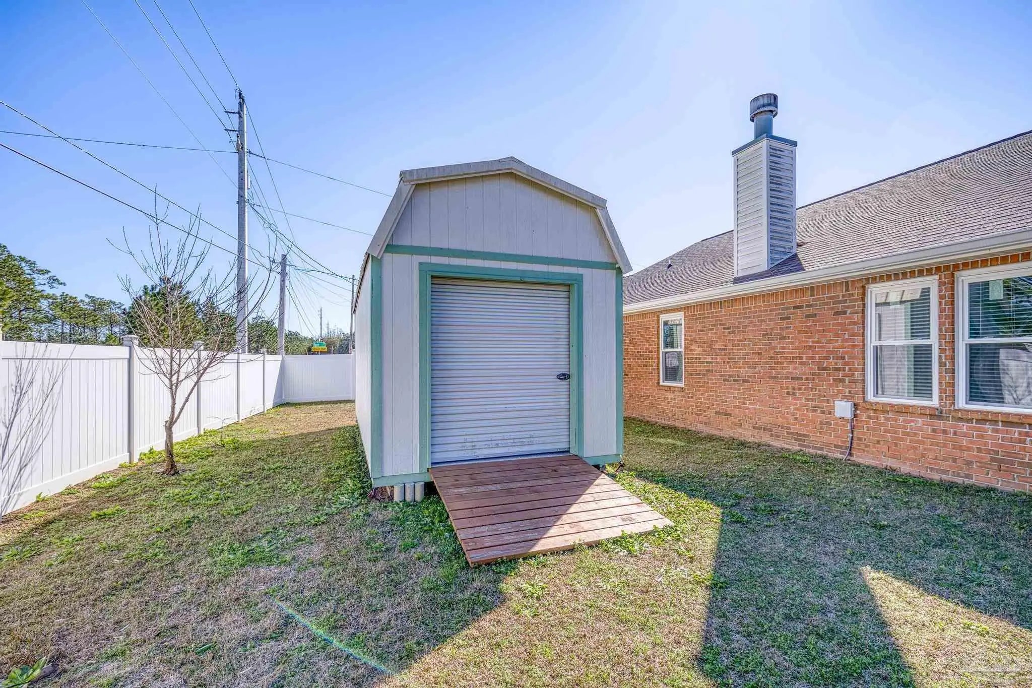 This unique property has loads of potential, offering a main home with four bedrooms and two bathrooms, plus a custom accessory building on a great corner lot. The house features tile floors throughout and a handy split floor plan. You'll find a kitchen with a center island, walk-in pantry, and a spacious dining area. The great room's centerpiece is a stone-front, wood-burning fireplace. In the primary suite, each person gets their own walk-in closet, and there are dual sinks, a walk-in shower, and a garden tub. Three more bedrooms and another bathroom are tucked away down a private hallway. The custom accessory building, with over 1,000 square feet, gives you plenty of options. With an unfinished interior, it could become an office, storage, game room, in-law suite or STR.