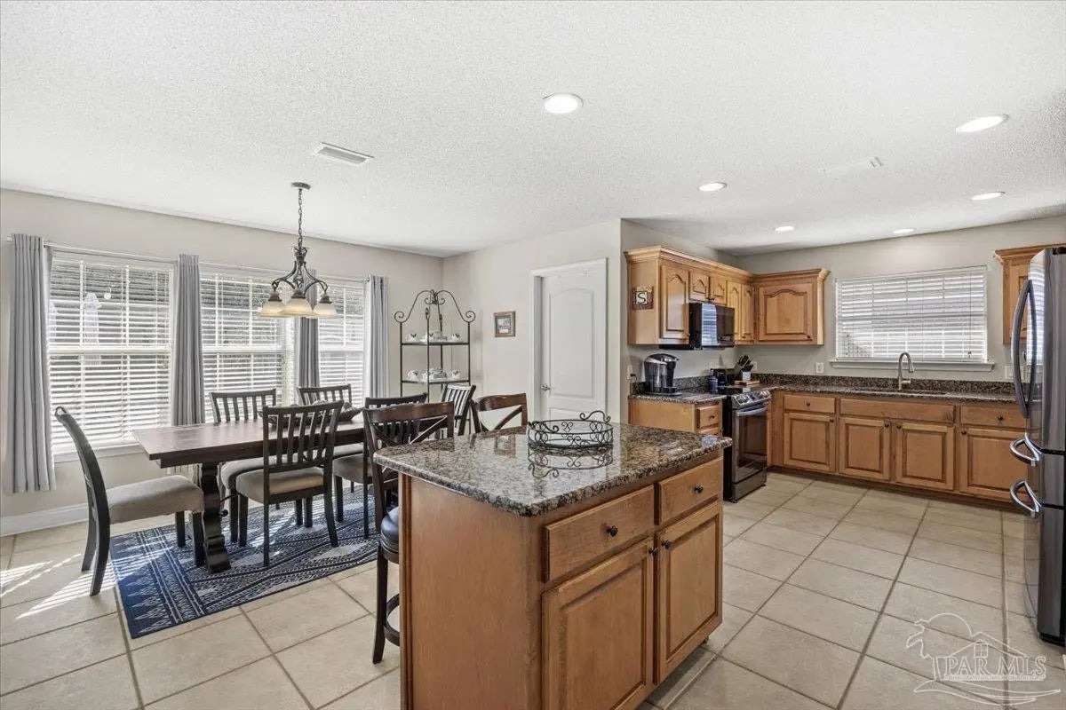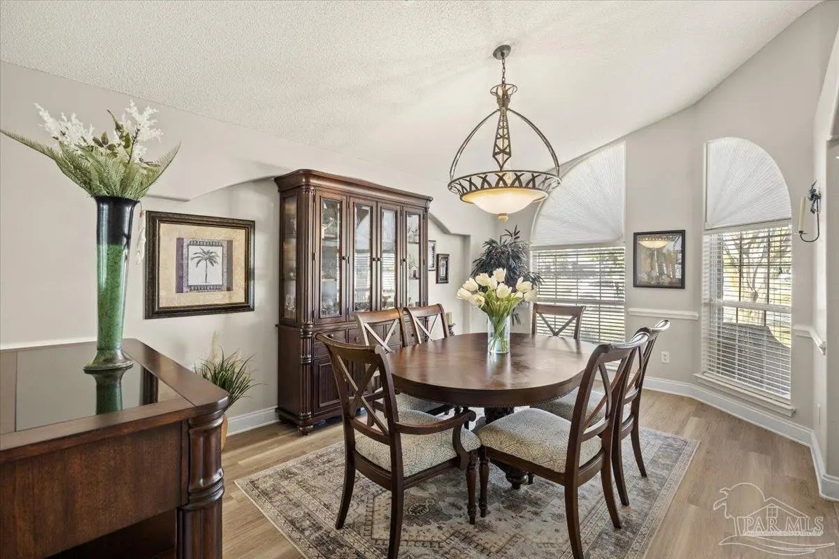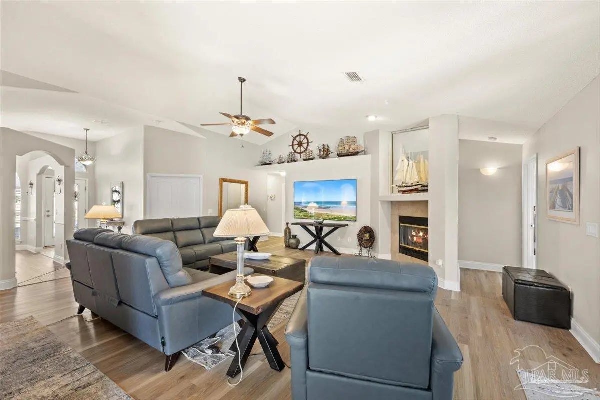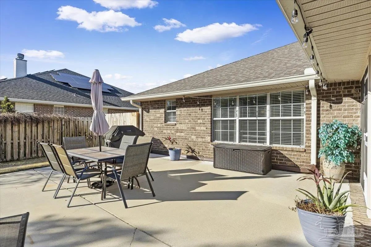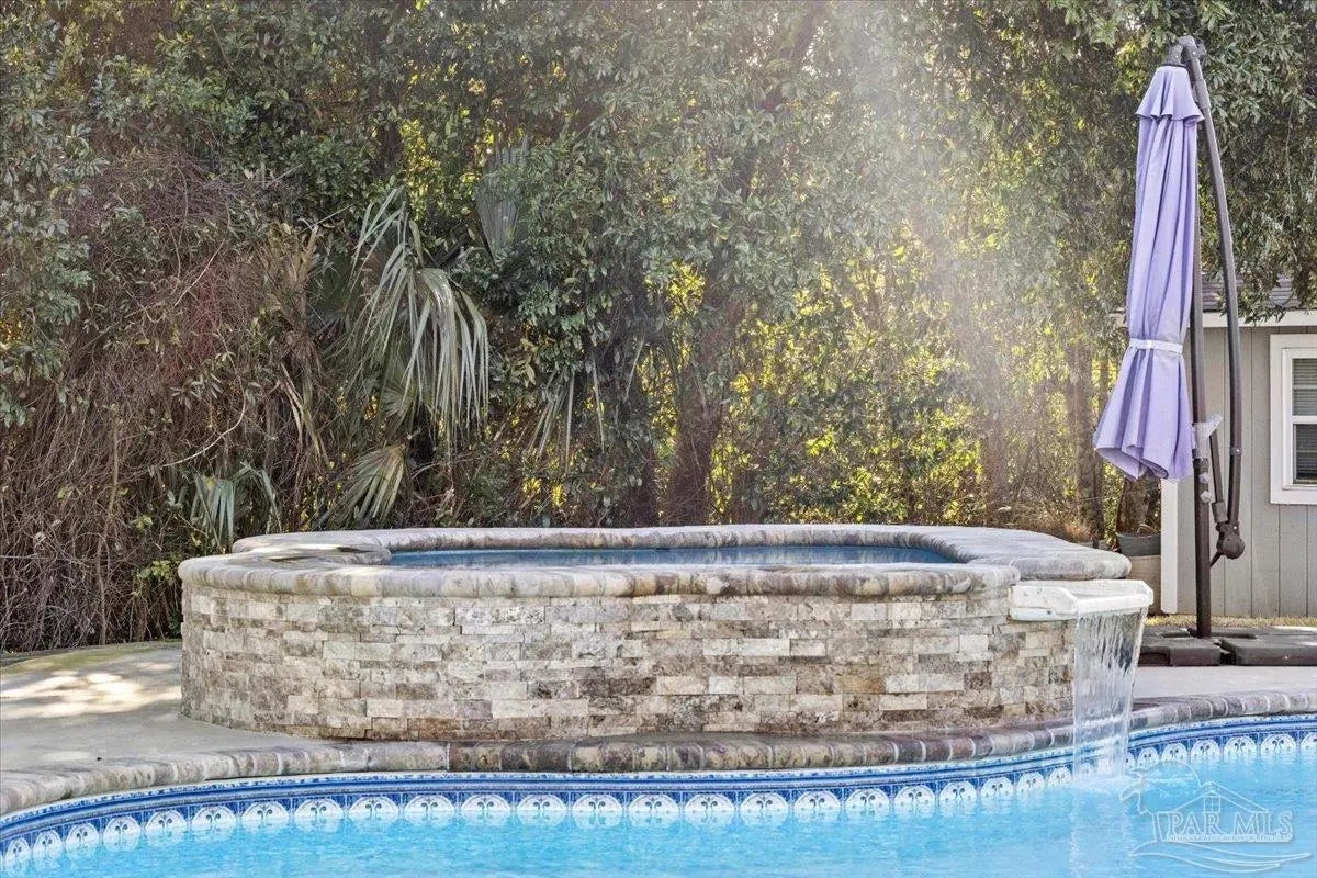Welcome to your peaceful retreat in Woodlawn Heights! This meticulously maintained, 4-bedroom, 2.5-bath home offers 2,548 square feet of move-in ready comfort in a quiet Gulf Breeze neighborhood. Inside, neutral colors and high ceilings create a bright, airy feel. The spacious great room features a cozy corner fireplace. The inviting kitchen has a breakfast bar, granite counterttops, updated stainless steel appliances and flows seamlessly into the dining area. The primary suite is a true sanctuary with a spacious bedroom, ensuite featuring double sinks, a soaking tub, a separate shower, and 2 walk-in closets. Your private backyard paradise features a heated saltwater pool (installed in 2022) that backs to no rear neighbors, with pond views, setting the tone for serene relaxation and entertaining. Enjoy the screened porch and a handy shed with electricity. Recent updates provide ultimate peace of mind: a new roof (2023), an epoxy-coated garage, a reclaimed-water sprinkler system, and a transferable termite bond. The established Woodlawn Heights community offers sidewalks, walking trails, a neighborhood park, an on-site middle school, and HOA amenities including boat/RV storage. Just a short drive away, experience the vibrant local lifestyle at The Eatery on Highway 98—a premier food truck park and community gathering spot where you can enjoy diverse local cuisine from rotating trucks and relax in a family and dog-friendly setting with games. This home perfectly combines privacy, modern updates, and fantastic community living.