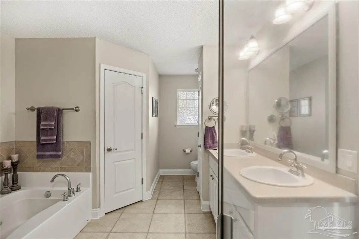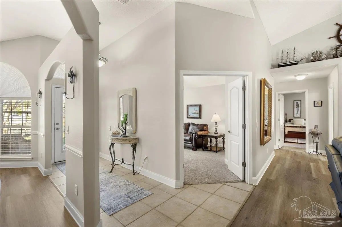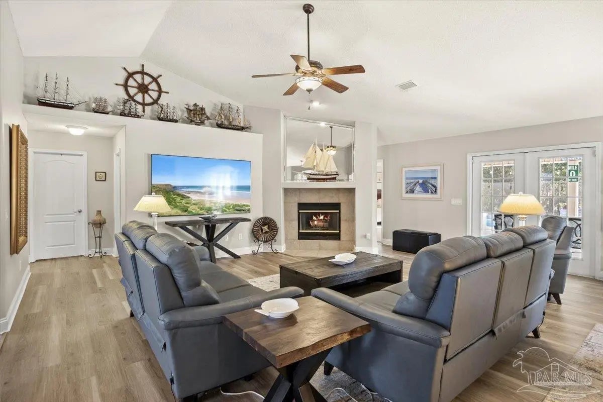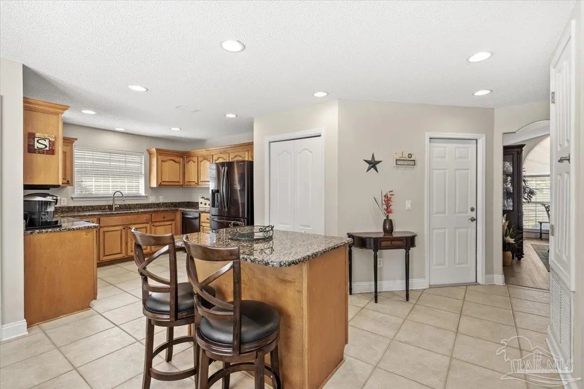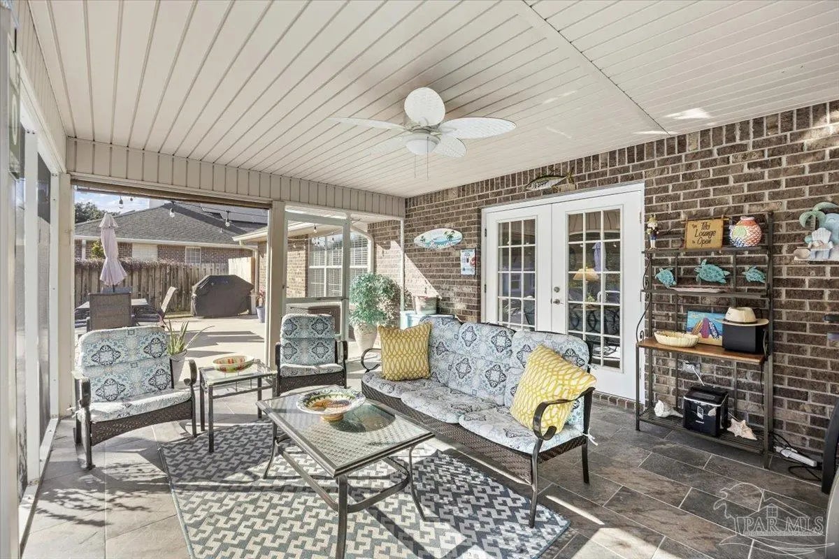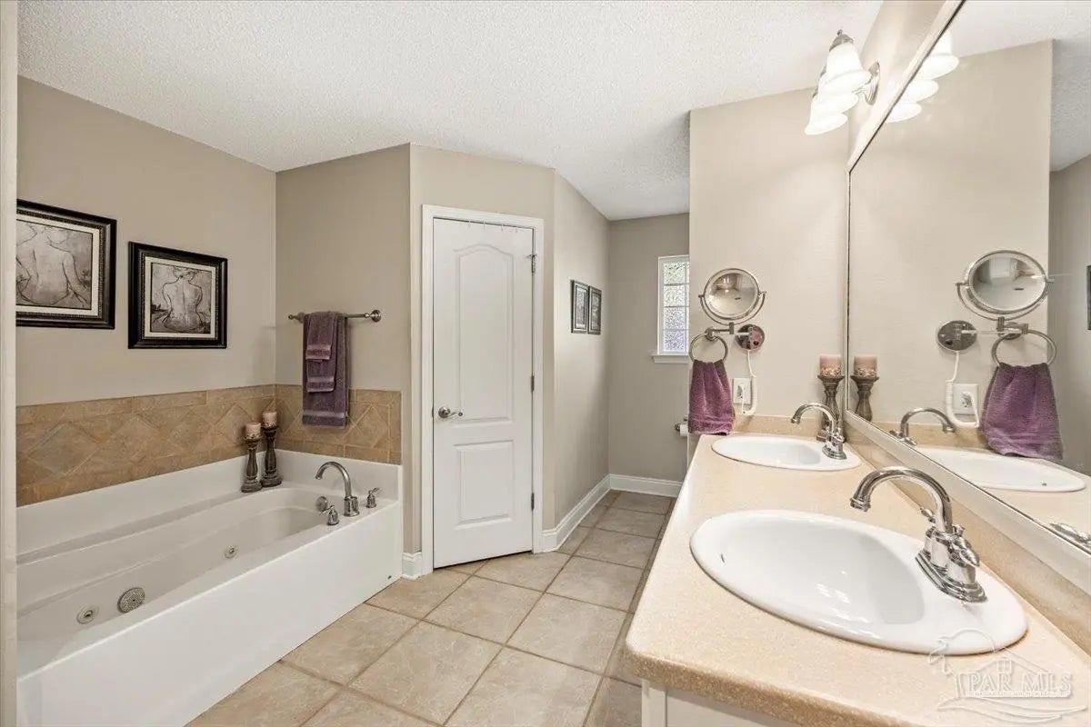 Welcome to your peaceful retreat in Woodlawn Heights! This meticulously maintained, 4-bedroom, 2.5-bath home offers 2,548 square feet of move-in ready comfort in a quiet Gulf Breeze neighborhood. Inside, neutral colors and high ceilings create a bright, airy feel. The spacious great room features a cozy corner fireplace. The inviting kitchen has a breakfast bar, granite counterttops, updated stainless steel appliances and flows seamlessly into the dining area. The primary suite is a true sanctuary with a spacious bedroom, ensuite featuring double sinks, a soaking tub, a separate shower, and 2 walk-in closets. Your private backyard paradise features a heated saltwater pool (installed in 2022) that backs to no rear neighbors, with pond views, setting the tone for serene relaxation and entertaining. Enjoy the screened porch and a handy shed with electricity. Recent updates provide ultimate peace of mind: a new roof (2023), an epoxy-coated garage, a reclaimed-water sprinkler system, and a transferable termite bond. The established Woodlawn Heights community offers sidewalks, walking trails, a neighborhood park, an on-site middle school, and HOA amenities including boat/RV storage. Just a short drive away, experience the vibrant local lifestyle at The Eatery on Highway 98—a premier food truck park and community gathering spot where you can enjoy diverse local cuisine from rotating trucks and relax in a family and dog-friendly setting with games. This home perfectly combines privacy, modern updates, and fantastic community living.