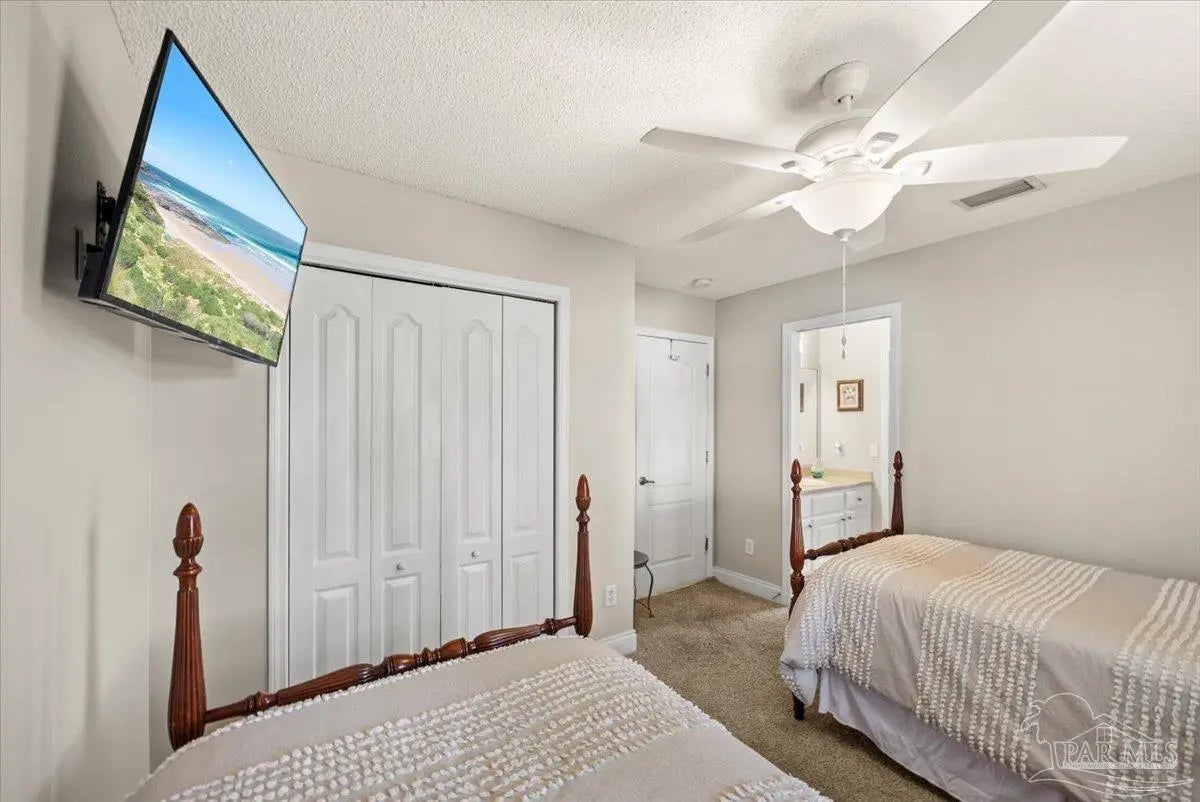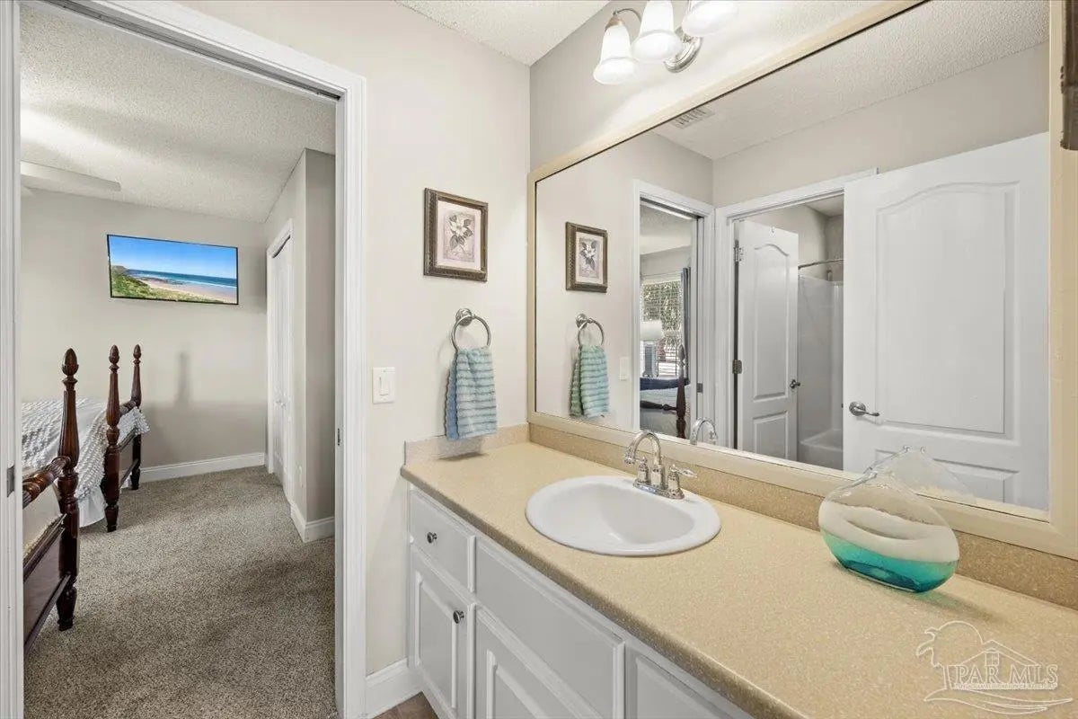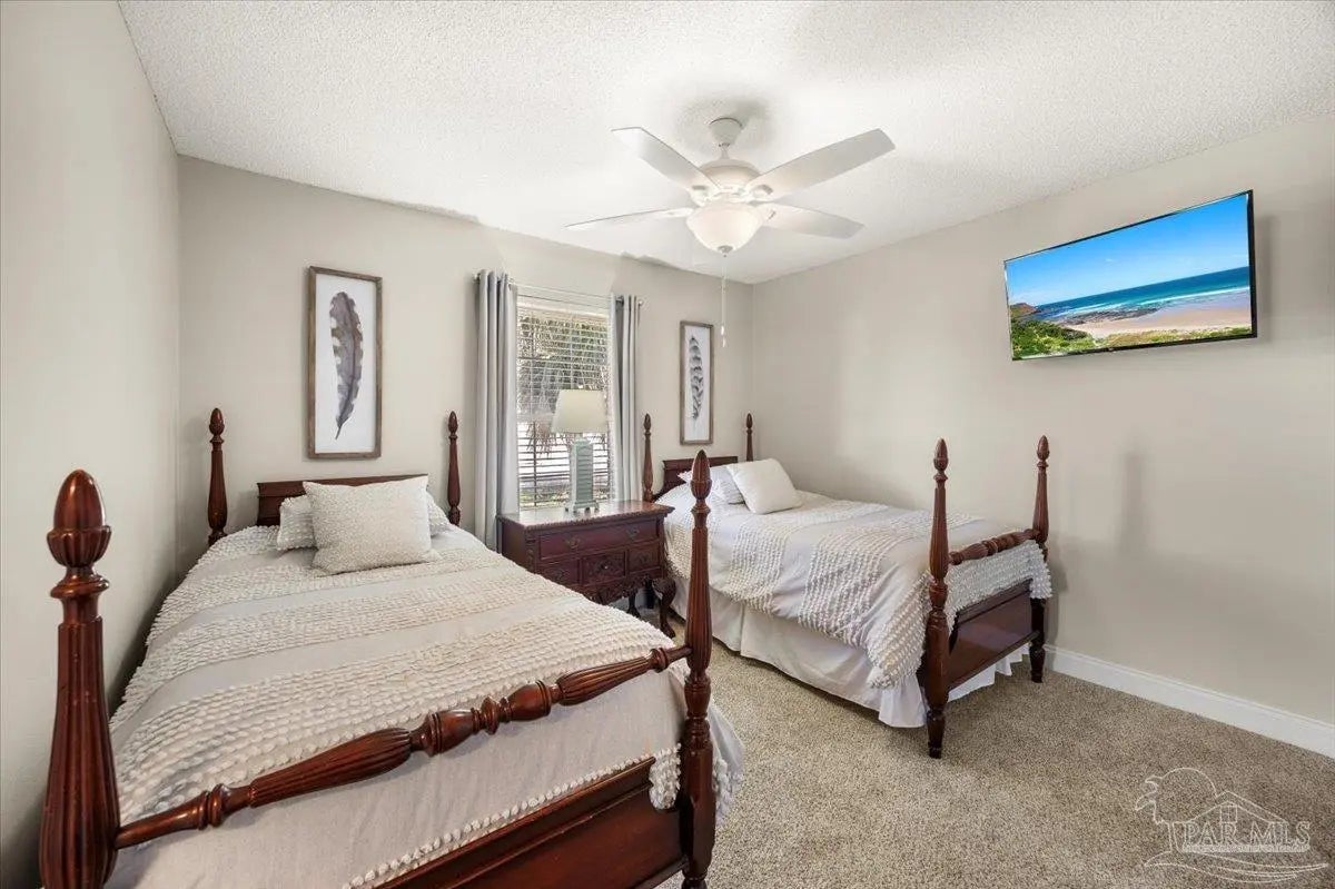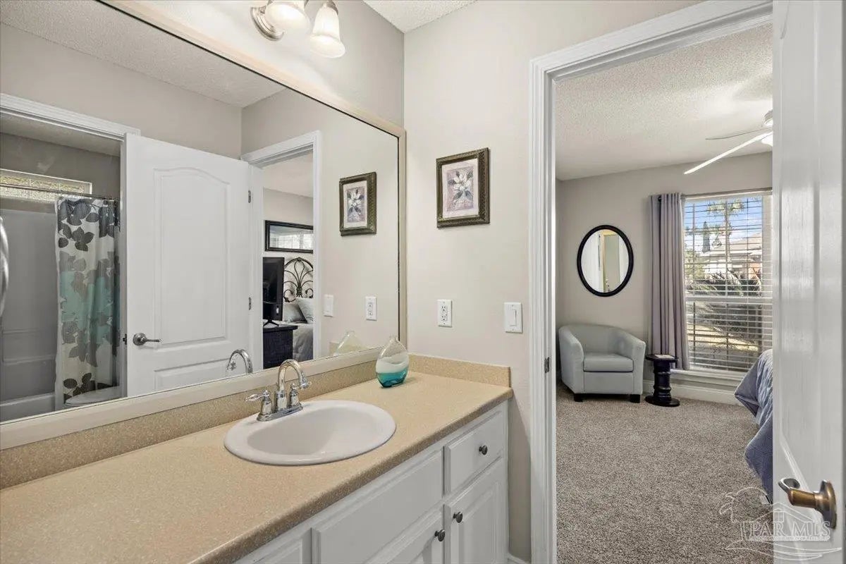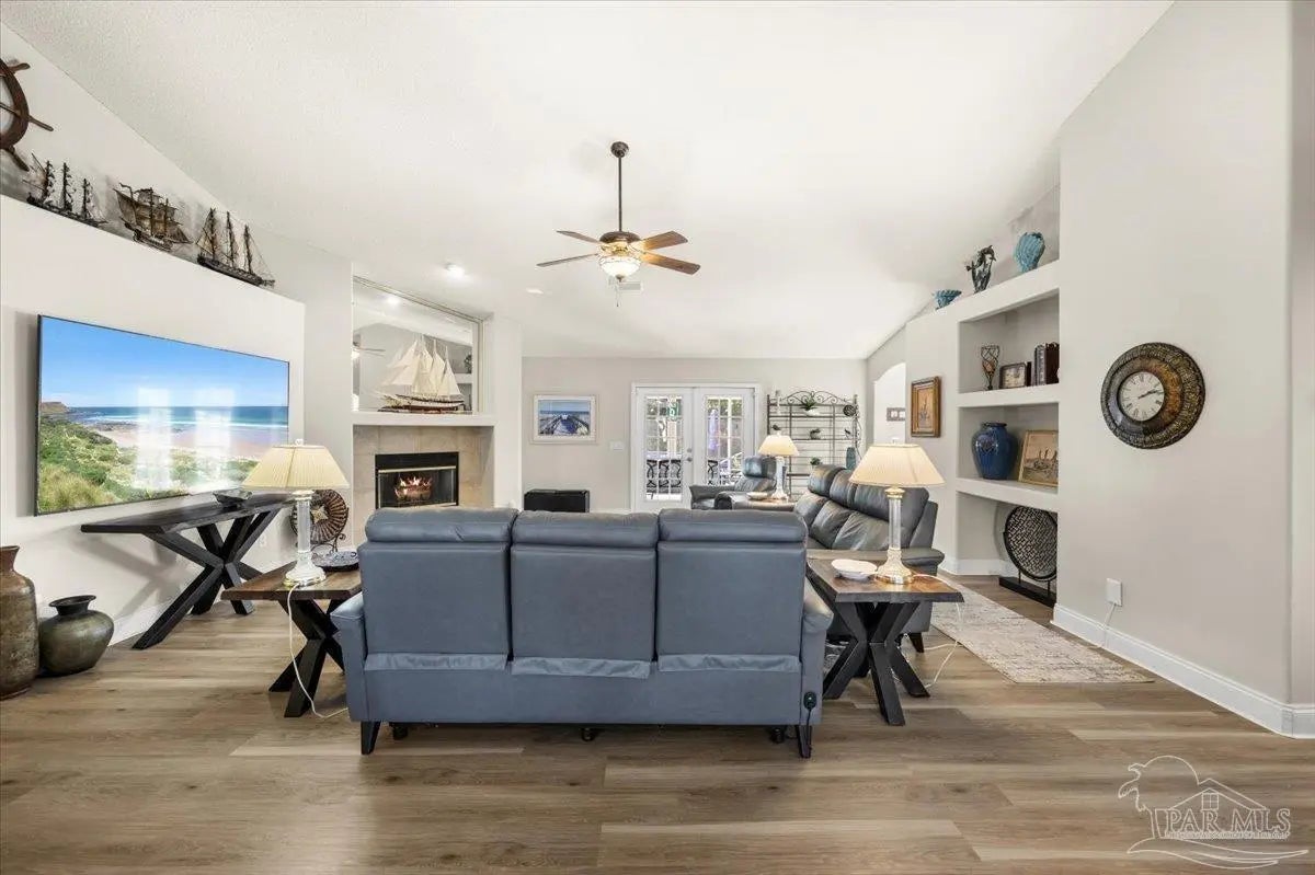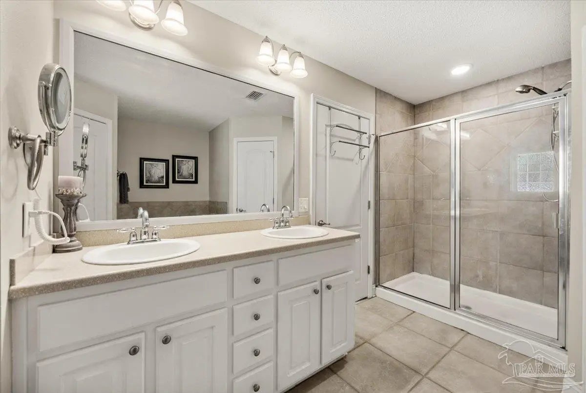 Welcome to your peaceful retreat in Woodlawn Heights! This meticulously maintained, 4-bedroom, 2.5-bath home offers 2,548 square feet of move-in ready comfort in a quiet Gulf Breeze neighborhood. Inside, neutral colors and high ceilings create a bright, airy feel. The spacious great room features a cozy corner fireplace. The inviting kitchen has a breakfast bar, granite counterttops, updated stainless steel appliances and flows seamlessly into the dining area. The primary suite is a true sanctuary with a spacious bedroom, ensuite featuring double sinks, a soaking tub, a separate shower, and 2 walk-in closets. Your private backyard paradise features a heated saltwater pool (installed in 2022) that backs to no rear neighbors, with pond views, setting the tone for serene relaxation and entertaining. Enjoy the screened porch and a handy shed with electricity. Recent updates provide ultimate peace of mind: a new roof (2023), an epoxy-coated garage, a reclaimed-water sprinkler system, and a transferable termite bond. The established Woodlawn Heights community offers sidewalks, walking trails, a neighborhood park, an on-site middle school, and HOA amenities including boat/RV storage. Just a short drive away, experience the vibrant local lifestyle at The Eatery on Highway 98—a premier food truck park and community gathering spot where you can enjoy diverse local cuisine from rotating trucks and relax in a family and dog-friendly setting with games. This home perfectly combines privacy, modern updates, and fantastic community living.