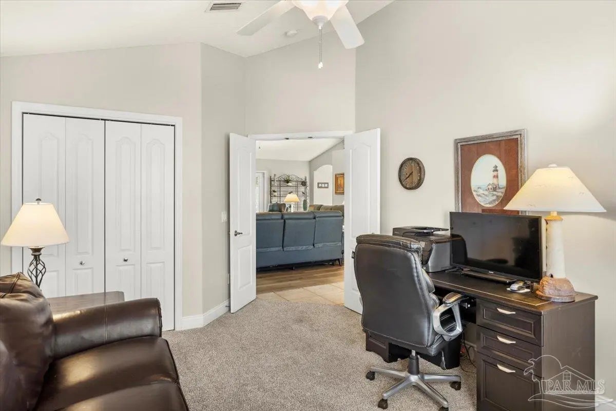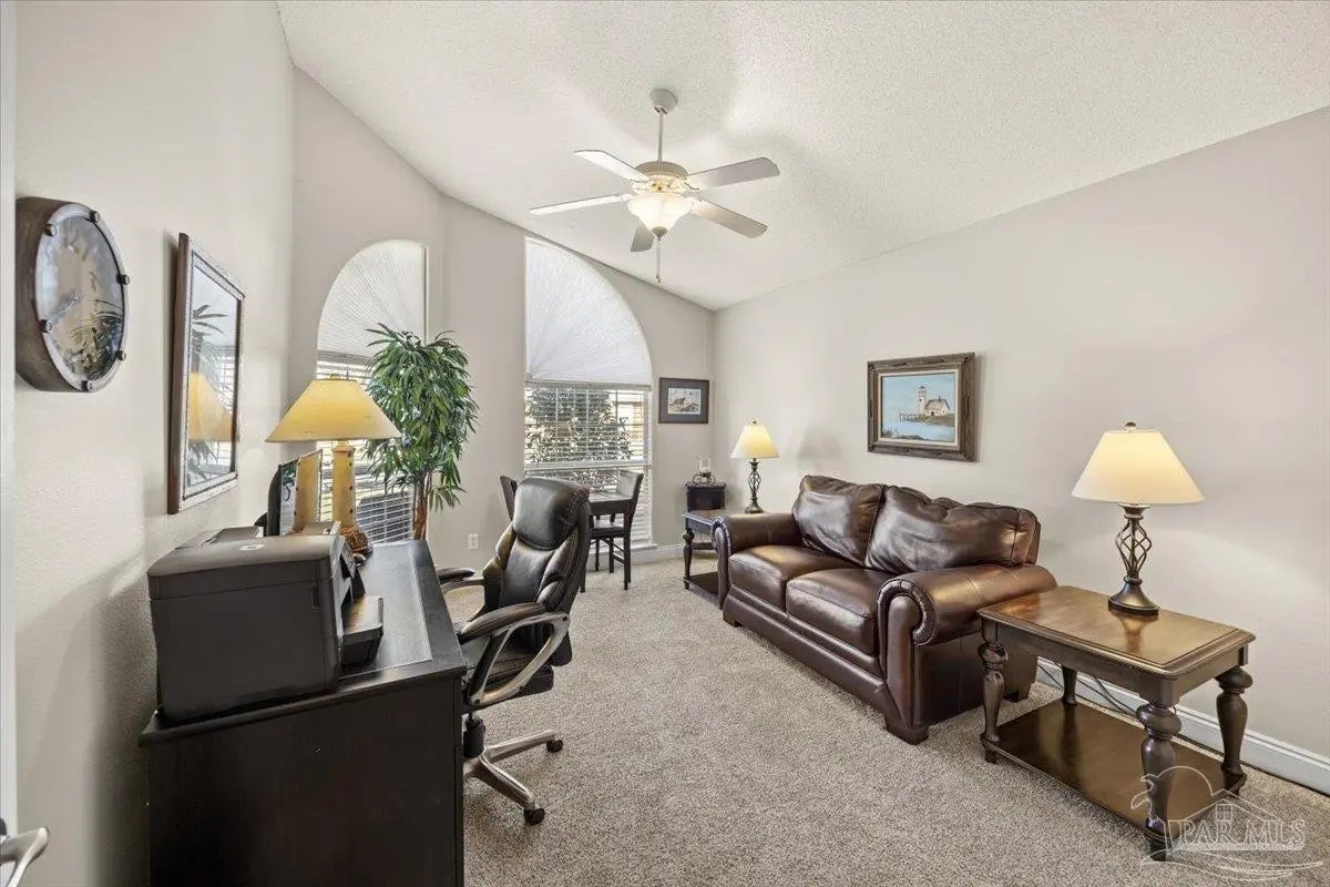 - Baseboards, Ceiling Fan(s), Chair Rail, Crown Molding, High Ceilings, Plant Ledges, Vaulted Ceiling(s), Office/Study