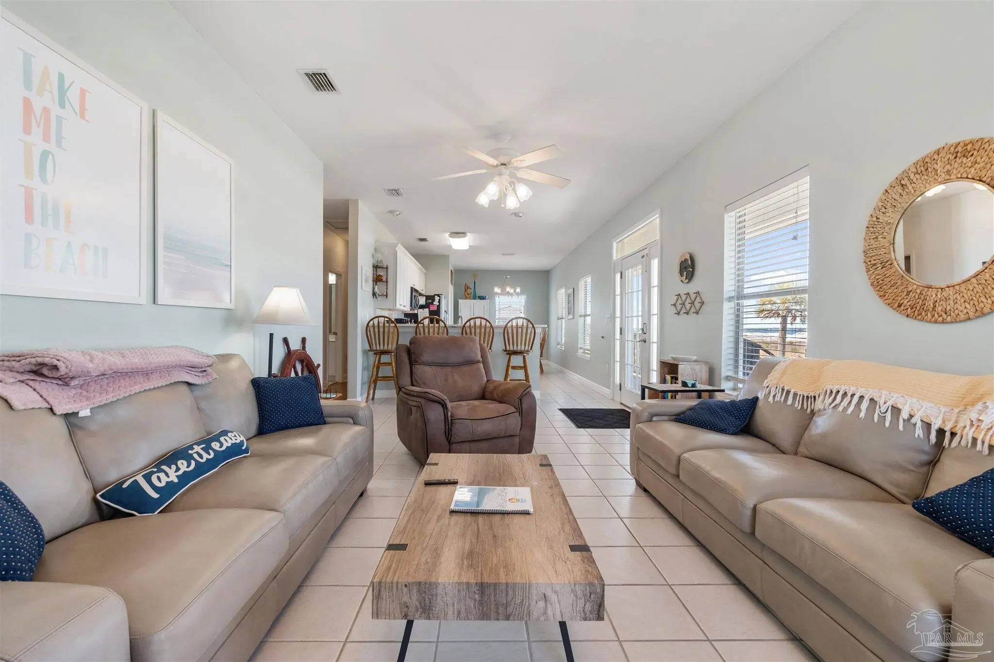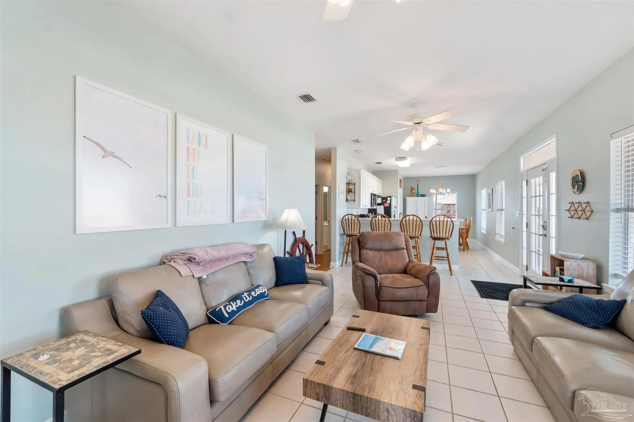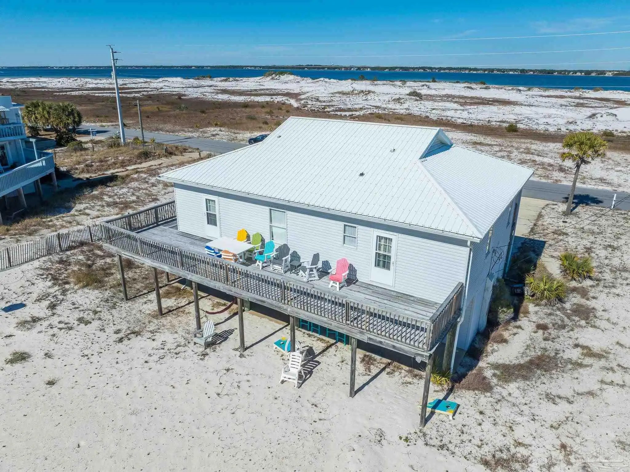 Welcome to Dune Side Retreat on beautiful Navarre Beach! This 3 bedroom, 2 bathroom beach home sits facing the Intercoastal waterway amongst sugar white sands. Each of the 3 bedrooms is south-facing, with the owner's bedroom and one guest bedroom leading to the oversized wraparound balcony. The balcony is also accessible from the living room and is an outdoor living space. The open floor plan is perfect for entertaining with the kitchen and eat in niche flowing over to the living room. A laundry room is conveniently located by the kitchen. Currently, the bottom floor is being used as a game room featuring a kitchenette and additional bedroom and bathroom-perfect for spreading out. The home is fully furnished and ready to be a beachside home or investment rental. Schedule a showing today to see 7863 White Sands Blvd and start living the beach life! *additional pictures coming soon. Text list agent for more!*