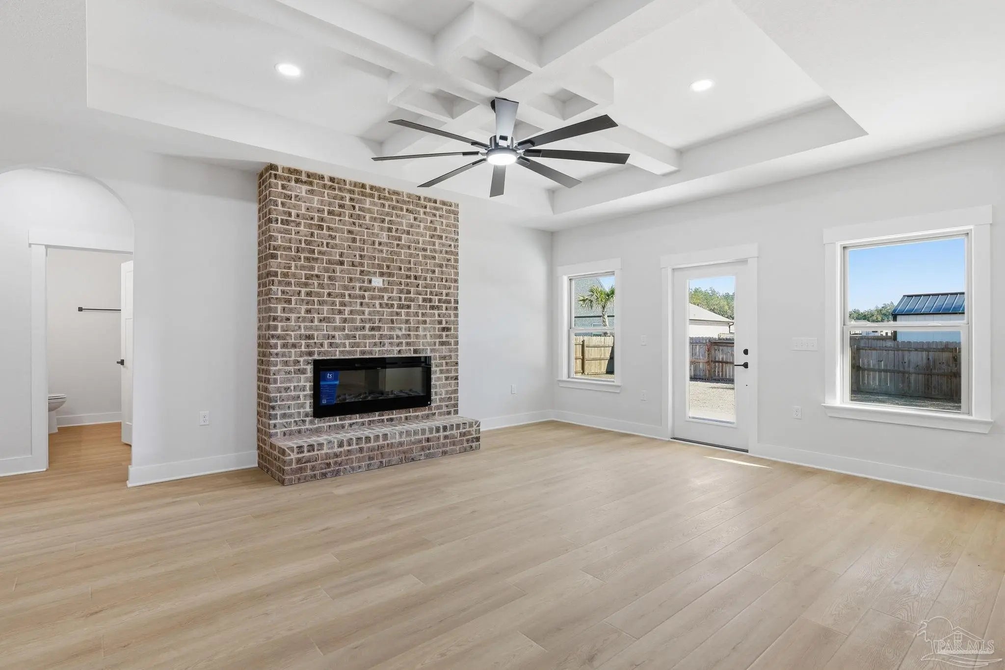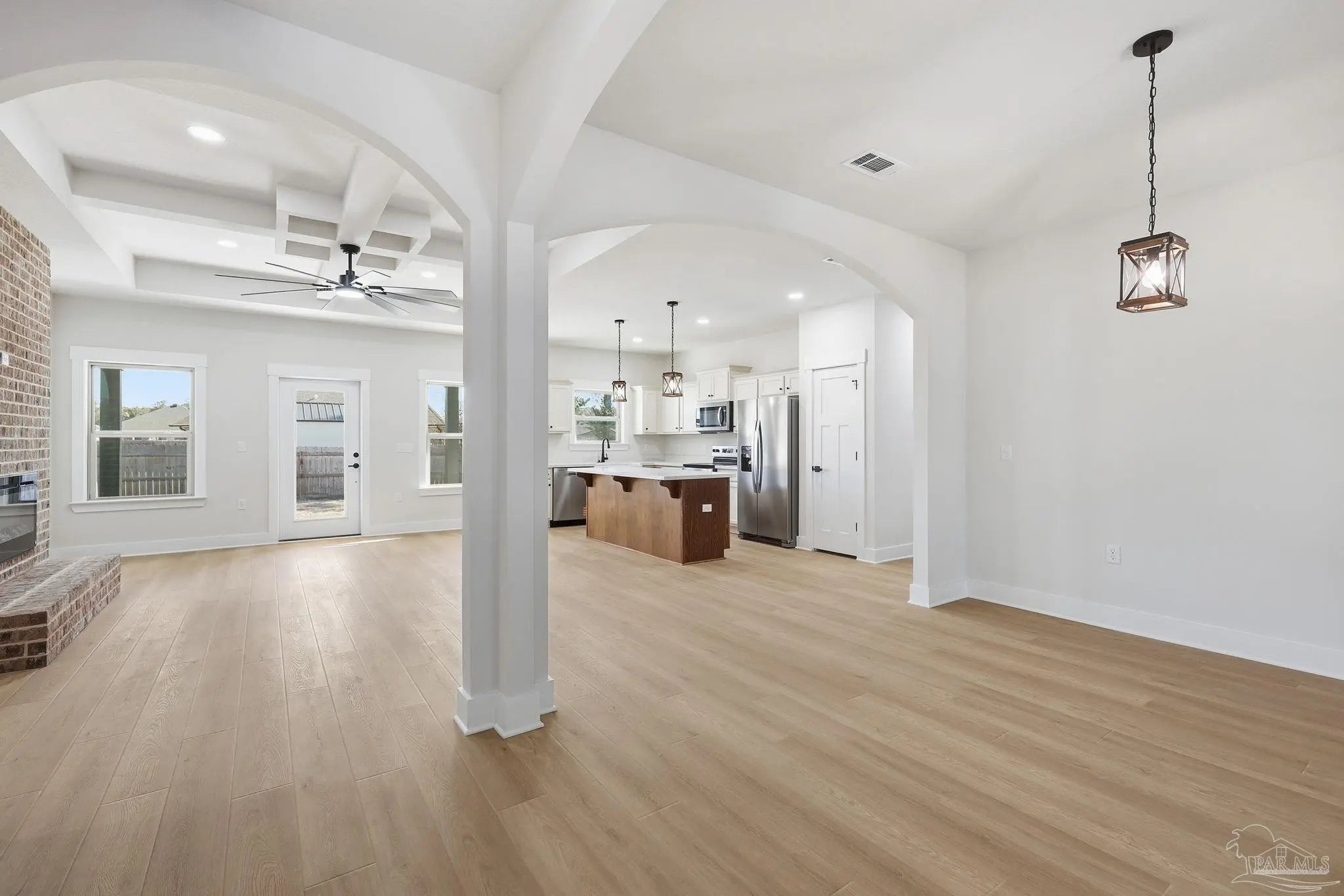 Welcome to your dream home, a beautifully designed new construction residence that perfectly blends modern elegance with inviting charm, As you pull up, you’re greeted by an expansive porch, ideal for enjoying morning coffee amidst meticulously landscaped garden. Step inside, you’ll be mesmerized by the gorgeous round archways that lead you into a bright, open living space designed for both relaxation and entertaining. The recessed lighting throughout the living areas and primary suite adds a warmth and creating the perfect ambiance for any occasion. The heart of the home is undoubtedly the gourmet kitchen, a chef’s dream featuring a farm-style deep sink, Whirlpool appliances, and luxurious quartz countertops. Picture yourself whipping up culinary masterpieces while friends gather around the island, equipped with convenient outlets for all your gadgets. The elegant accent brick wall, complete with a cozy fireplace, sets the scene for memorable gatherings. Four spacious bedrooms, everyone in the family has their own sanctuary. Each additional bedroom comes with large step-in closets, ensuring ample storage. The primary suite is a true retreat with trey ceiling, the luxurious primary bath, where a frosted picture window above the tub bathes the space in soft light, offering a peaceful oasis for relaxation. Don’t forget about the massive walk in closet. As you explore further, you’ll find the laundry mudroom thoughtfully designed with built-ins for hanging coats and backpacks, keeping your home organized and clutter-free. The guest bath features a stylish double vanity and a linen closet, making mornings smooth and hassle-free. Every detail, from the wood trim around doors and windows to the beautiful fans in each room with remote controls, speaks to the quality and craftsmanship that make this home truly special. This isn’t just a house, its a place where life unfolds, filled with laughter and cherished memories. Don’t miss the chance to make this stunning home yours.
