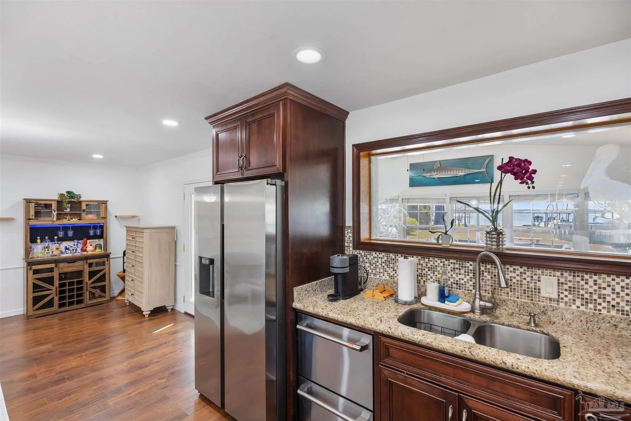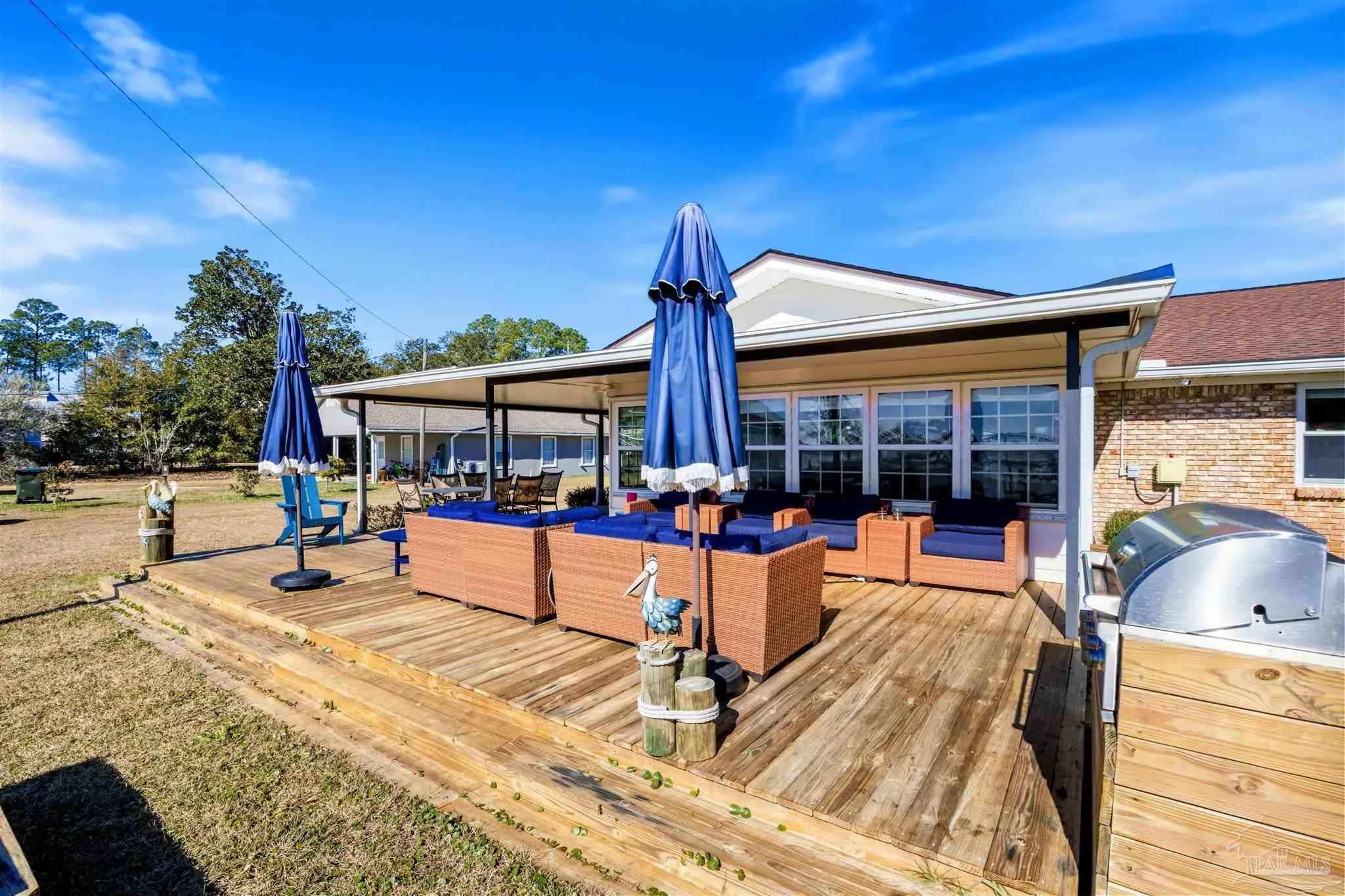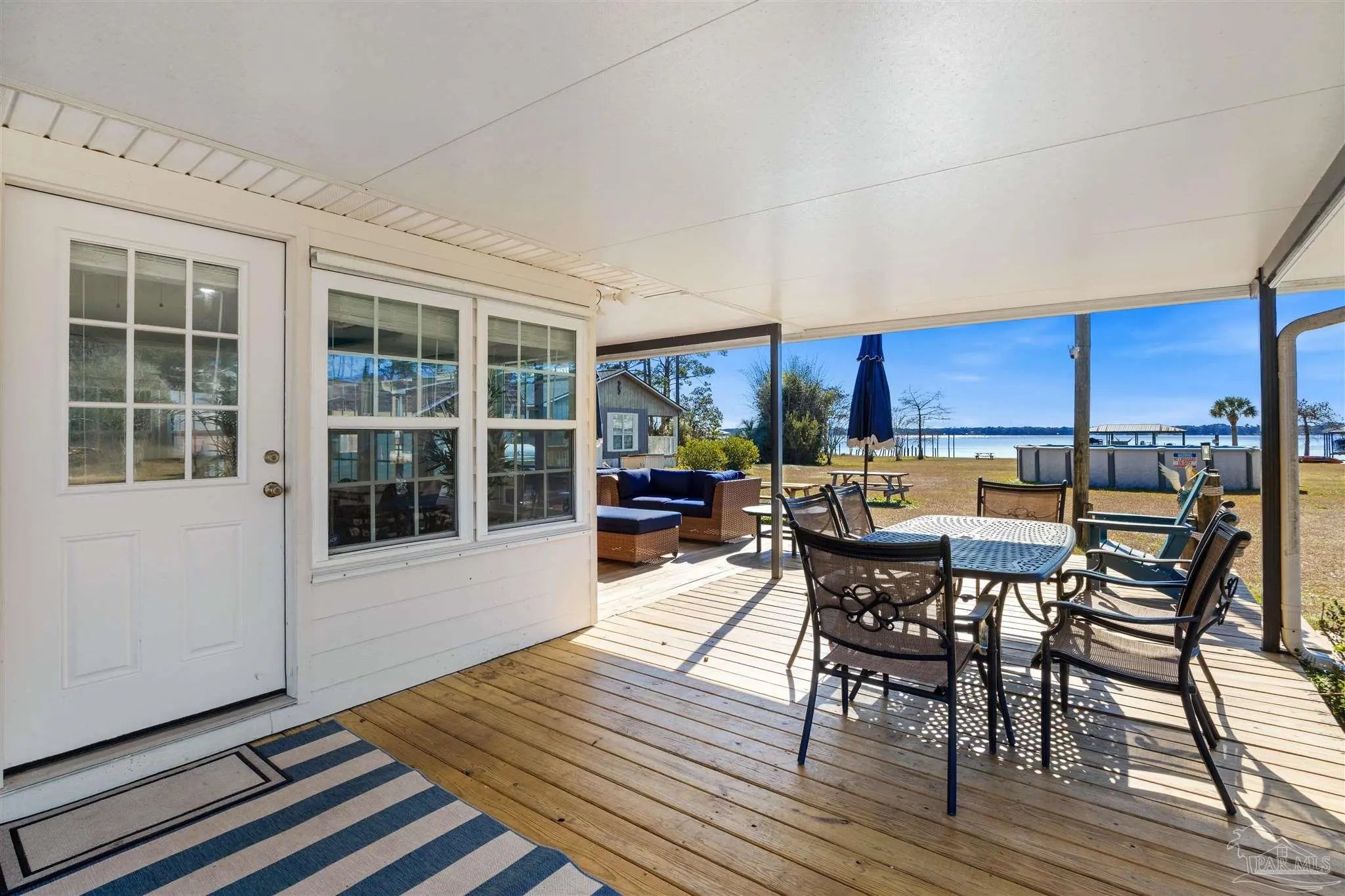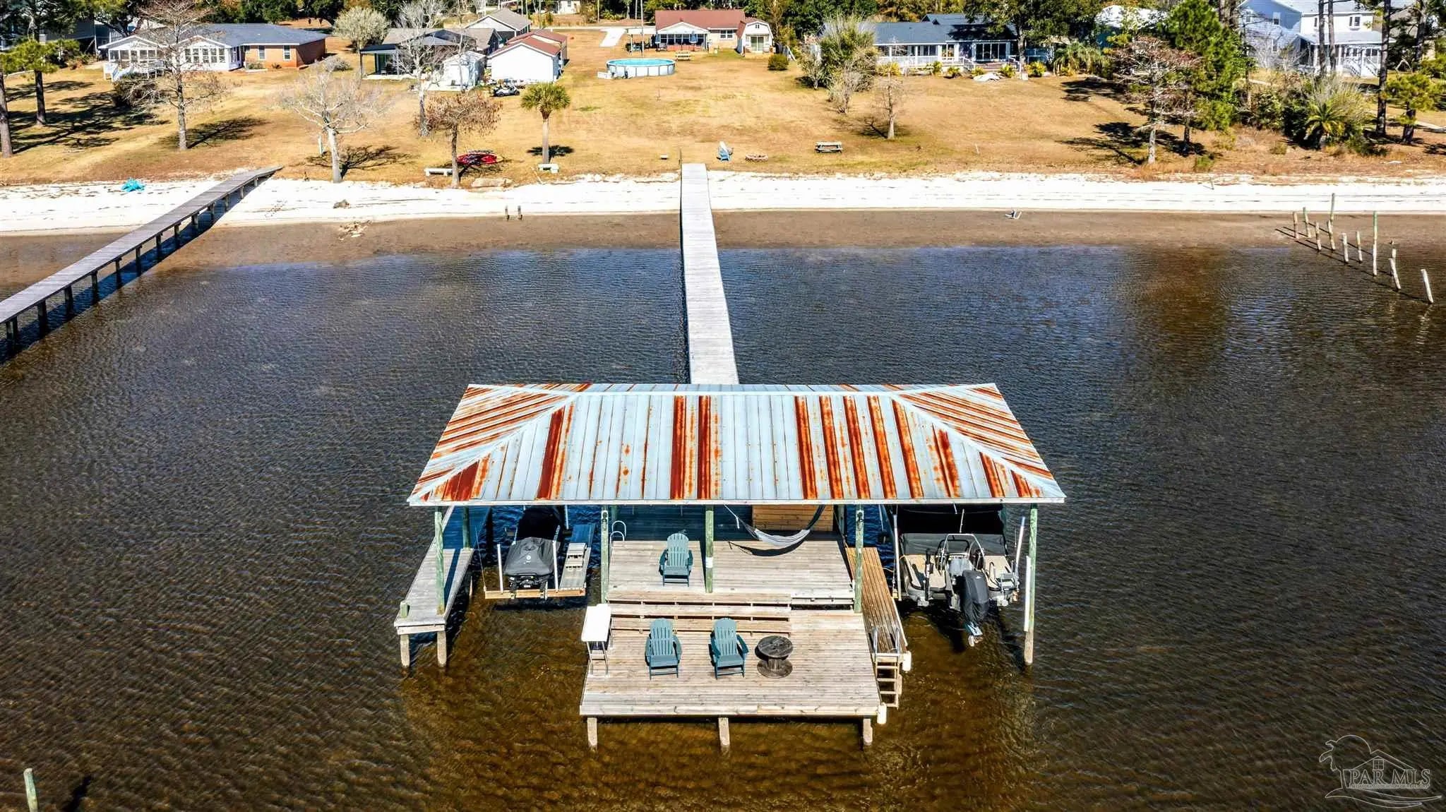 Prepare to be DAZZLED! Your Coastal Oasis on Perdido Bay Awaits! Get ready to embrace the ultimate coastal lifestyle in this breathtaking contemporary home, where stunning views and vibrant sunsets over Perdido Bay take center stage! Step inside and be wowed by a world of refined elegance, featuring exquisite engineered hardwood and sleek ceramic tile floors. The dream kitchen is a masterpiece, boasting luxurious granite countertops, a chic backsplash, top-of-the-line stainless steel appliances, & plenty of beautiful cabinetry. French doors invite you to a spacious sunroom, effortlessly blending magnificent Bay Views into your everyday life. Retreat to the primary suite, complete with a generous walk-in closet & a lavish en-suite bath. With 3 spacious bedrooms, 2 modern bathrooms, & a convenient 2-car garage, this home beautifully balances comfort with coastal charm. Outdoor living here is nothing short of exceptional! Host unforgettable gatherings on the expansive back deck or take a refreshing dip in the above-ground pool. A charming guest house with a loft provides additional space for visitors. The crown jewel? Your private dock, featuring 2 Boat Lifts, an impressive party deck, & a cleaning station equipped with countertops, a sink & refrigerator. From here, embark on thrilling boat rides to nearby local hotspots, pristine beaches, & endless adventures on the sparkling waters of Perdido Bay! This home comes elegantly furnished & beautifully decorated (excluding a few designated pieces), allowing you to dive straight into your coastal dream life! This isn’t just a house; it’s an extraordinary lifestyle or a fantastic investment opportunity. You'll say "WOW!" the moment you set foot on this property! Don’t miss your chance to turn your coastal living dream into reality! Call & schedule your private tour TODAY! Buyers are encouraged to verify all information during the due diligence process.
