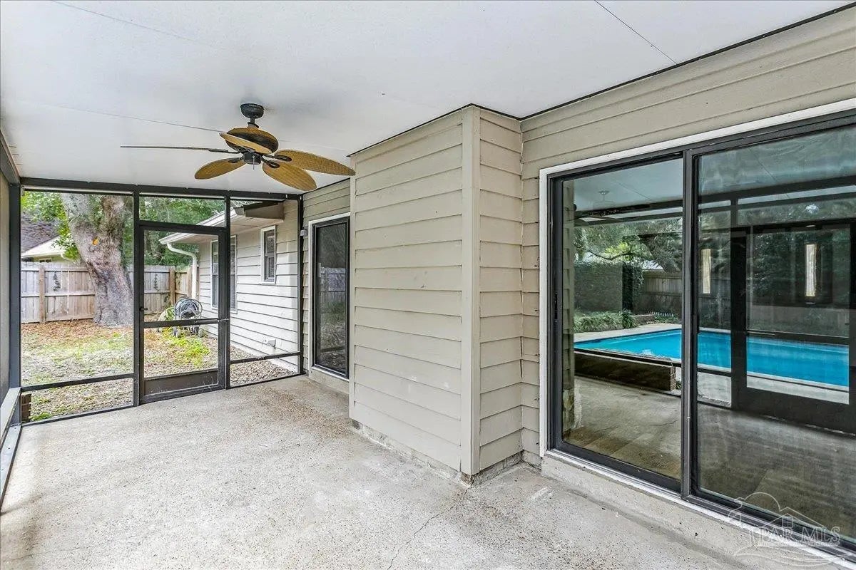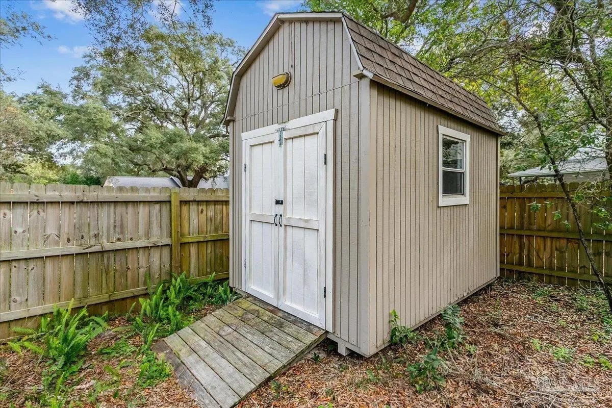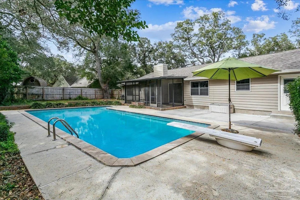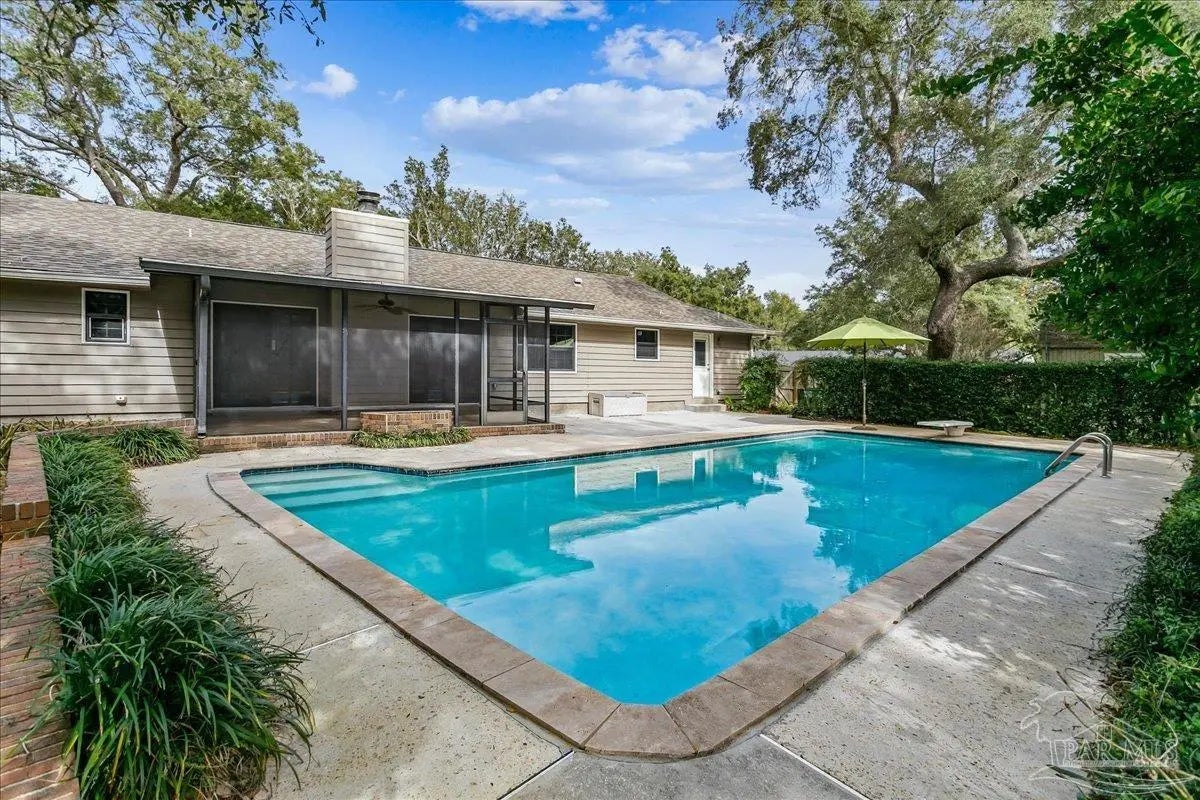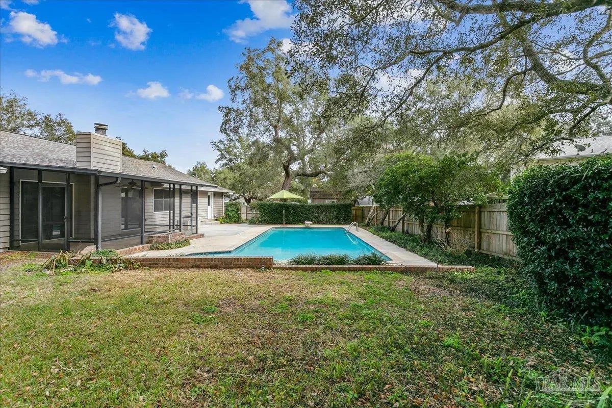 Welcome home! Located in beautiful Gulf Breeze, this four bedroom two bathroom residence featuring a LARGE, sparkling gunite private swimming pool and a functional layout with large bedrooms is the place for you. The property is situated in the sought after, quiet Whisper Bay neighborhood which is known for the gorgeous southern live oaks lining the streets. Meticulously maintained, this home is move in ready. New backsplash and counters in the kitchen with newer appliances. The kitchen pantry and lower cabinets are equipped with pull-out organizational shelves. Newer kitchen appliances, new flooring throughout, new paint, 2021 Roof, new hot water heater, and brand new pool pump are just a few of the upgrades that make this house a home. Great proximity to top rated schools and the Naval Live Oaks Nature Preserve (nature trails and access to the Sound and Pensacola Bay!) while remaining just minutes from the white sands of Pensacola Beach. A screen porch overlooks the backyard patio and provides ample space for outdoor entertaining around the pool. This home has a large lot with plenty of privacy and mature landscaping as well as gutters with leaf protection. Also, a shed is tucked back in the back yard for extra storage! Hurricane mitigation (roof, garage door, storm shutters) via Rebuild NW Florida. This home represents a perfect opportunity to enjoy the coastal lifestyle of Gulf Breeze!