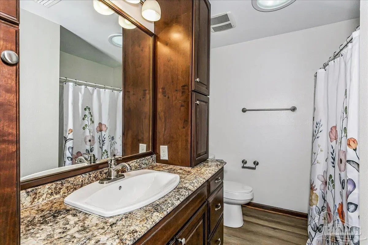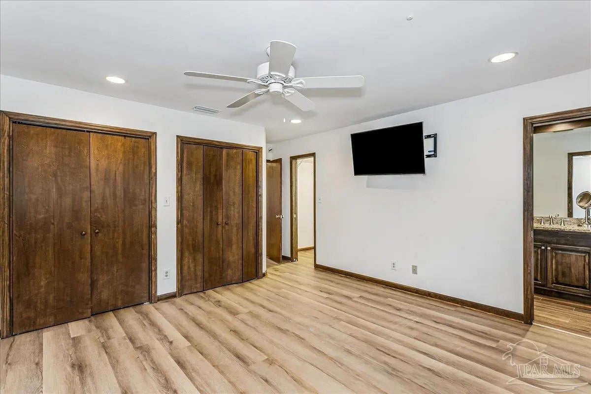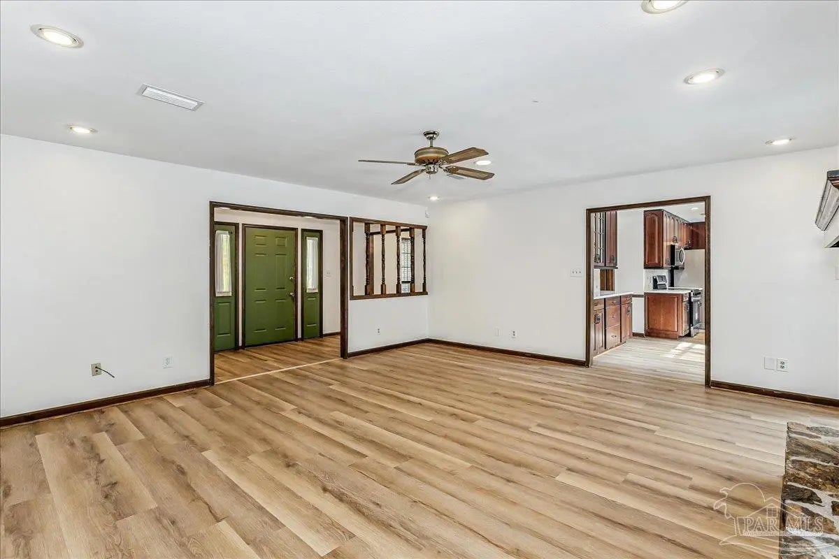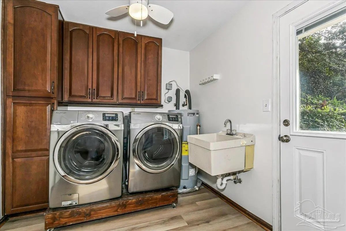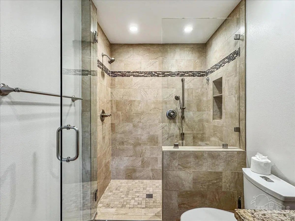 Welcome home! Located in beautiful Gulf Breeze, this four bedroom two bathroom residence featuring a LARGE, sparkling gunite private swimming pool and a functional layout with large bedrooms is the place for you. The property is situated in the sought after, quiet Whisper Bay neighborhood which is known for the gorgeous southern live oaks lining the streets. Meticulously maintained, this home is move in ready. New backsplash and counters in the kitchen with newer appliances. The kitchen pantry and lower cabinets are equipped with pull-out organizational shelves. Newer kitchen appliances, new flooring throughout, new paint, 2021 Roof, new hot water heater, and brand new pool pump are just a few of the upgrades that make this house a home. Great proximity to top rated schools and the Naval Live Oaks Nature Preserve (nature trails and access to the Sound and Pensacola Bay!) while remaining just minutes from the white sands of Pensacola Beach. A screen porch overlooks the backyard patio and provides ample space for outdoor entertaining around the pool. This home has a large lot with plenty of privacy and mature landscaping as well as gutters with leaf protection. Also, a shed is tucked back in the back yard for extra storage! Hurricane mitigation (roof, garage door, storm shutters) via Rebuild NW Florida. This home represents a perfect opportunity to enjoy the coastal lifestyle of Gulf Breeze!