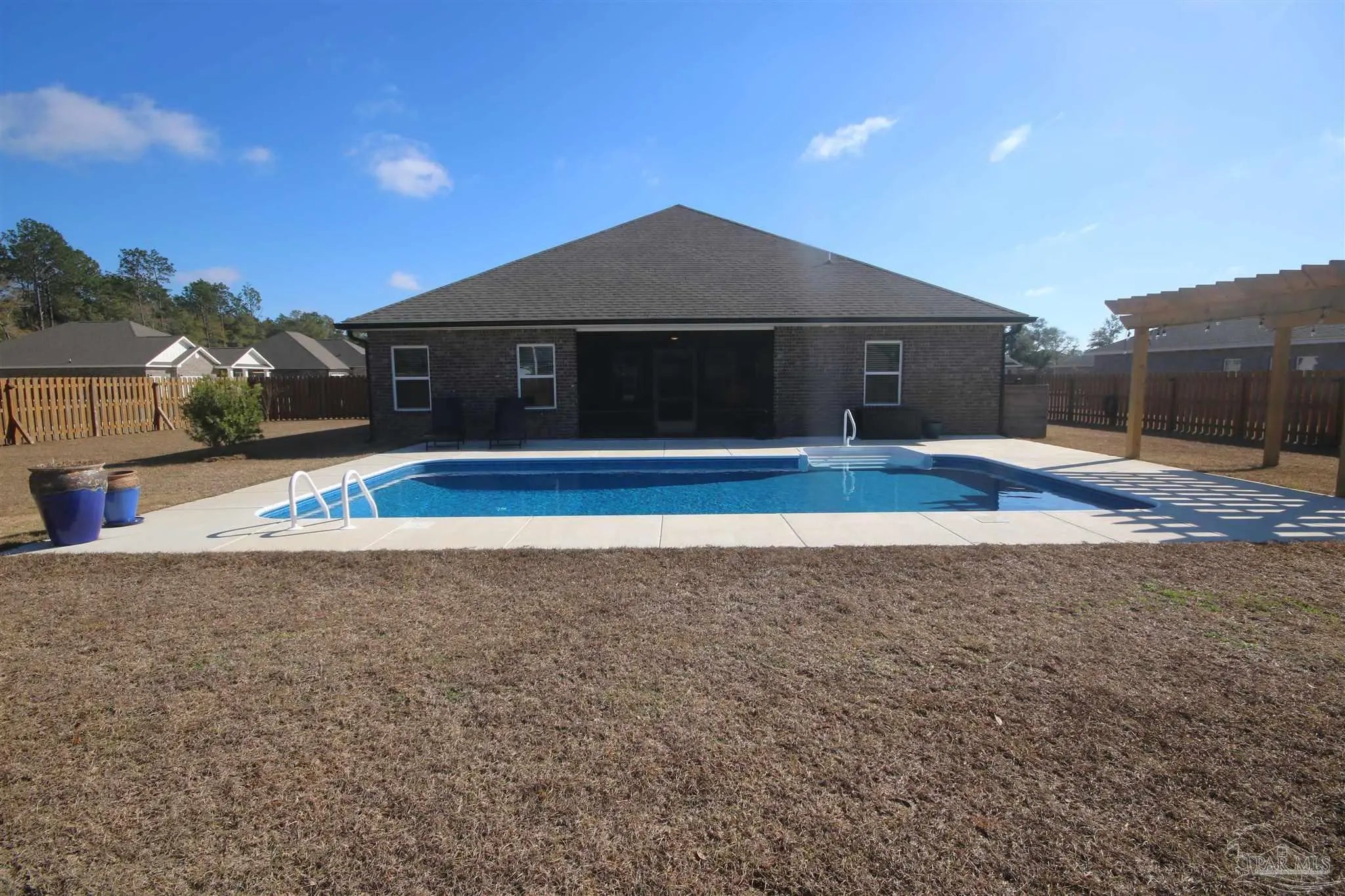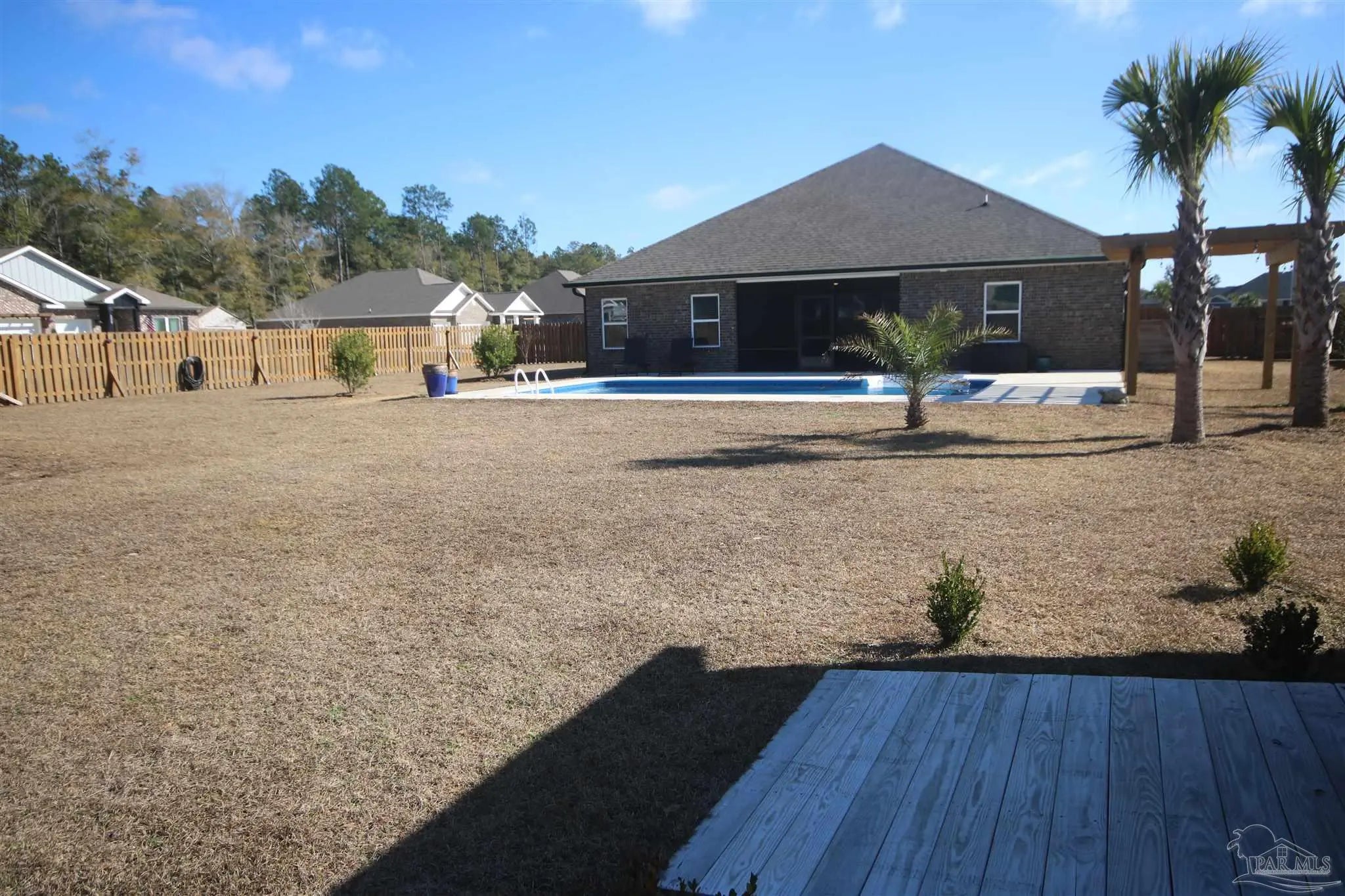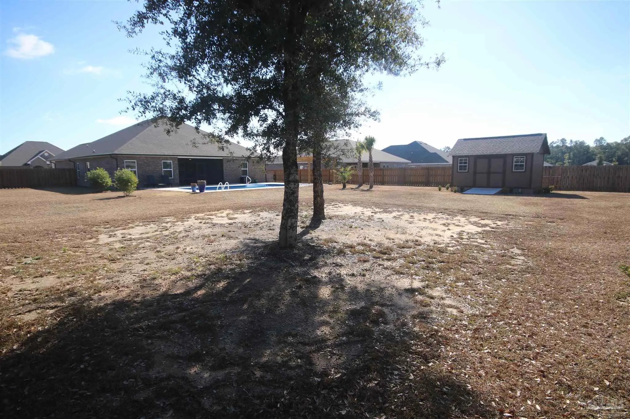 Welcome to this triple-split floorplan situated on a beautiful corner lot. The SALTWATER POOL, PERGOLA & SCREENED BACK PORCH invites you to unwind, all within a fully privacy-fenced yard. Step inside to the open-concept layout that connects the family room, dining area, kitchen, and breakfast nook for comfortable living. The family room boasts a custom board & batten accent wall & boxed ceiling w/ crown molding. You will also love the Luxury vinyl flooring found throughout the main living areas & bathrooms – Low maintenance & perfect for busy households! The kitchen boasts white soft-close cabinetry, GRANITE countertops, SINGLE BASIN SINK, Whirlpool STAINLESS STEEL appliances, a WALK-IN PANTRY along with ample storage and prep space. The private primary suite offers a spacious bath with double vanities, garden tub w/ a large, seeded glass window above, separate shower, private water closet, and a large walk-in closet. The guest bedrooms all have generous closets keeping everyone organized. The guest bathrooms have Granite & LVF. Upgrades: In 2024: 12’ x 16’ Storage Building w/ Ramp ~ Installed Attic Stairs & Flooring in Attic ~ Painted Garage ~ Installed Gutters ~ Palm Trees ~ Screened Back Porch & Ceiling Fan ~ Saltwater Pool Installed w/ Carbon Filter System ~ 6” Privacy Fence w/ 4’ Single Gate, 8’6” Double Gate & a 12’ Drive Gate ~ Solar Lighting Installed along Fence ~ Centipede Grass at rear of property. Upgrades 2025: Drain System for Pool Overflow ~ 12' x 8' Pergola ~ Installed Board & Batten Accent Wall in Great Room. More features: This “SMART HOME” includes Kwikset lock, Sky Bell and digital thermostat, all of which are integrated with the Qolsys IQ touch panel and an Echo Dot device ~ Active Termite Bond with Rocky’s Pest Control ~ Double Pane Windows ~ Hurricane Shields ~ Faux Wood Blinds. Permits have been pulled for Sprinkler System & Natural Gas. Magnolia Glen is a lovely GATED COMMUNITY in Milton!