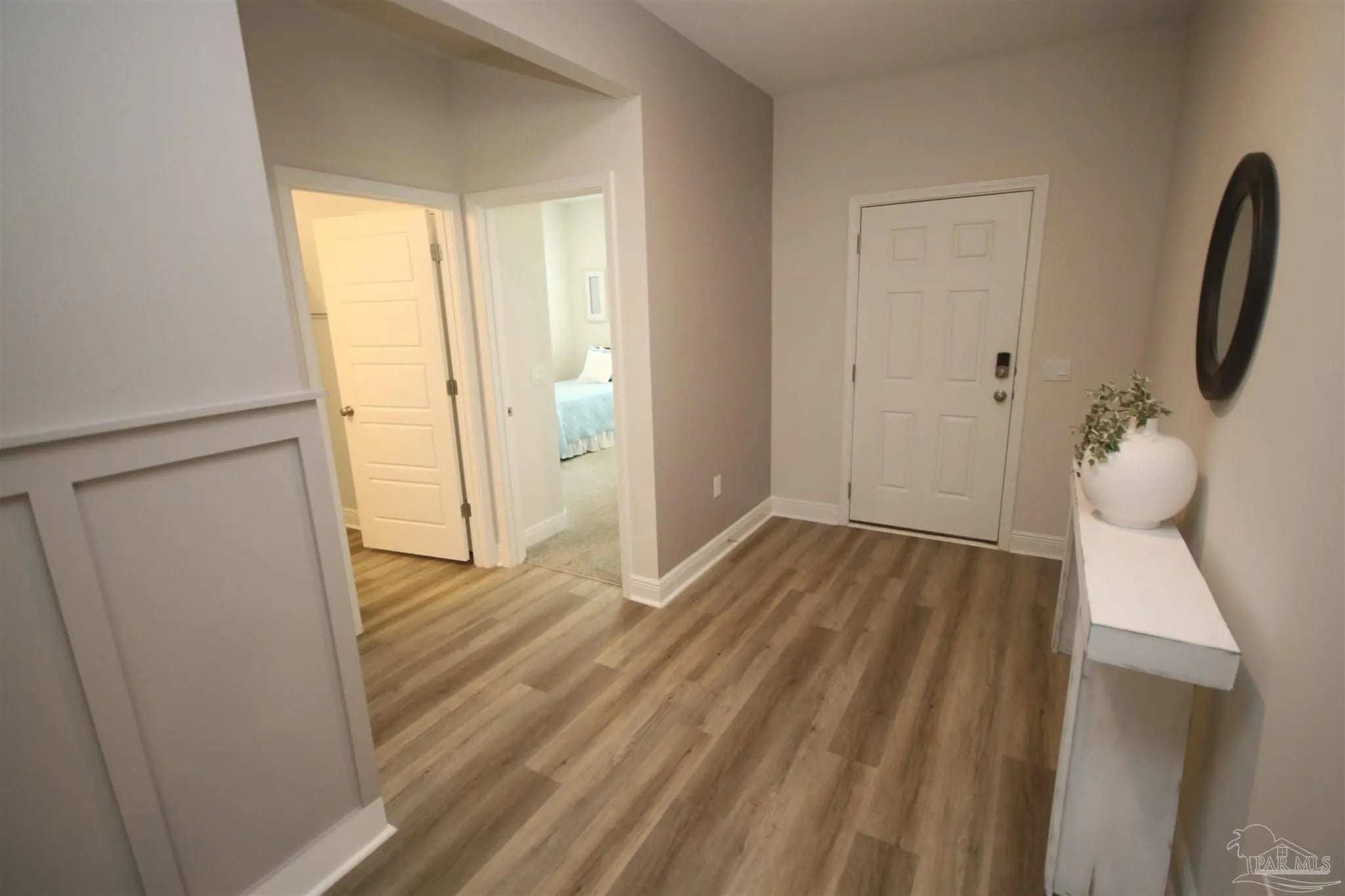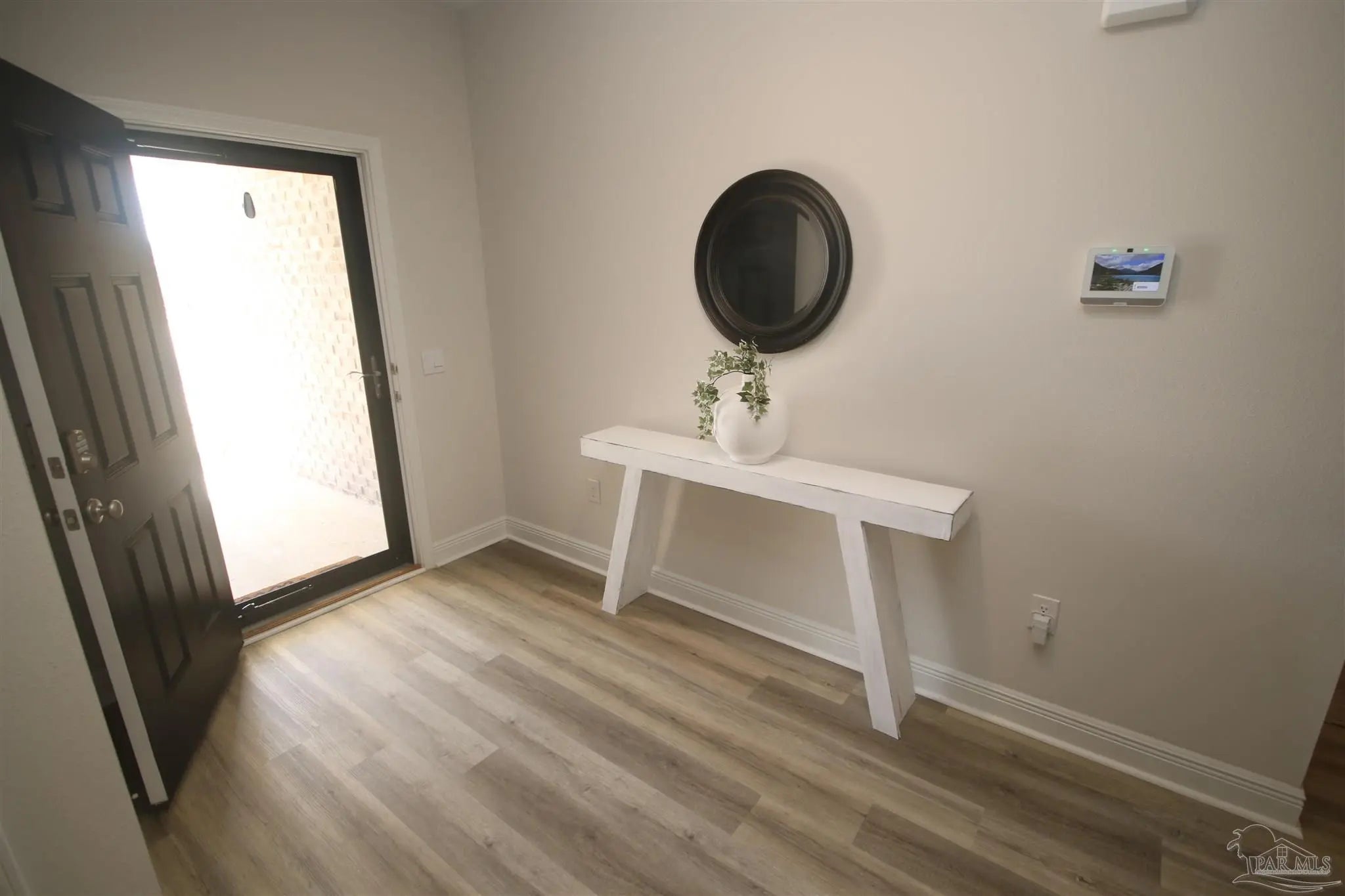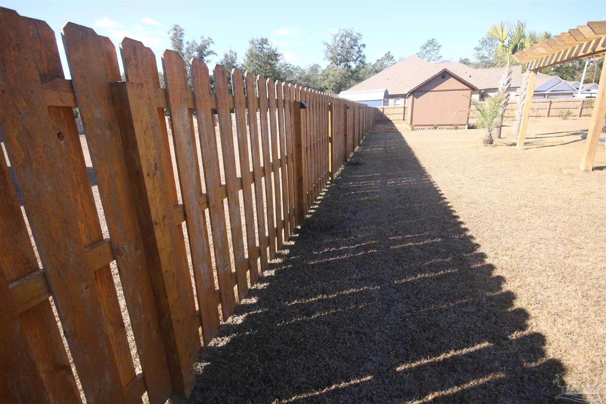 Welcome to this triple-split floorplan situated on a beautiful corner lot. The SALTWATER POOL, PERGOLA & SCREENED BACK PORCH invites you to unwind, all within a fully privacy-fenced yard. Step inside to the open-concept layout that connects the family room, dining area, kitchen, and breakfast nook for comfortable living. The family room boasts a custom board & batten accent wall & boxed ceiling w/ crown molding. You will also love the Luxury vinyl flooring found throughout the main living areas & bathrooms – Low maintenance & perfect for busy households! The kitchen boasts white soft-close cabinetry, GRANITE countertops, SINGLE BASIN SINK, Whirlpool STAINLESS STEEL appliances, a WALK-IN PANTRY along with ample storage and prep space. The private primary suite offers a spacious bath with double vanities, garden tub w/ a large, seeded glass window above, separate shower, private water closet, and a large walk-in closet. The guest bedrooms all have generous closets keeping everyone organized. The guest bathrooms have Granite & LVF. Upgrades: In 2024: 12’ x 16’ Storage Building w/ Ramp ~ Installed Attic Stairs & Flooring in Attic ~ Painted Garage ~ Installed Gutters ~ Palm Trees ~ Screened Back Porch & Ceiling Fan ~ Saltwater Pool Installed w/ Carbon Filter System ~ 6” Privacy Fence w/ 4’ Single Gate, 8’6” Double Gate & a 12’ Drive Gate ~ Solar Lighting Installed along Fence ~ Centipede Grass at rear of property. Upgrades 2025: Drain System for Pool Overflow ~ 12' x 8' Pergola ~ Installed Board & Batten Accent Wall in Great Room. More features: This “SMART HOME” includes Kwikset lock, Sky Bell and digital thermostat, all of which are integrated with the Qolsys IQ touch panel and an Echo Dot device ~ Active Termite Bond with Rocky’s Pest Control ~ Double Pane Windows ~ Hurricane Shields ~ Faux Wood Blinds. Permits have been pulled for Sprinkler System & Natural Gas. Magnolia Glen is a lovely GATED COMMUNITY in Milton!