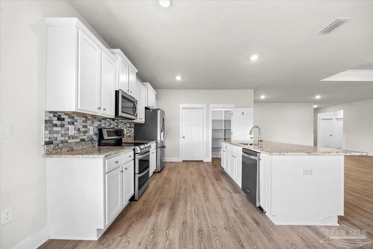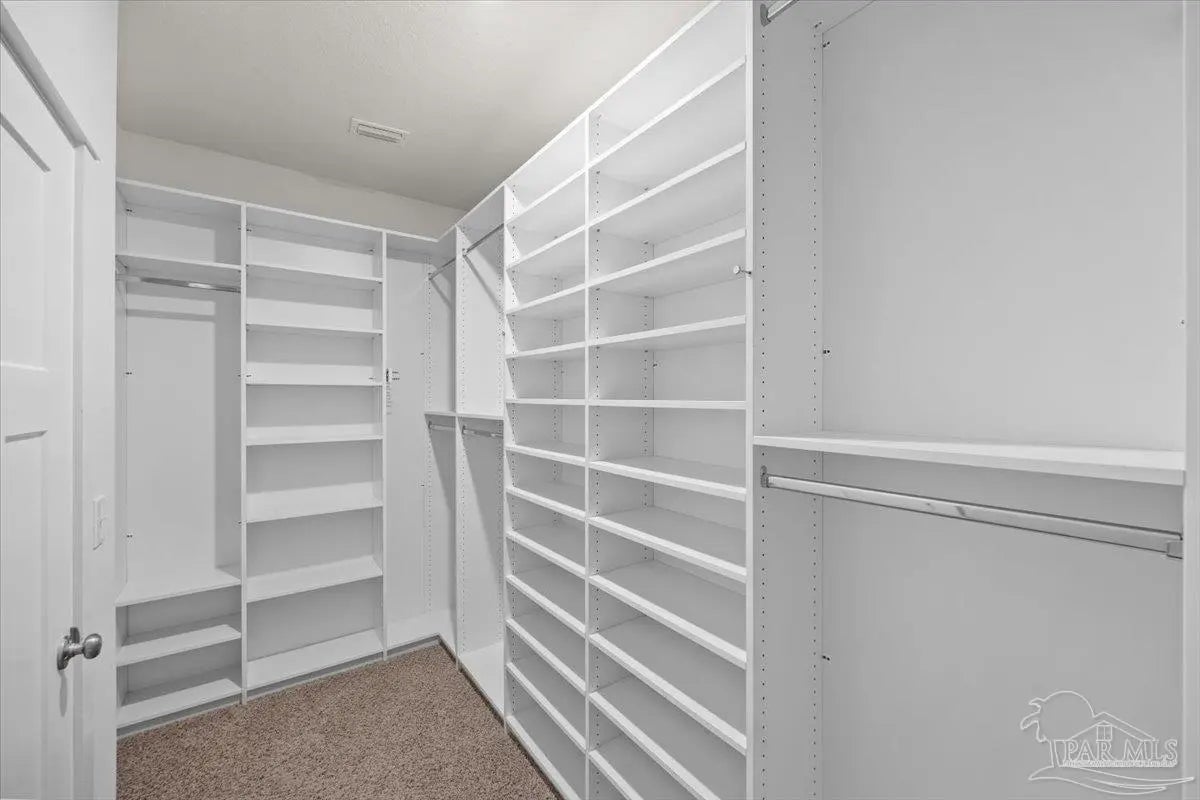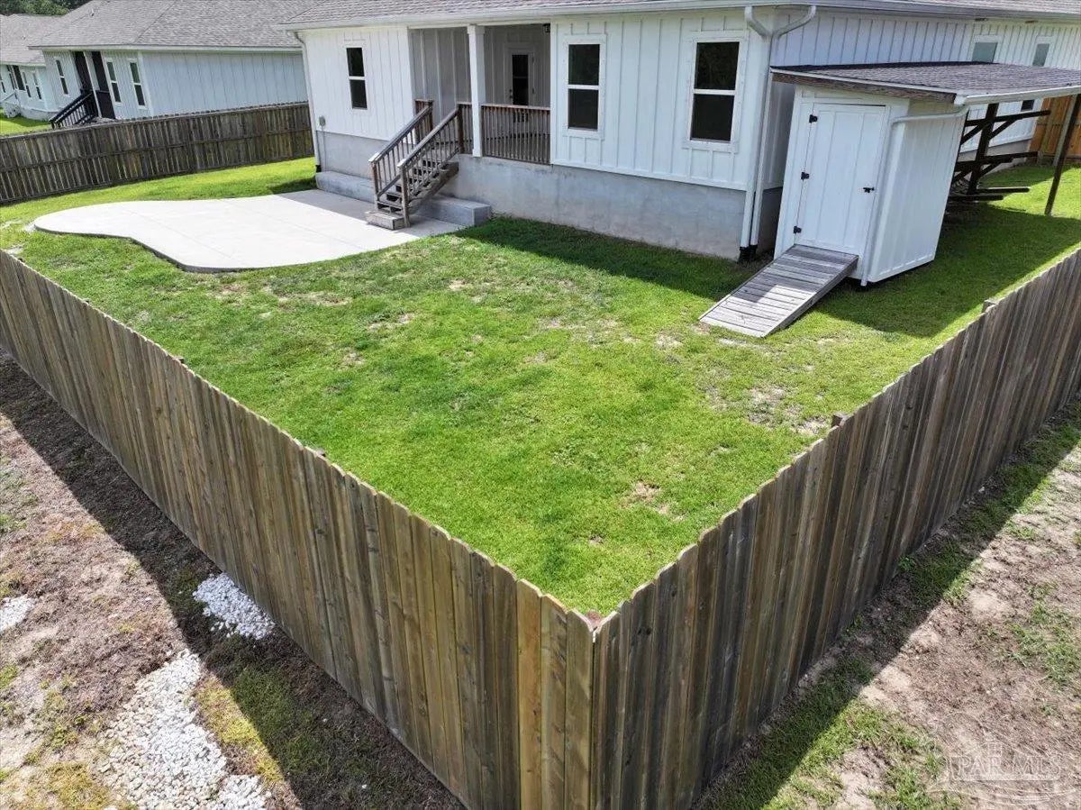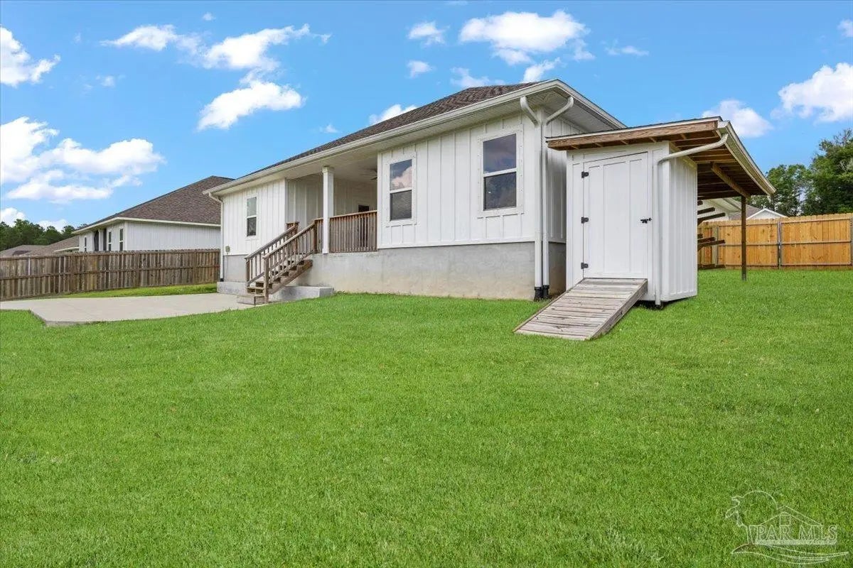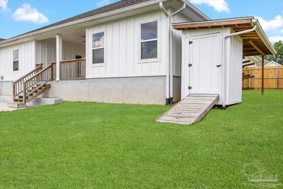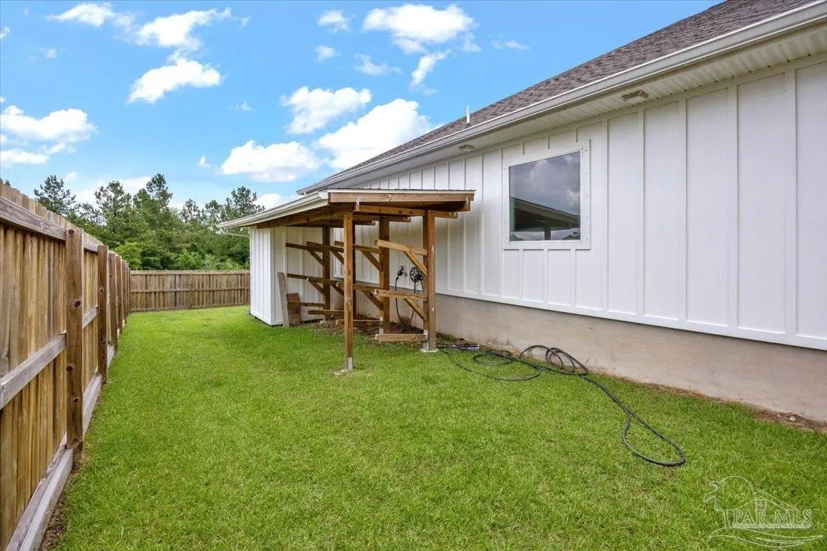 Located in the highly desirable Preserve at Deer Run, featuring a neighborhood pool and pavilion, this beautiful 4-bedroom, 3-bath home offers over 2,300 square feet of thoughtfully designed living space, tranquil pond views, and a spacious 3-car garage. The popular Destin floor plan provides a seamless flow with a bright, open-concept kitchen and living area, complemented by both formal and casual dining spaces. The kitchen is a true showstopper, featuring gleaming granite countertops, a double oven, custom stone backsplash, an upgraded pantry, and a large island perfect for gathering and entertaining. The primary suite serves as a private retreat, offering a generous bedroom, custom walk-in closet which is a MUST-SEE, dual vanities, a deep soaking tub, and an expansive walk-in shower. Additional upgrades are found throughout the home, including modern lighting, smart home features, hurricane shutters, and gutters. Step outside to a spacious fenced backyard with a double gate, extended concrete patio, ceiling fan, and built-in bench, ideal for outdoor living. A custom shed with boat/kayak storage, garage shelving, and a storm door add even more convenience. Residents enjoy an active community with year-round events, including food trucks and social gatherings at the neighborhood pool. Conveniently located just minutes from I-10, Navy Federal, shopping, dining, and the Gulf, this home perfectly balances comfort and accessibility. Move-in ready and packed with upgradesāBETTER THAN NEW- schedule your private showing today!