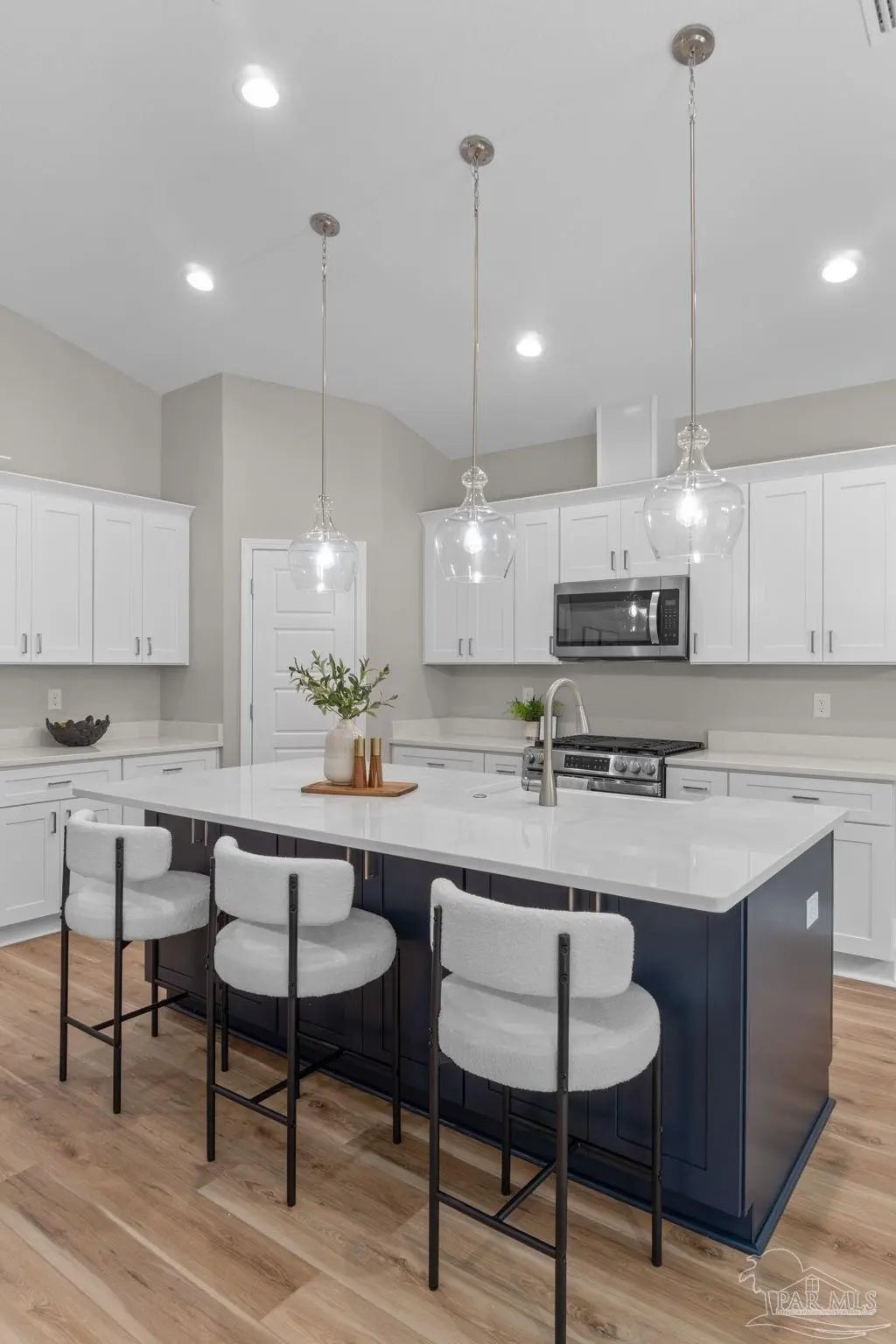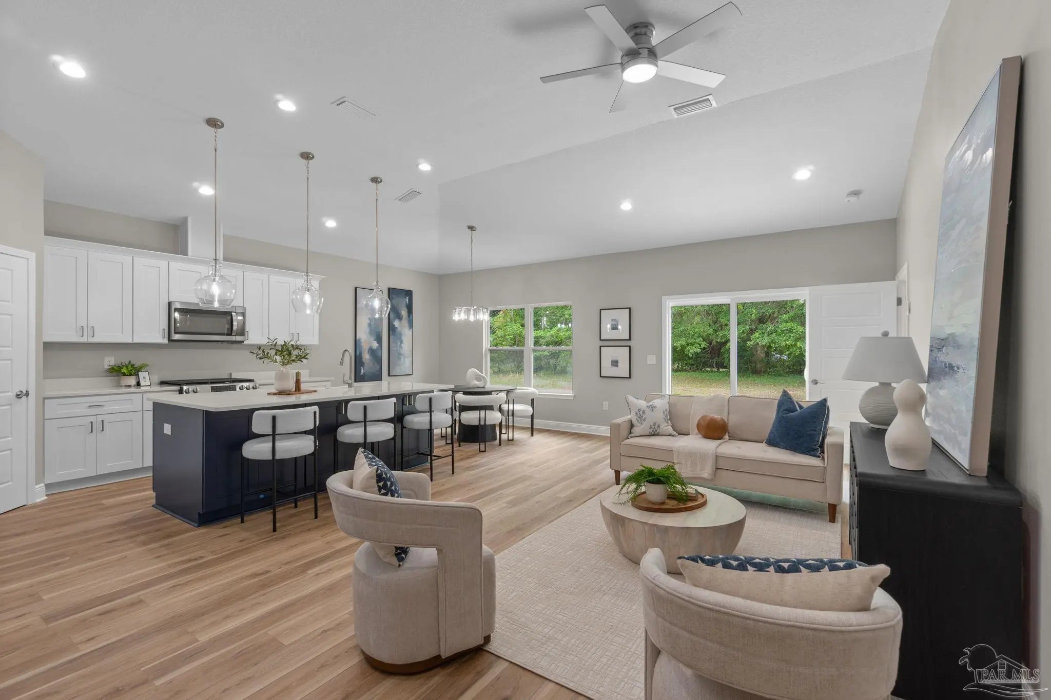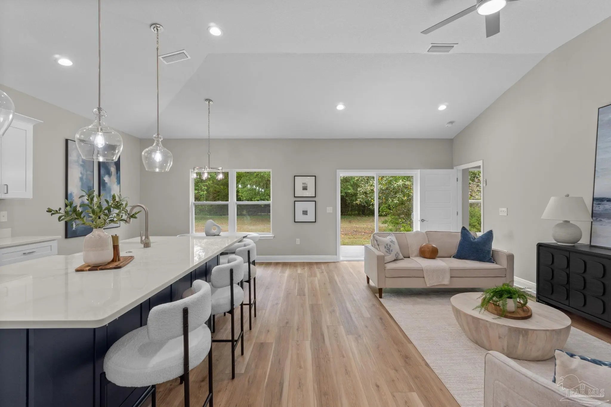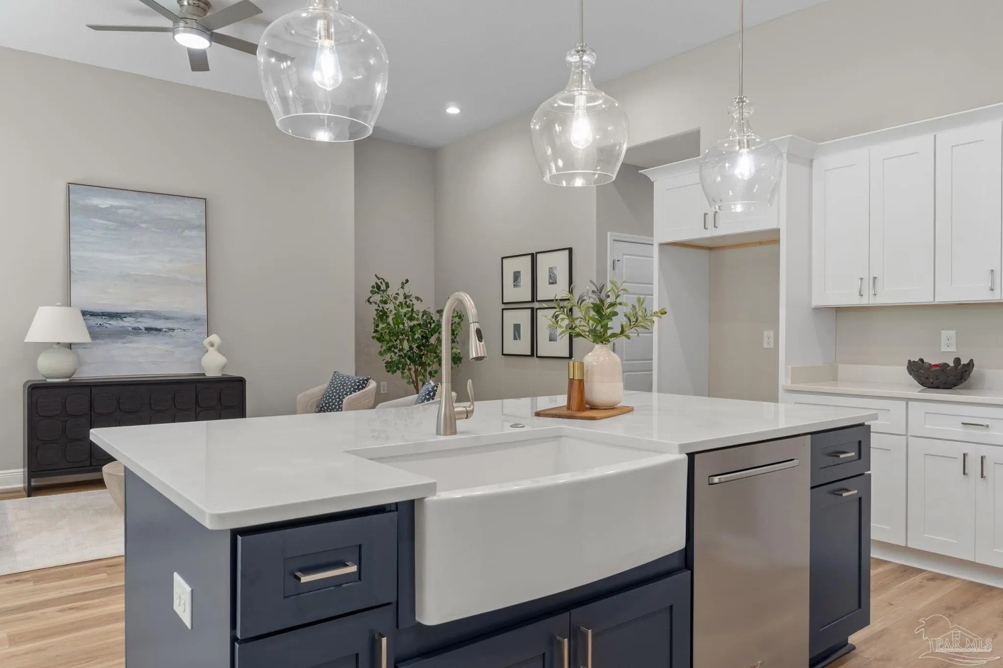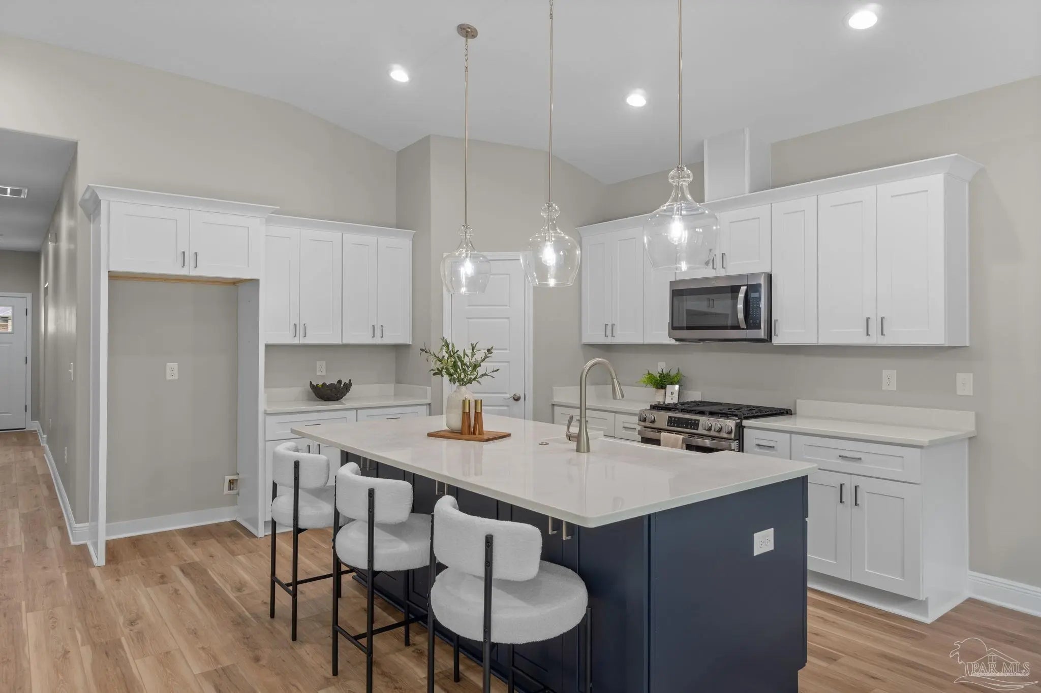 Seller contributes towards purchasers concessions with acceptable offer. This charming, semi-custom, Craftsman-inspired new construction home blends timeless design with modern comfort, offering 3 bedrooms and 2 beautifully appointed bathrooms with 2 car garage in a thoughtfully crafted layout that feels both spacious and inviting. Designed for both everyday living and effortless entertaining, the open-concept floor plan features 9-foot ceilings throughout and a stunning family room with soaring vaulted ceilings that create a light-filled, airy atmosphere. The kitchen is a true showpiece, complete with elegant quartz countertops, stainless steel appliances, a freestanding gas range, tall custom cabinetry with crown molding, blue island and ample workspace—perfect for hosting gatherings or enjoying quiet evenings at home. Modern efficiency meets lasting comfort with a tankless water heater, providing continuous hot water whenever you need it. The primary suite serves as a private retreat, thoughtfully designed with dual vanities, a floor-to-ceiling tiled walk-in shower, freestanding soaking tub, and an oversized walk-in closet that offers both luxury and practicality. The secondary bedrooms are generously sized and ideal for family, guests, or even a home office. Every element of this home reflects quality craftsmanship and intentional design, offering the perfect balance of warmth, style, and functionality. Don’t miss the opportunity to own a beautifully constructed semi-custom home where comfort meets character and where you can add your personal touch to create something truly special.