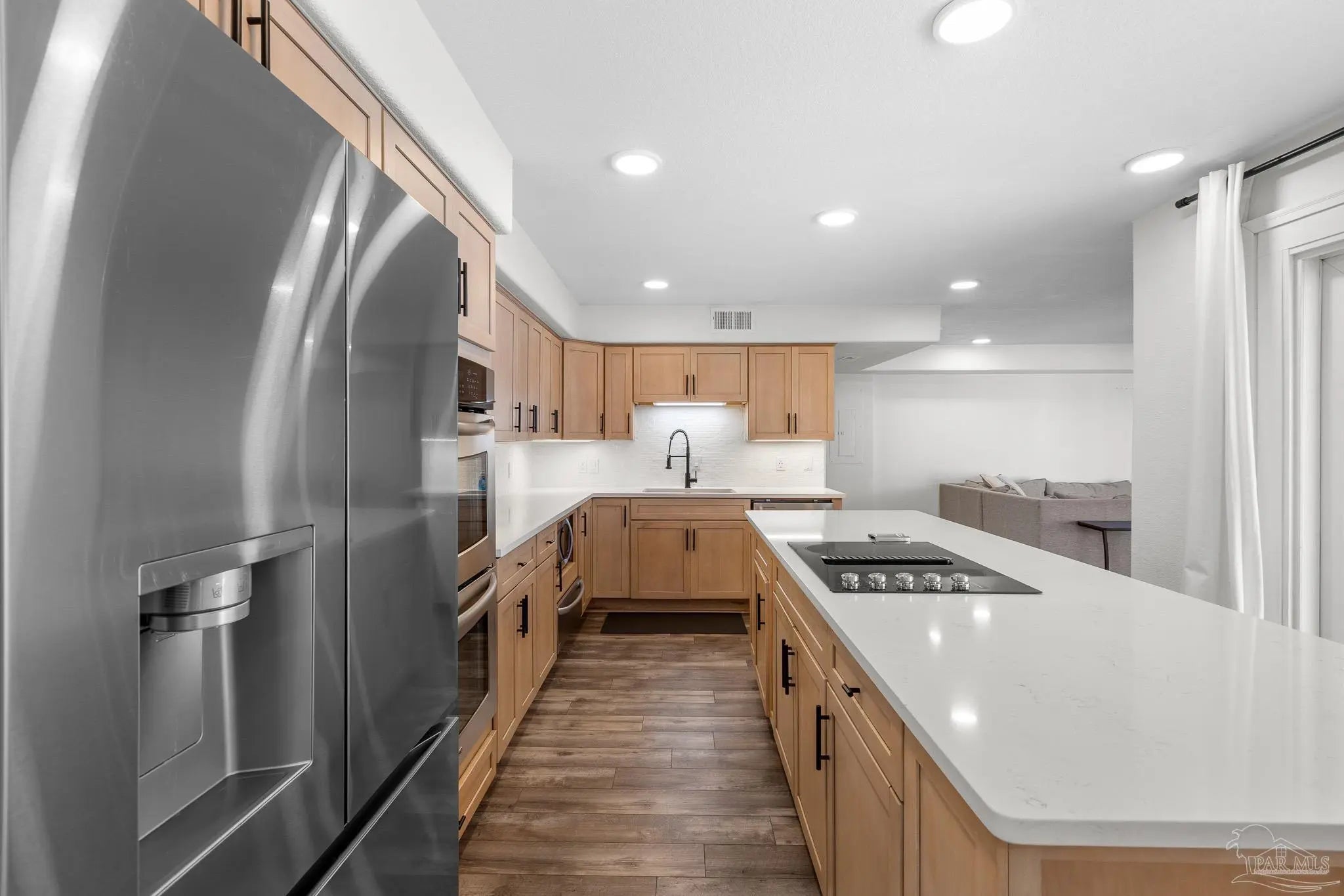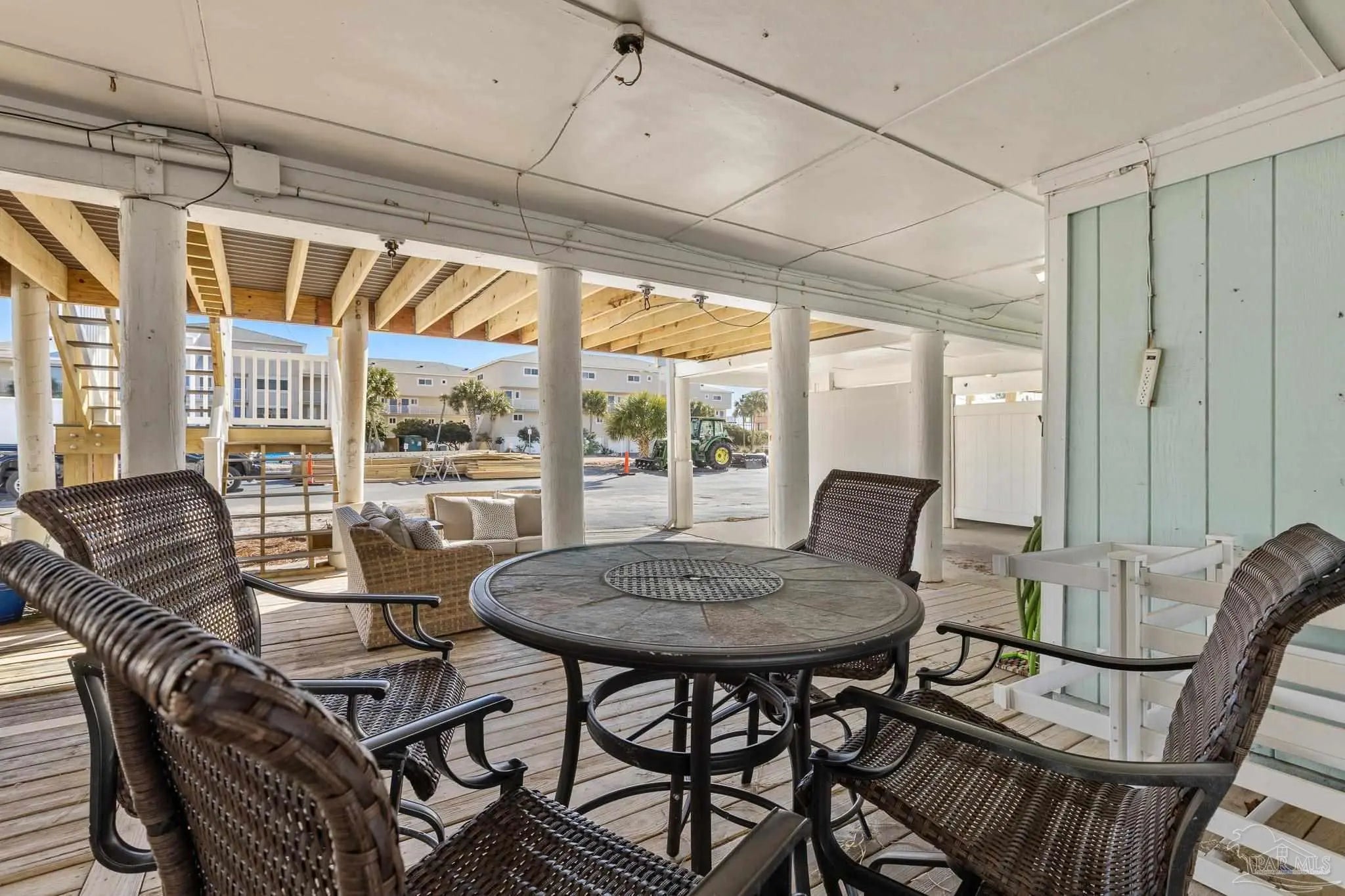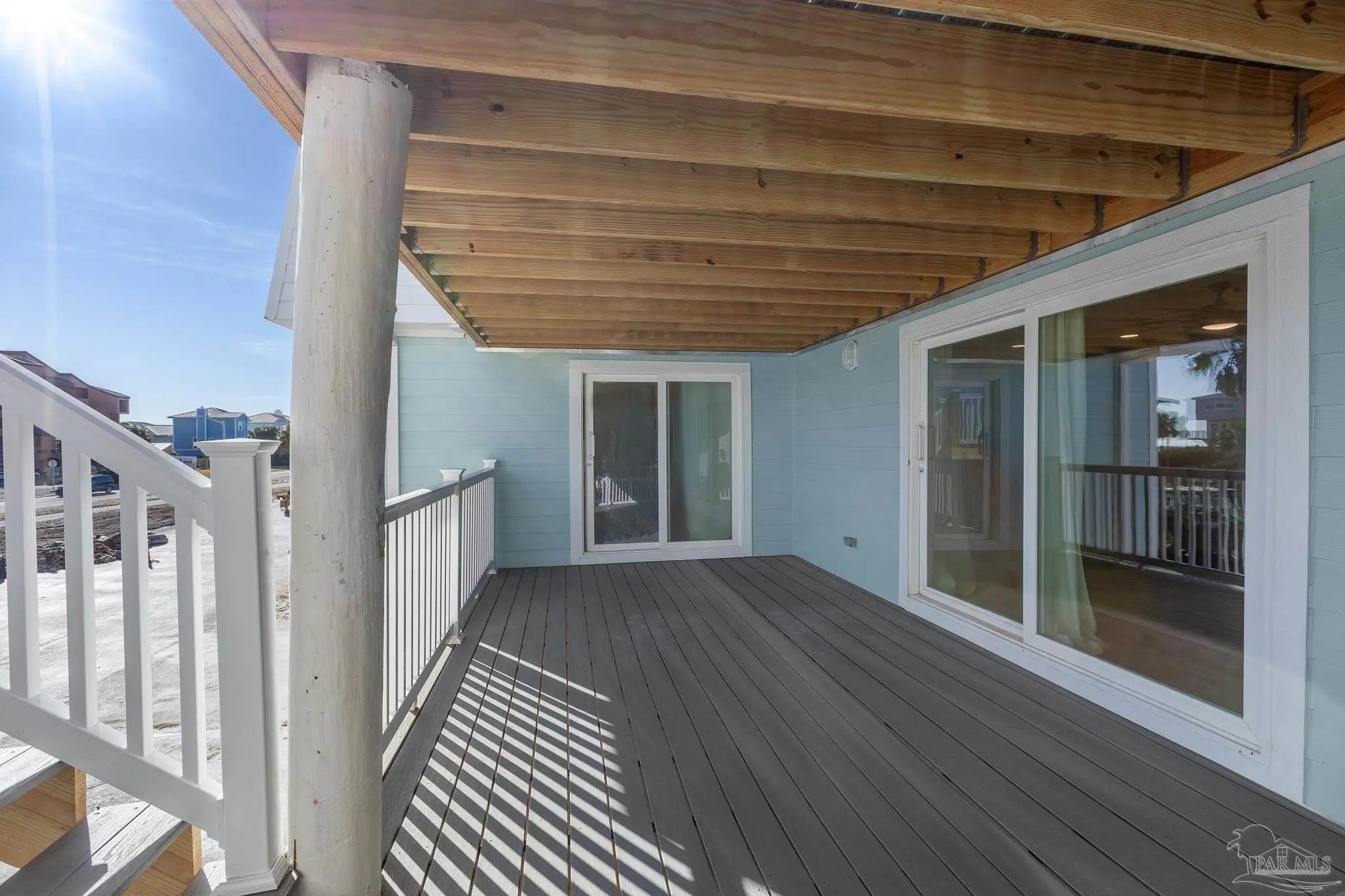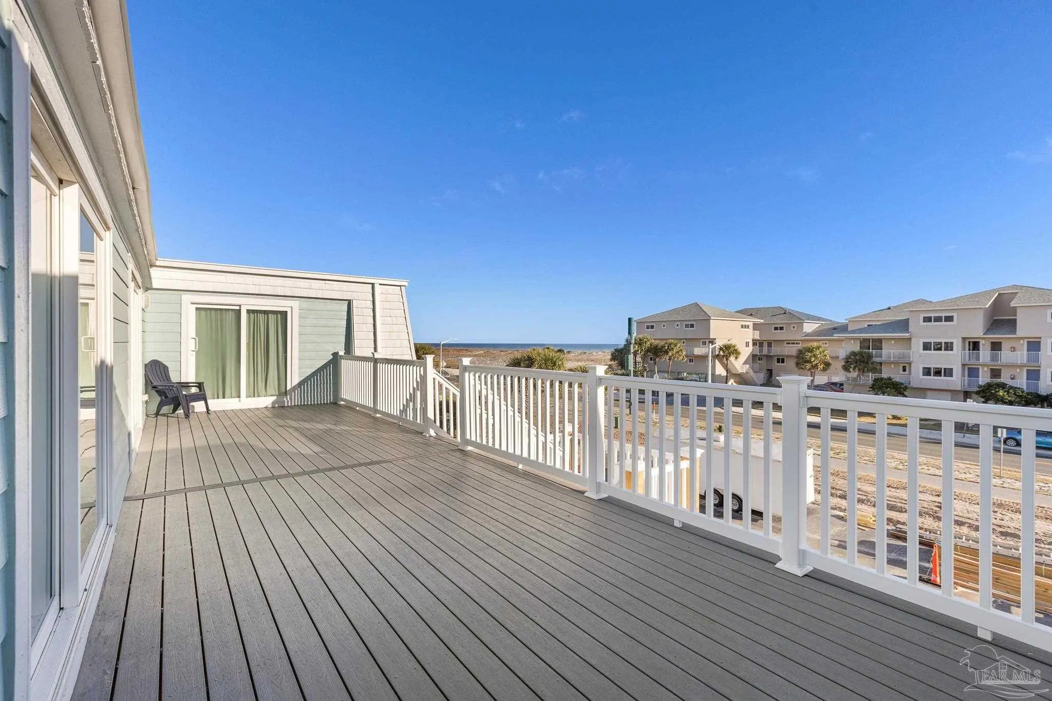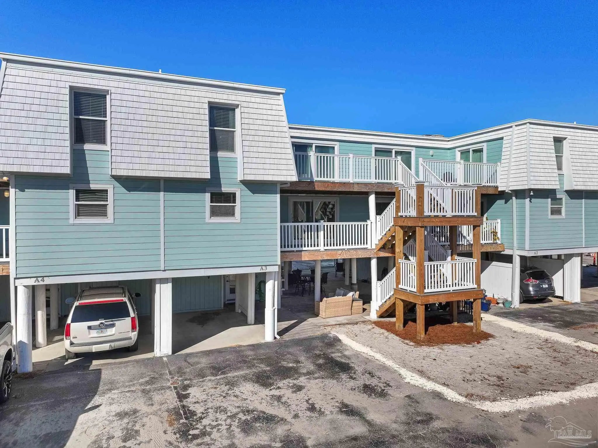 Calling all snowbirds, or anyone that loves a good investment opportunity! Welcome to Boardwalk A3, a turnkey, thoughtfully updated, beach retreat where modern comfort meets laid-back coastal living. Perfectly positioned between the Santa Rosa Sound and the Gulf of Mexico, this 2-bedroom, 3-bath condo puts you right in the heart of Pensacola Beach—close enough to everything, yet peaceful and relaxing the moment you arrive. Inside, the condo has a fresh, modern beach vibe with recent updates throughout. The open-concept living space is bright and inviting, ideal for unwinding after a day on the water or gathering for movie nights. The beautifully renovated kitchen features newer stainless-steel appliances, quartz countertops, a tiled backsplash, and an oversized island with seating—perfect for cooking, snacking, and connecting with guests. Upstairs, the primary suite offers a renovated private bath, and its own balcony with Gulf views—your personal spot for morning coffee or evening breezes. The second bedroom is perfect for additional guests, with access to a recently renovated bathroom equipped with jetted tub. Step outside and enjoy the best of the Boardwalk community: private Soundside beach access, a fishing dock, a large pool, and even a volleyball court, all just steps from your door. After a day in the sun, relax on the covered patio with dinner and drinks as the sky glows over the Sound. Two private balconies, covered parking, beach-gear storage, and an in-unit washer and dryer make your stay effortless and comfortable. Stylish, updated, and ideally located, Boardwalk A3 is the perfect home base for your next Pensacola Beach getaway.