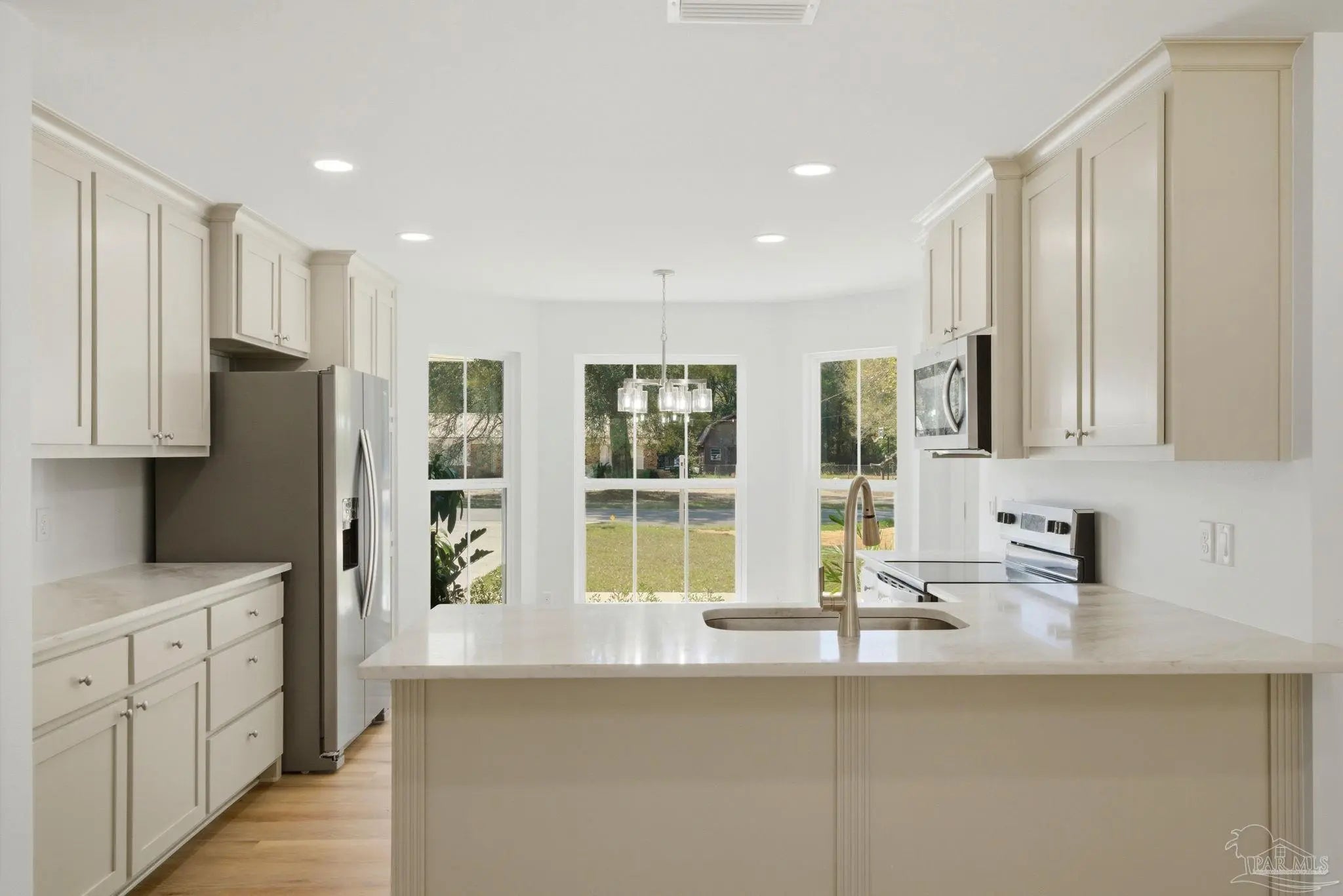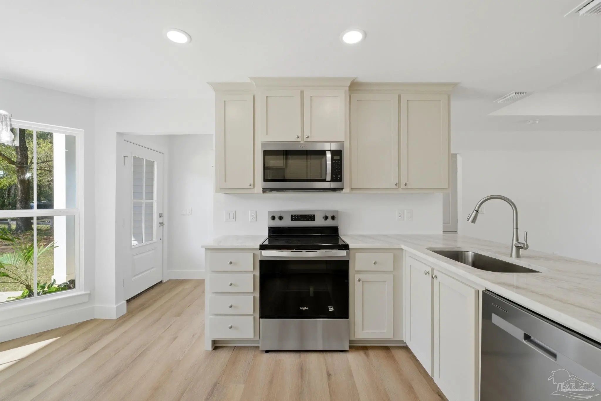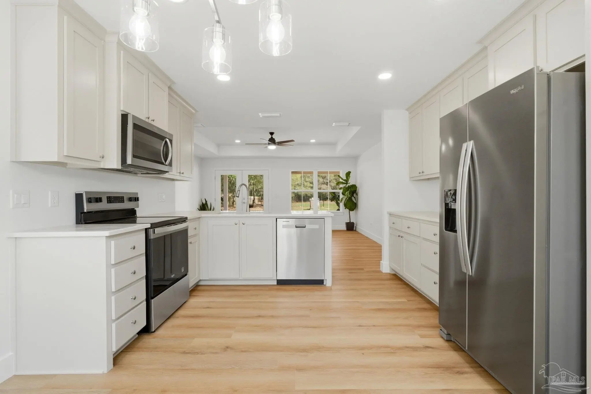 JUST COMPLETED -March 2026 - New Construction Custom Home - Canopied by magnificent mature oaks and adjacent to two newly constructed homes by same builder, ensuring consistency and quality, this beautifully crafted, rare boutique-build home showcases meticulous attention to detail with upgraded finishes throughout, including luxury vinyl plank, high ceilings, designer lighting, granite countertops, stainless steel appliances, and more. The modern design, residence offers an open, split floor plan with an expansive living area featuring a tray ceiling allowing abundant natural light and serene views of the tree lined backyard. The open-concept seamlessly connects to the chef's kitchen, creating the perfect space for entertaining. The split floor plan offers a private main bedroom or owner’s suite, an oversized walk-in closet and a luxurious bathroom. Highlights include double vanities, granite countertops, a private water closet, and a beautifully tiled, spa inspired, walk-in shower. Enjoy front and back porches with the quaint, non-subdivision setting located in Pea Ridge. One of Milton’s most sought after areas for it’s convenient, yet peaceful surroundings. Located near the intersection of Avalon Blvd and Hwy 90, just minutes from Downtown Milton, Whiting Field, other area military bases, shopping, dining, and outdoor recreation along the Blackwater River and Coldwater Creek . As well as quick, easy access to the coast - Escambia and Pensacola Bay, Pensacola Beach, the Gulf of America and Downtown Pensacola. This is rare investment opportunity for a brand-new home The recent adjacent sale at $429K (4 bed /3 ba) featuring comparable upgrades, establishes a strong market benchmark, reinforcing reinforcing long-term value. This home blends comfort, craftsmanship, and an ideal location — close to everything yet surrounded by nature.