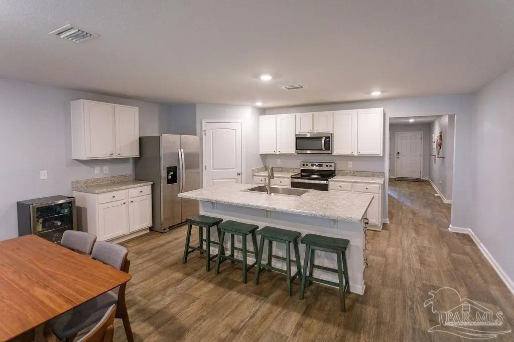 Welcome to this stunning 4 bedroom, 2 bathroom home offering 2,037 square feet of beautifully designed living space in a highly desirable Pensacola location. This home blends refined style with everyday comfort, creating the perfect setting for both elegant entertaining and relaxed family living. The open layout is filled with natural light and enhanced by Smart Home Technology and solar panels for modern convenience and energy efficiency. The heart of the home is the chef-inspired kitchen, featuring abundant cabinetry, generous counter space, and a large island bar perfect for casual dining, homework, or gathering with family and friends. The private primary suite feels like a true retreat, while three additional bedrooms provide flexible space for family, guests, or a home office. Step outside and enjoy a backyard designed for connection and memory-making, ideal for weekend barbecues, playtime, or quiet evenings under the stars. Located close to top schools, shopping, dining, and Pensacola’s beautiful beaches, this home offers the perfect balance of luxury, space, and family-friendly living. This is more than a home, t’s a place to gather, grow, and create lasting memories.