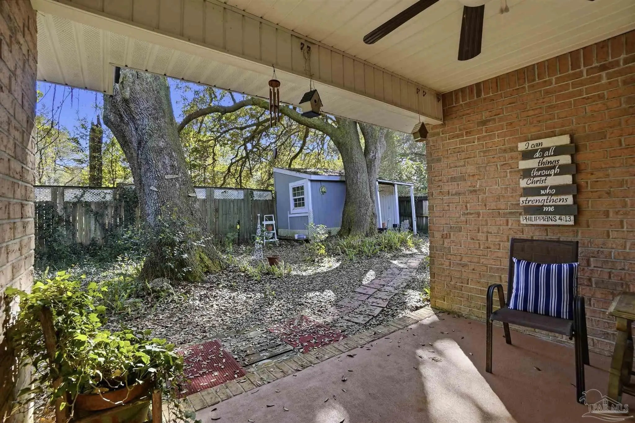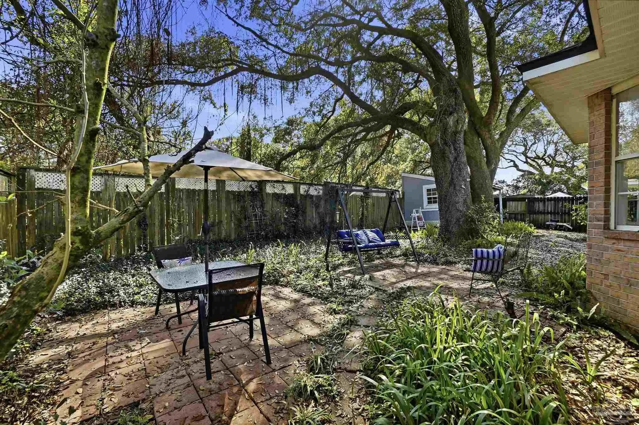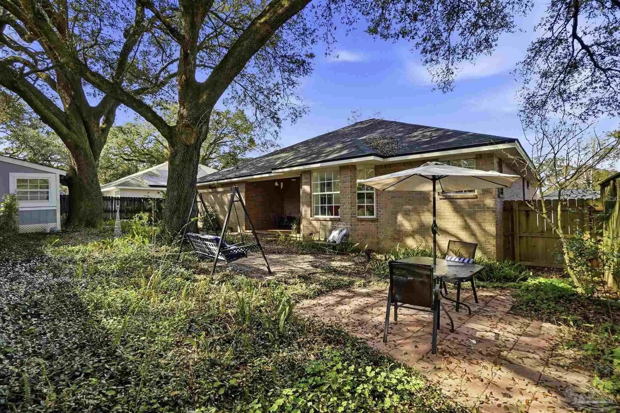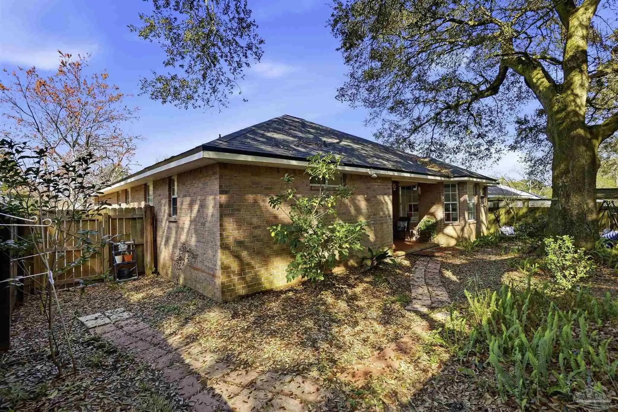 Welcome to this well-maintained, all-brick home in Waterford Place, a sidewalk-lined neighborhood known for its convenience and charm. Enjoy quick access to shopping, popular restaurants, major interstates, and Pensacola’s renowned white-sand beaches. A tiled foyer leads into a spacious great room featuring cathedral ceilings, a ceiling fan, built-in bookcases, and French doors that open to the covered back porch. This bright, open space is ideal for both everyday living and effortless entertaining. The fully equipped kitchen includes an island, abundant cabinetry, and a seamless flow into the breakfast nook. A bay window frames peaceful views of the backyard, creating the perfect spot for casual meals or morning coffee. The primary suite offers a generous layout with a tray ceiling and ceiling fan. Its ensuite bathroom provides excellent functionality with two closets, a double vanity, a garden tub, a separate shower, and a private water closet. Additional bedrooms are well-sized and arranged within a split floor plan for added privacy. Throughout the home, you’ll find durable hard-surface flooring, no carpet. Additional highlights include a 2-car garage with a utility sink, a sprinkler system, and a privacy-fenced backyard. The covered back porch offers a quiet space to unwind or entertain outdoors. Major update includes a roof replacement in 2021. This is a solid, well-cared-for home in a desirable location, move-in ready and waiting for its next owner. Schedule your personal tour today.