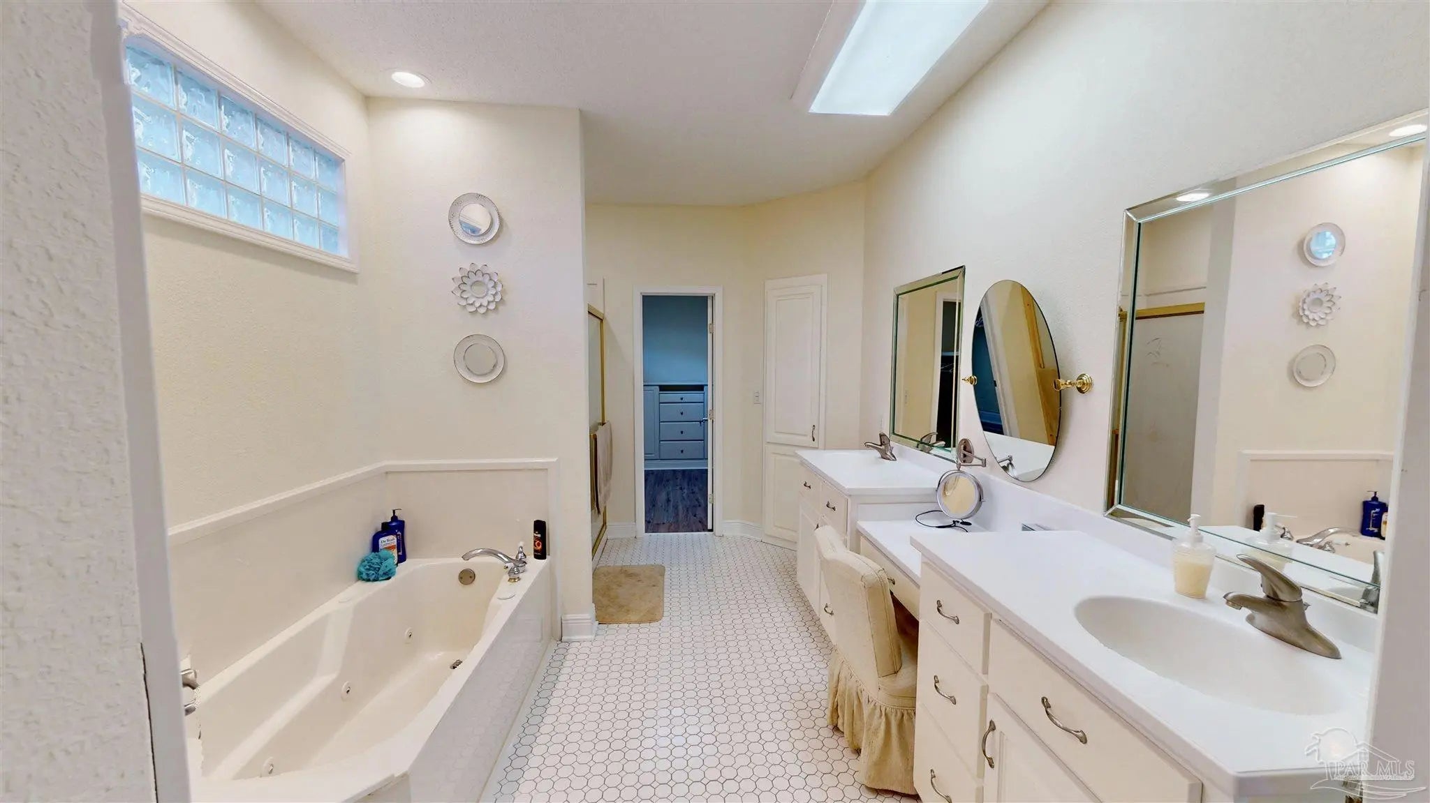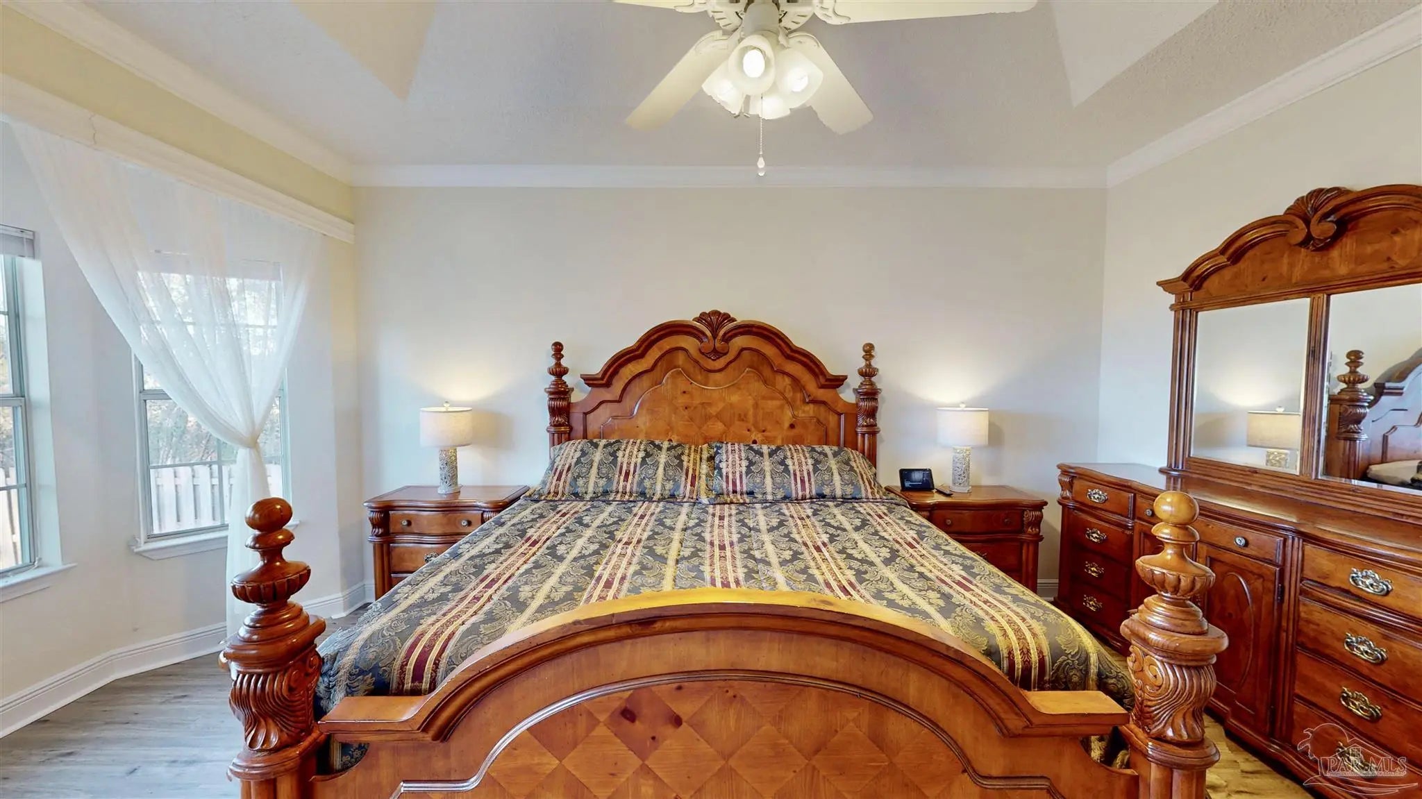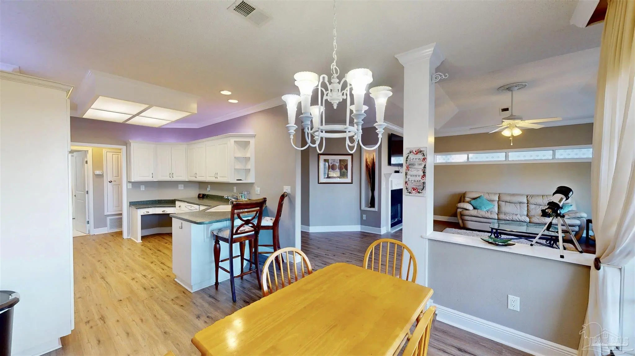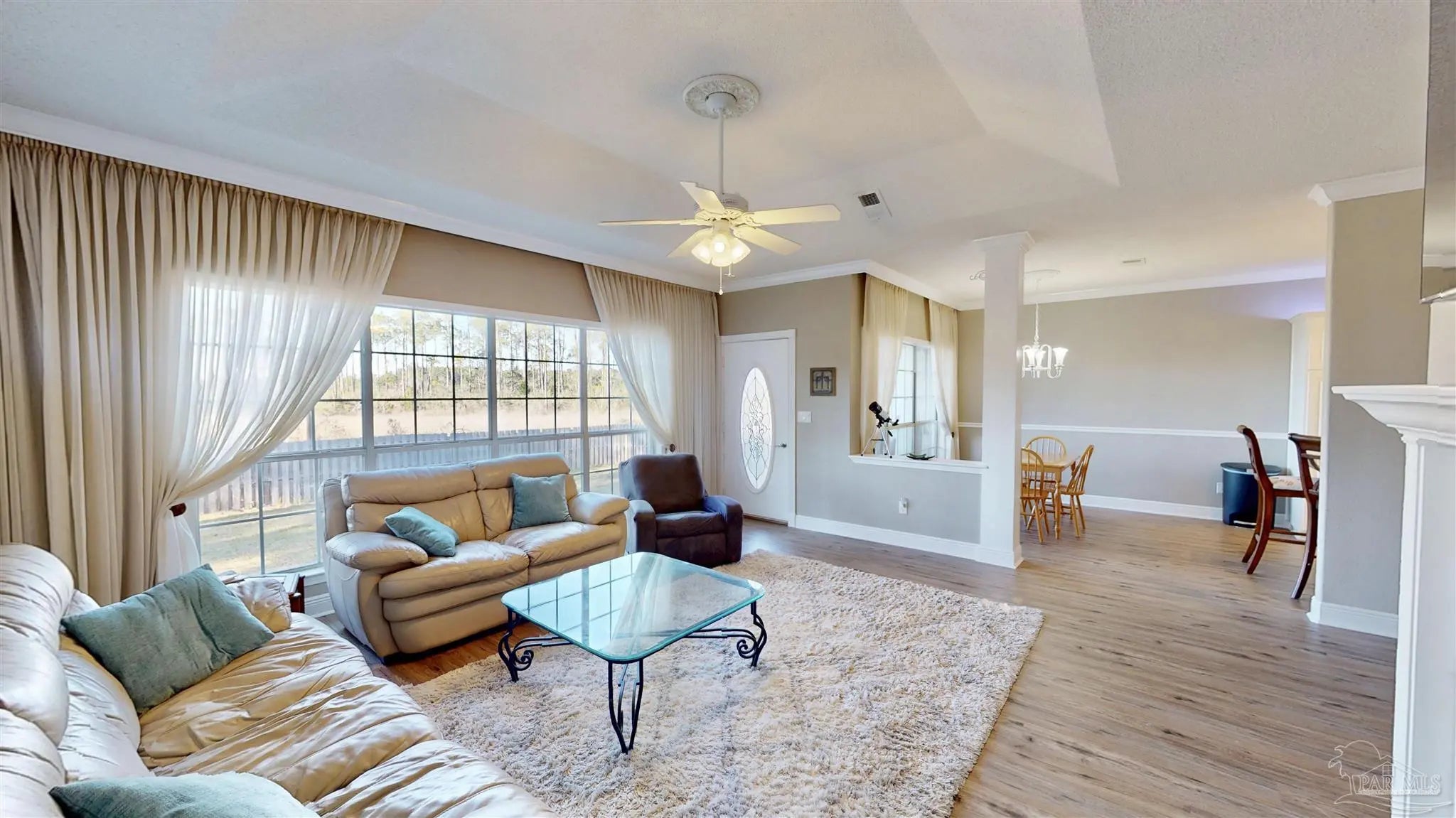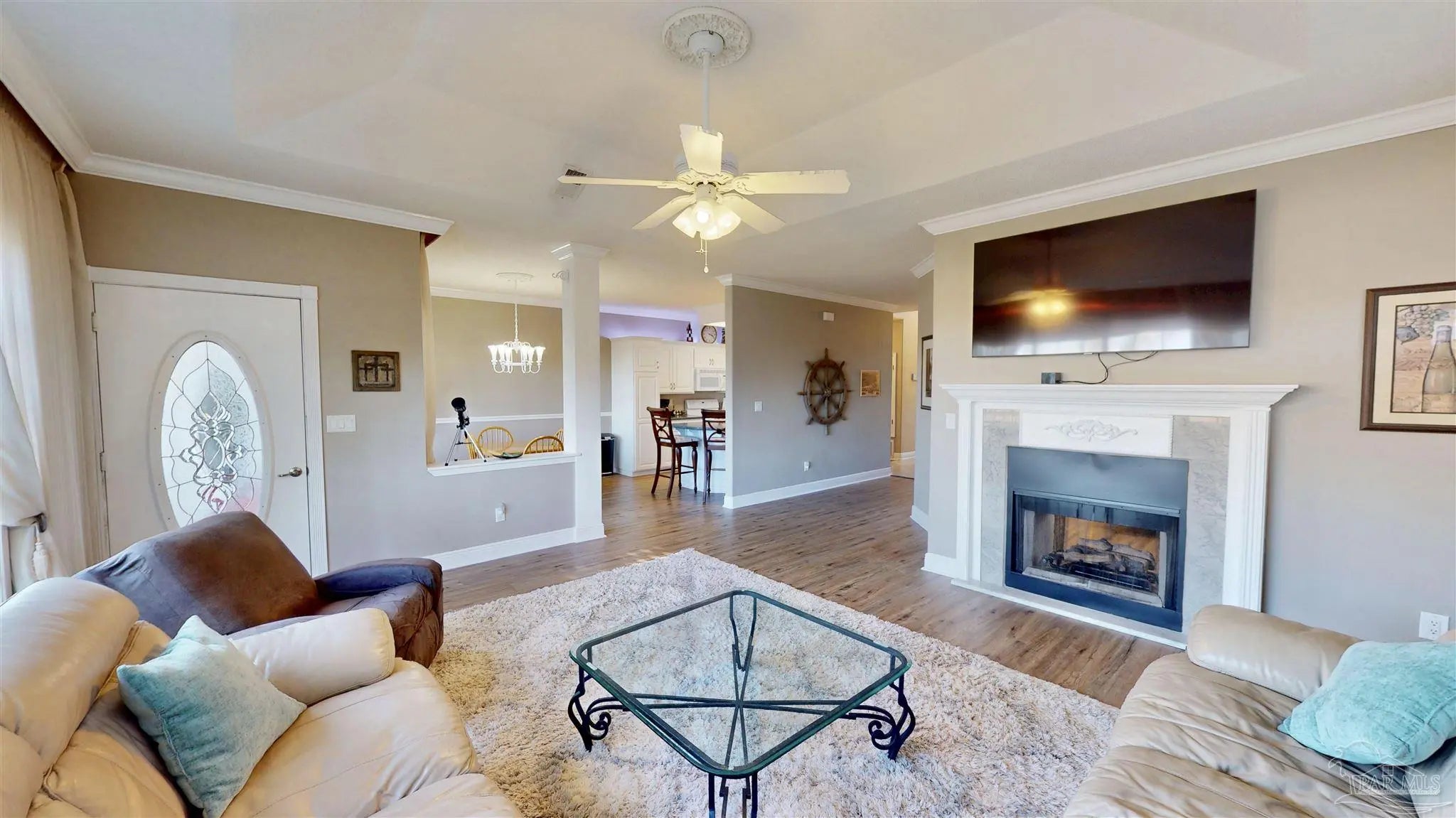 You feel it the second you walk in. The front door opens and Escambia Bay stretches out in front of you, framed by sawgrass and sky, like the house was built around the view.. because it was. The foyer welcomes you with vaulted ceilings and marble floors and from there the view of the bay follows you everywhere: the living room, kitchen, dining room, even the primary bedroom. This custom-built 3-bed, 2-bath home offers 1,963 square feet designed with intention and care, shaped by an owner who truly loved it. Trees were thoughtfully cleared to create a peaceful backyard that feels private and expansive, while a full irrigation system keeps the grounds looking great year-round. Inside, built-in storage is everywhere you want it, and a double-sided fireplace connects the living area to a guest room or home office, your choice. The primary suite is a retreat of its own with a huge closet, double vanity, walk-in shower, and jetted garden tub. Even the garage is finished with a mini-split HVAC. Located in Milton, you’re close to Pace shopping and dining, about 30 minutes from Pensacola Beach or downtown, yet far enough out to feel like you have your own nature preserve. Deer, Bald Eagles and Cranes don’t just visit.. they’re part of the view.